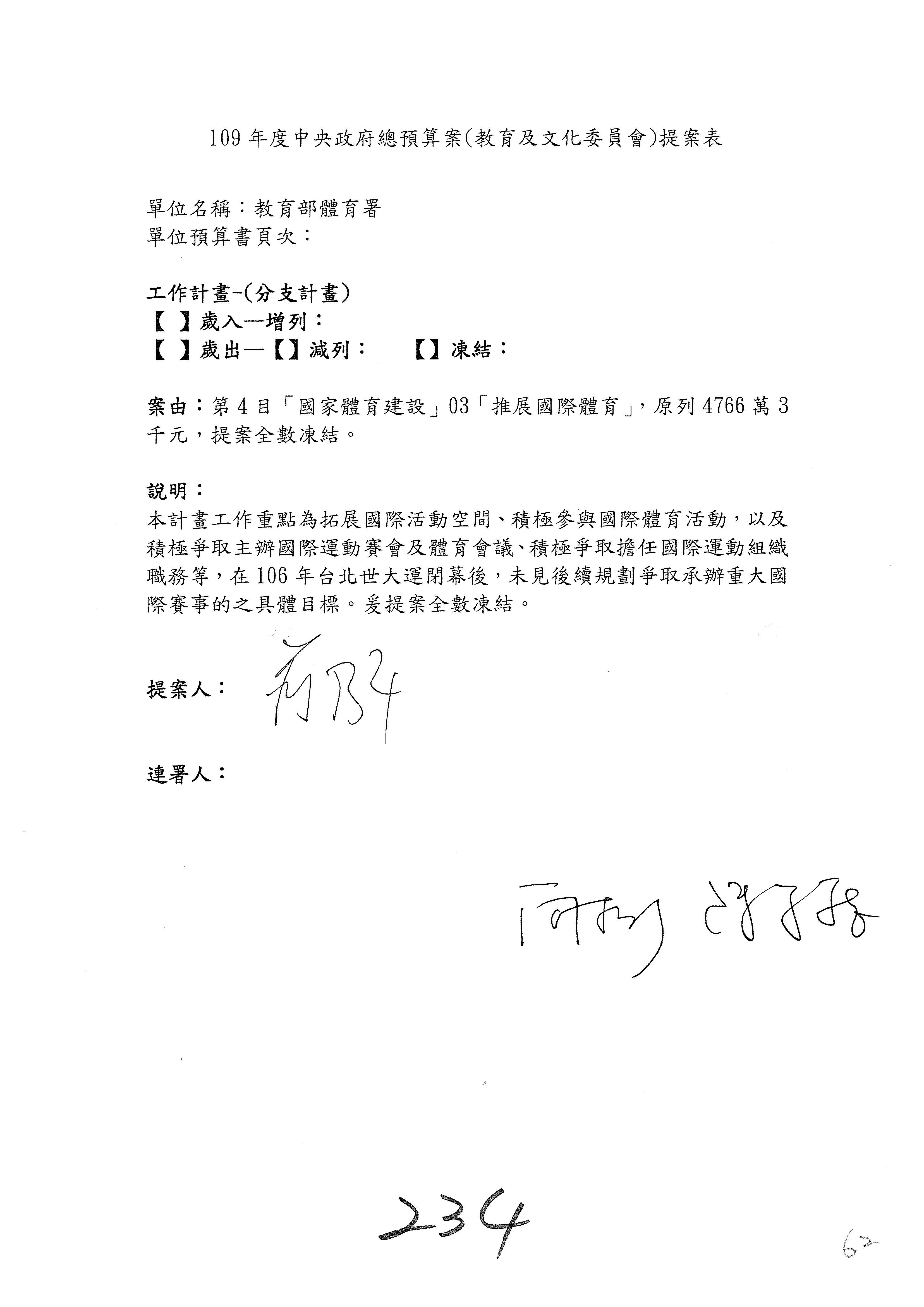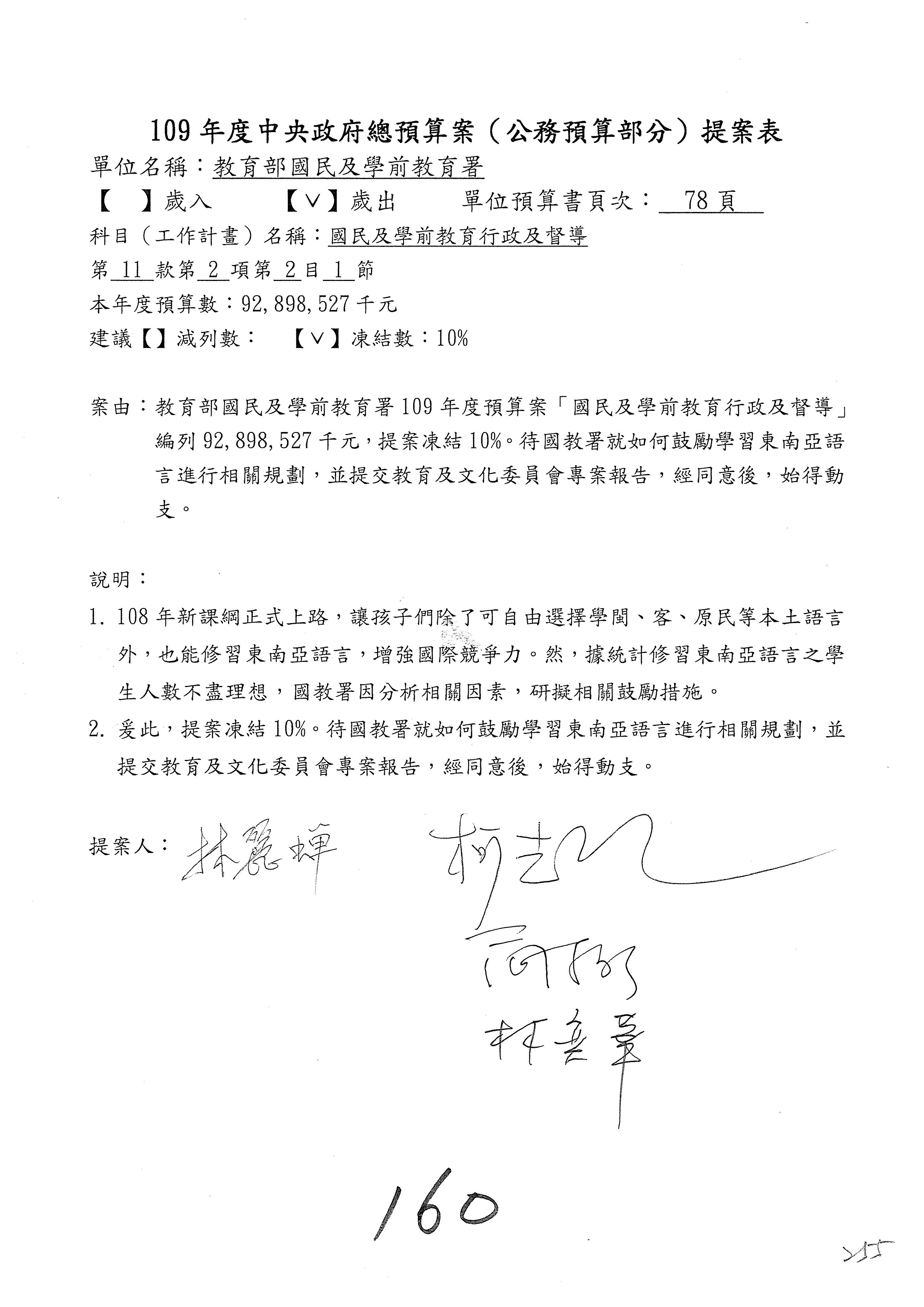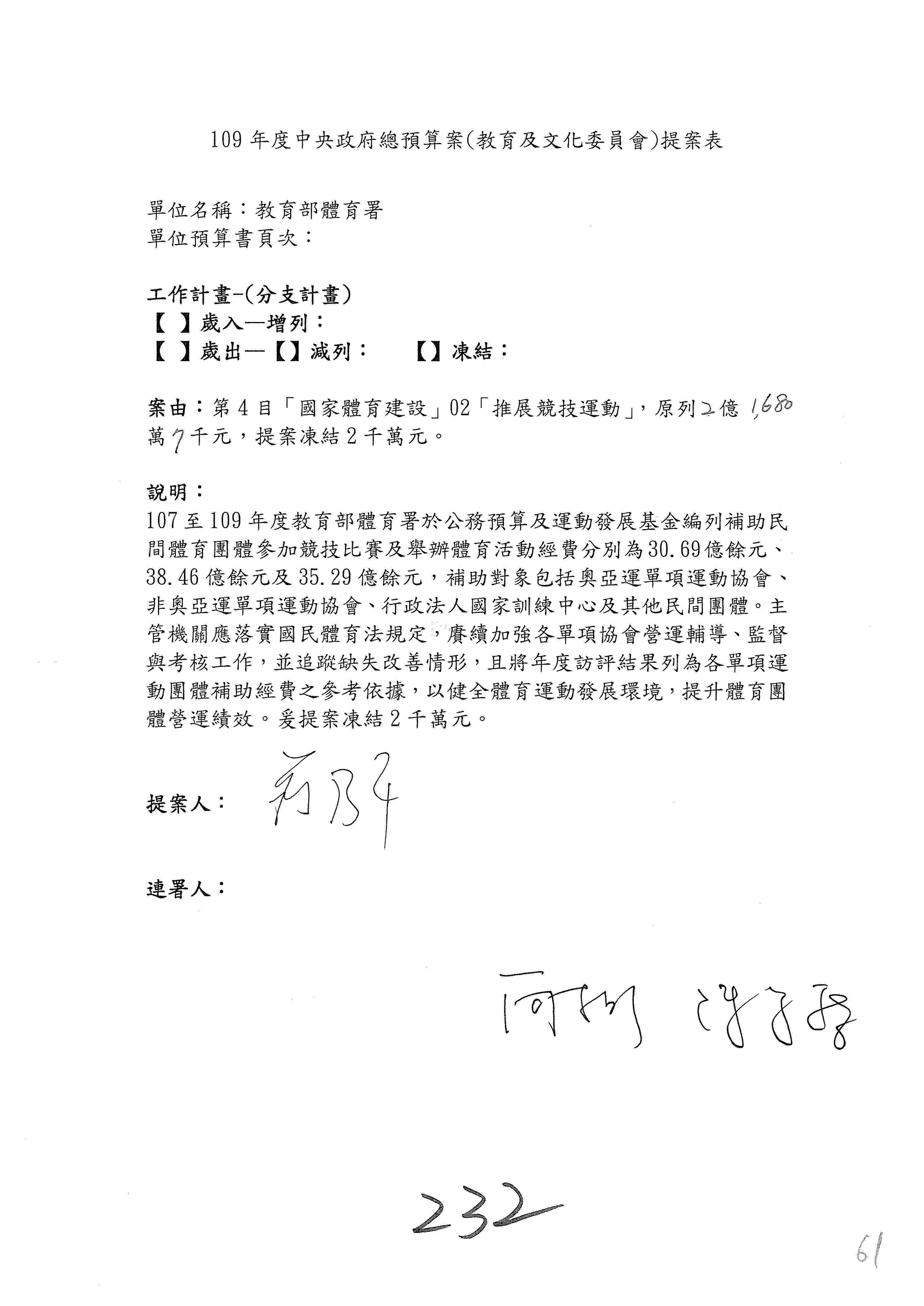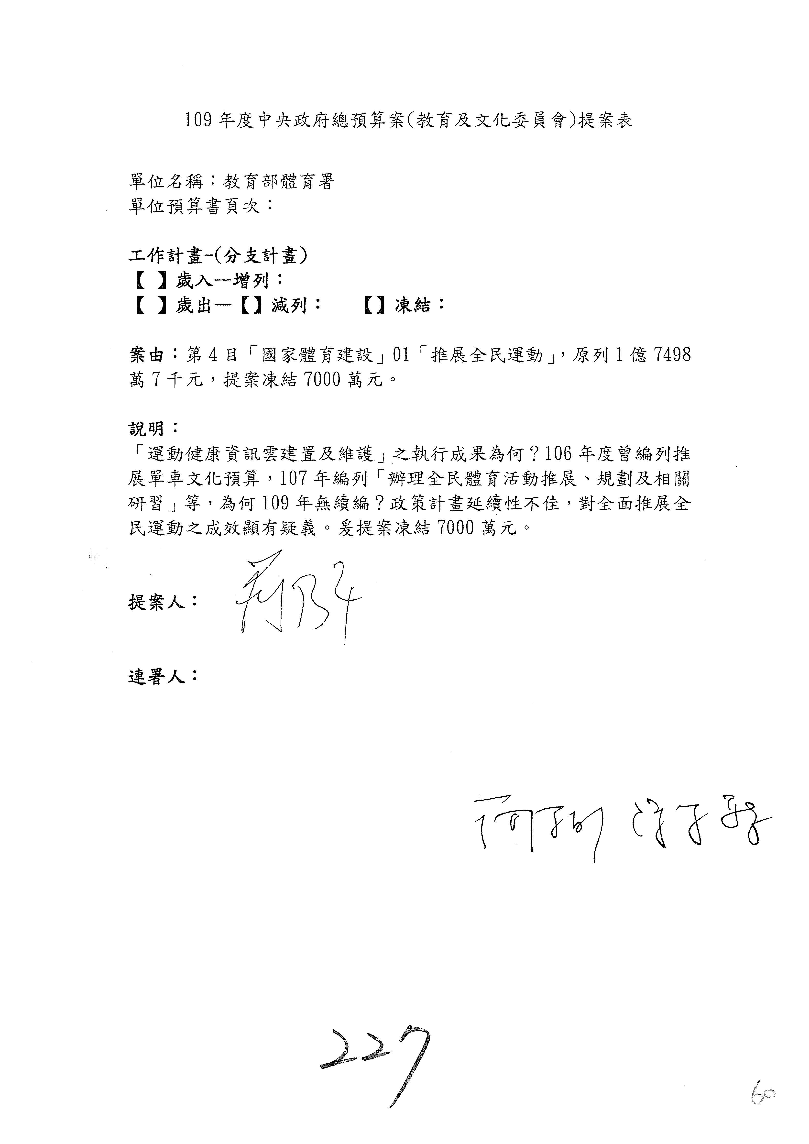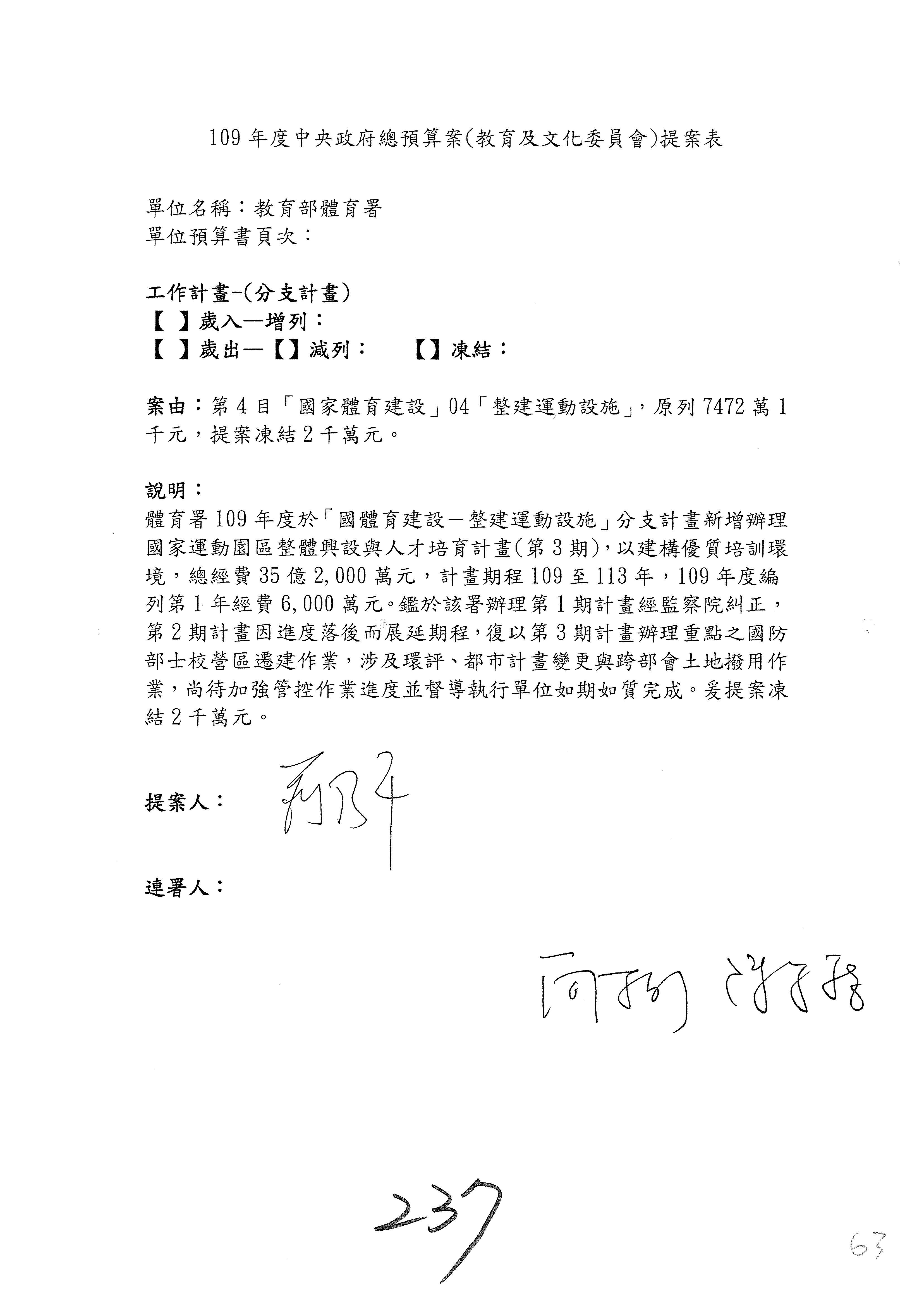 早上原本保留第31案,決議減列500萬元,凍結500萬元,提出書面報告後解凍。