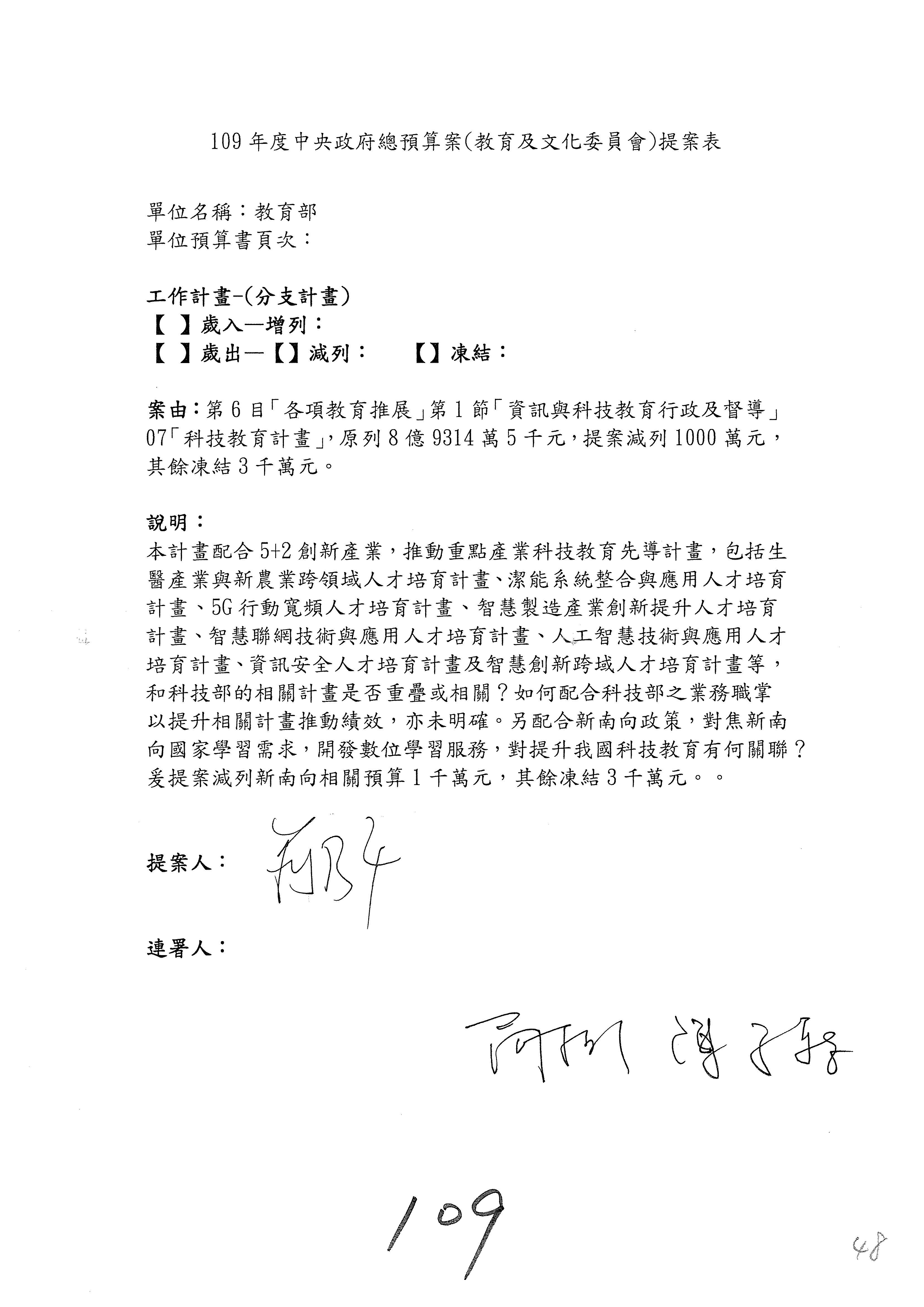 一、繼續審查109年度中央政府總預算案有關教育部及所屬單位預算案。