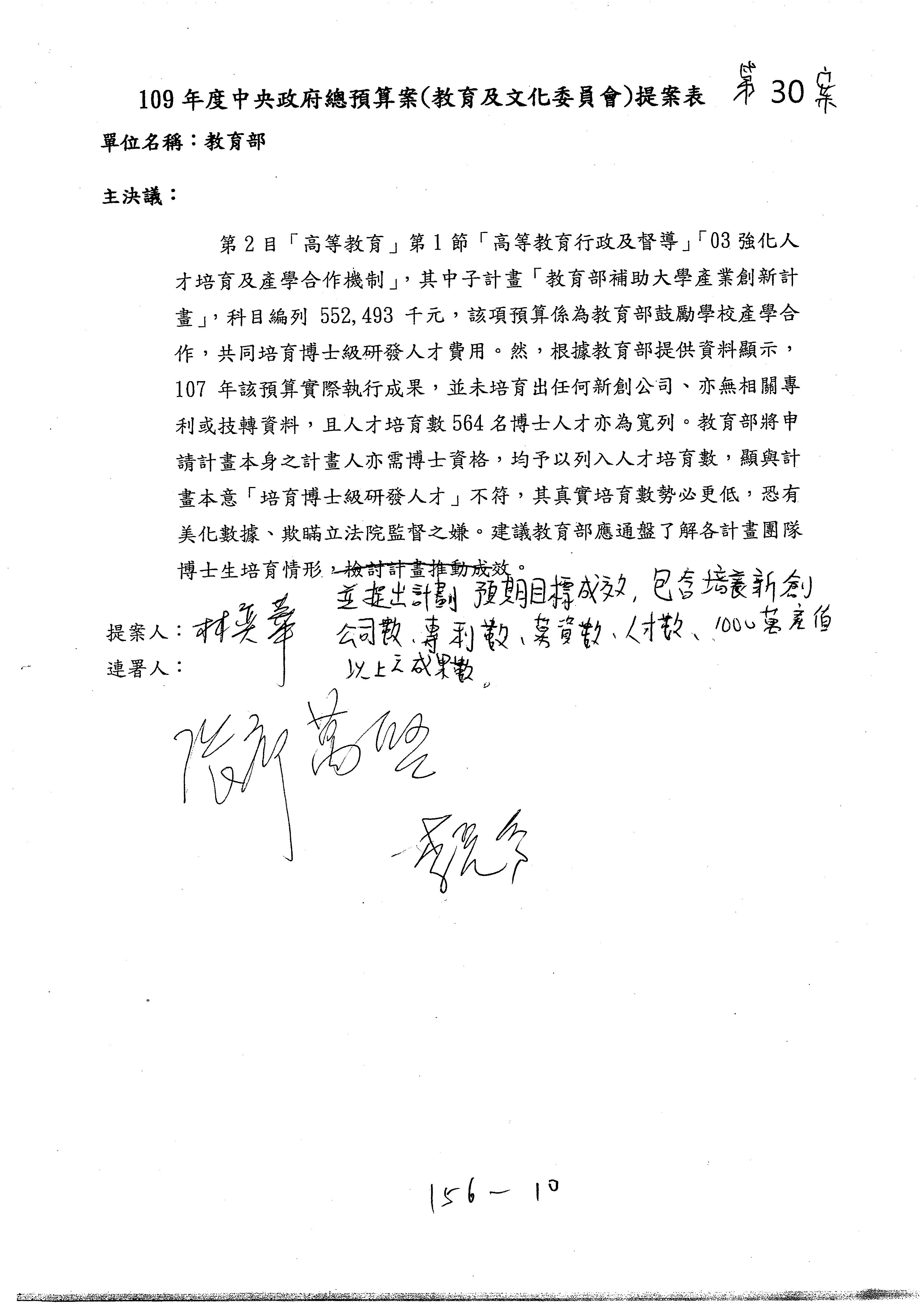 林委員奕華:關於第30案部分,我有跟高教司確認過,文字OK。