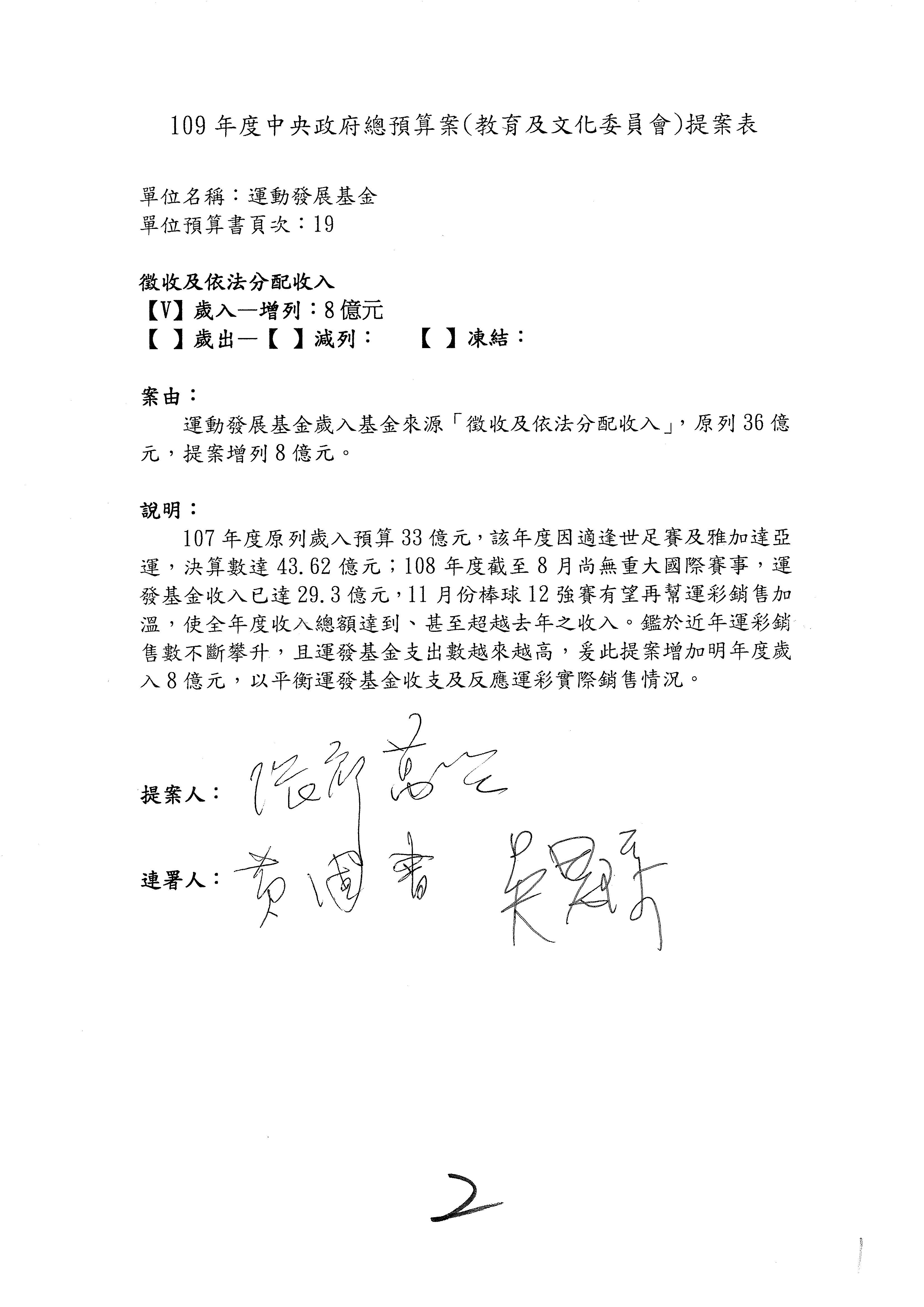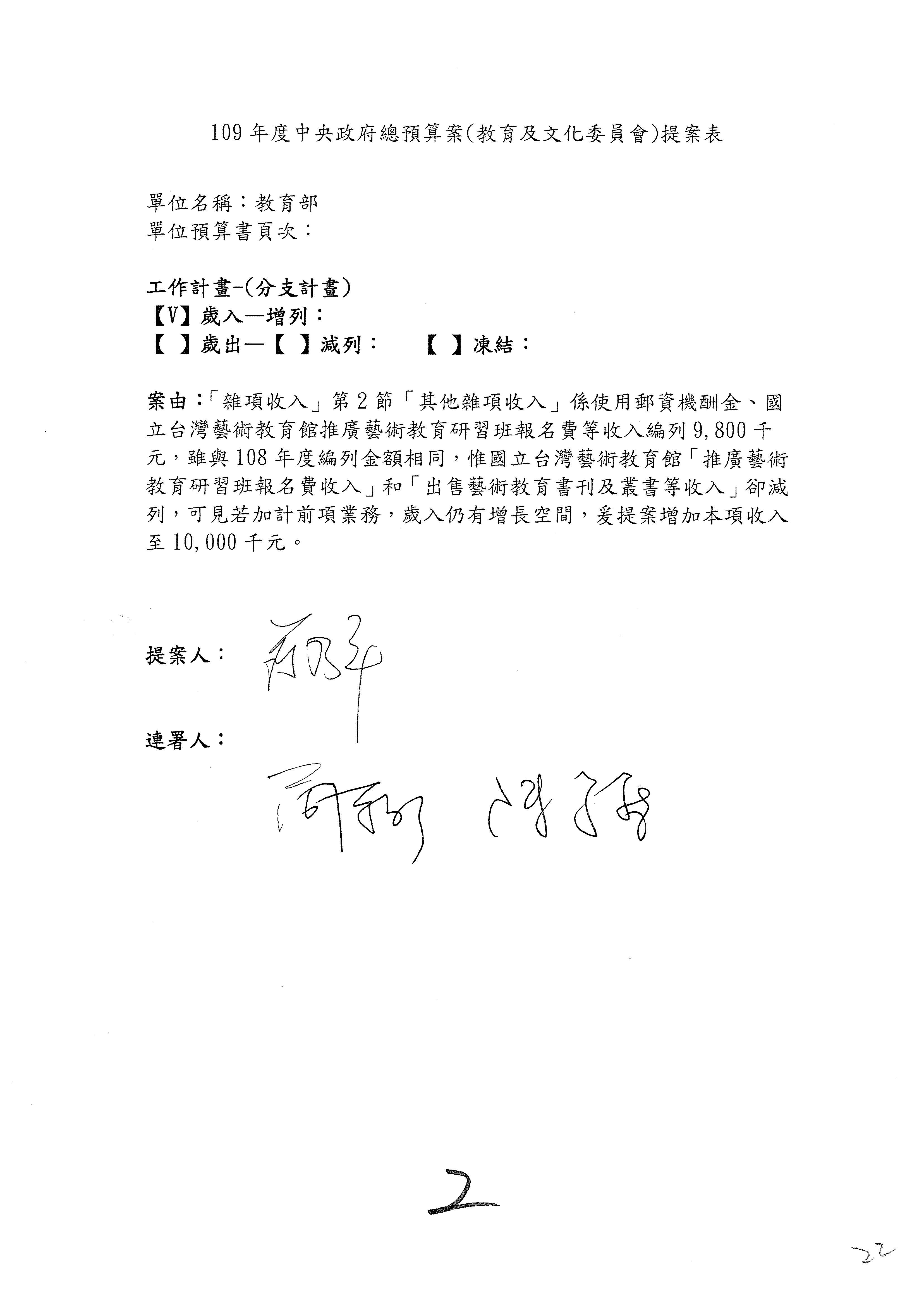 二、審查109年度行政法人國家表演藝術中心及108年度、109年度行政法人文化內容策進院預算案。