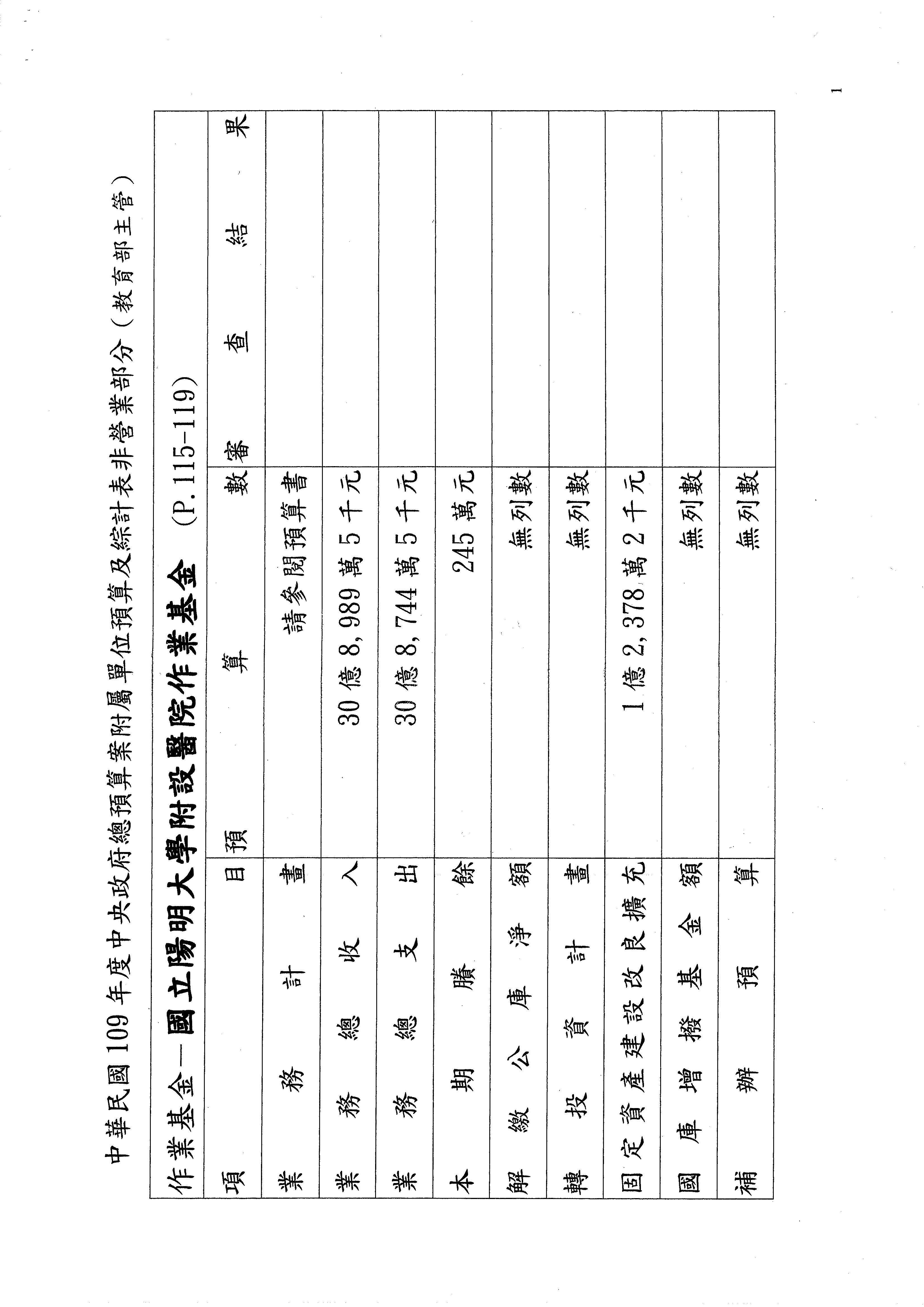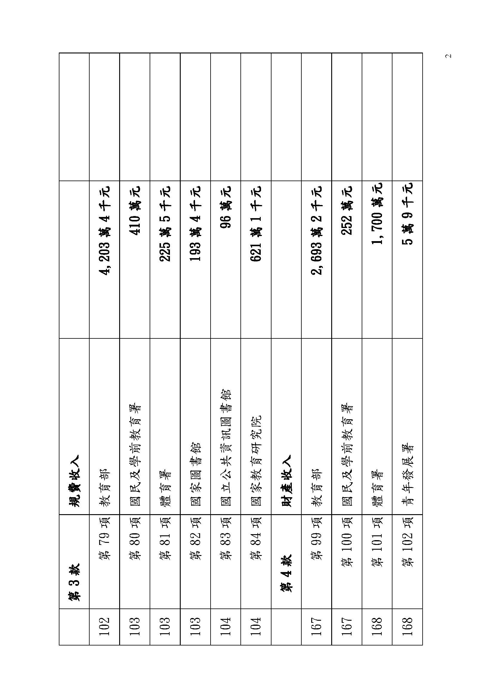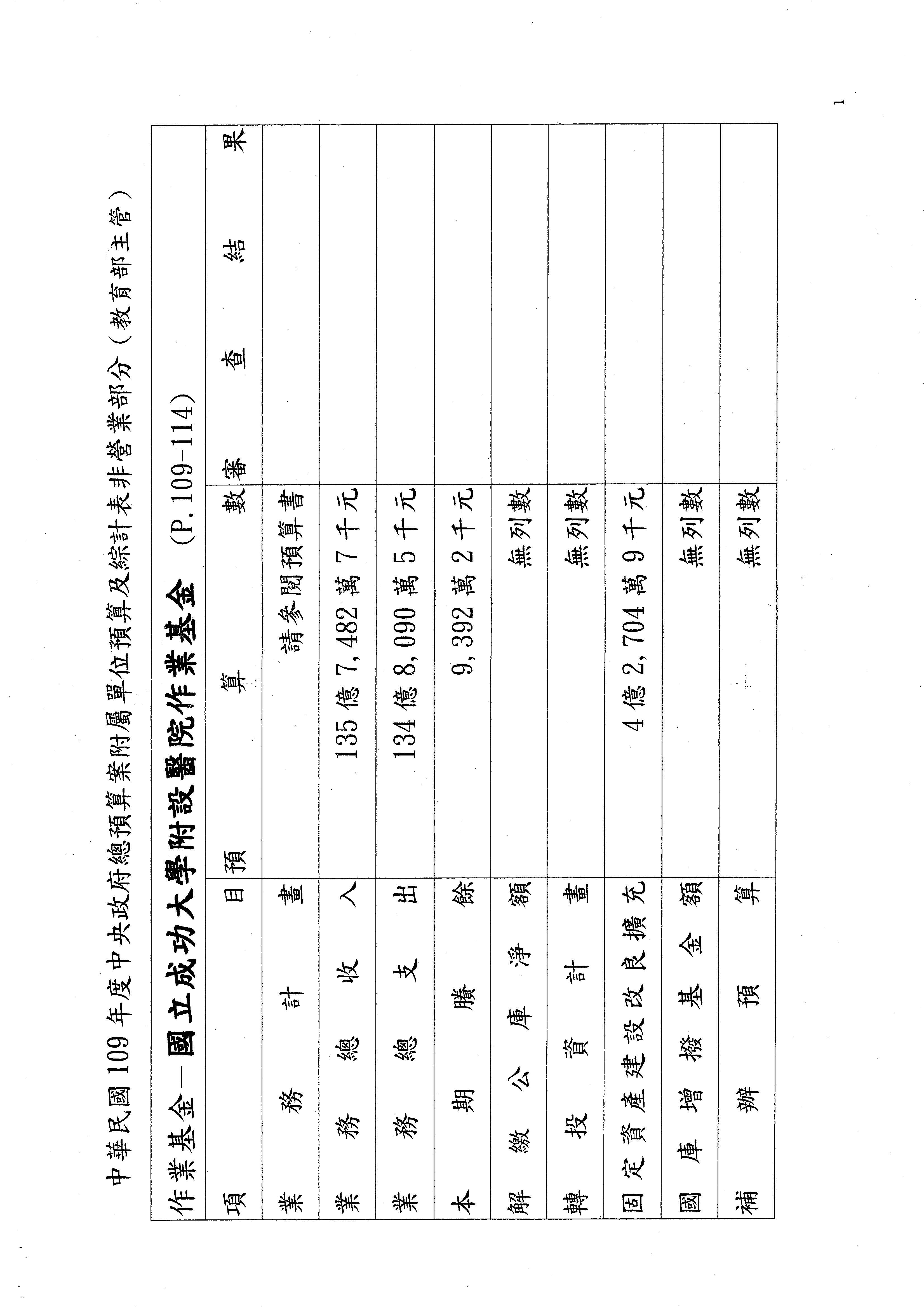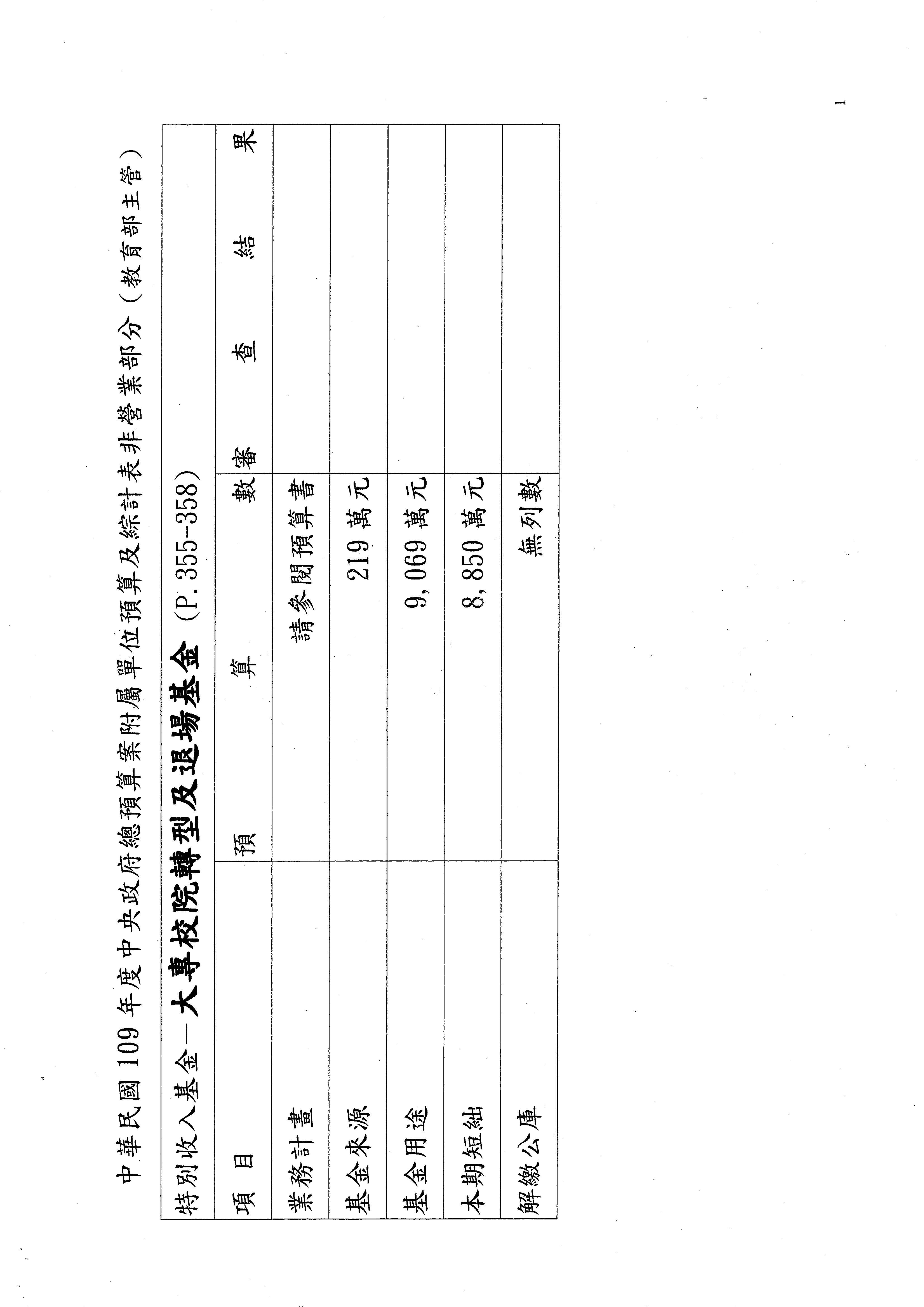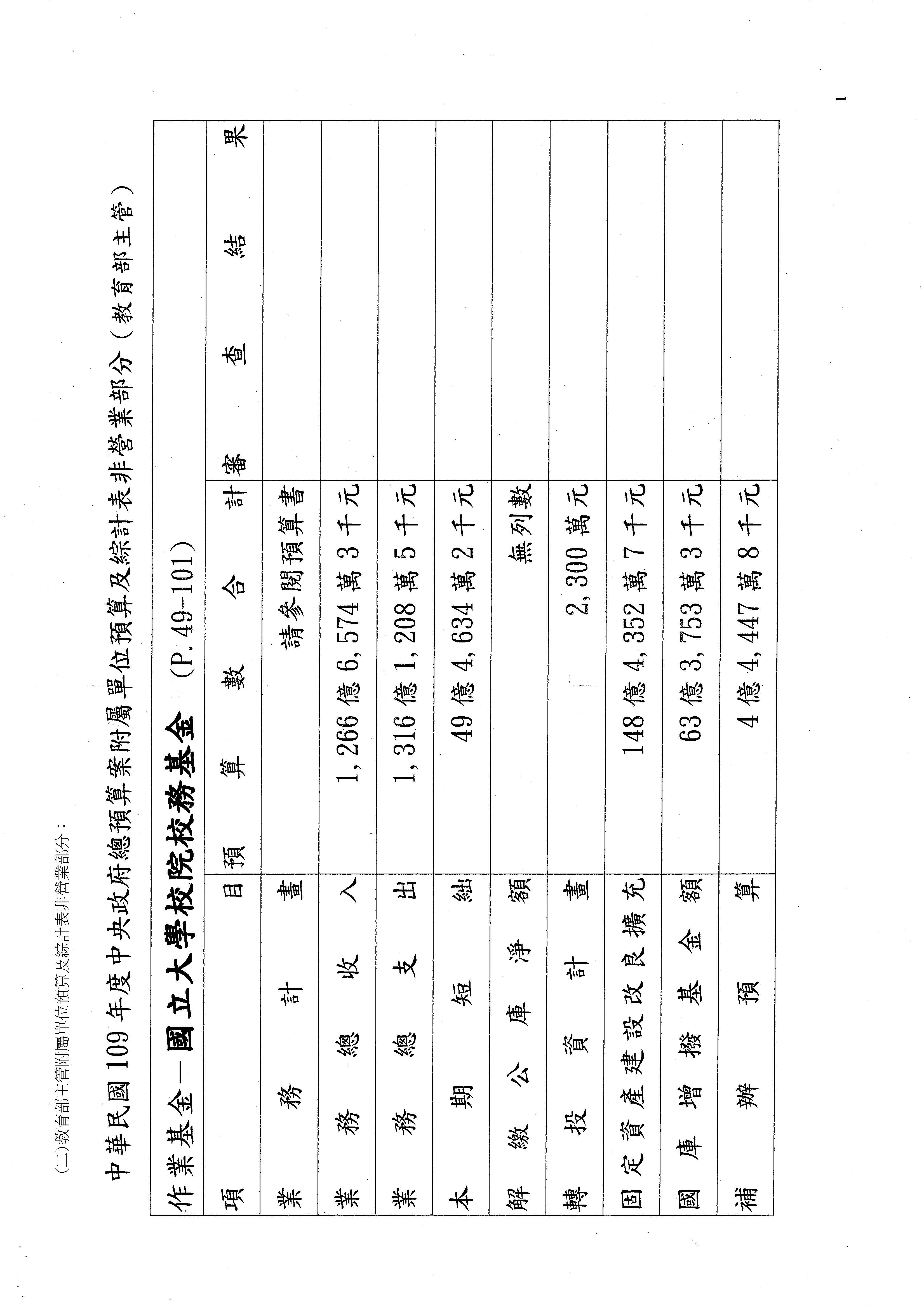 (二)教育部主管附屬單位預算及綜計表非營業部分: