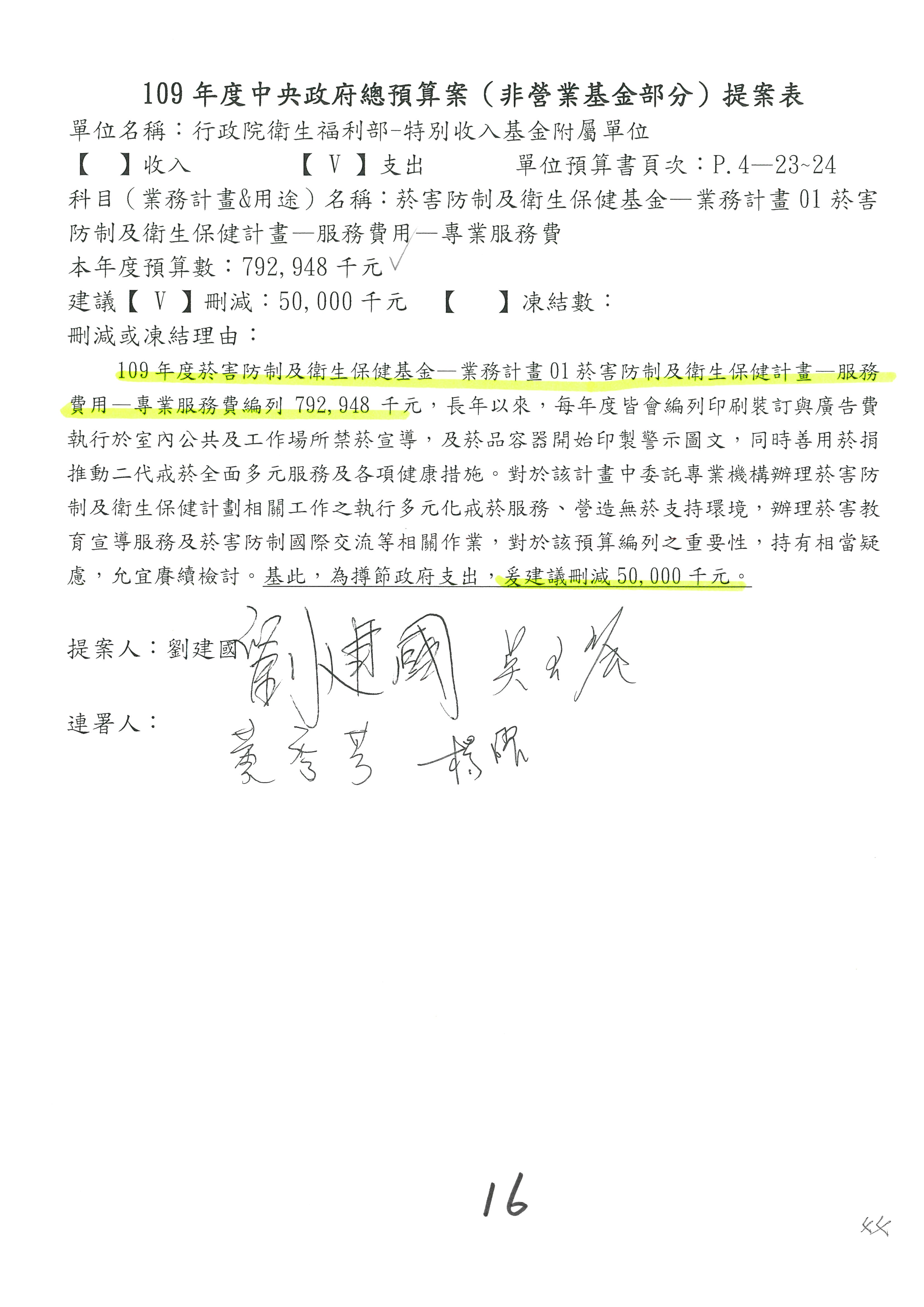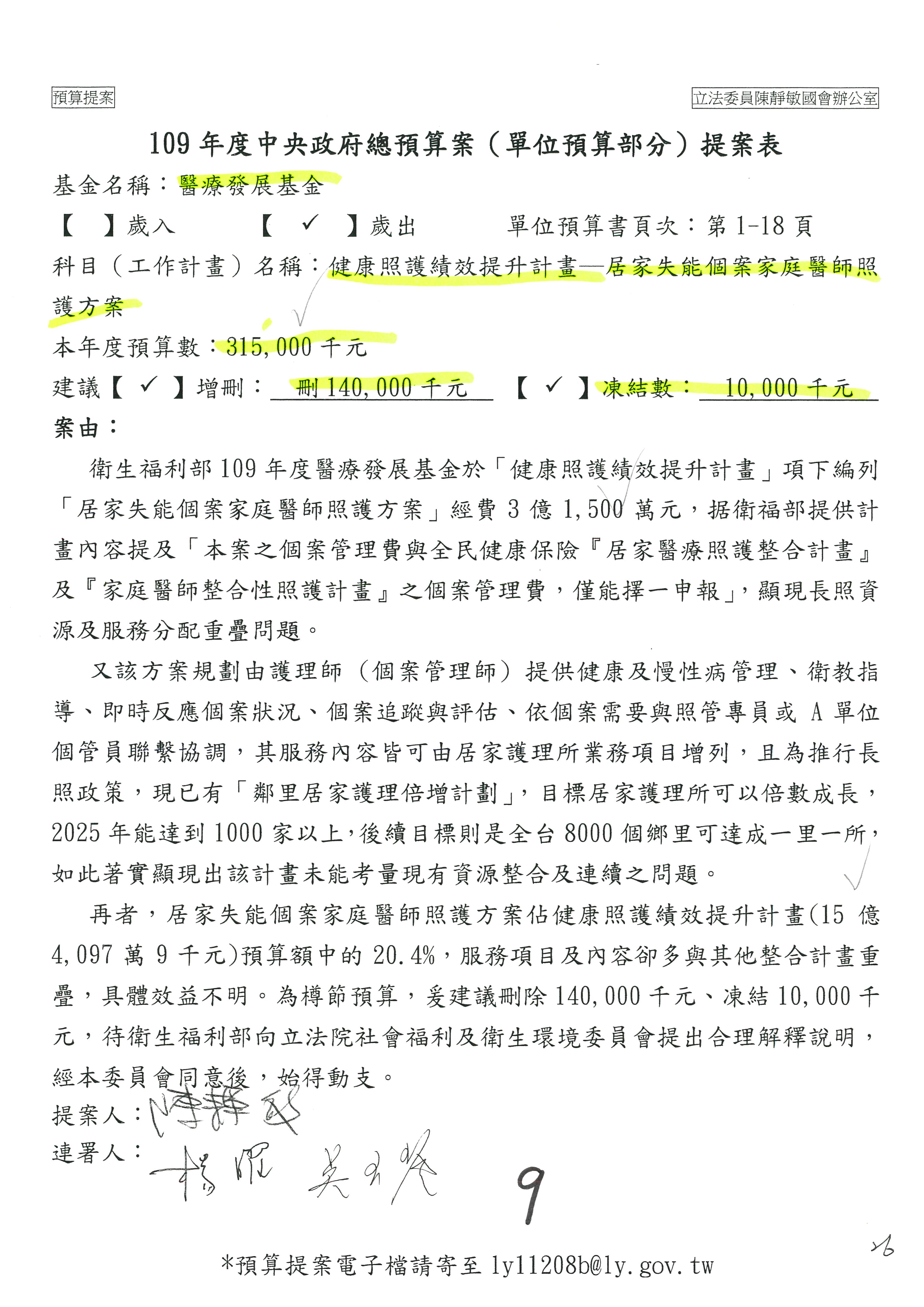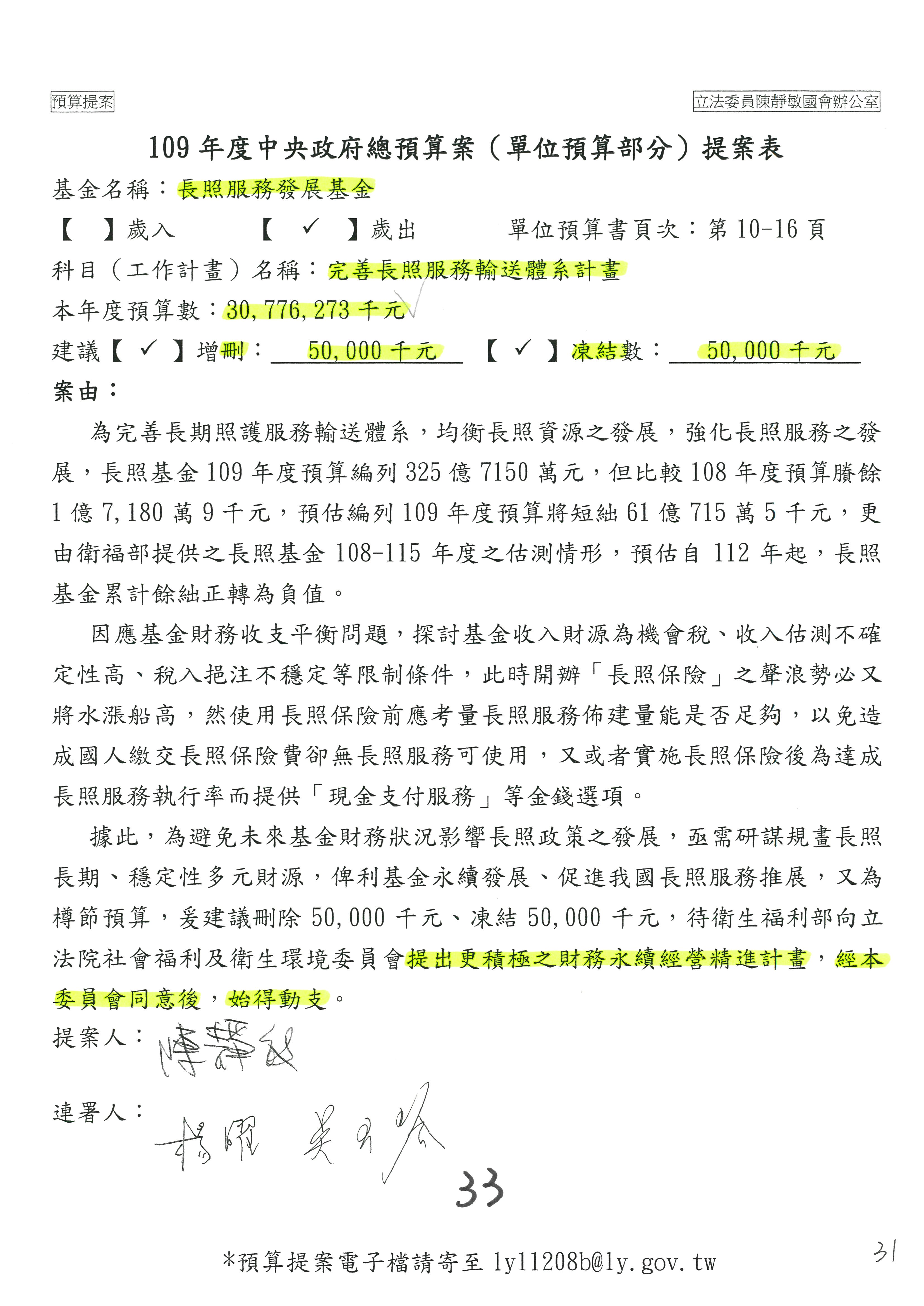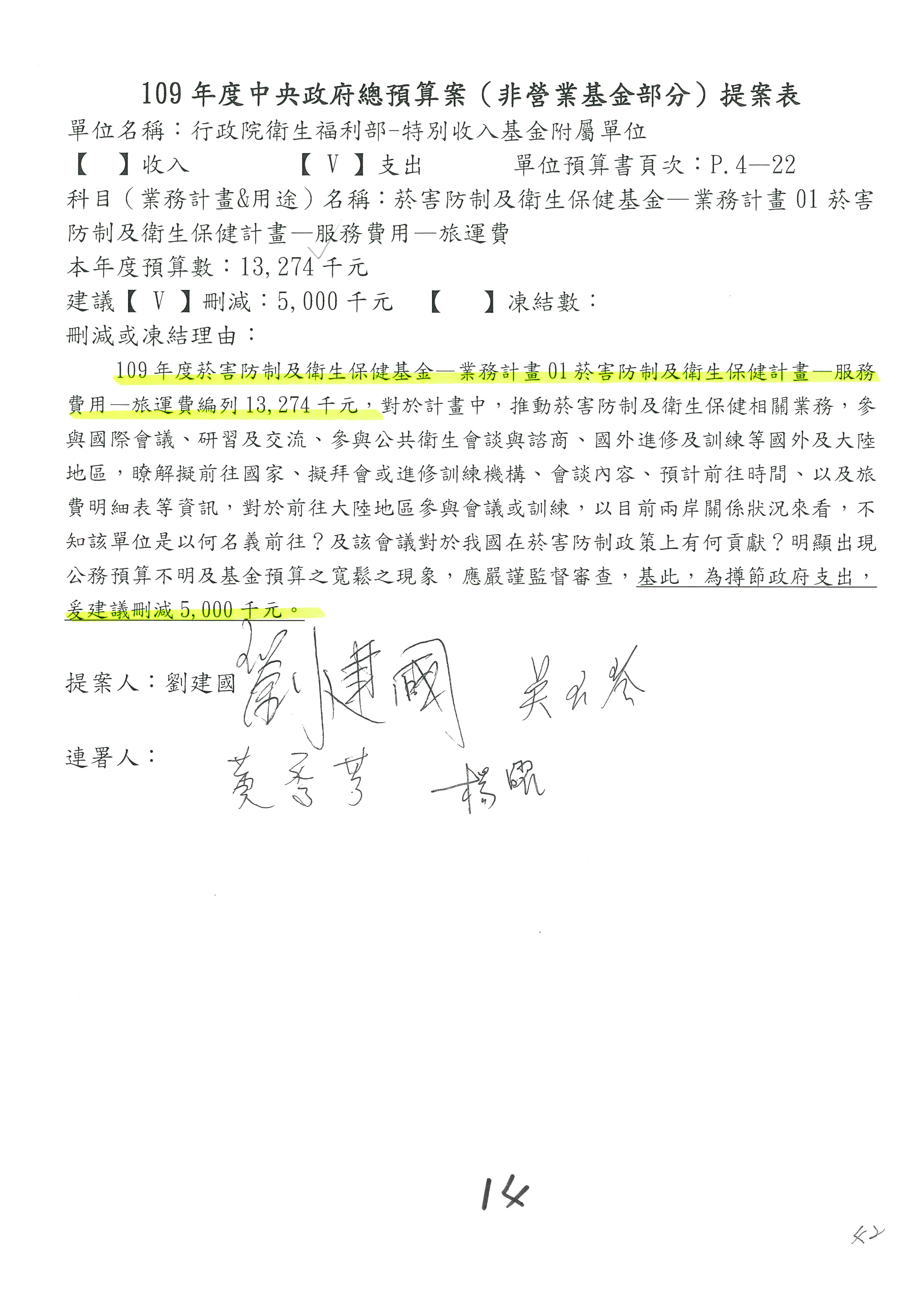 祝司長健芳:陳委員已經簽字,同意減列300萬元、凍結100萬元。