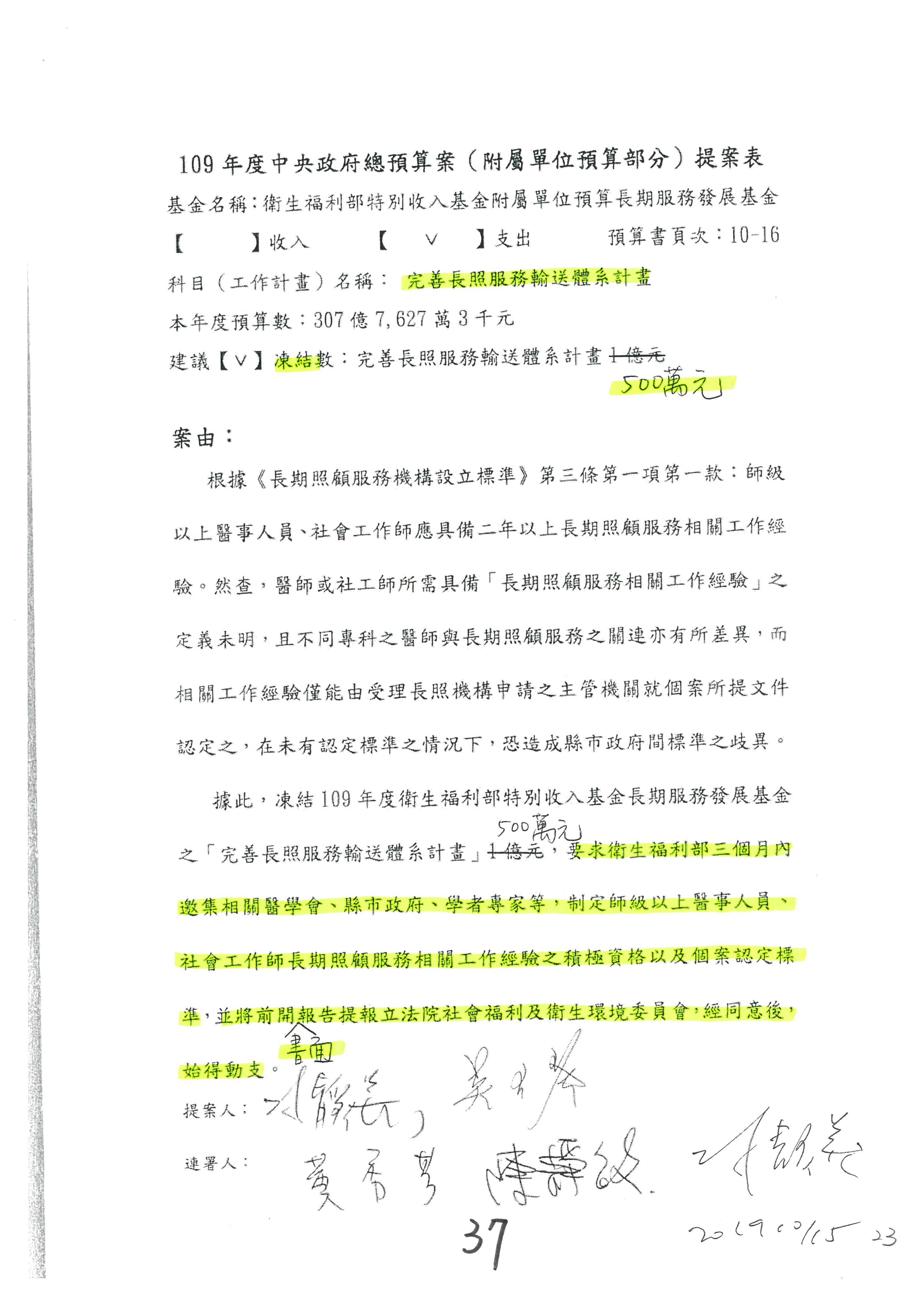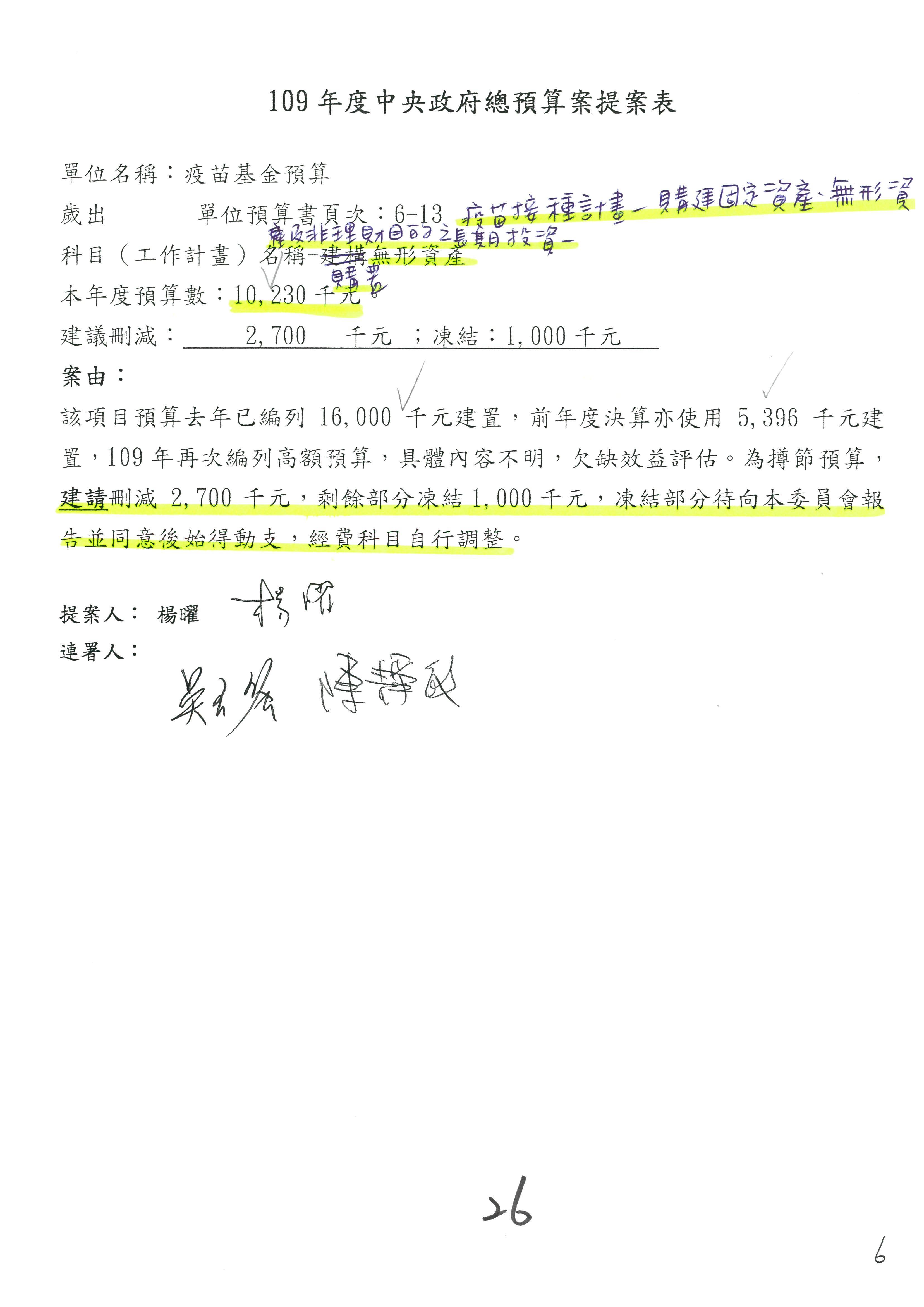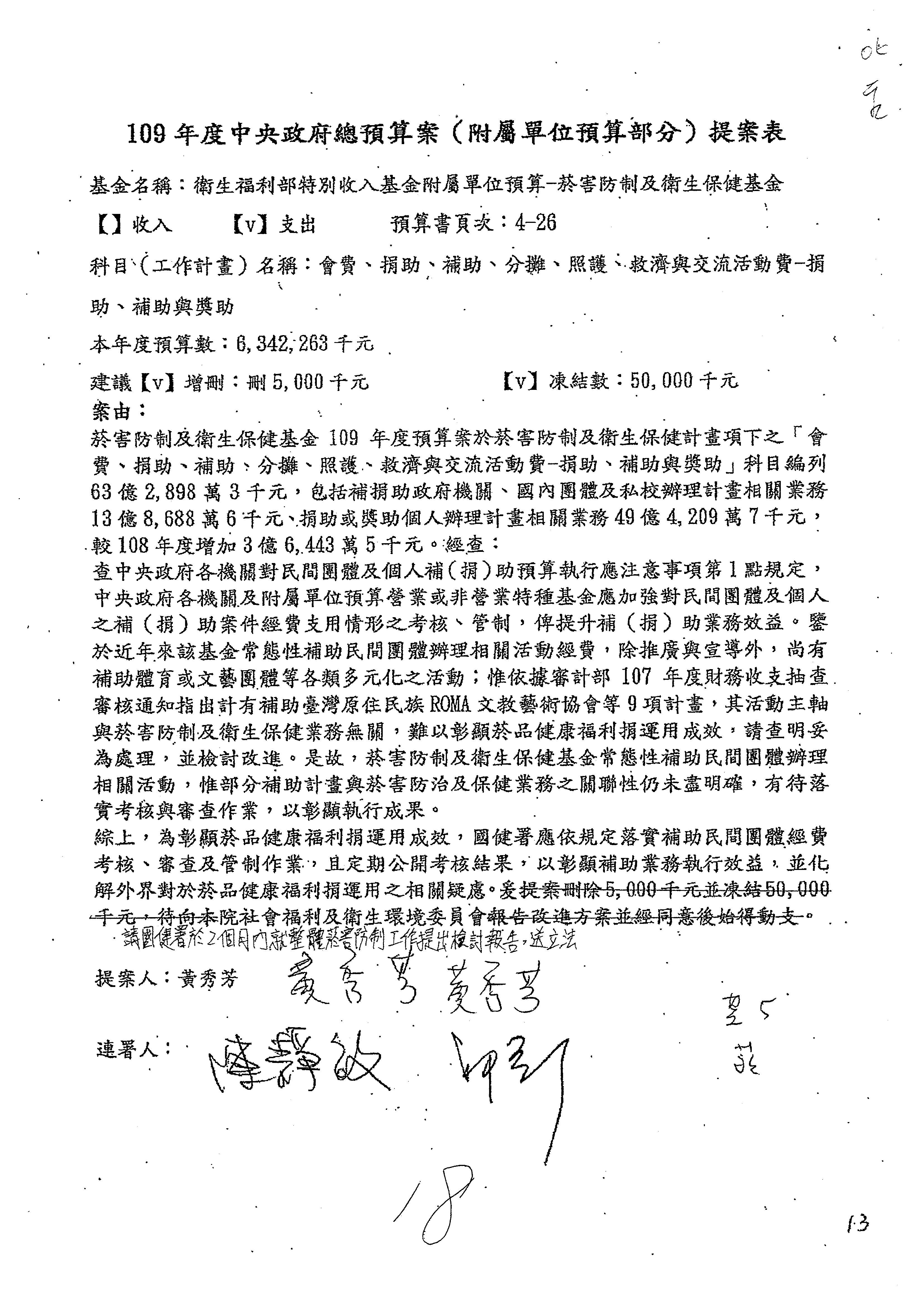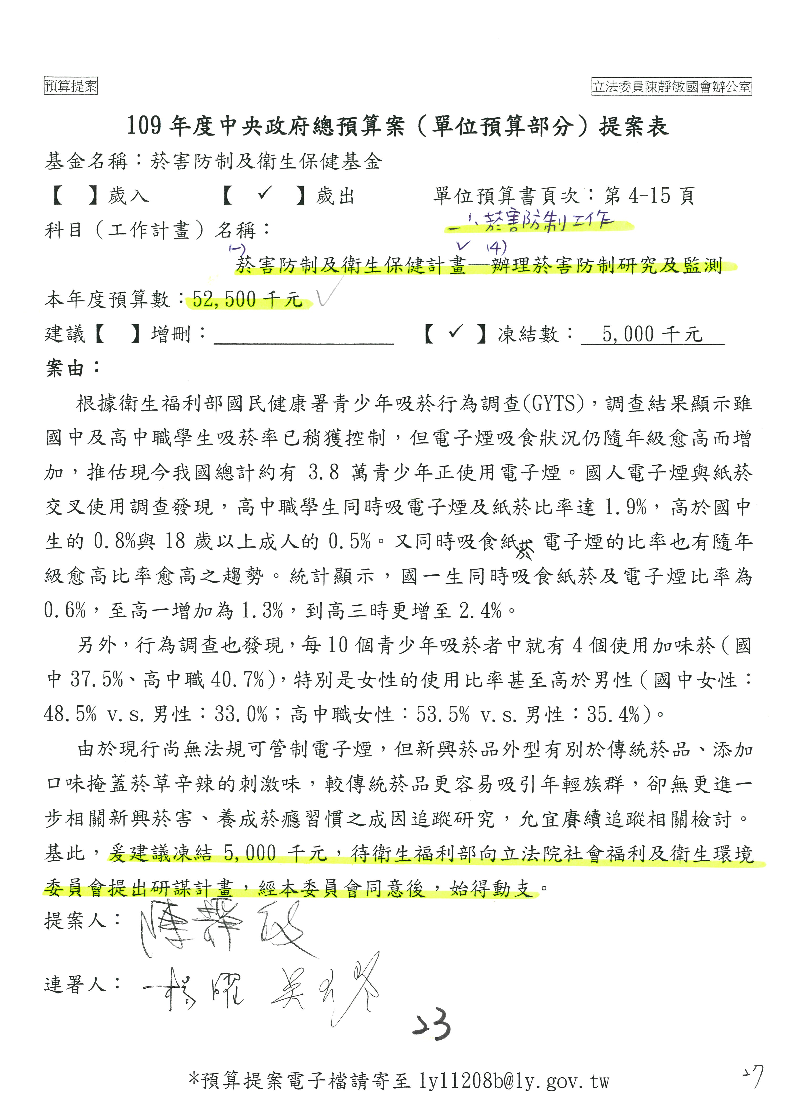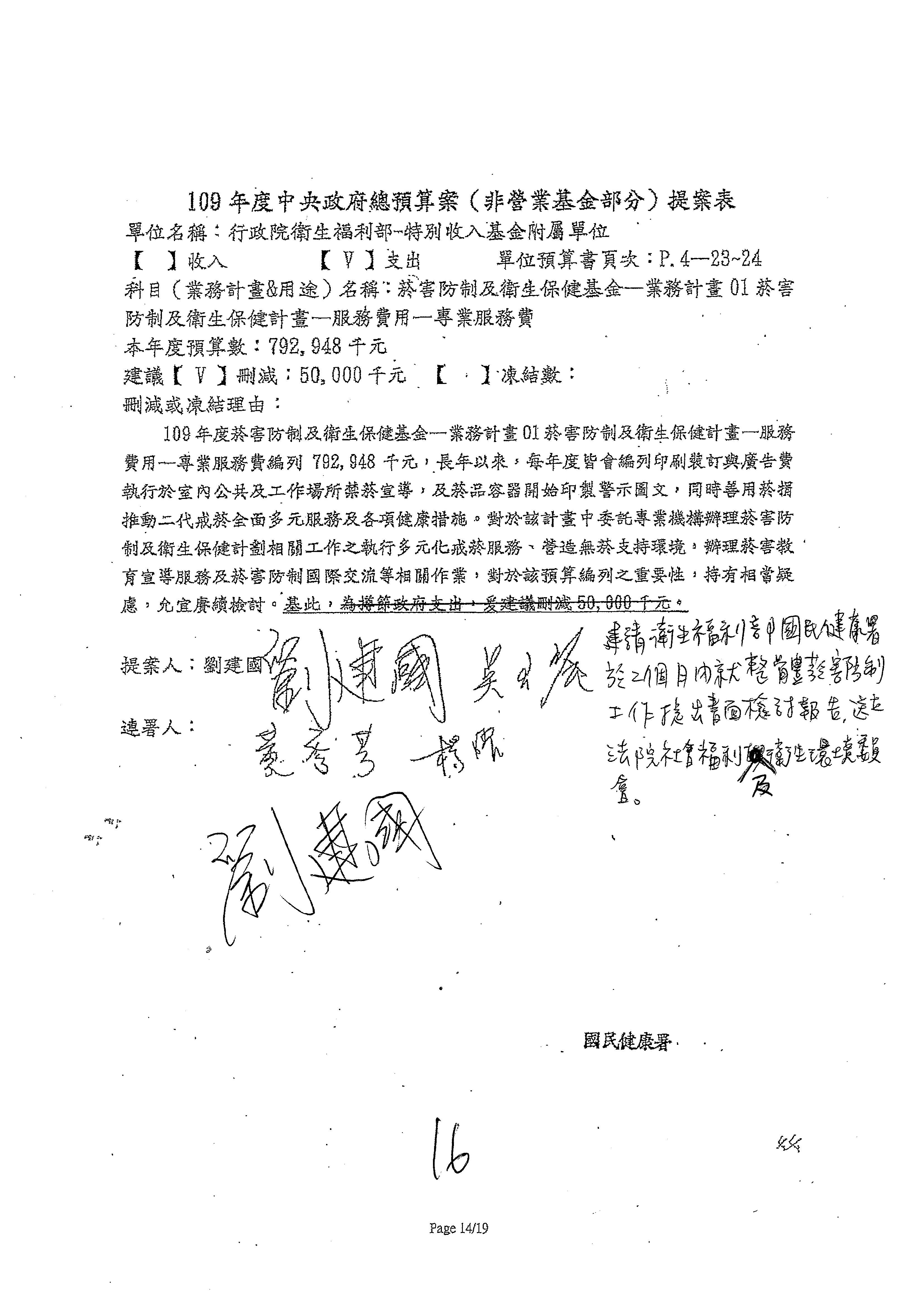 祝司長健芳:陳委員已經簽字,同意減列300萬元、凍結100萬元。
