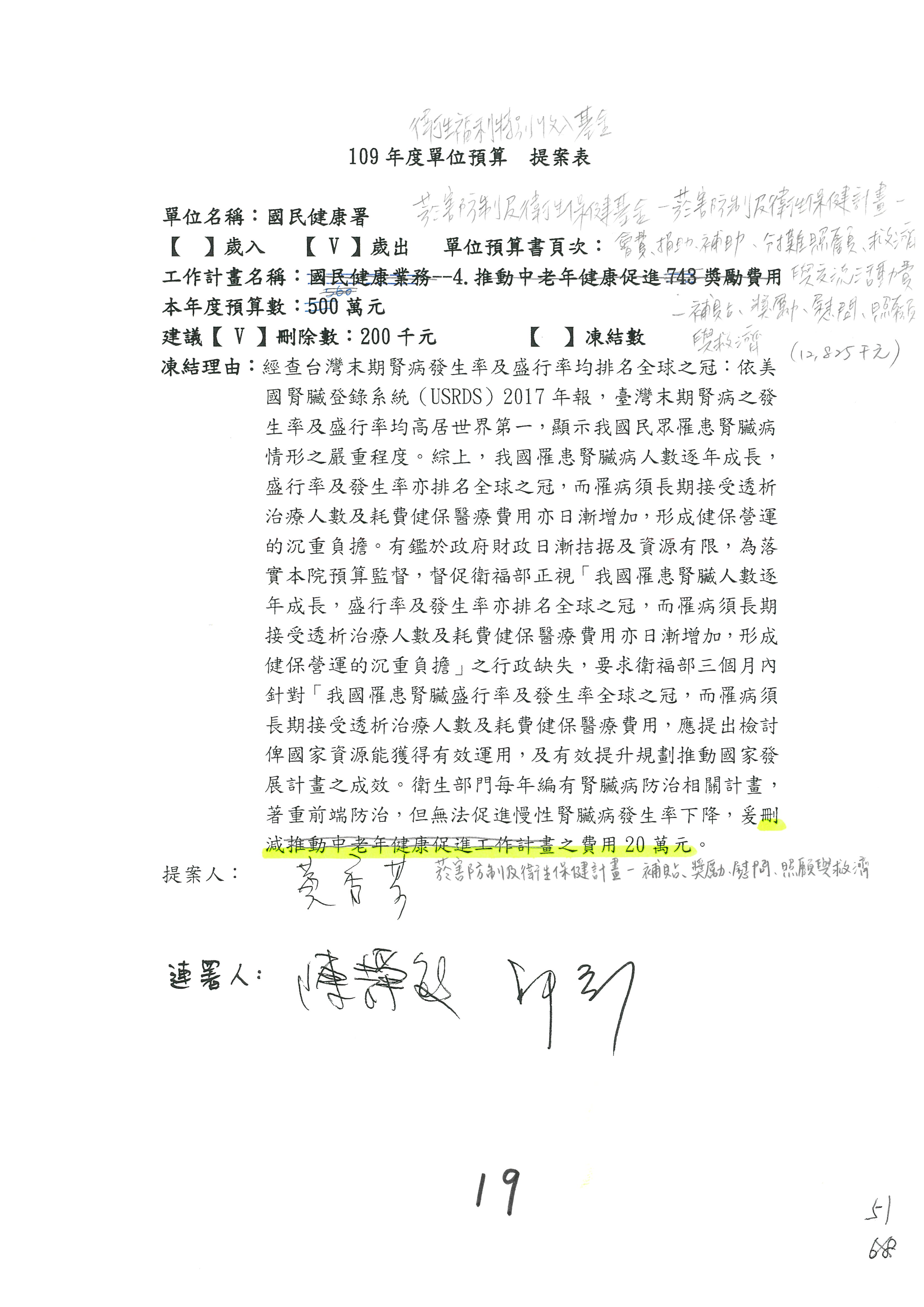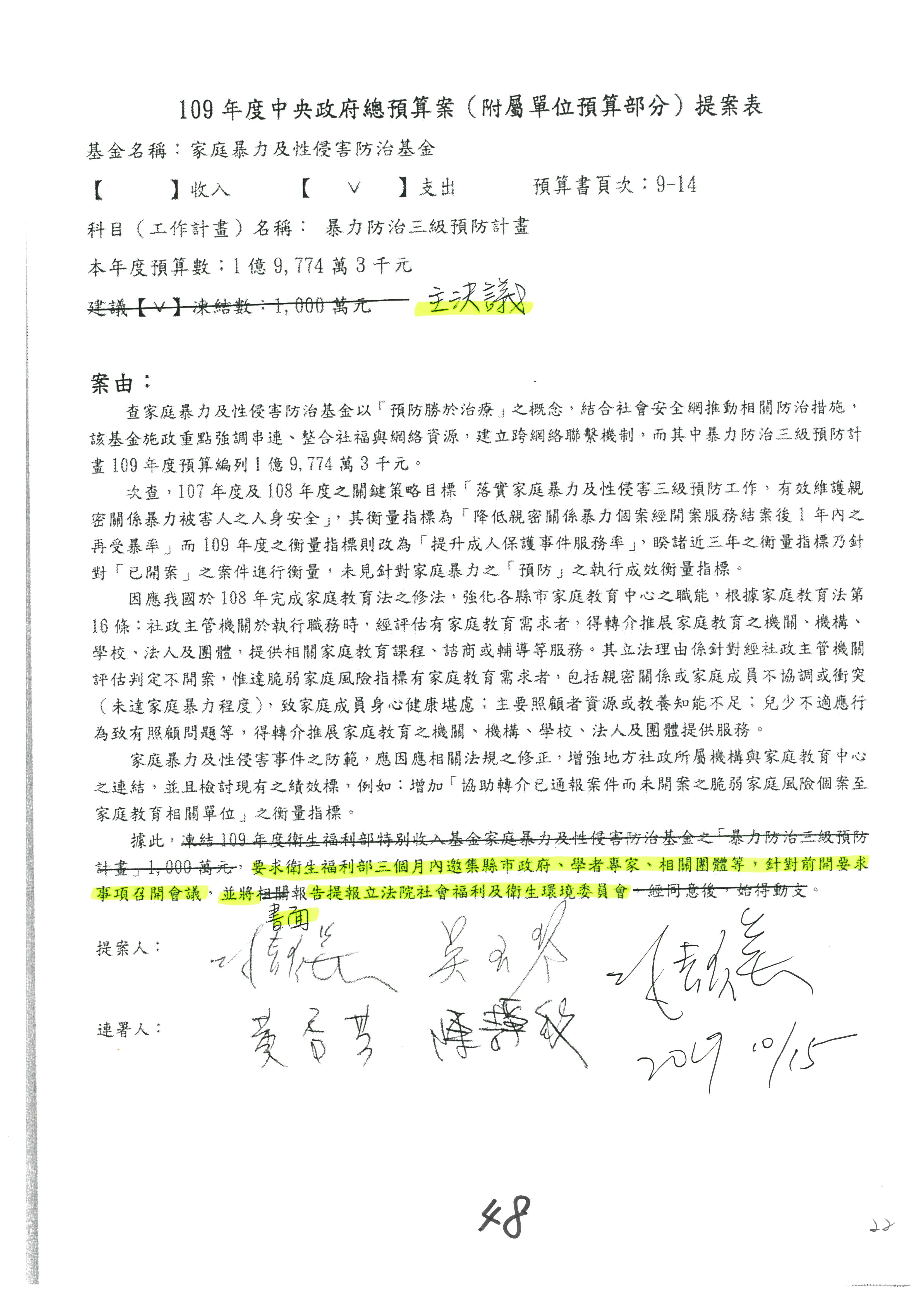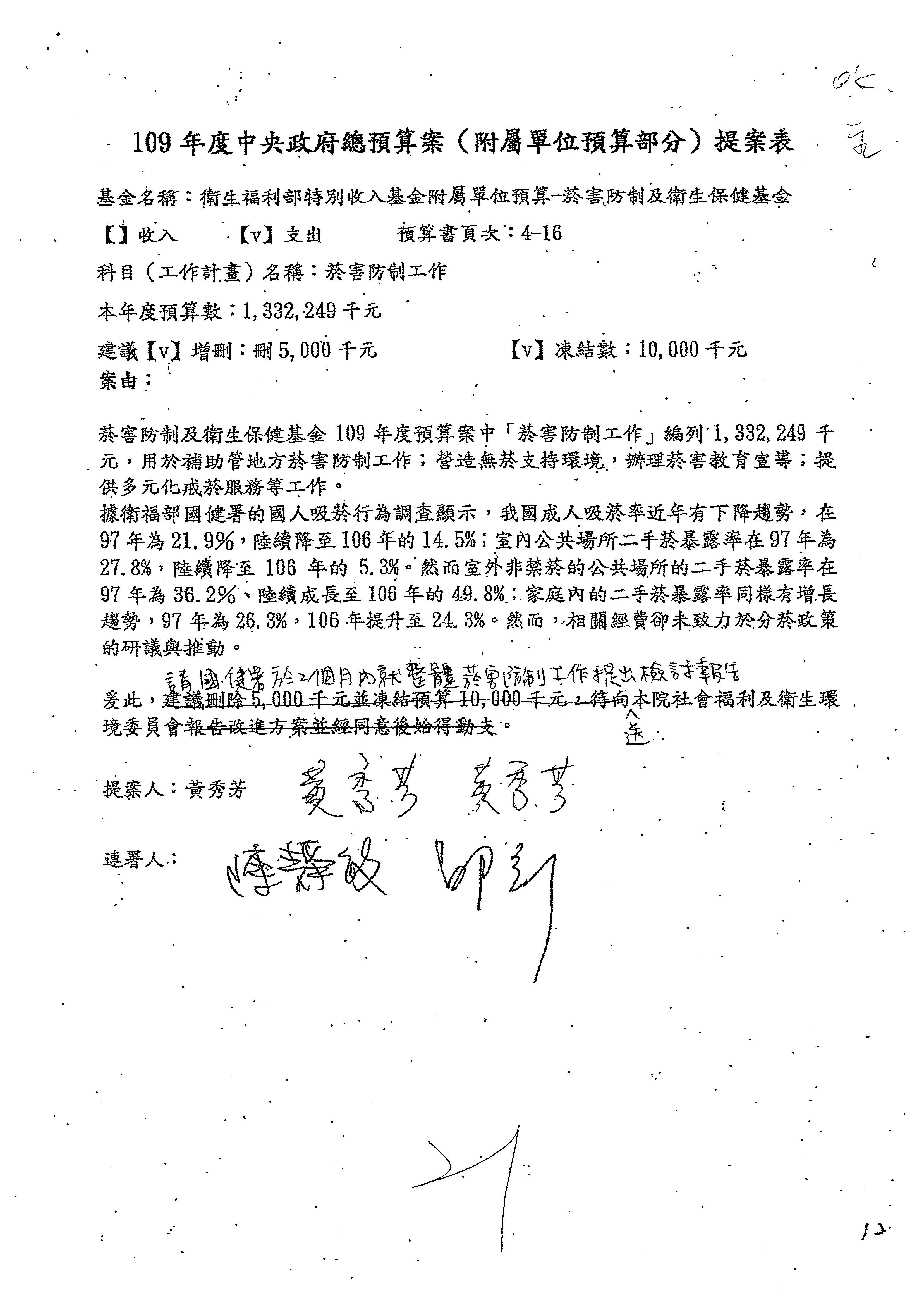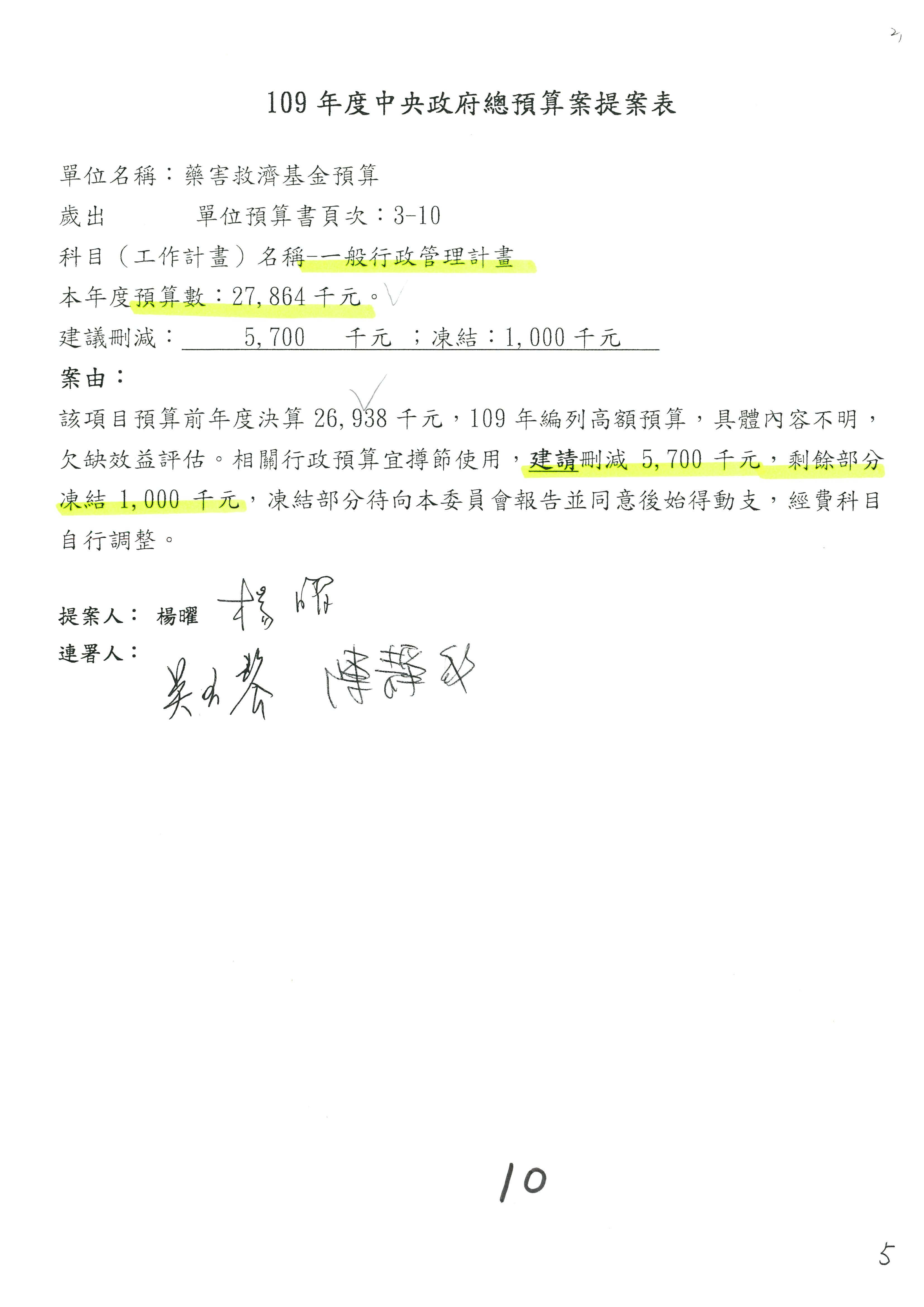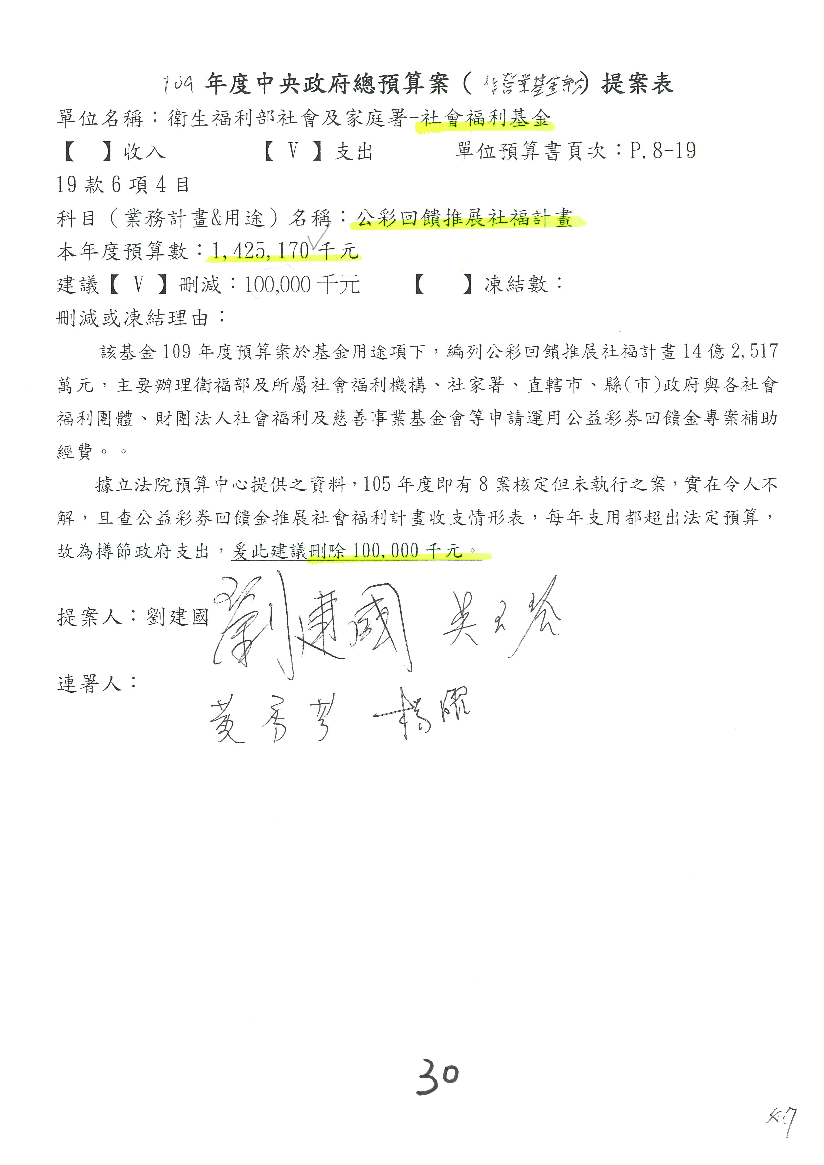 祝司長健芳:陳委員已經簽字,同意減列300萬元、凍結100萬元。