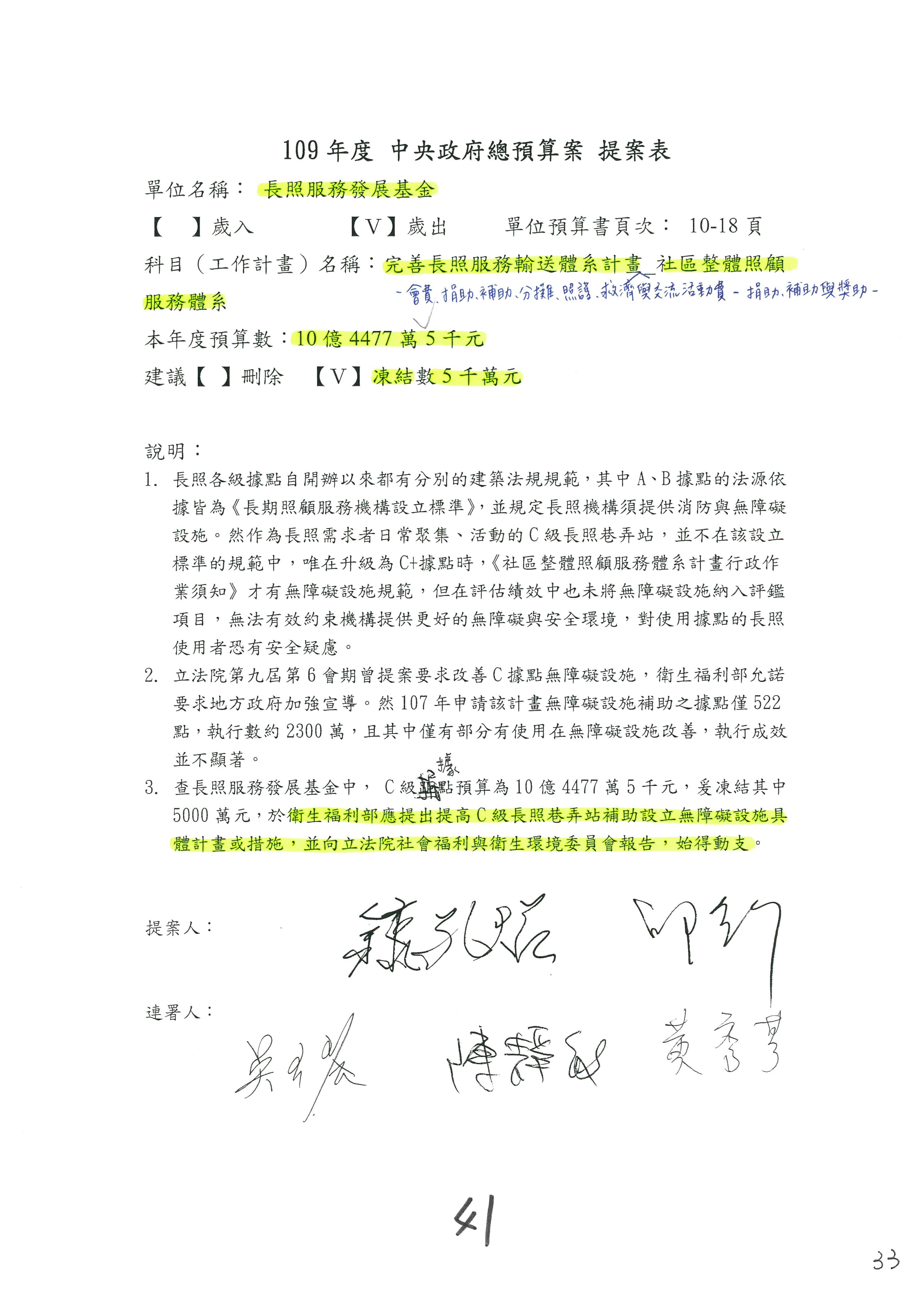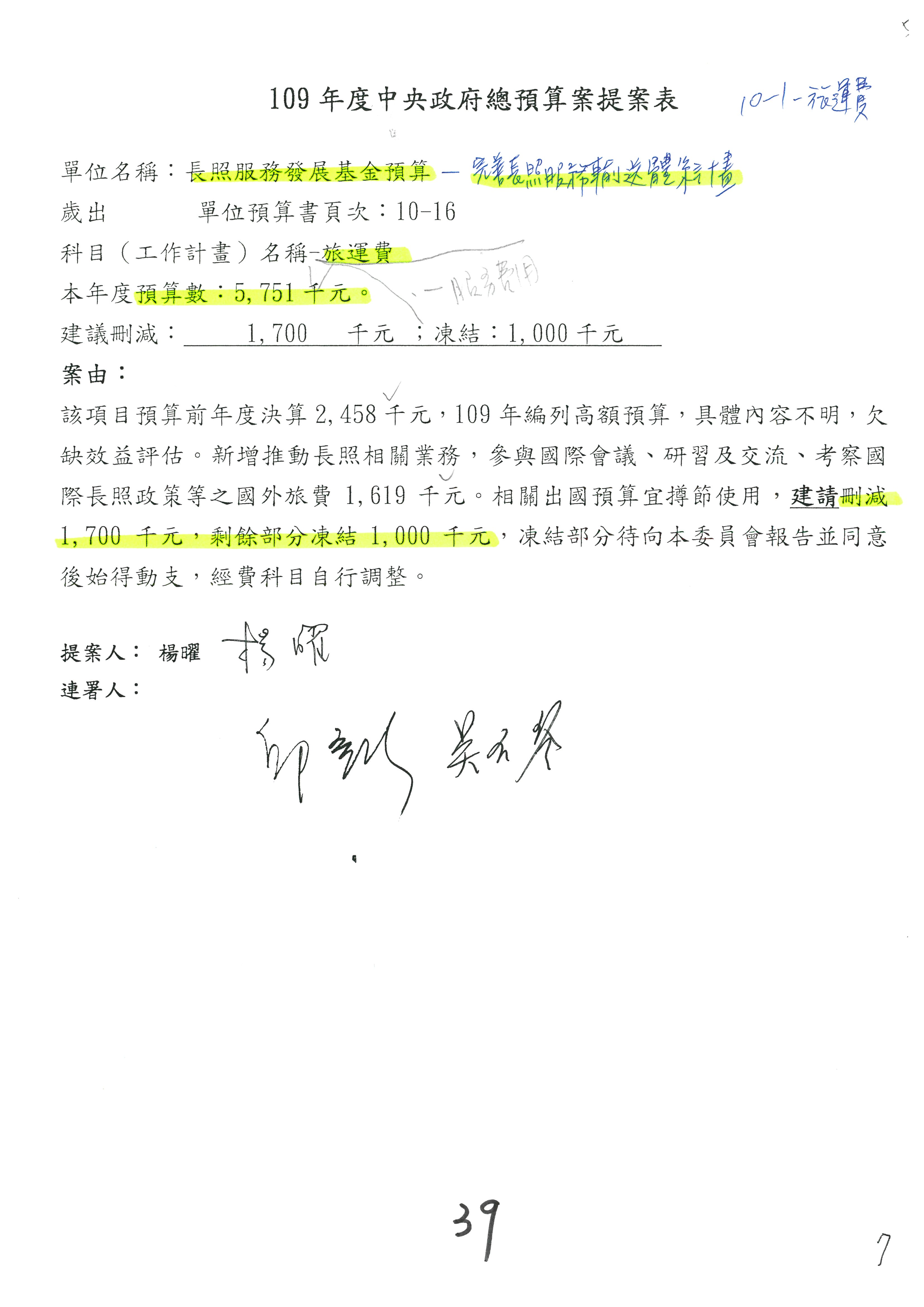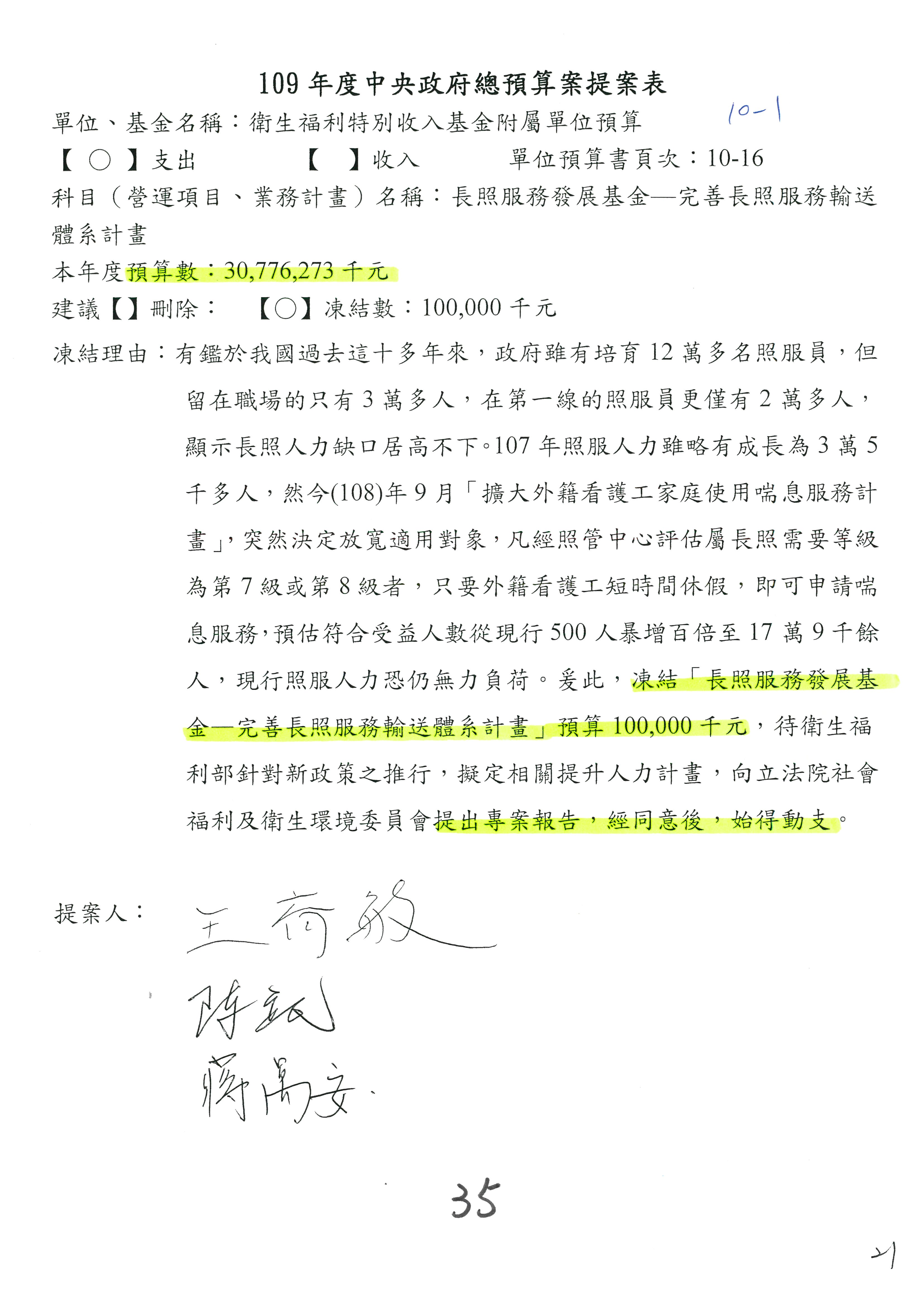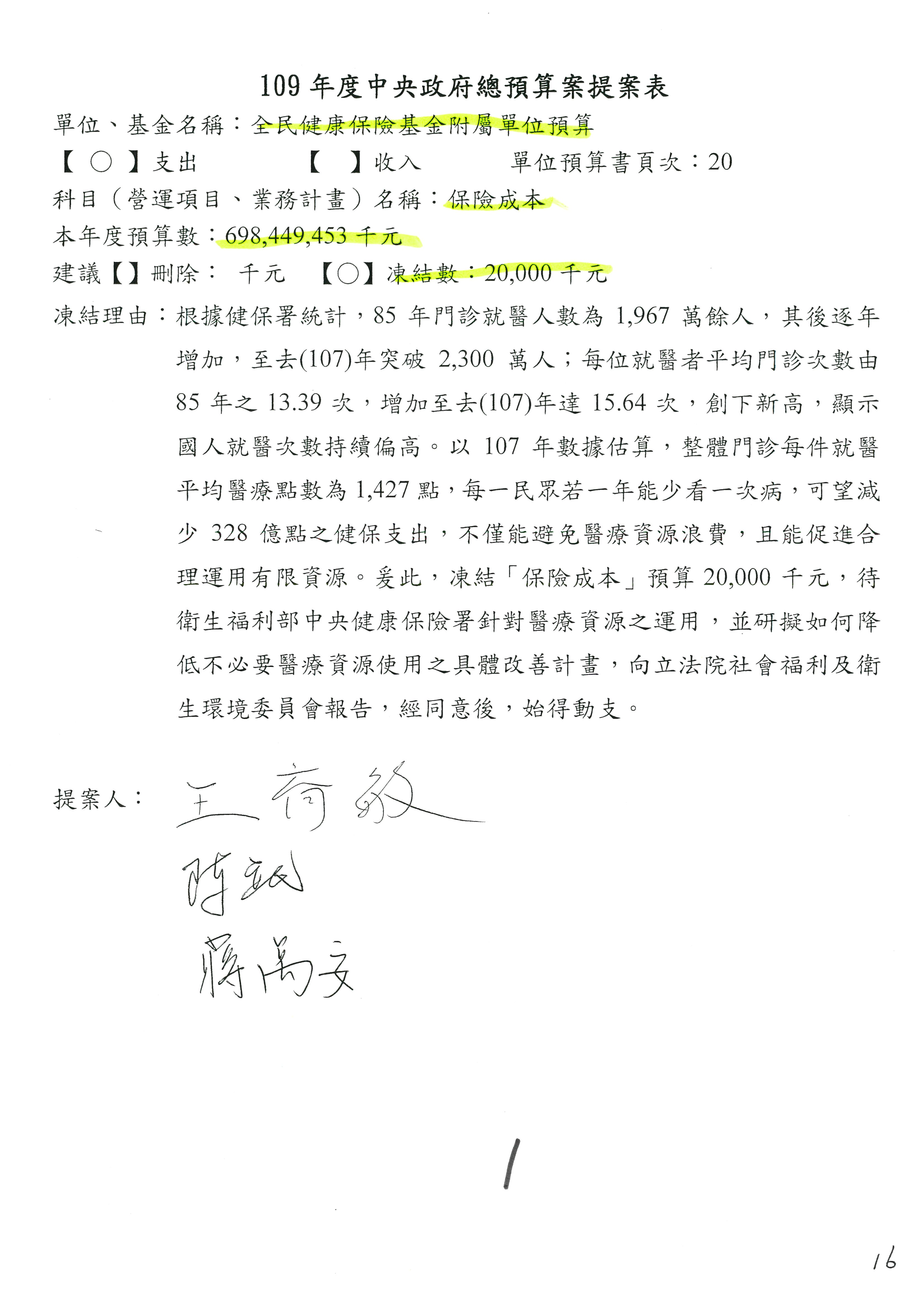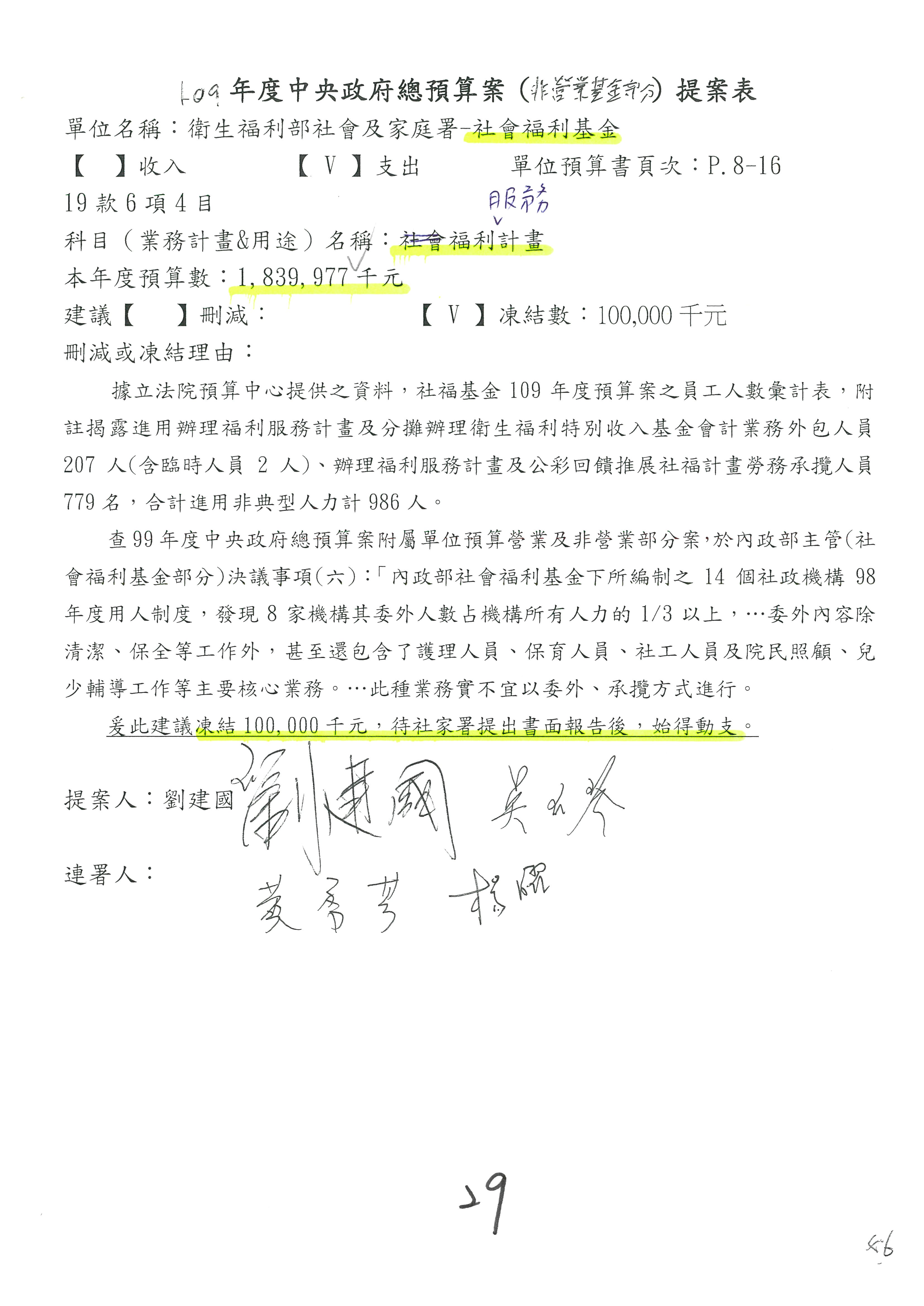 祝司長健芳:陳委員已經簽字,同意減列300萬元、凍結100萬元。
