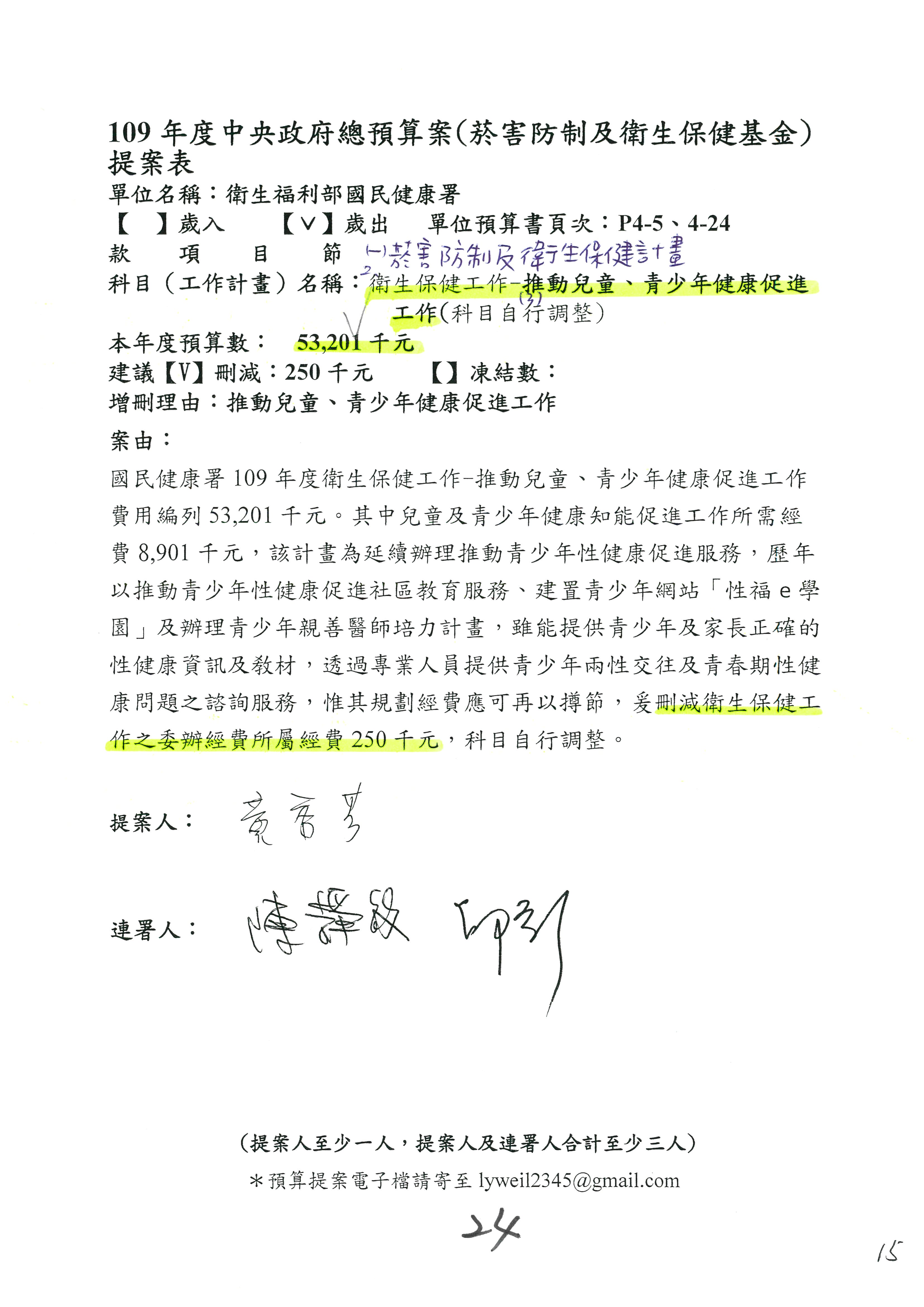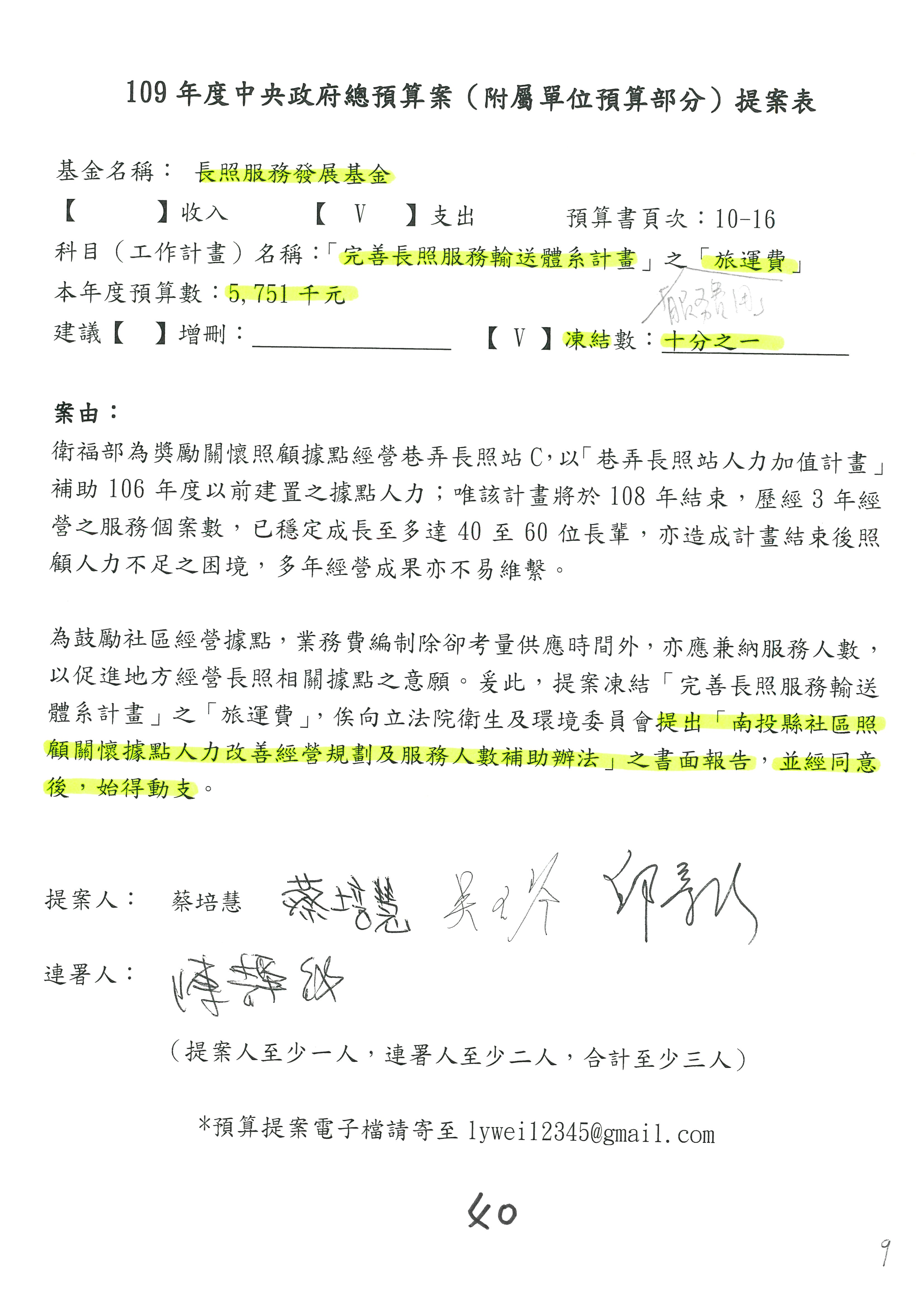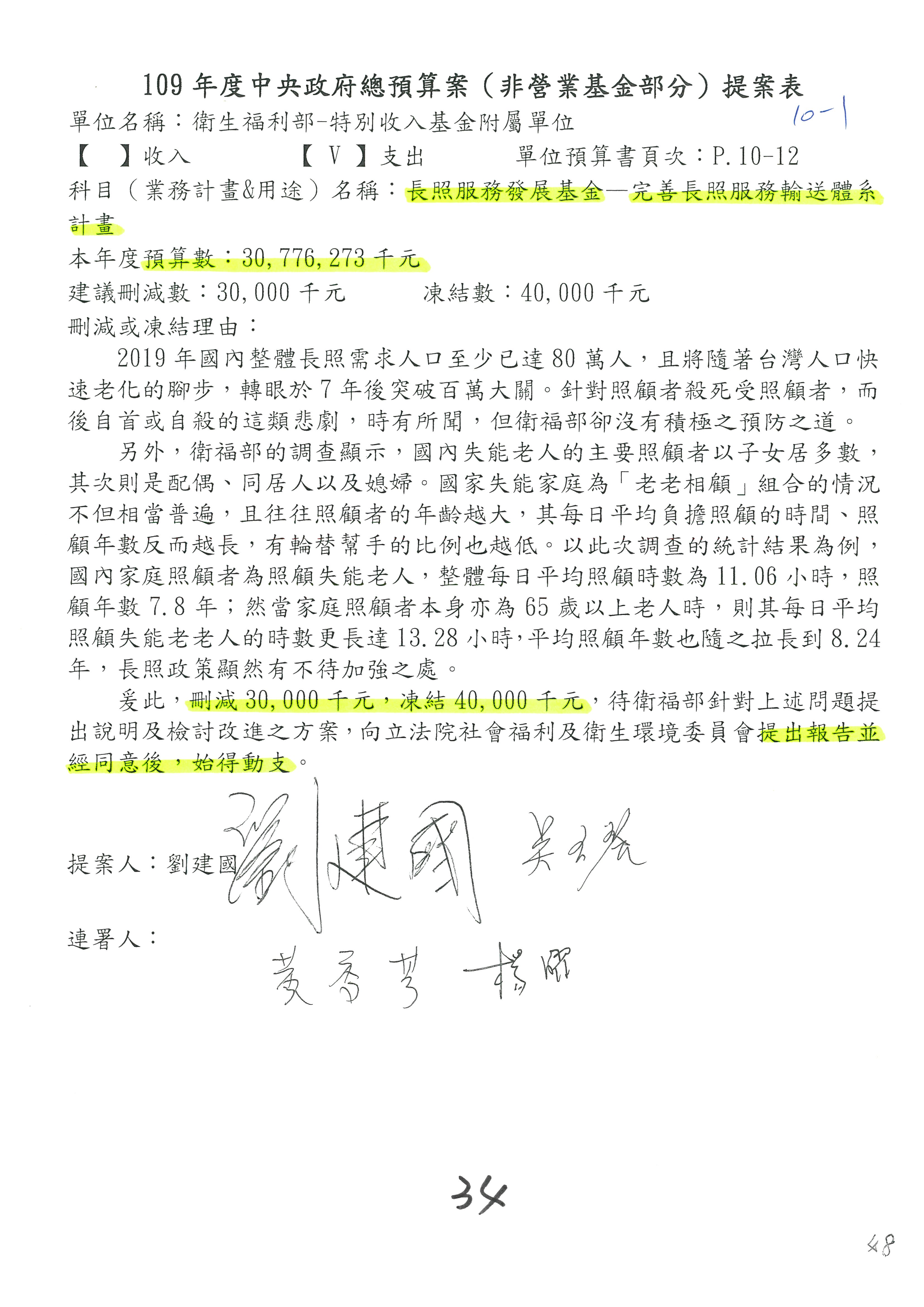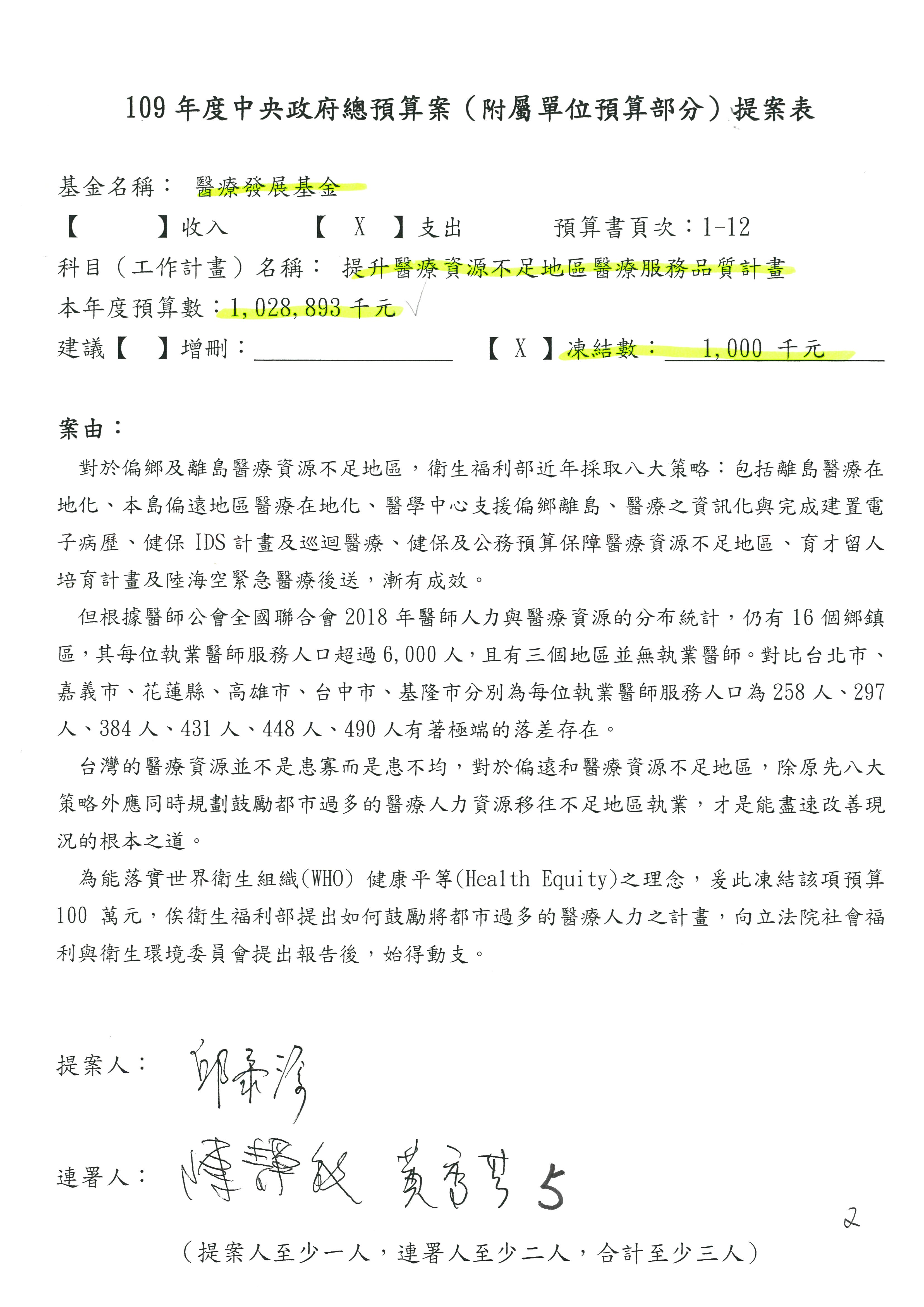 祝司長健芳:陳委員已經簽字,同意減列300萬元、凍結100萬元。