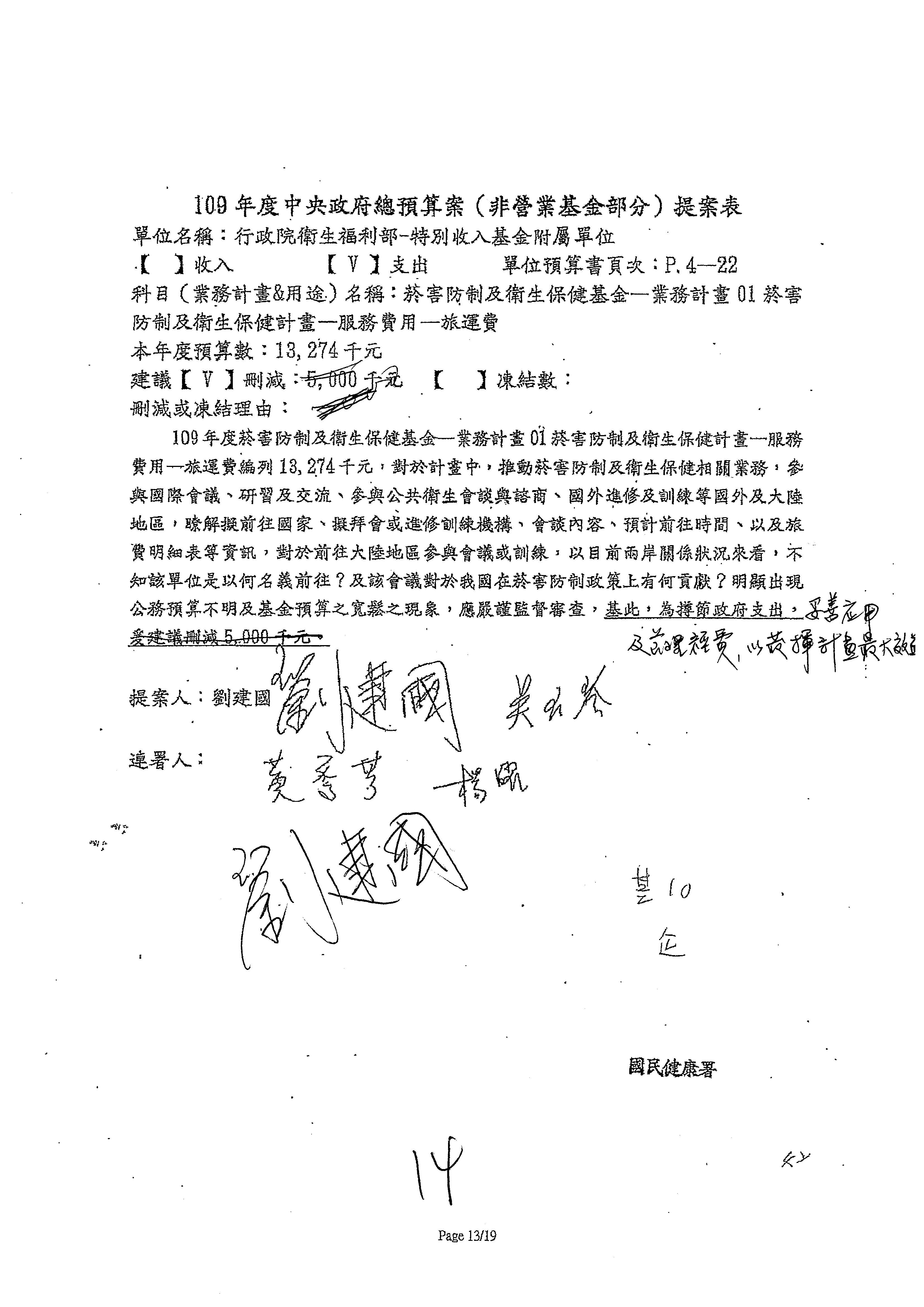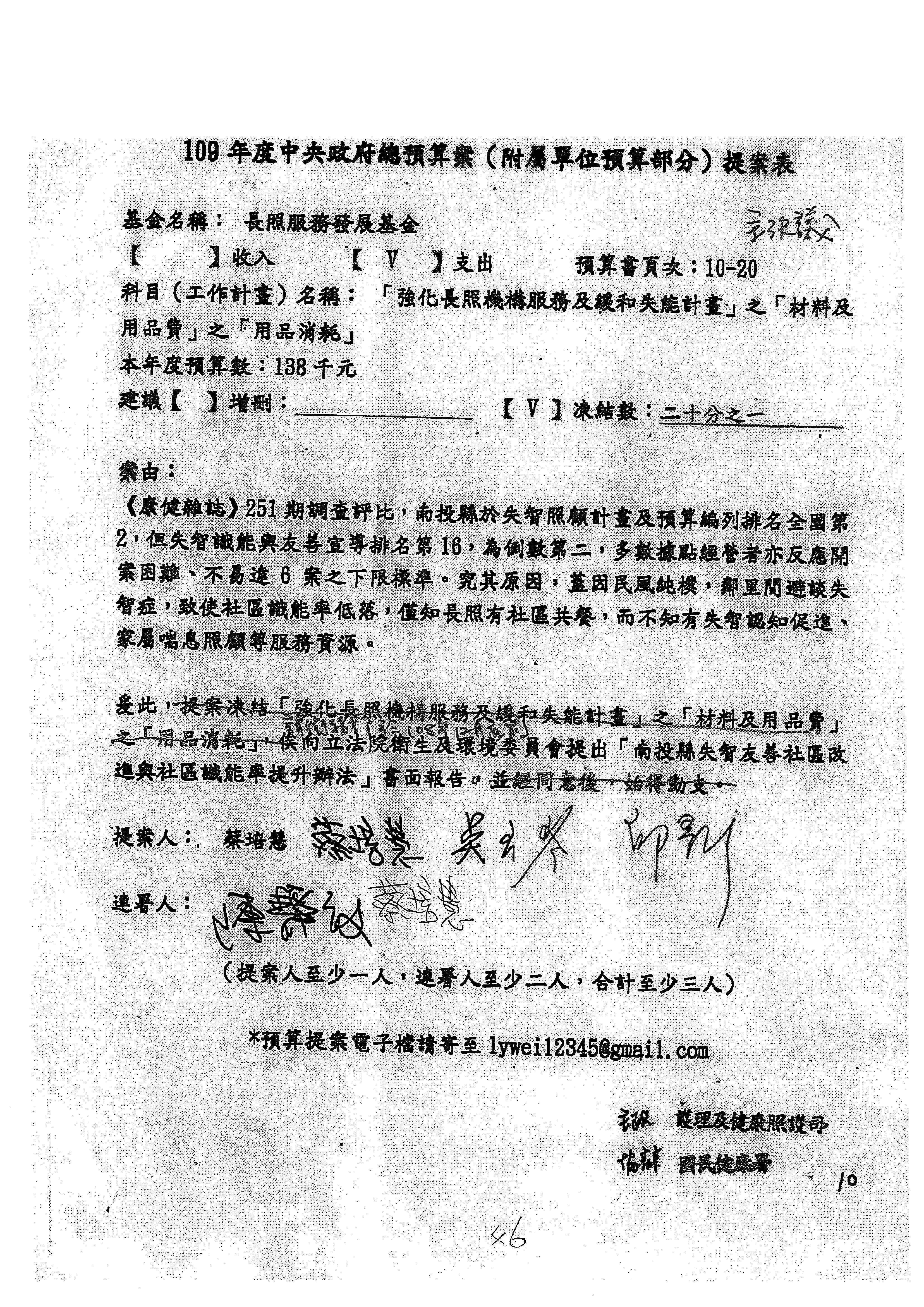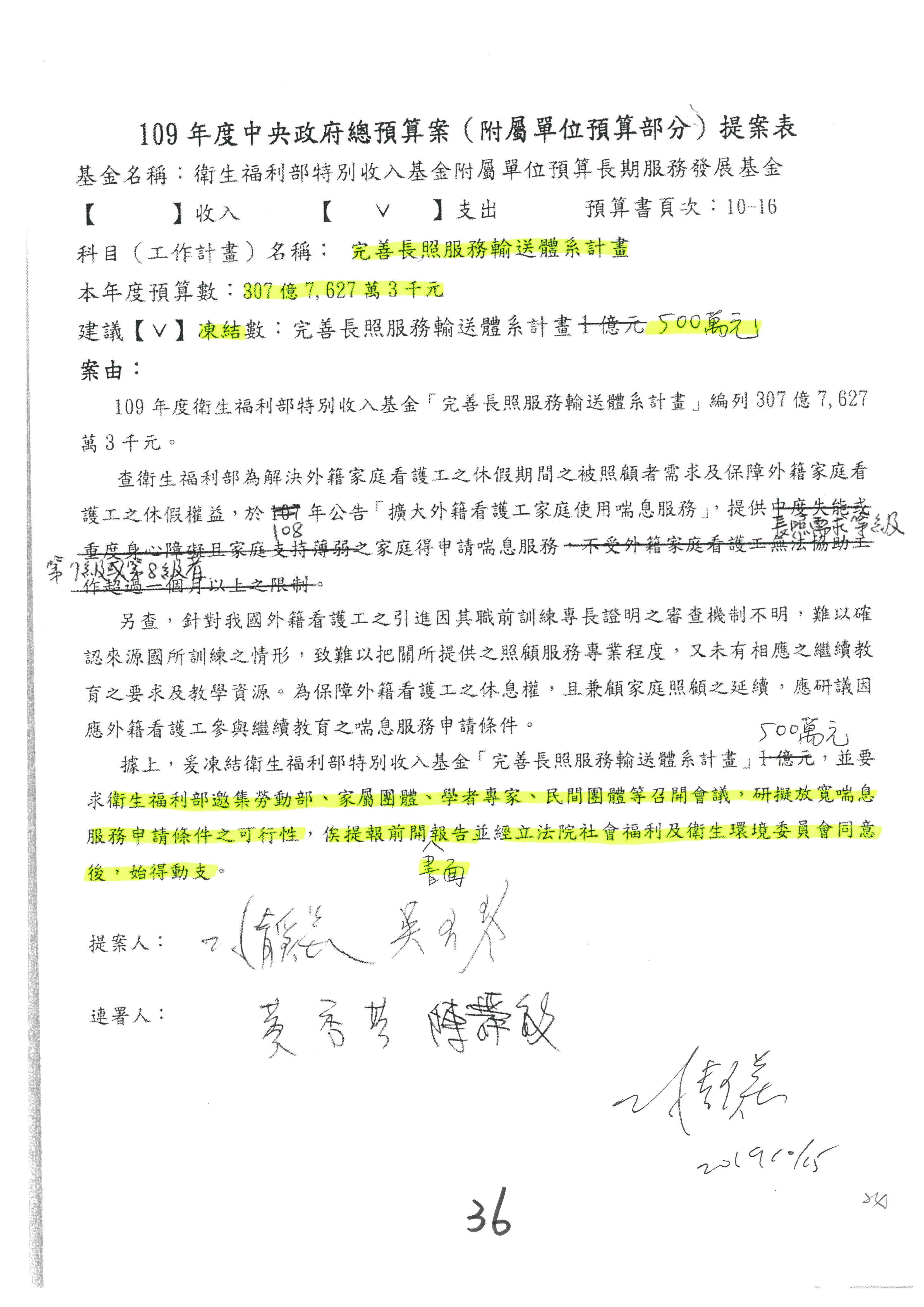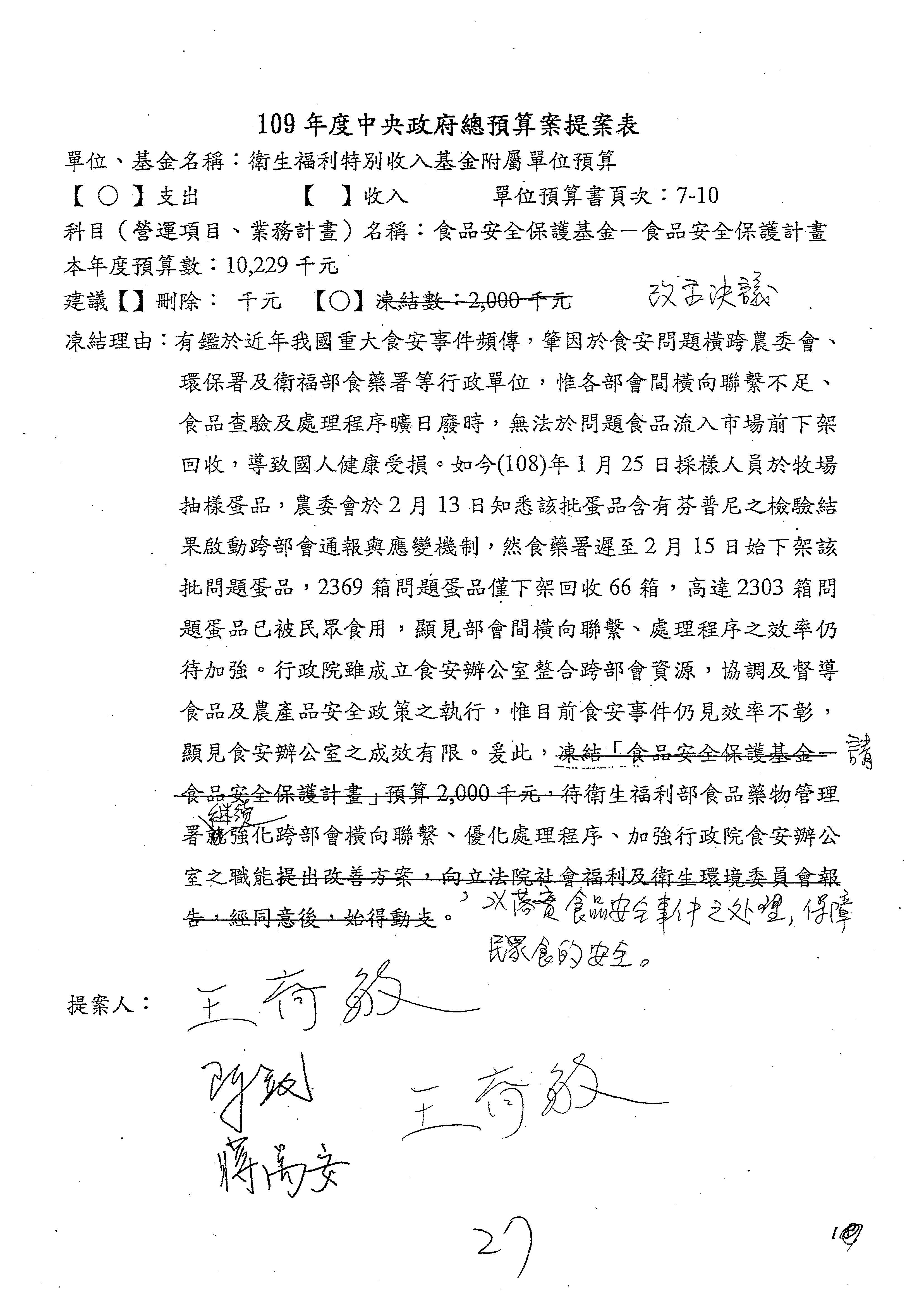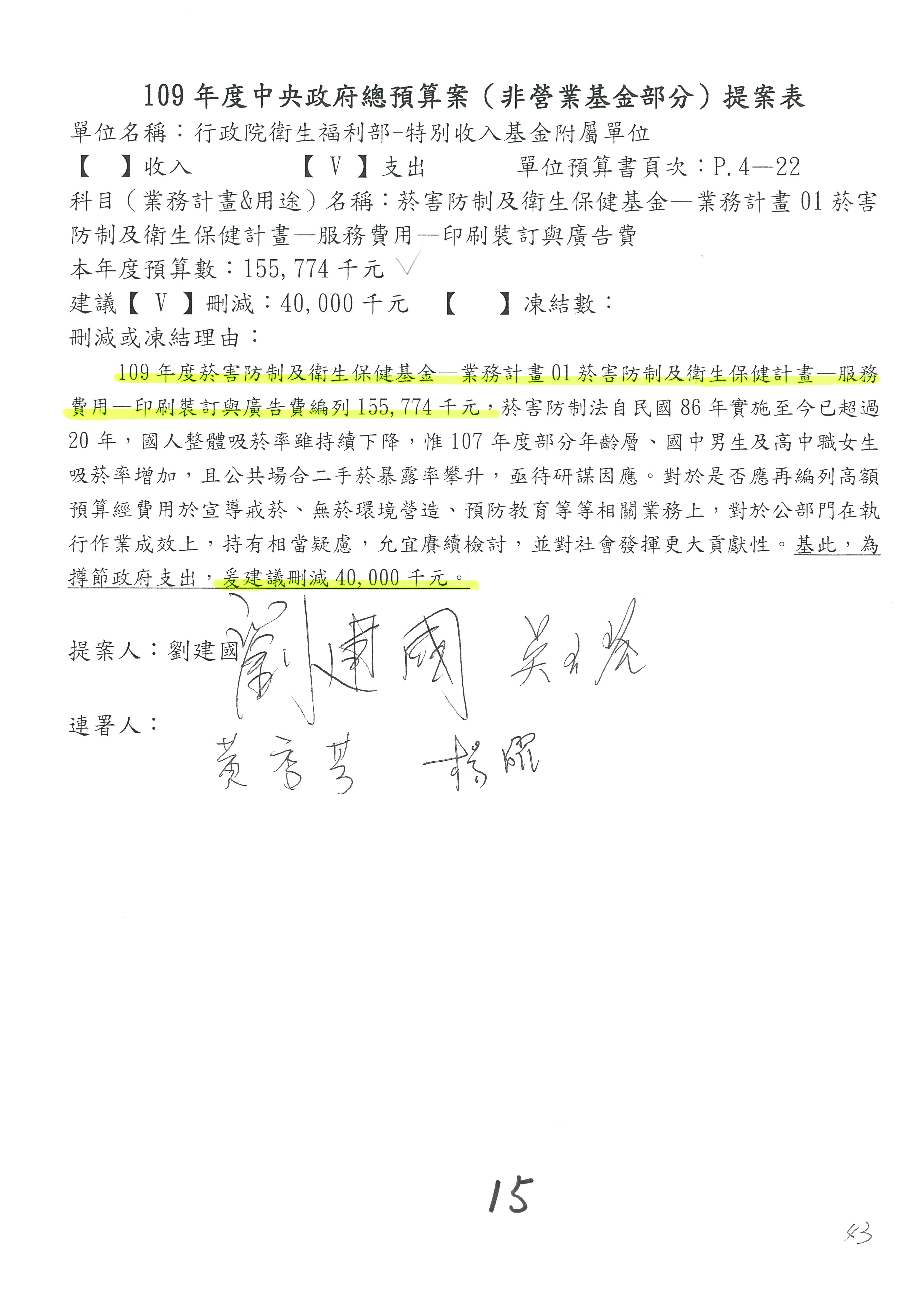 祝司長健芳:陳委員已經簽字,同意減列300萬元、凍結100萬元。