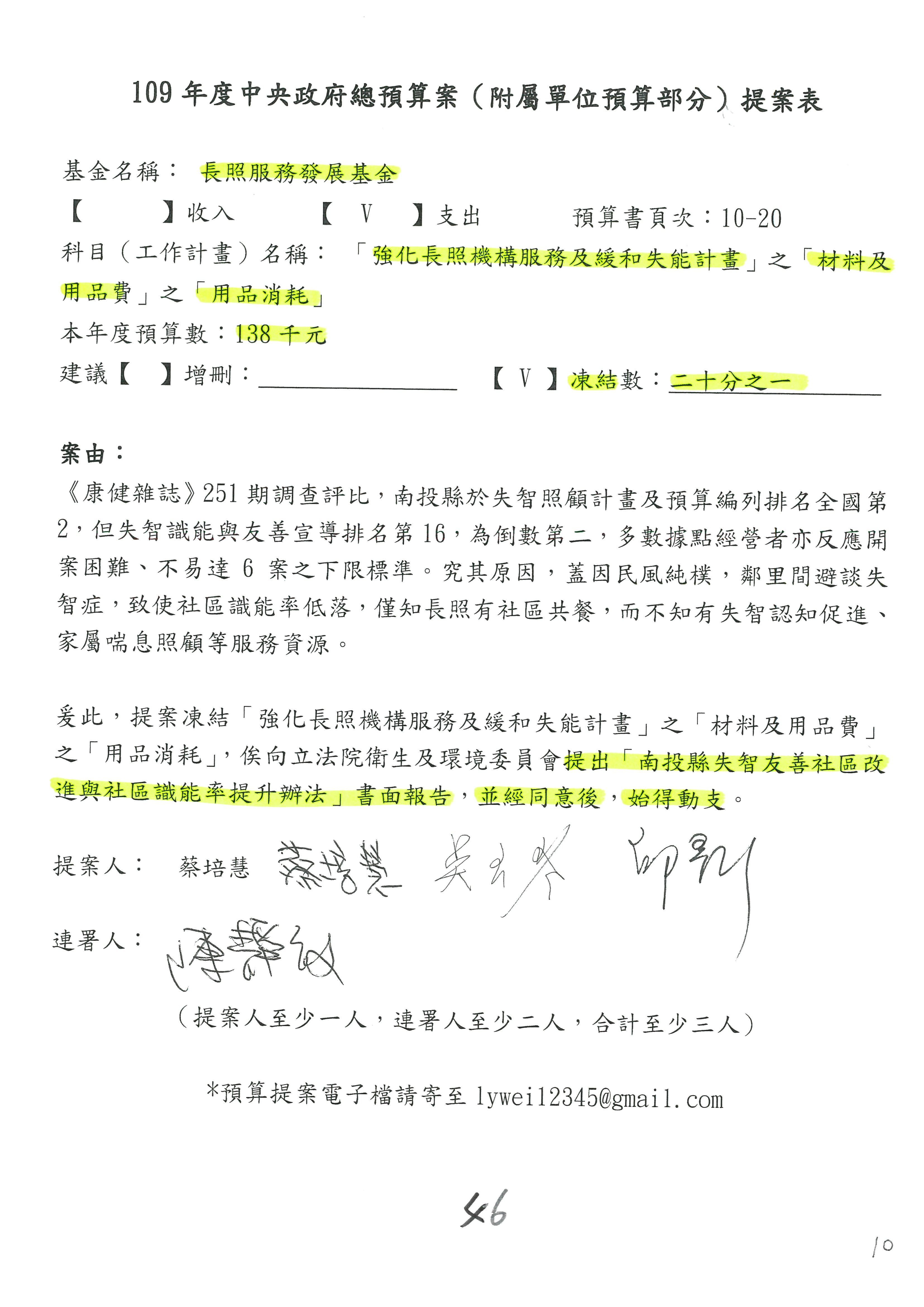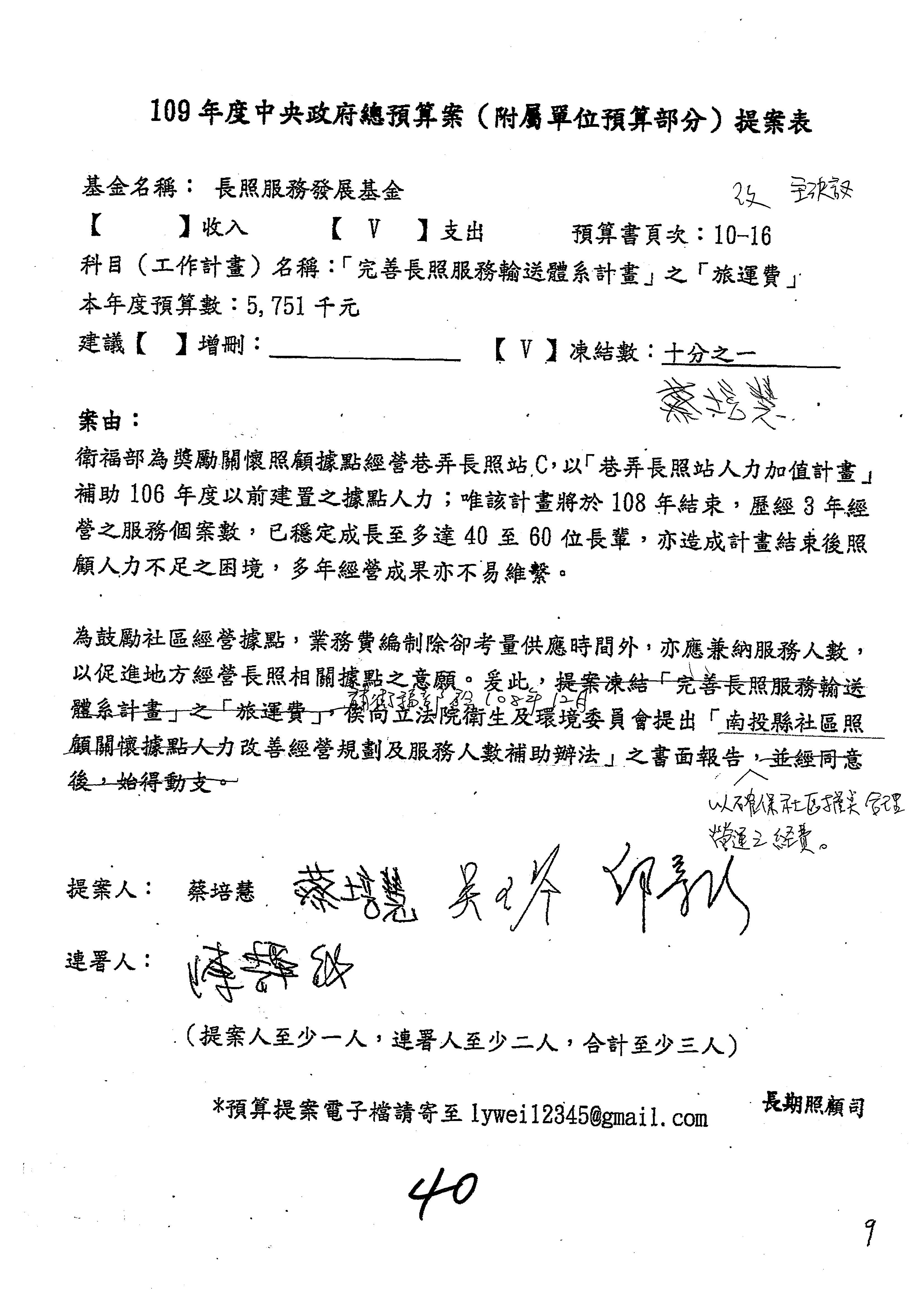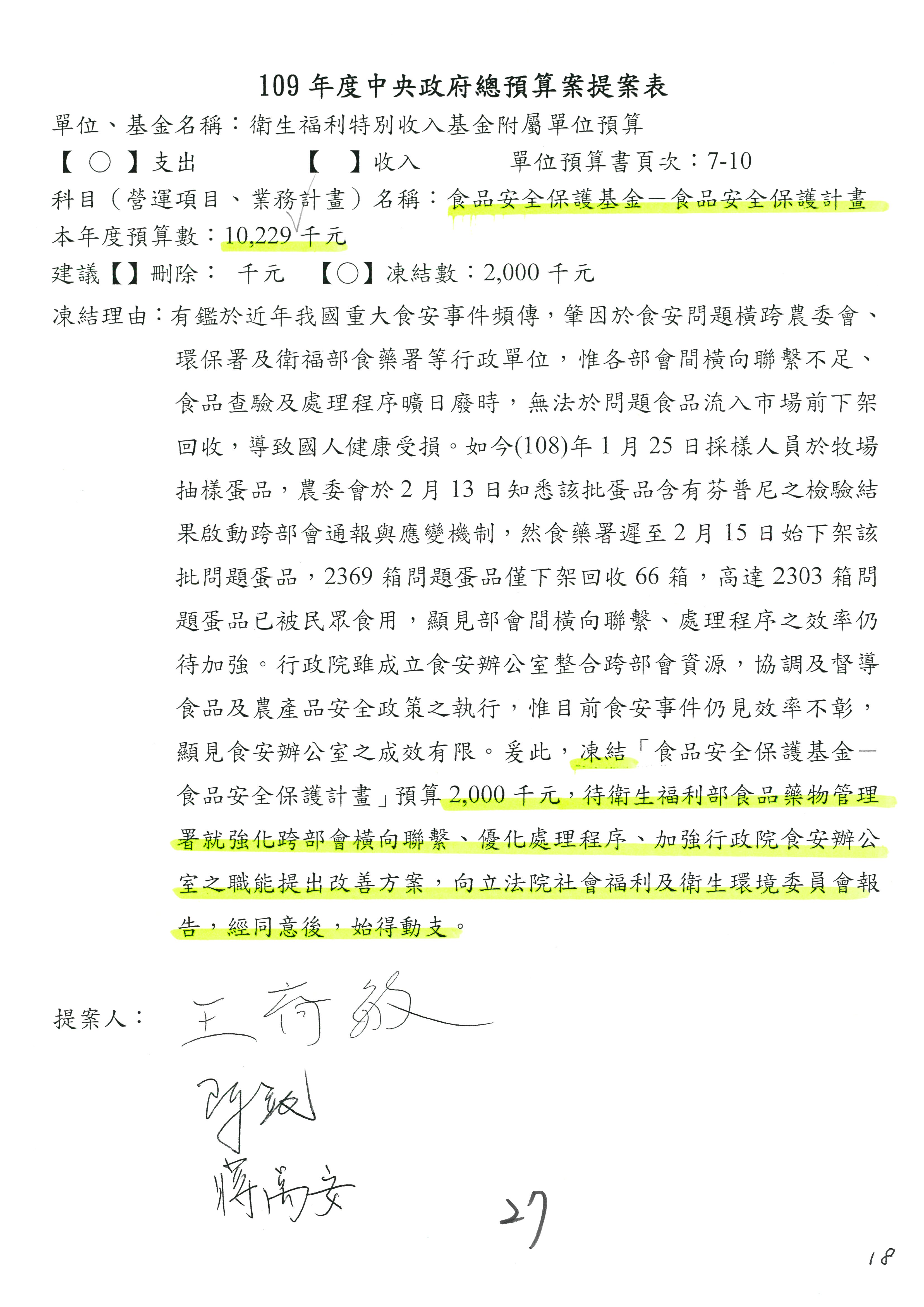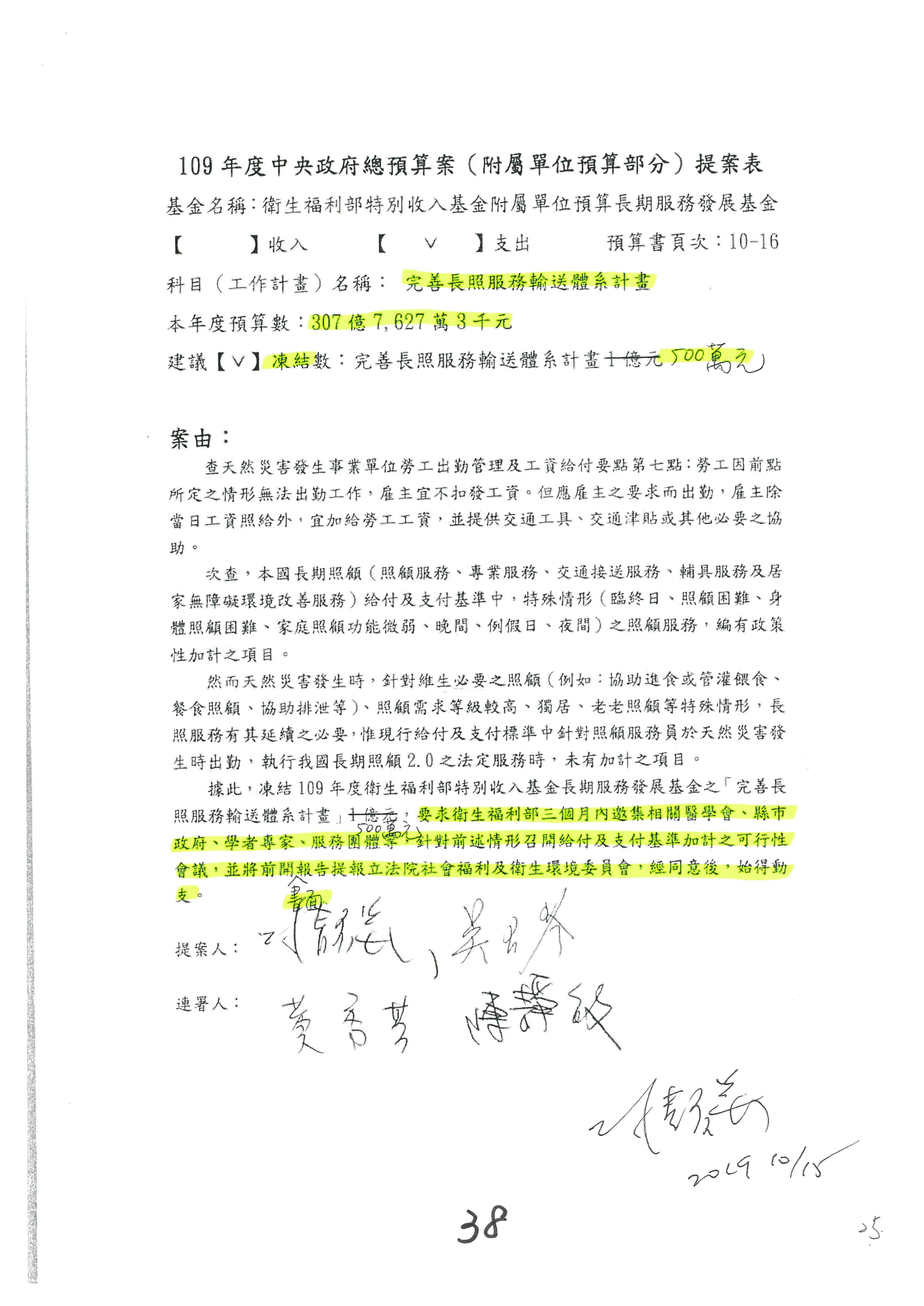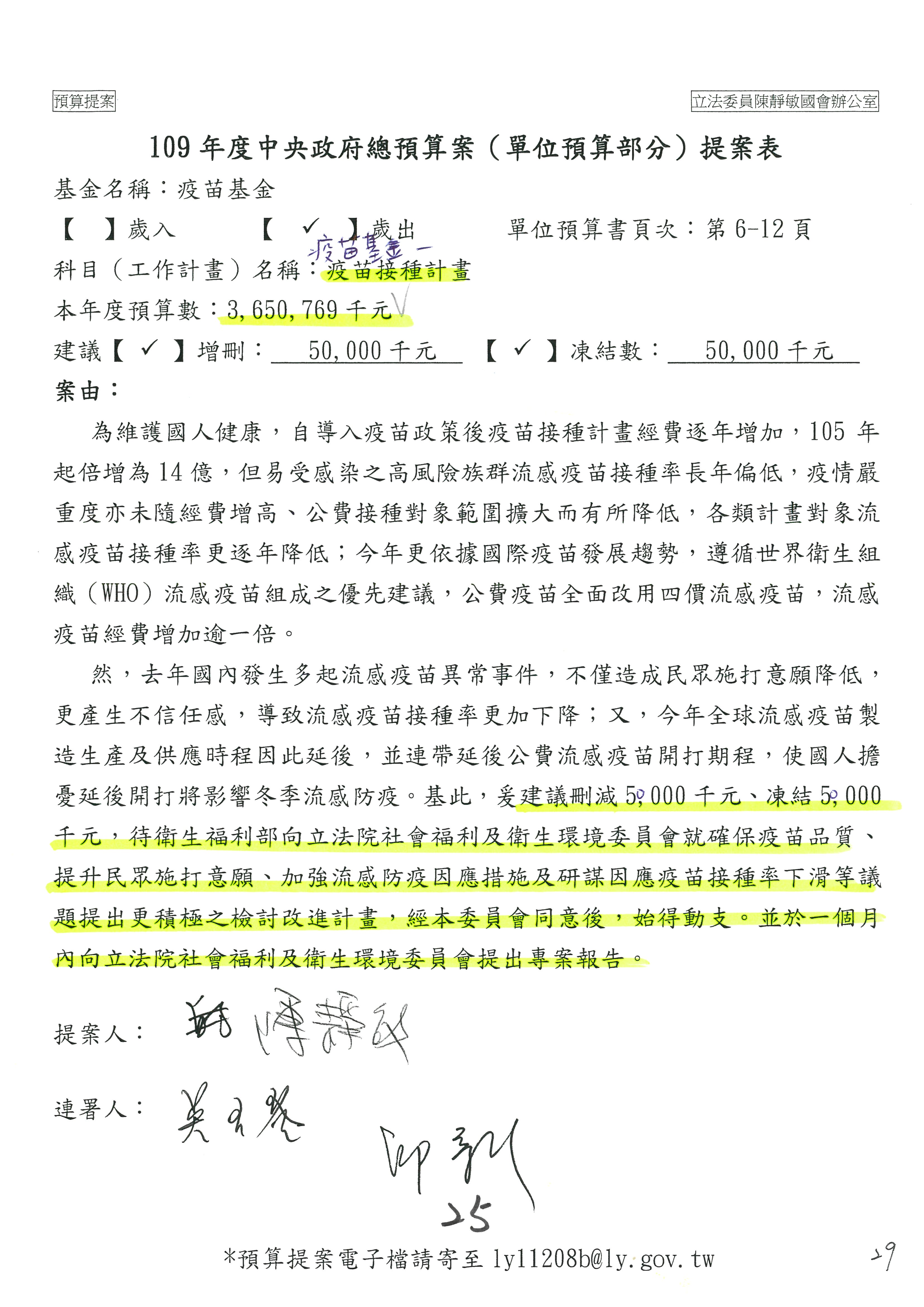 祝司長健芳:陳委員已經簽字,同意減列300萬元、凍結100萬元。