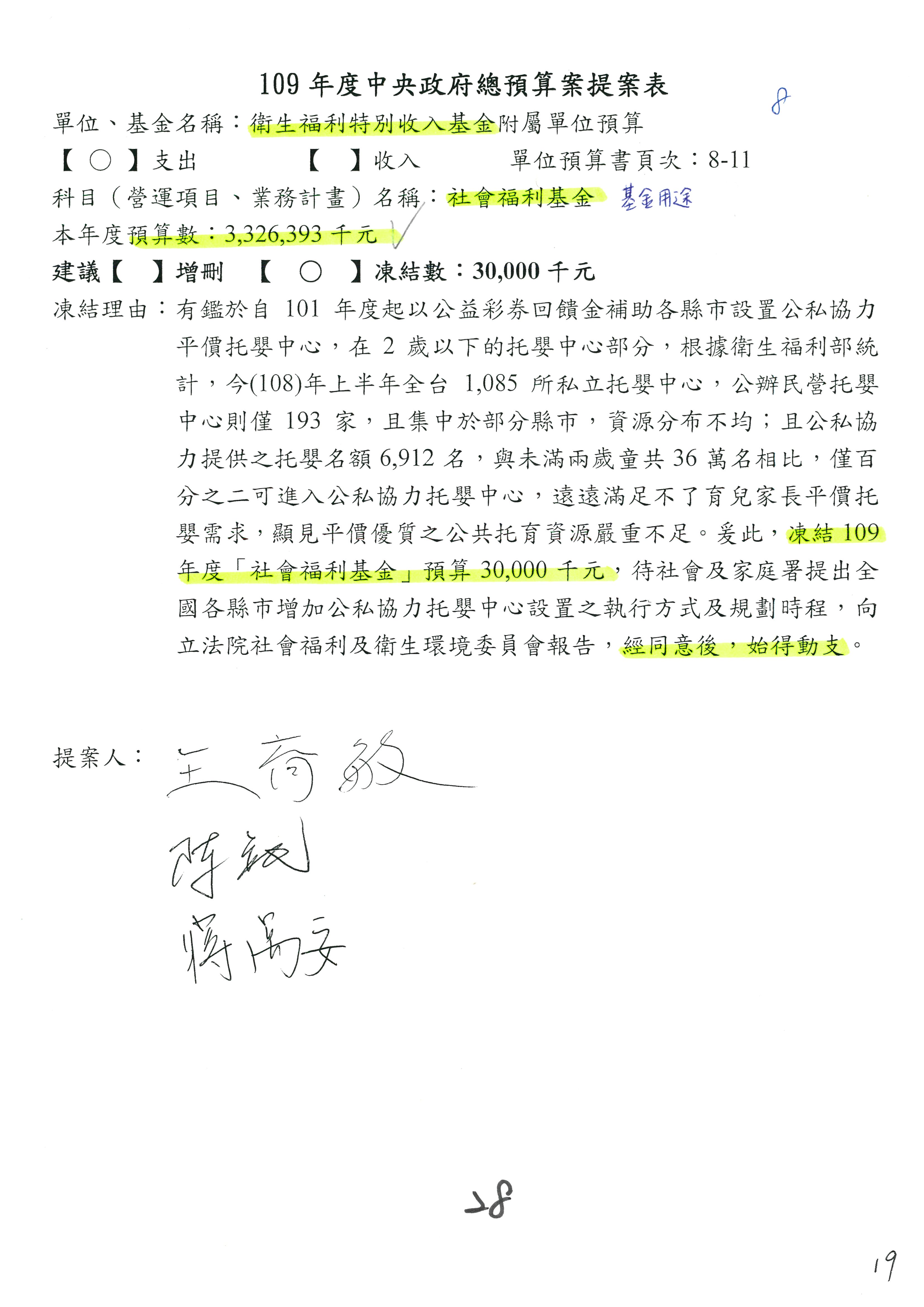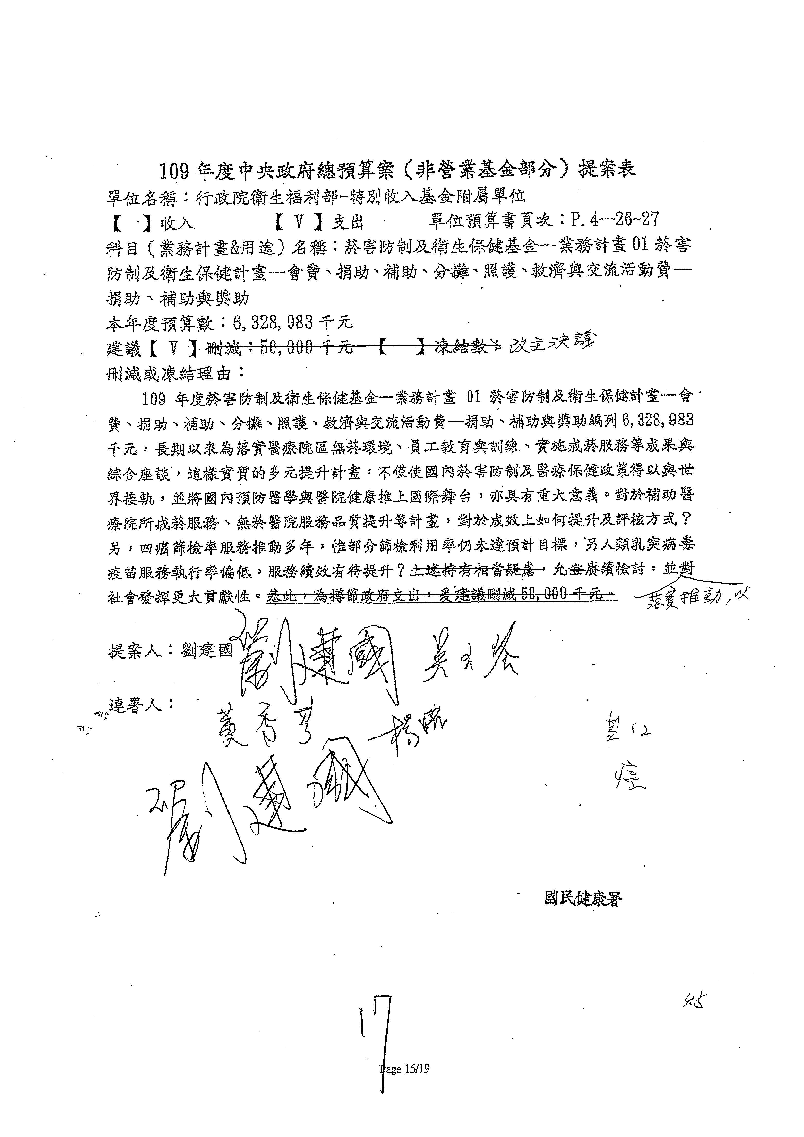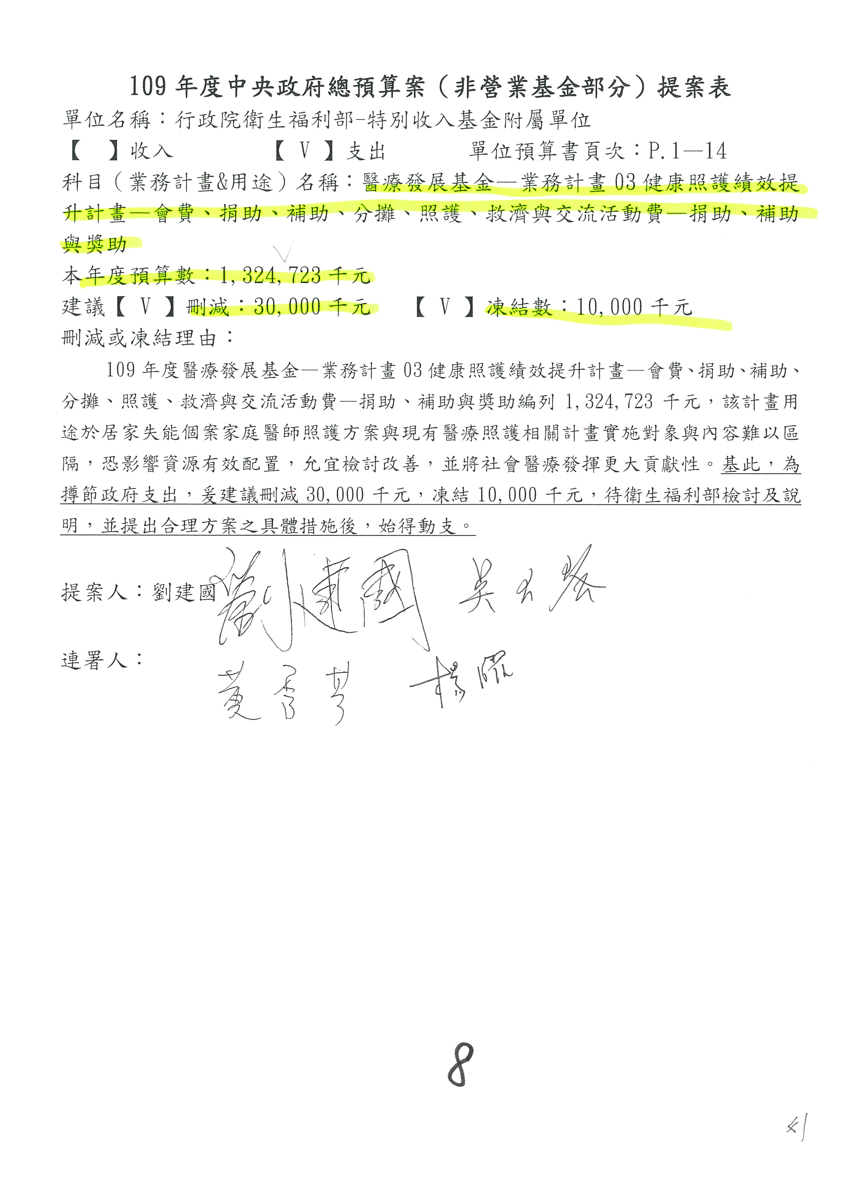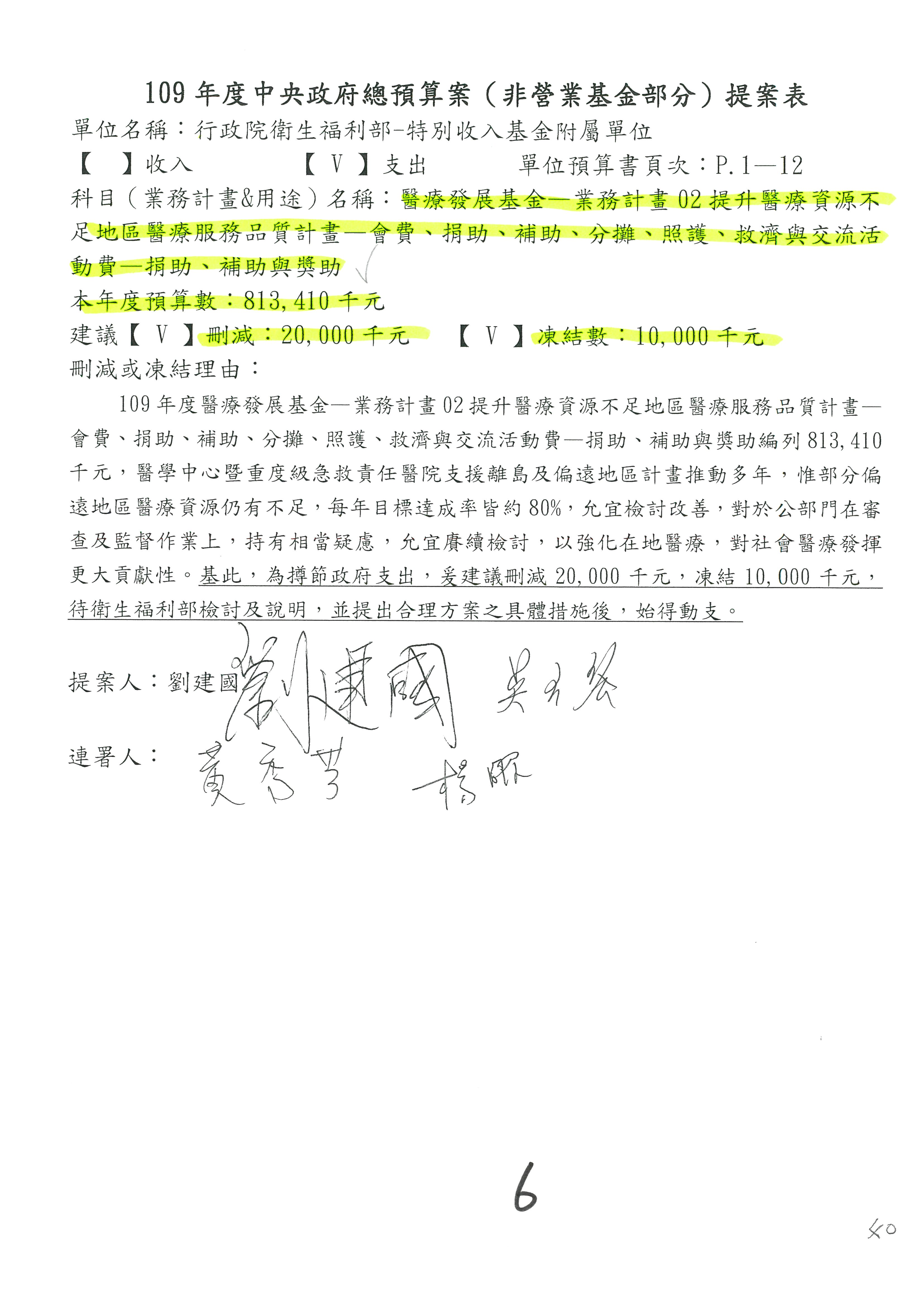 繼續審查中華民國109年度中央政府總預算關於衛生福利部主管預算(基金預算)案