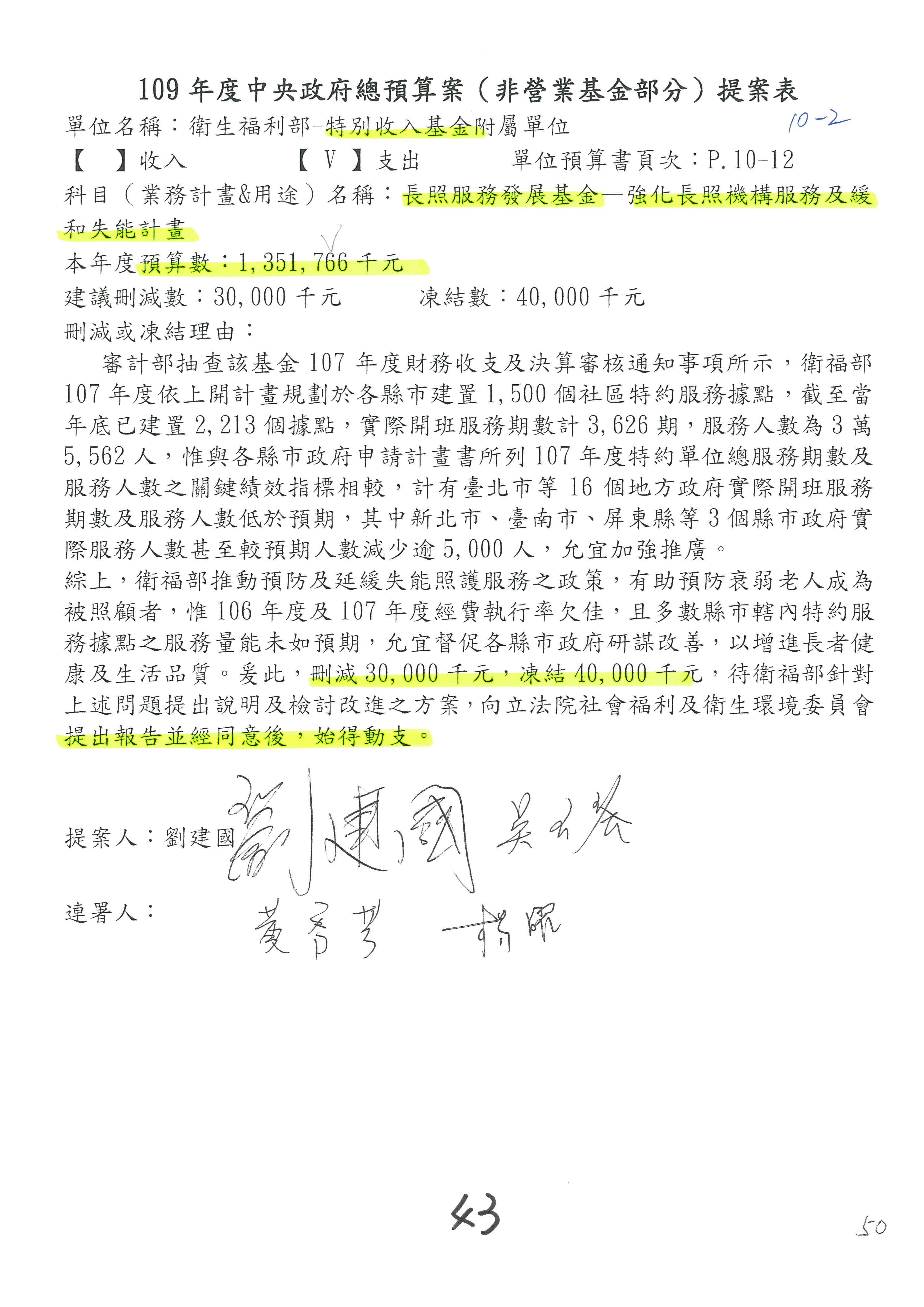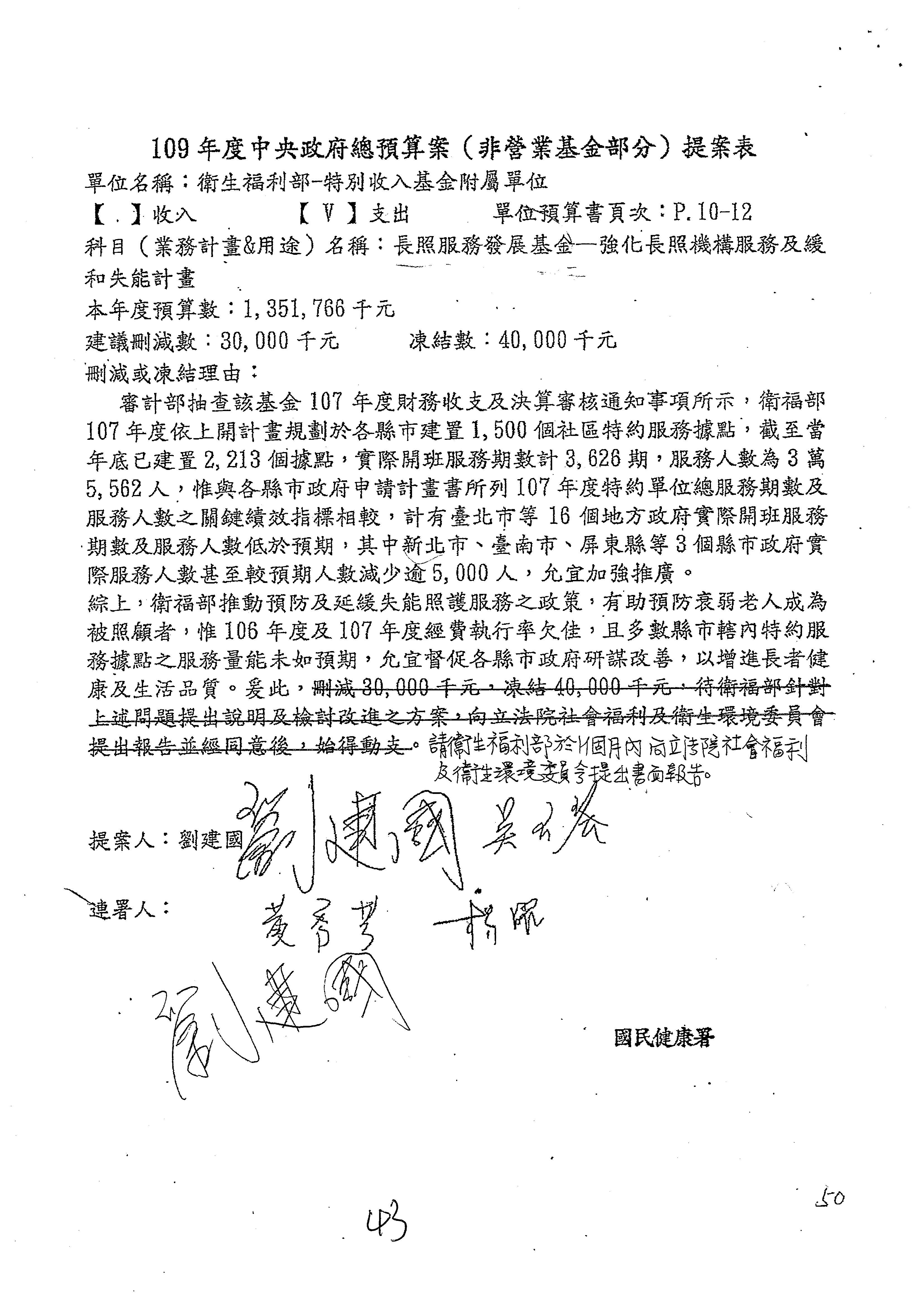 主席:第42案改凍500萬元,通過。非常謝謝劉委員。