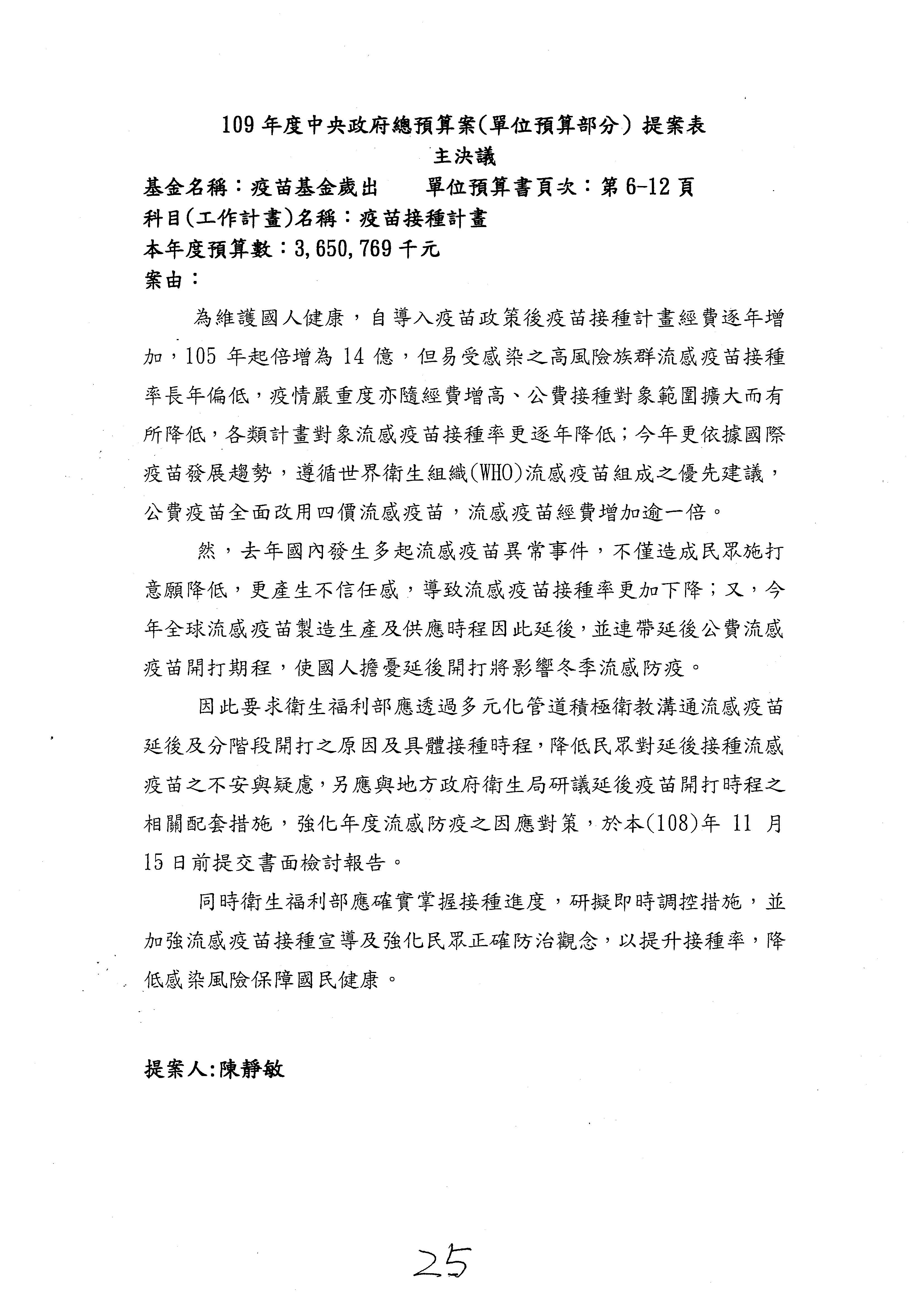 陳部長時中:跟委員報告,前一段時間已經清楚的分組,任務也已經訂出來,組織的建議也出來了,接下來就是實際去執行相關的任務。