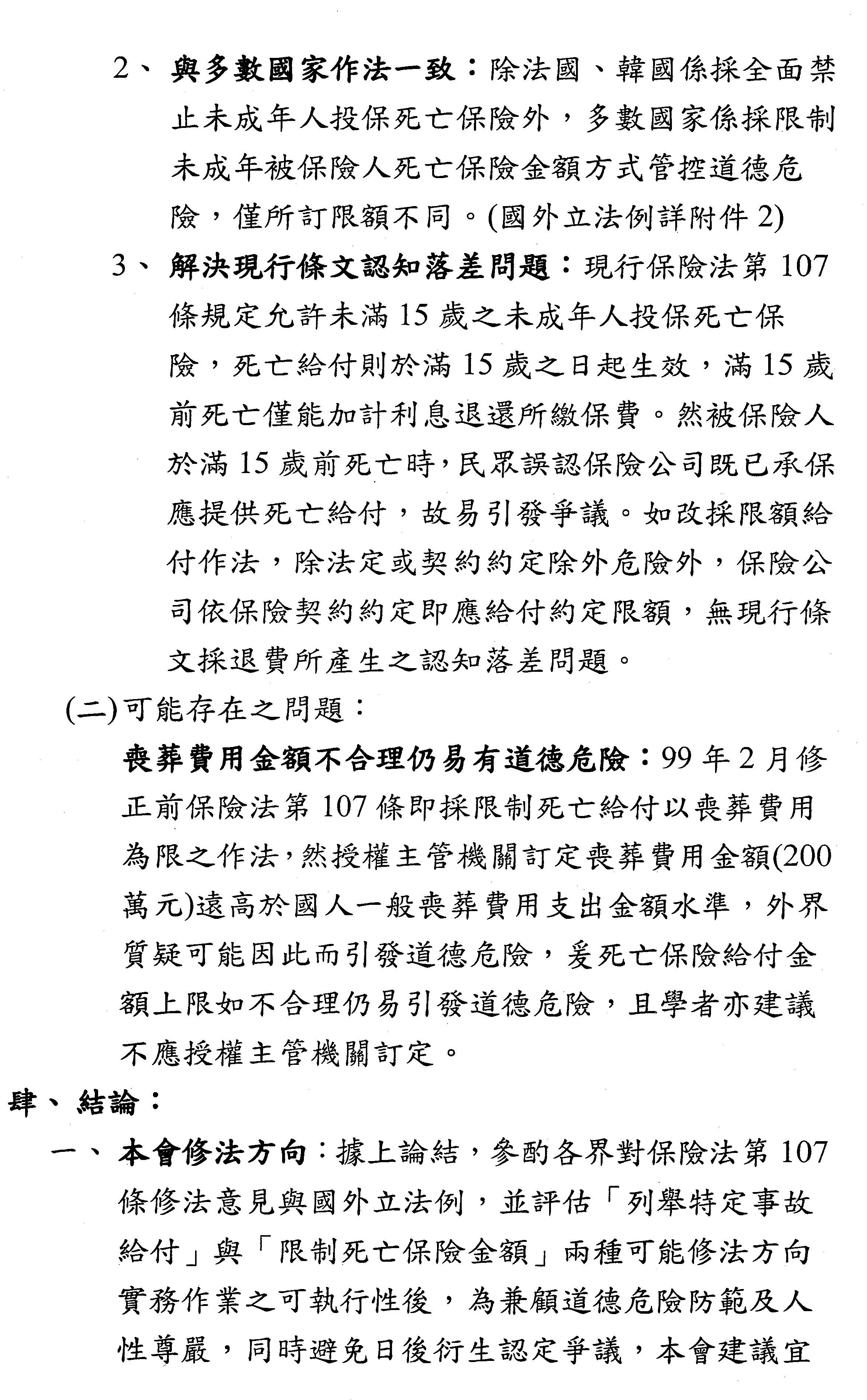(三)有關開放同性配偶實施人工生殖部分:「人工生殖法」之受術對象涉及醫學倫理、兒童權益、同性平權及婦女權益等面向,社會輿論有正反不同意見,衛福部已分別於本年7月、8月及9月分別召開醫學倫理、兒童權益及同性平權之專家諮詢會議,後續將再進行宗教文化層面之專家諮詢會議,並辦理相關修法評估與具體配套措施之研議,同時持續蒐集各方意見及國際作法,依我國民情、社會期待、兒童身心發展等綜合評估,尋求社會最大共識。