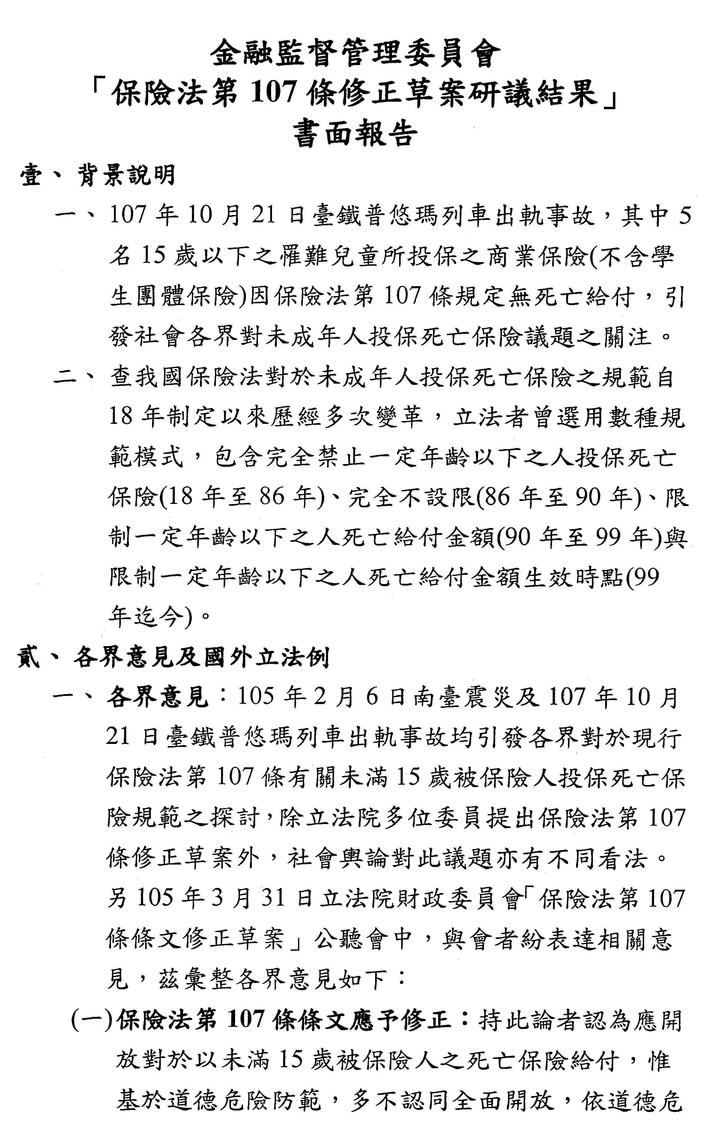 (立法院函 中華民國108年11月5日臺立院議字第1080703481號 施政報告質詢18號)