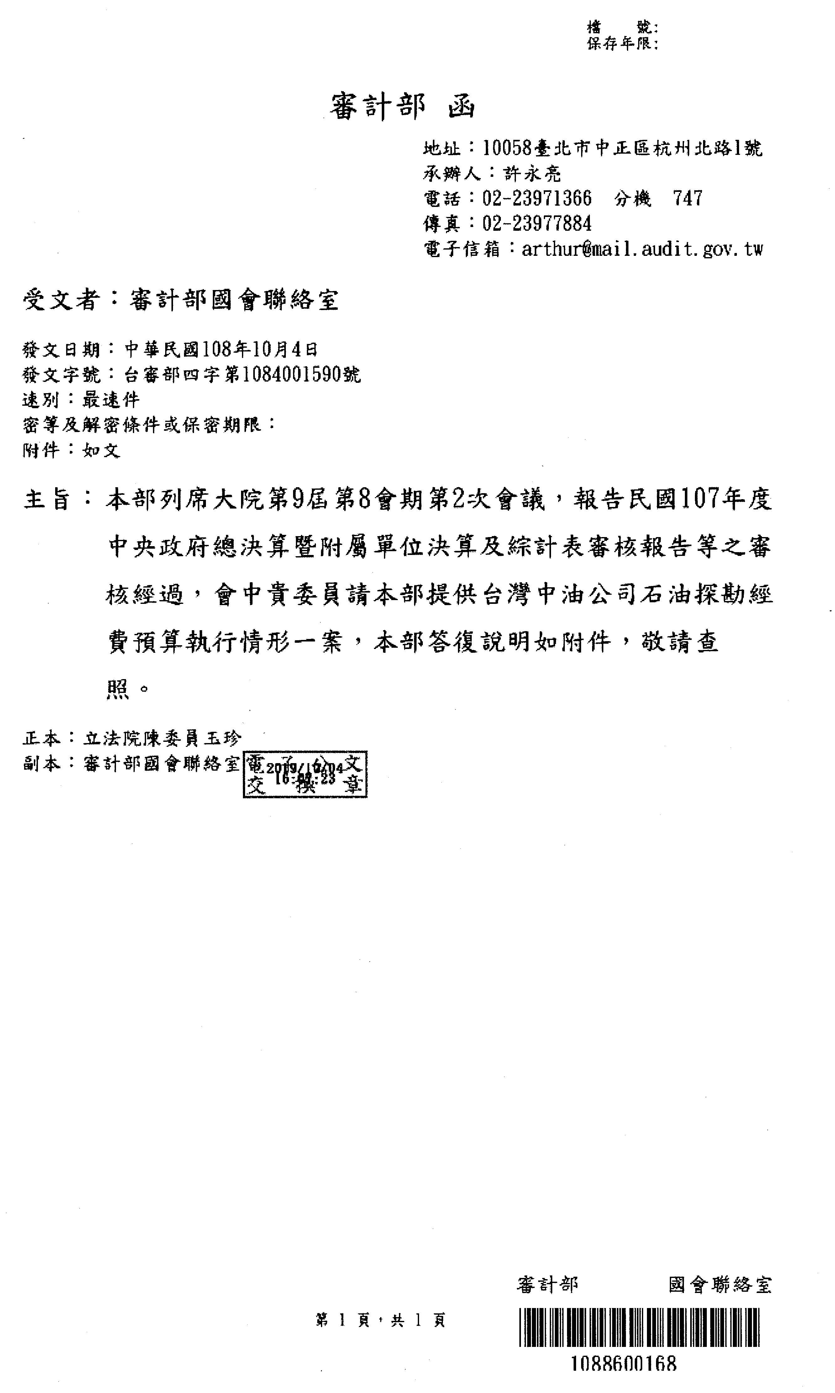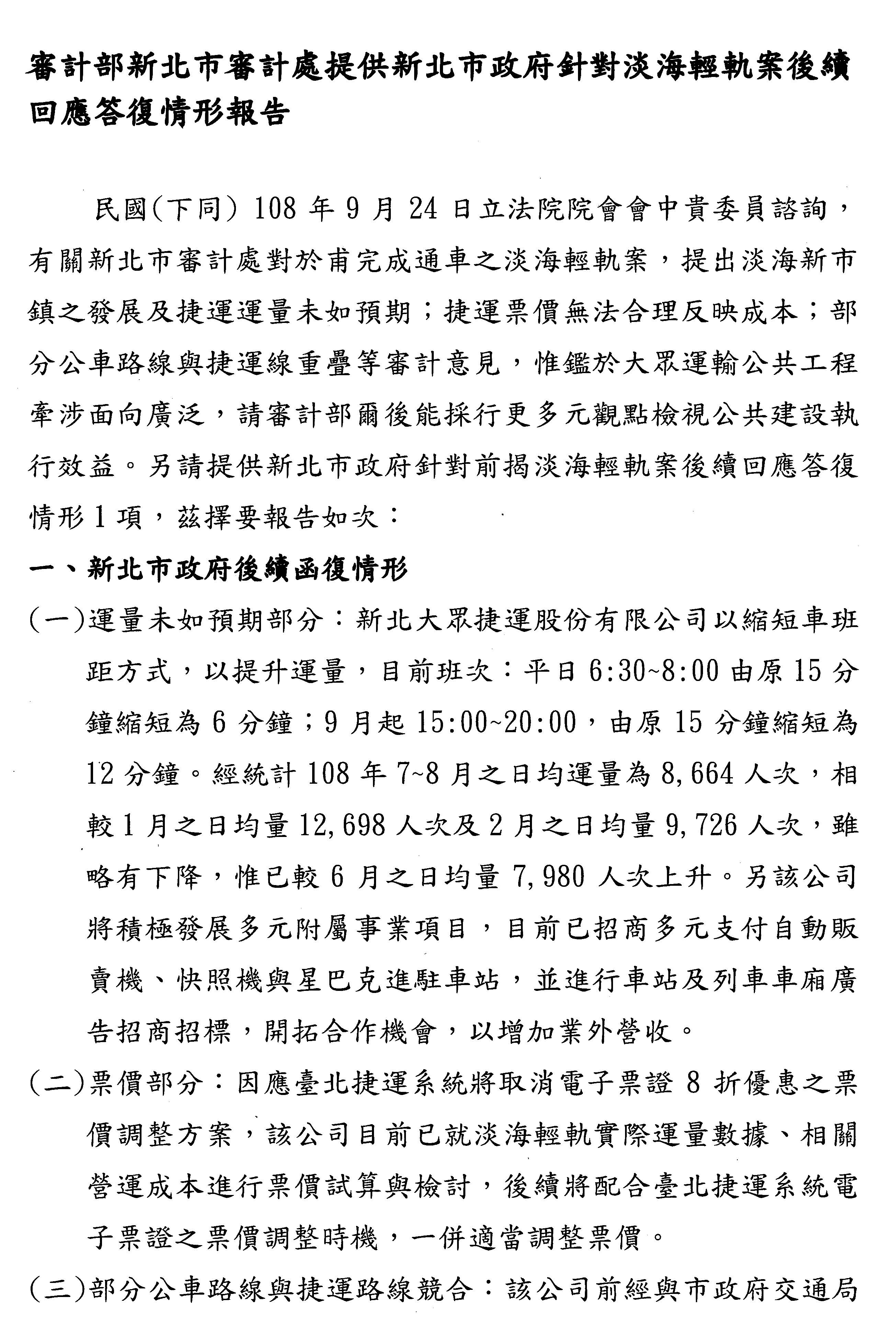 (立法院函 中華民國108年10月28日臺立院議字第1080703358號 施政報告質詢7號)