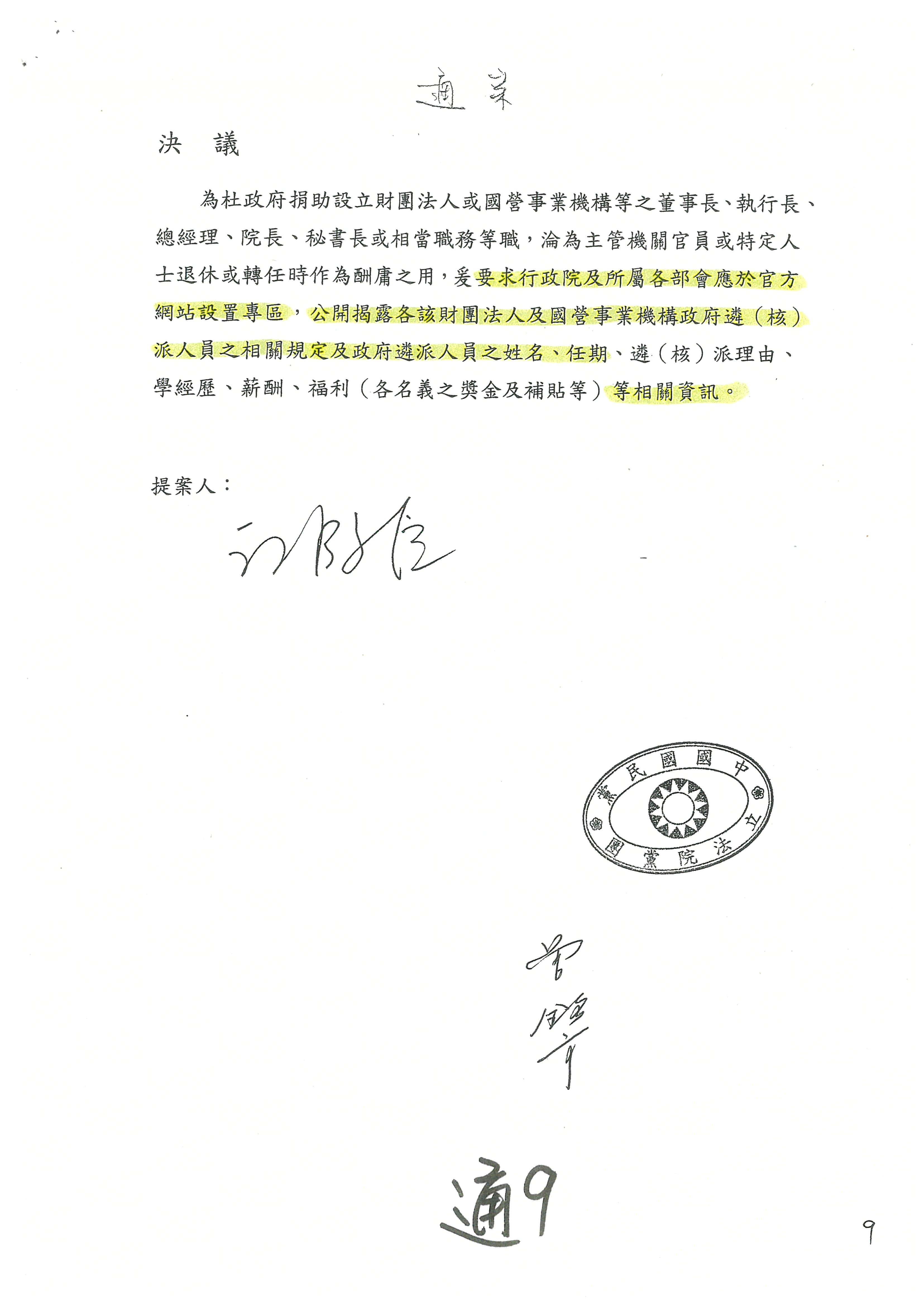 第二個部分,促轉會等獨立機關,在民進黨執政之下,漸漸成為民進黨黨團的附屬機關,所以凍結其10%的預算。雖然民進黨選贏了,但我們還是要提醒它,這些獨立機關必須依法行政、維持獨立。其次,有關財團法人的部分,出任董事長者的年齡只能到62歲。另外,國營事業與泛公股董事長跟總經理的部分,在國民黨的時代,初任者的年齡最高是65歲,但是,民進黨執政3年半以來,廣泛利用這些泛公股事業進行酬庸,阻礙專業人員的升遷。所以,我們提了案,希望各位委員能夠支持,俾能活化泛公股與國營事業的升遷體系,讓他們能夠肩負起經濟發展之責,讓他們的經營效率可以進一步提升,不要淪為民進黨酬庸的重要管道、派系的分贓。謝謝。
