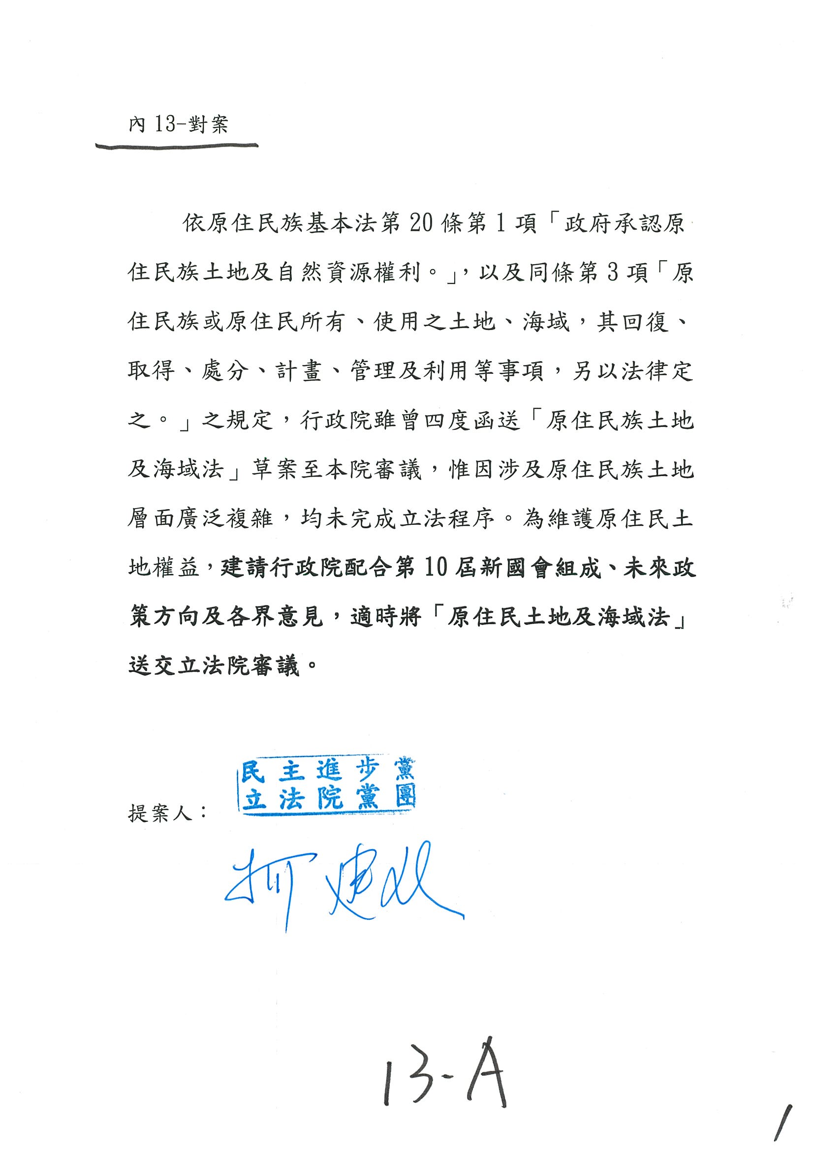 主席:請問院會,針對第13-A案有無異議?(無)無異議,本案照案通過。