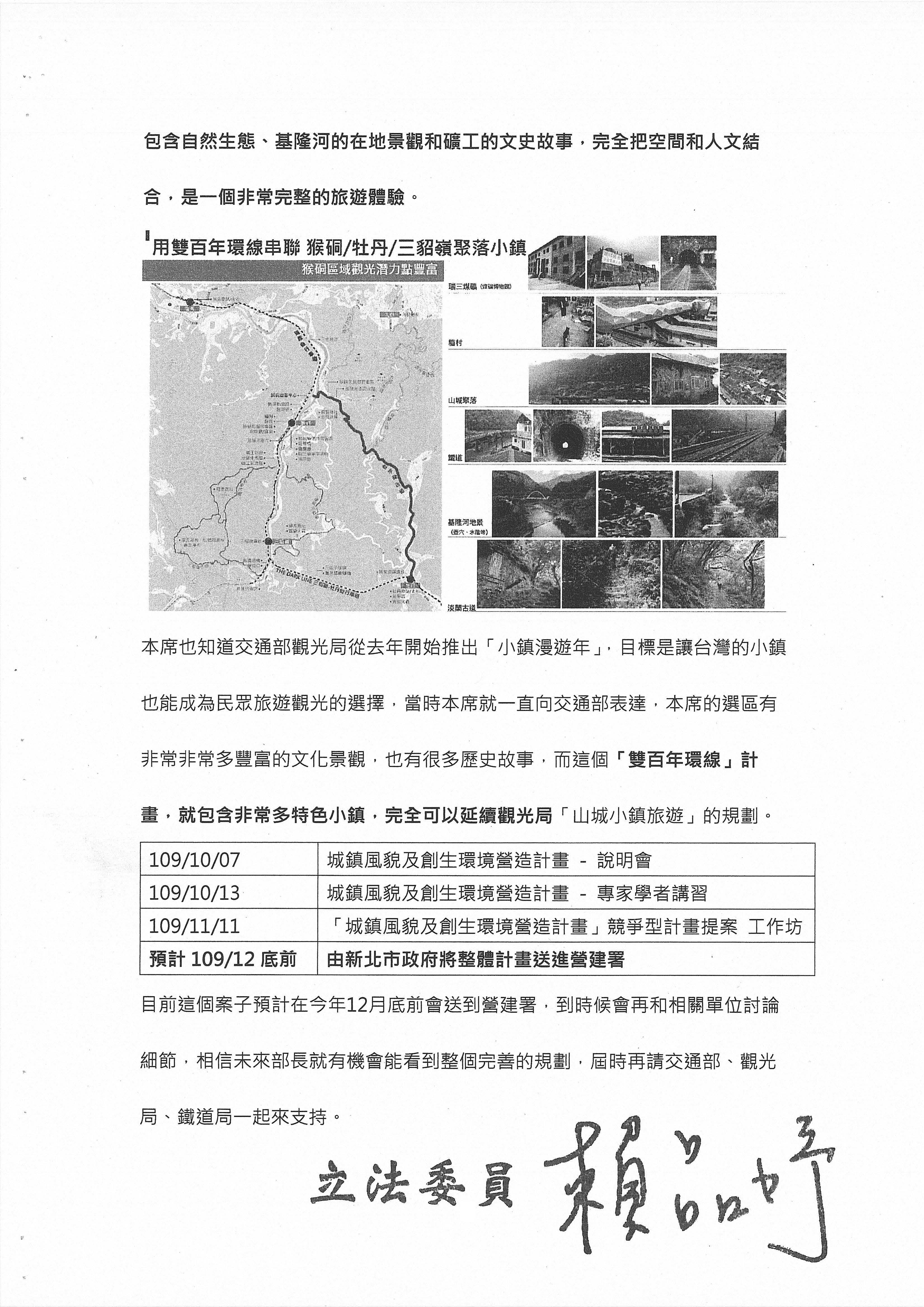1-2.當然,本席的選區內還有許多重大建設需要中央全力支持,還懇請行政院、交通部,基於協助苗栗發展及帶動區域活絡的精神,持續幫忙,讓苗栗能脫胎換骨。