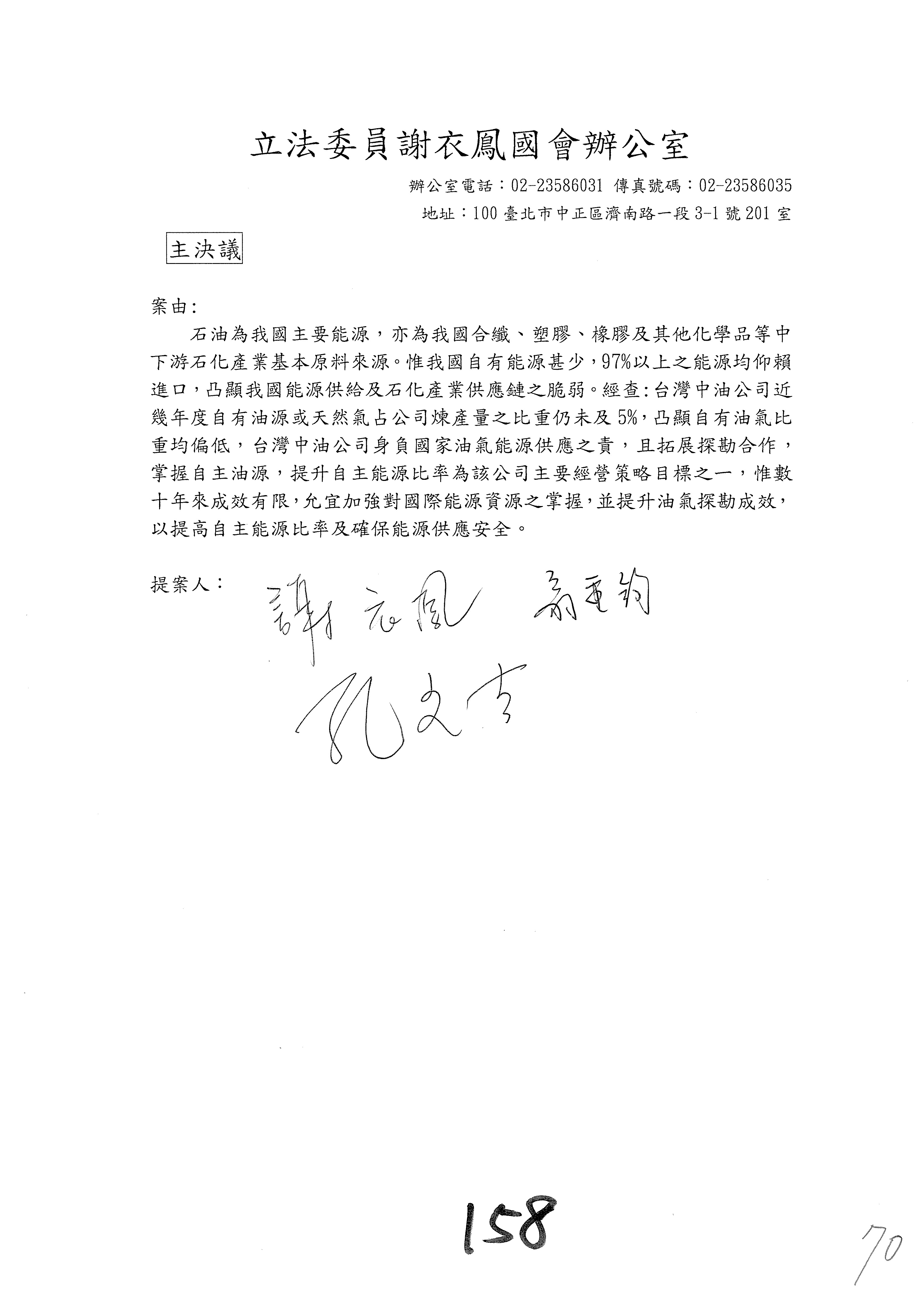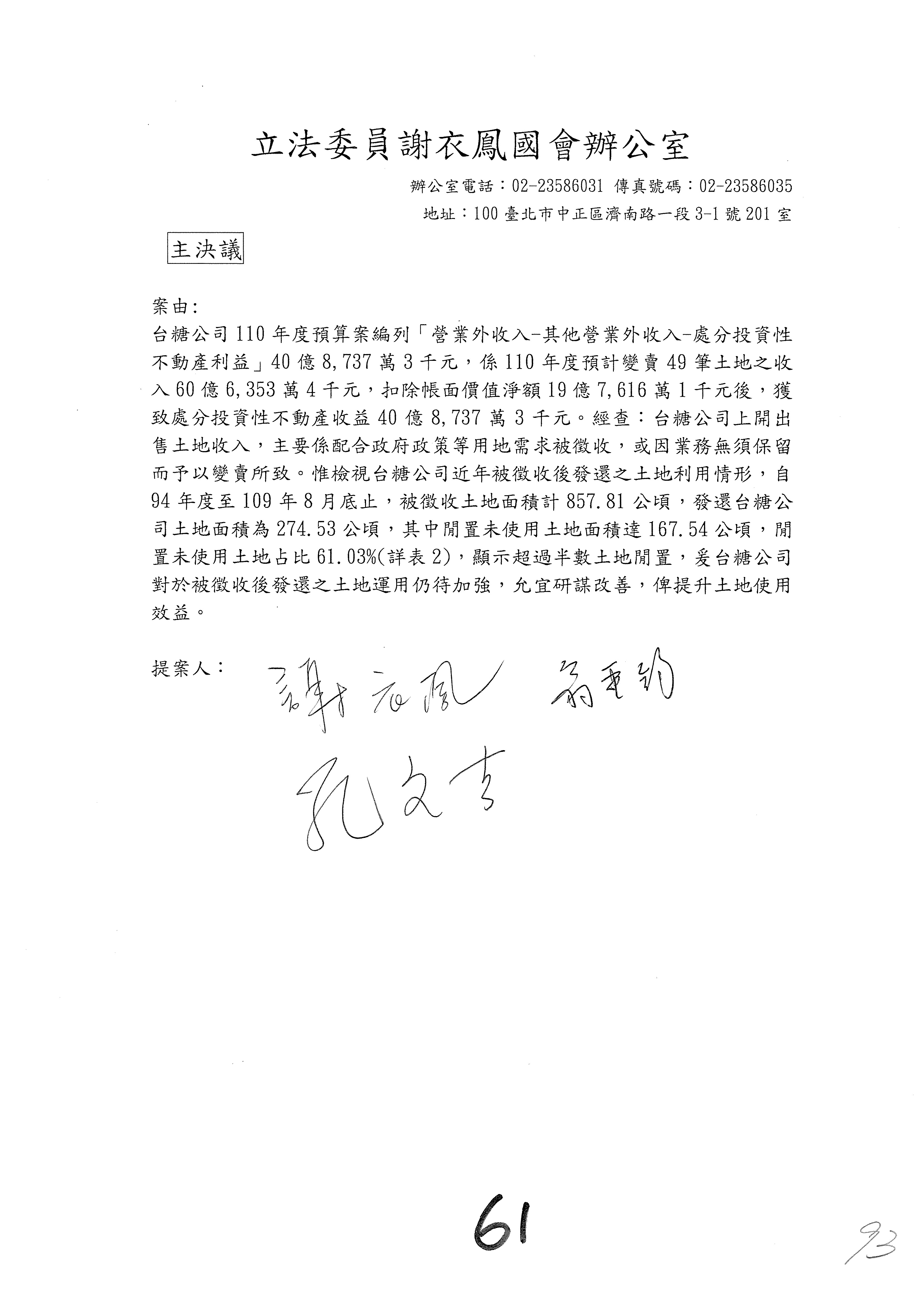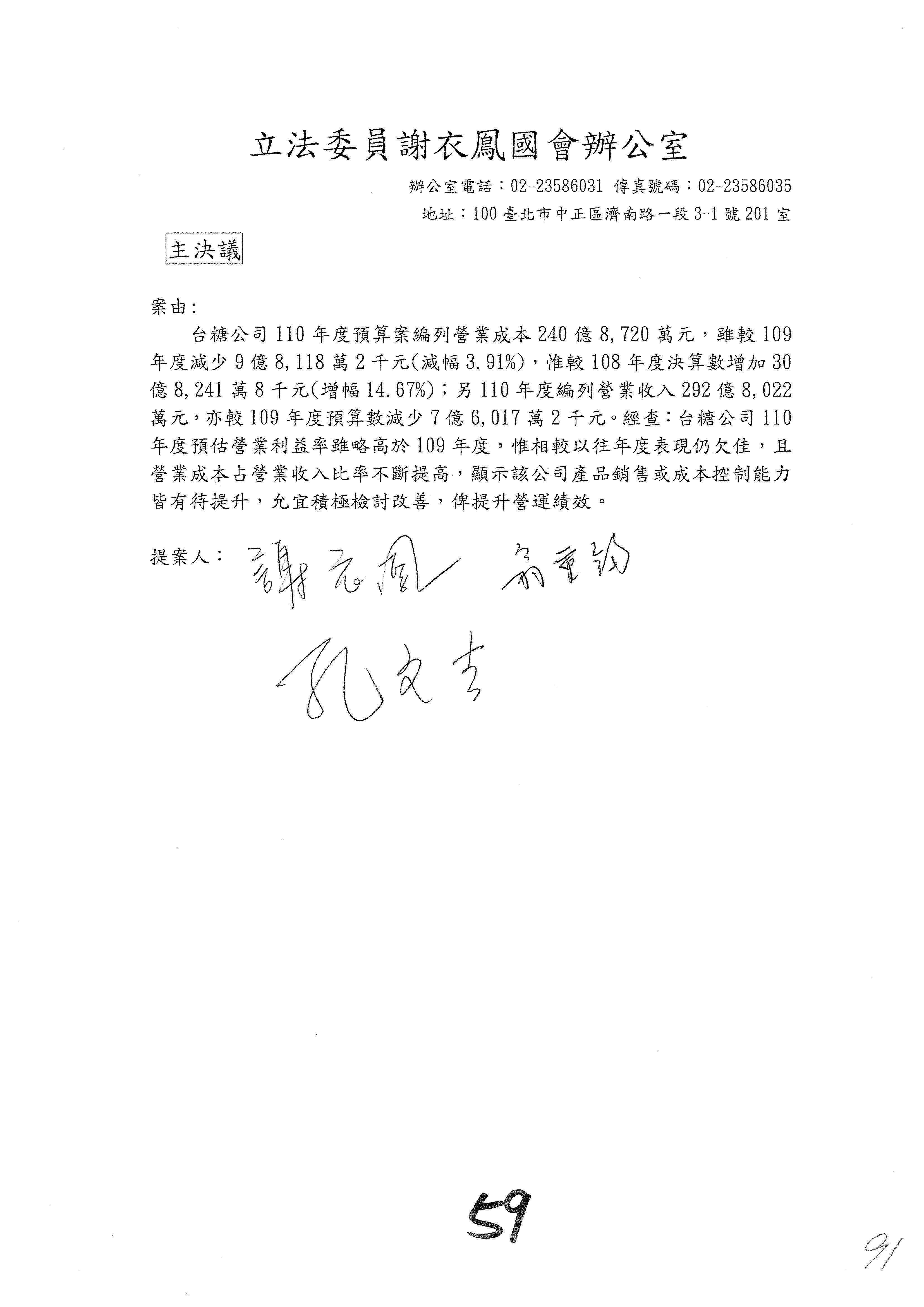 (三)書面質詢和未及答復部分請相關單位於1週內以書面答復並副知本會。