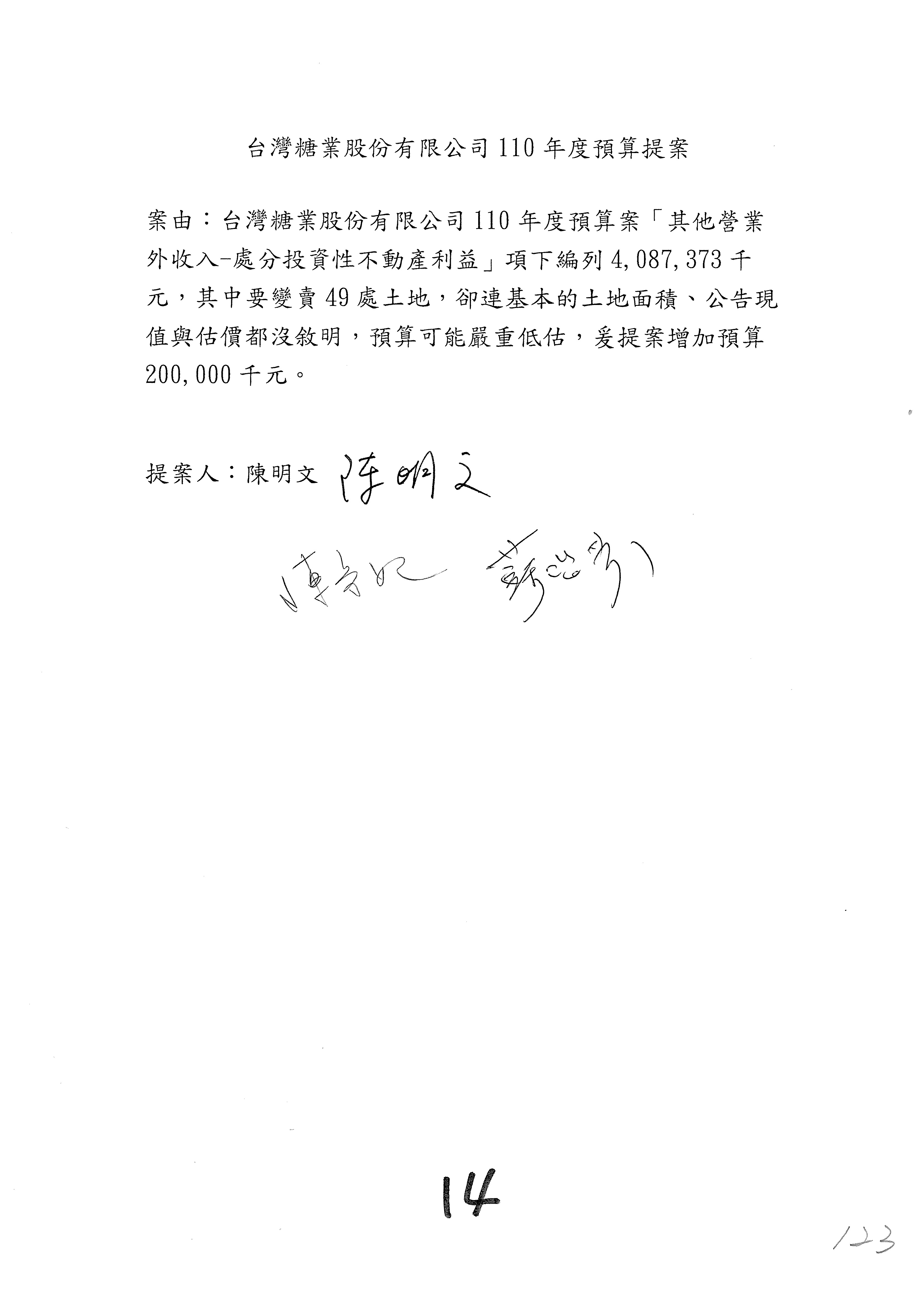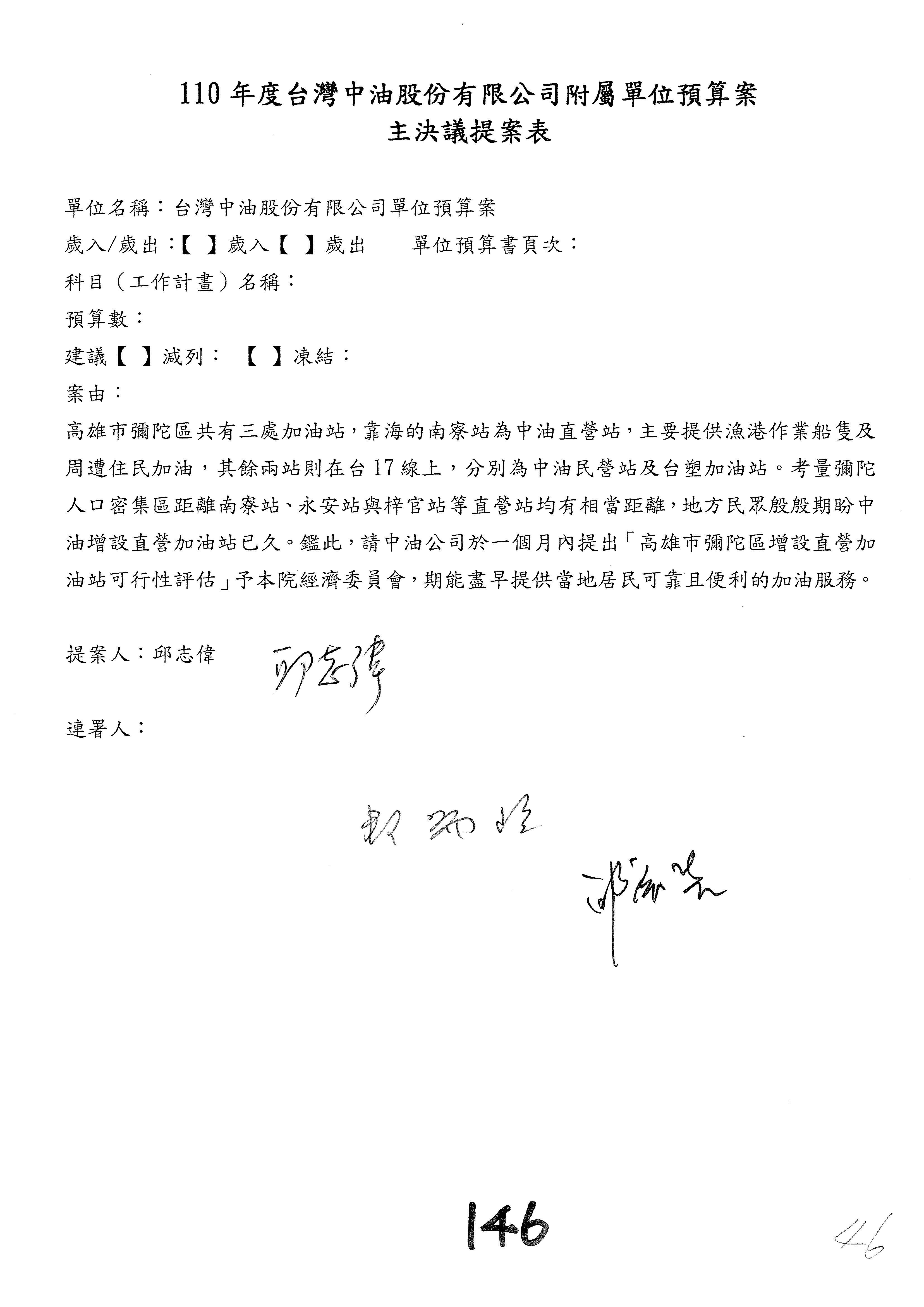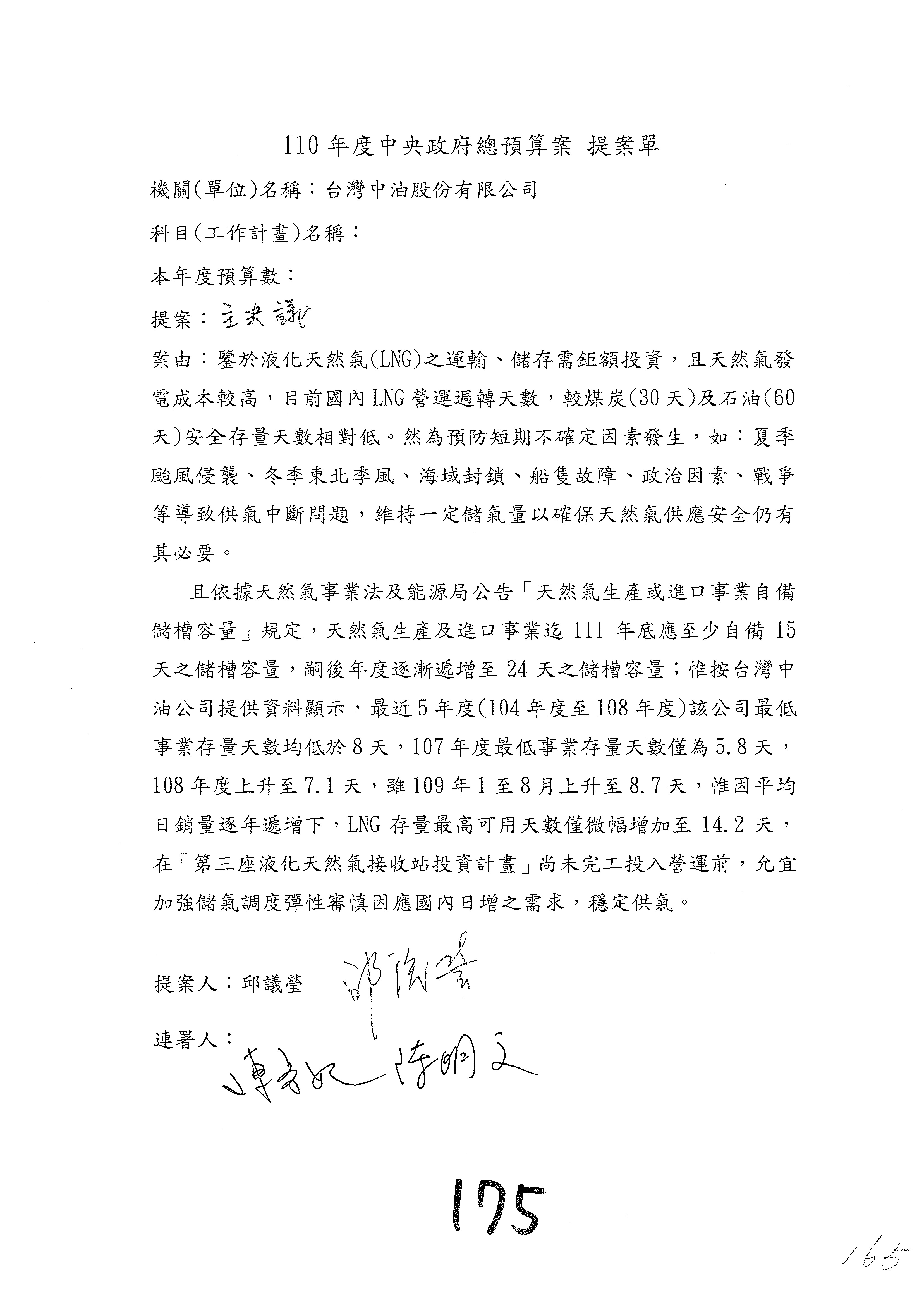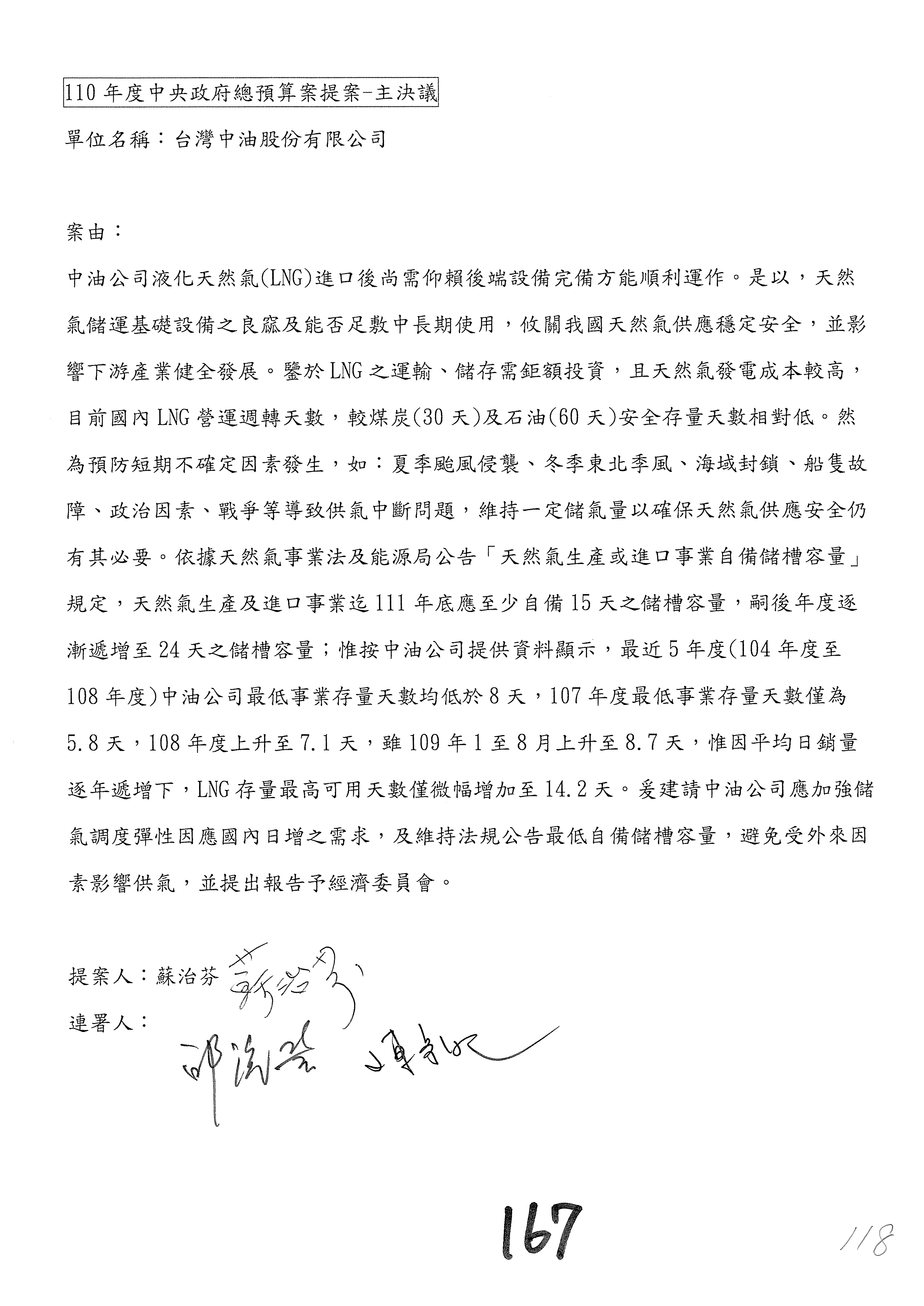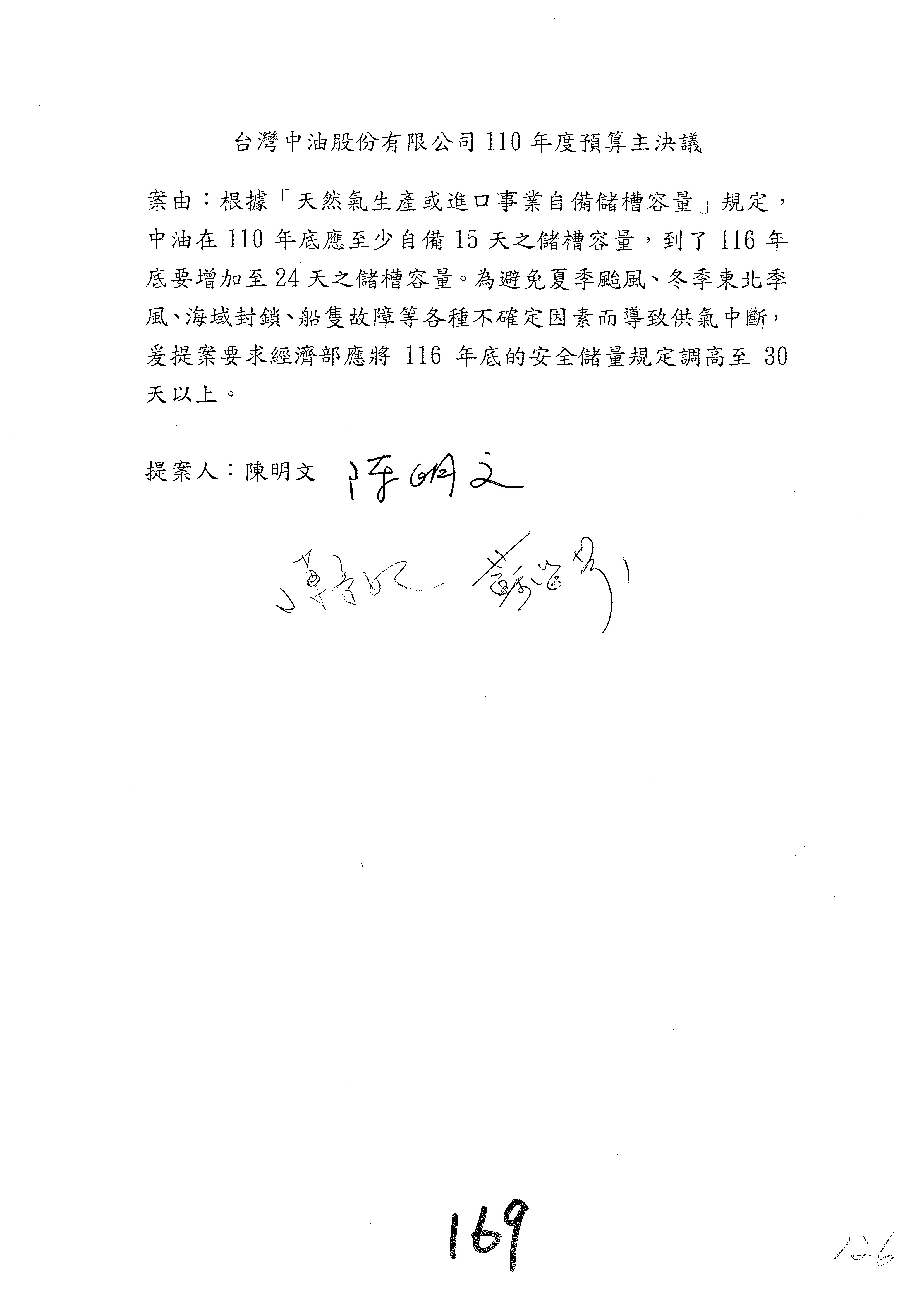 李總經理順欽:就是就是把「應將116年底」改成「120年底」,然後正確的名稱是「120年底的儲槽容量天數調高到30天以上」。