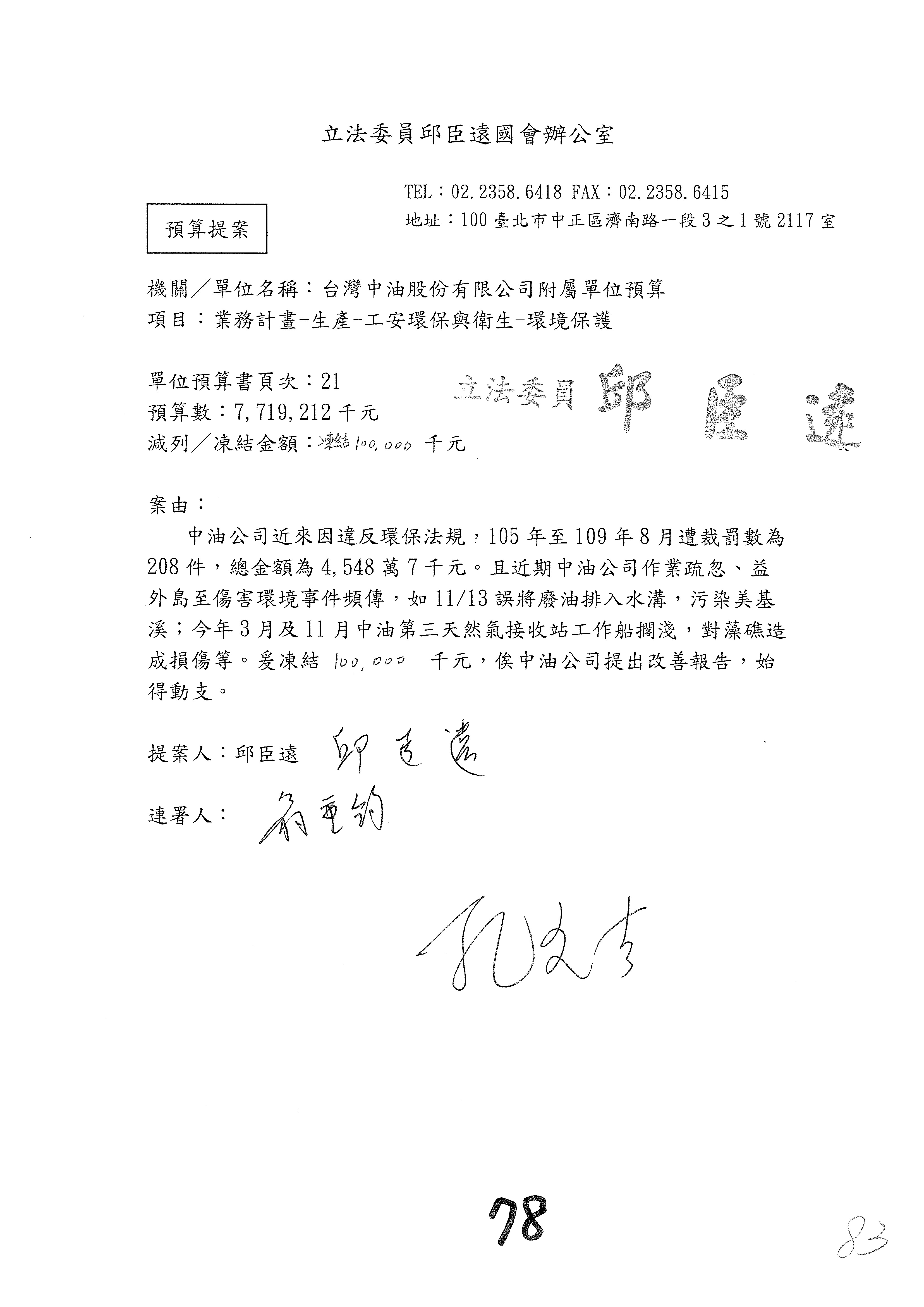 主席:通過。接下來處理剛剛保留的第76案至第82案,請中油先說明。
