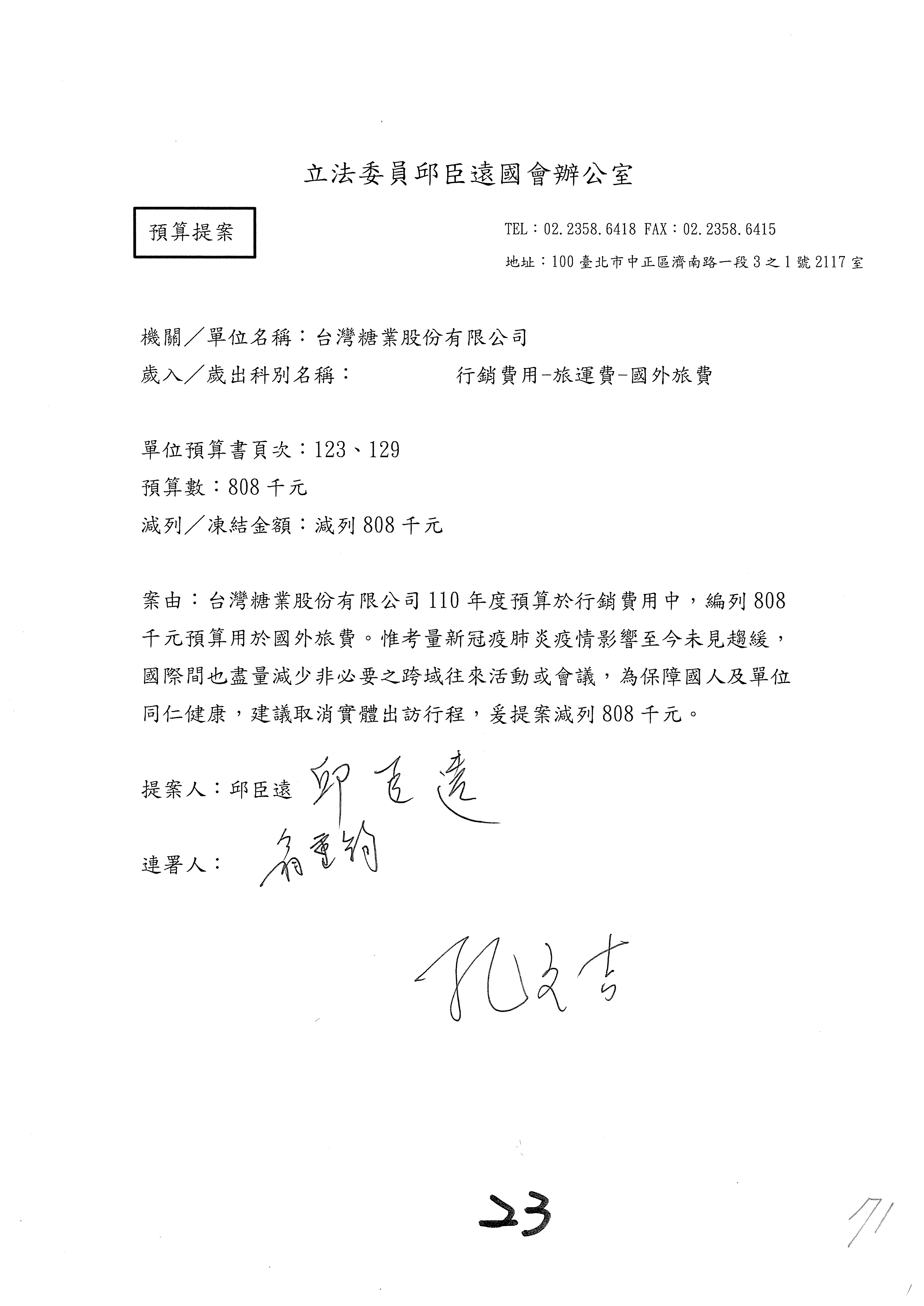 曾次長文生:我們的收和支都會同時減,如果要減成本,就要減收入。