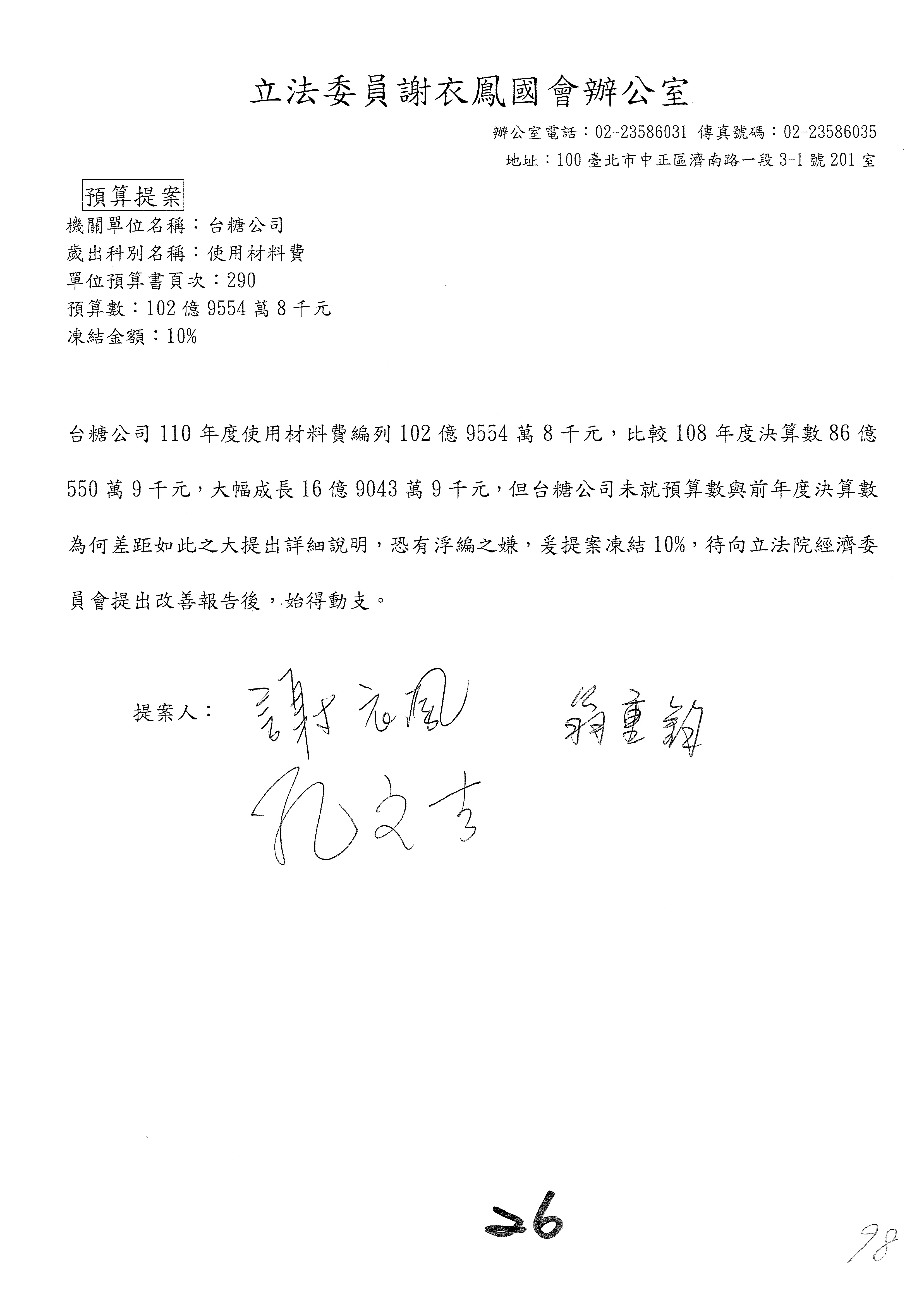 主席:可以嗎?我們就凍結5,000萬元,提書面報告後解凍好嗎?