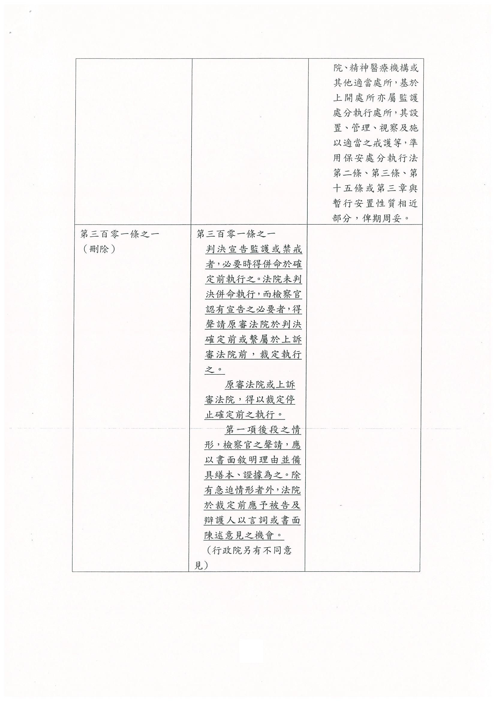 主席:好。接下來處理增訂第三百零一條之一,我想司法院及法務部都已經確認過本條建議不予增訂,請問各位委員有沒有意見?