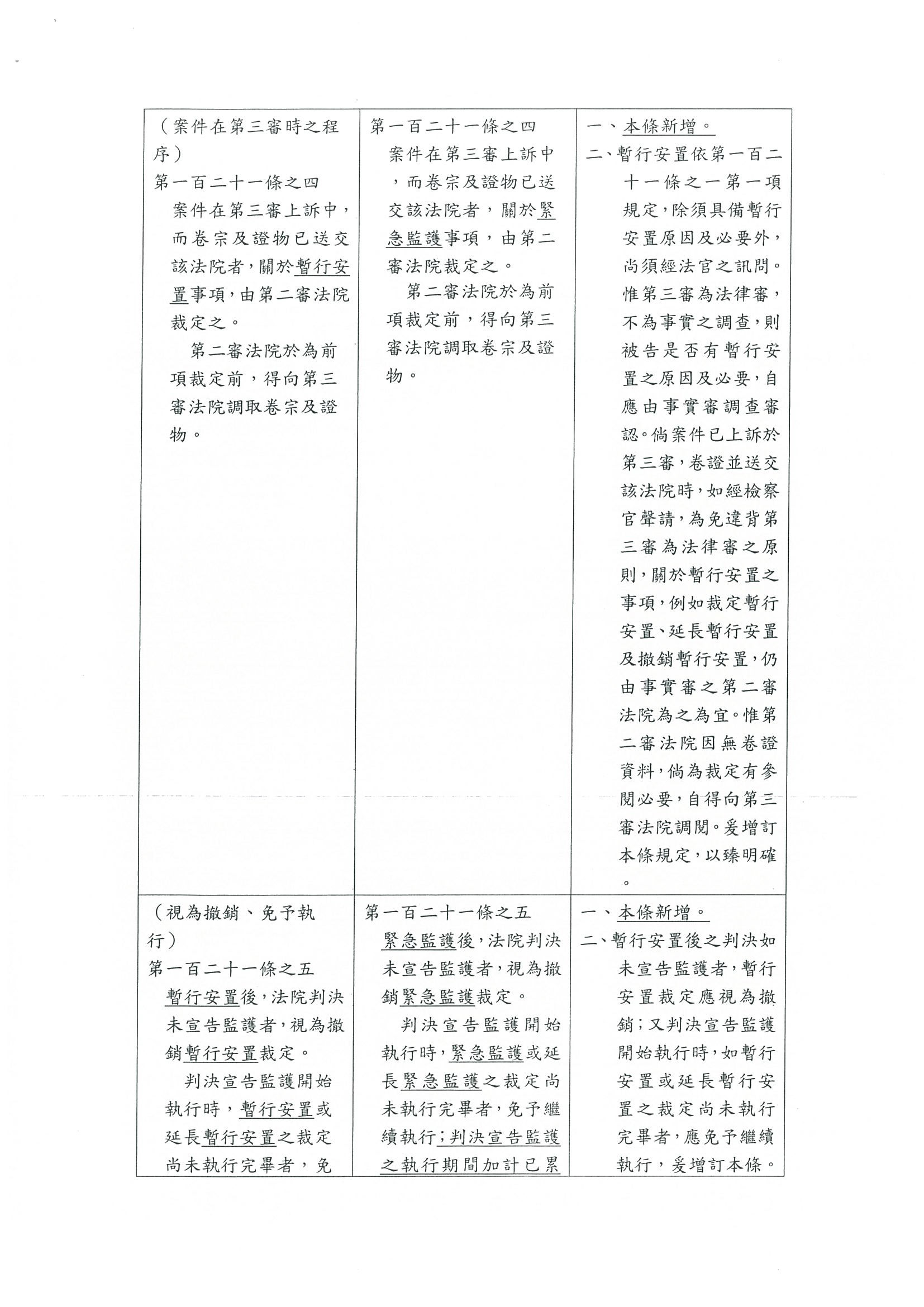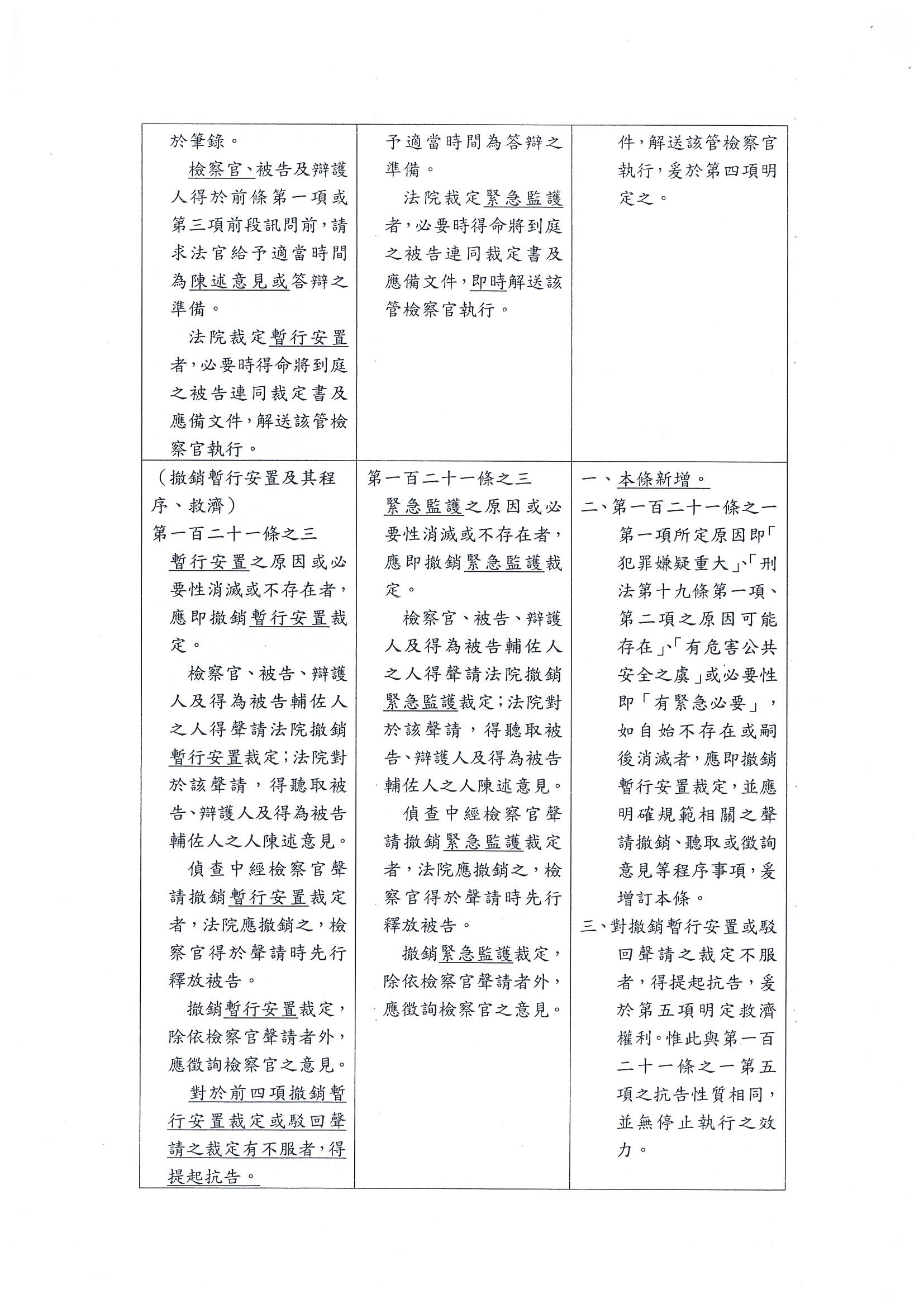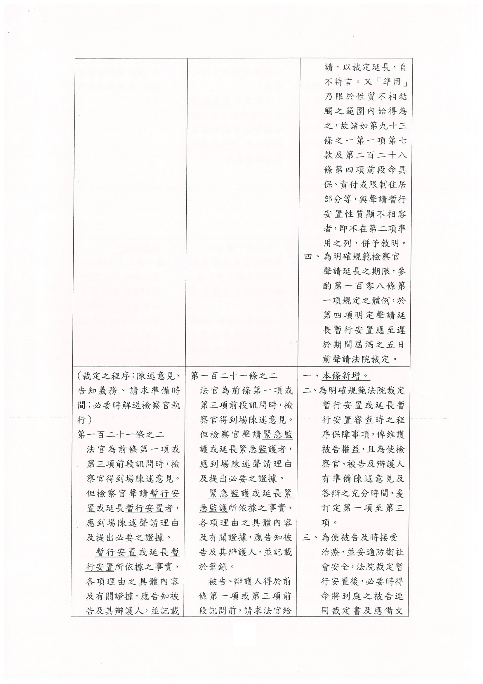我們總結一下刑事訴訟法部分條文修正草案,目前還保留的只有章名、第一百二十一條之一、時代力量黨團提案的第一百二十一條之七折抵的部分及第一百二十一條之六。