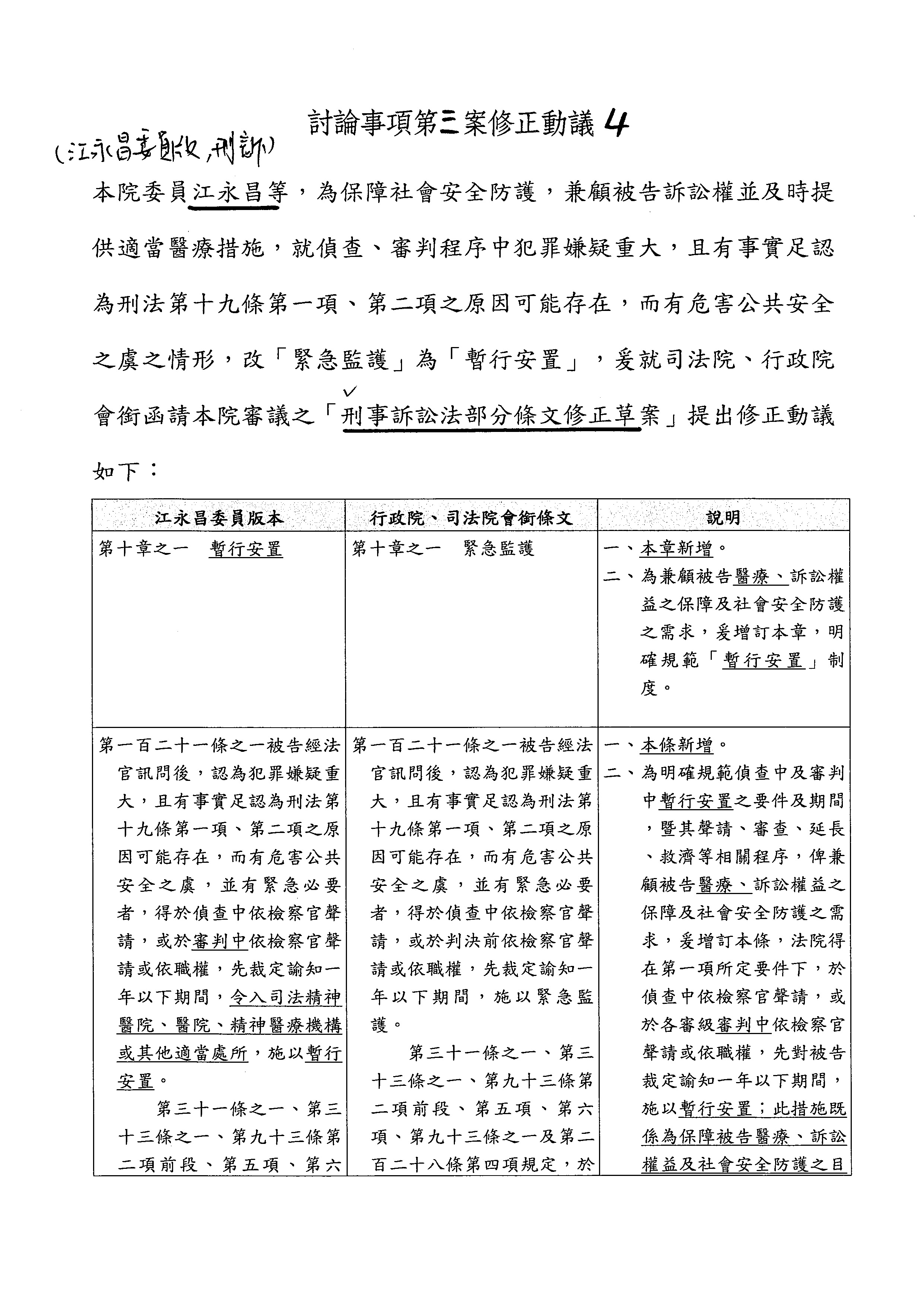 主席:各位委員有沒有意見?我們現在處理的暫行安置,有一部分就是要處理像嘉義殺警案一審無罪的情形,所以暫行安置就是處理這部分。那會不會有一種情形是不用暫行安置,而改用科技設備監控?其實就有點像多元處遇的一環……
