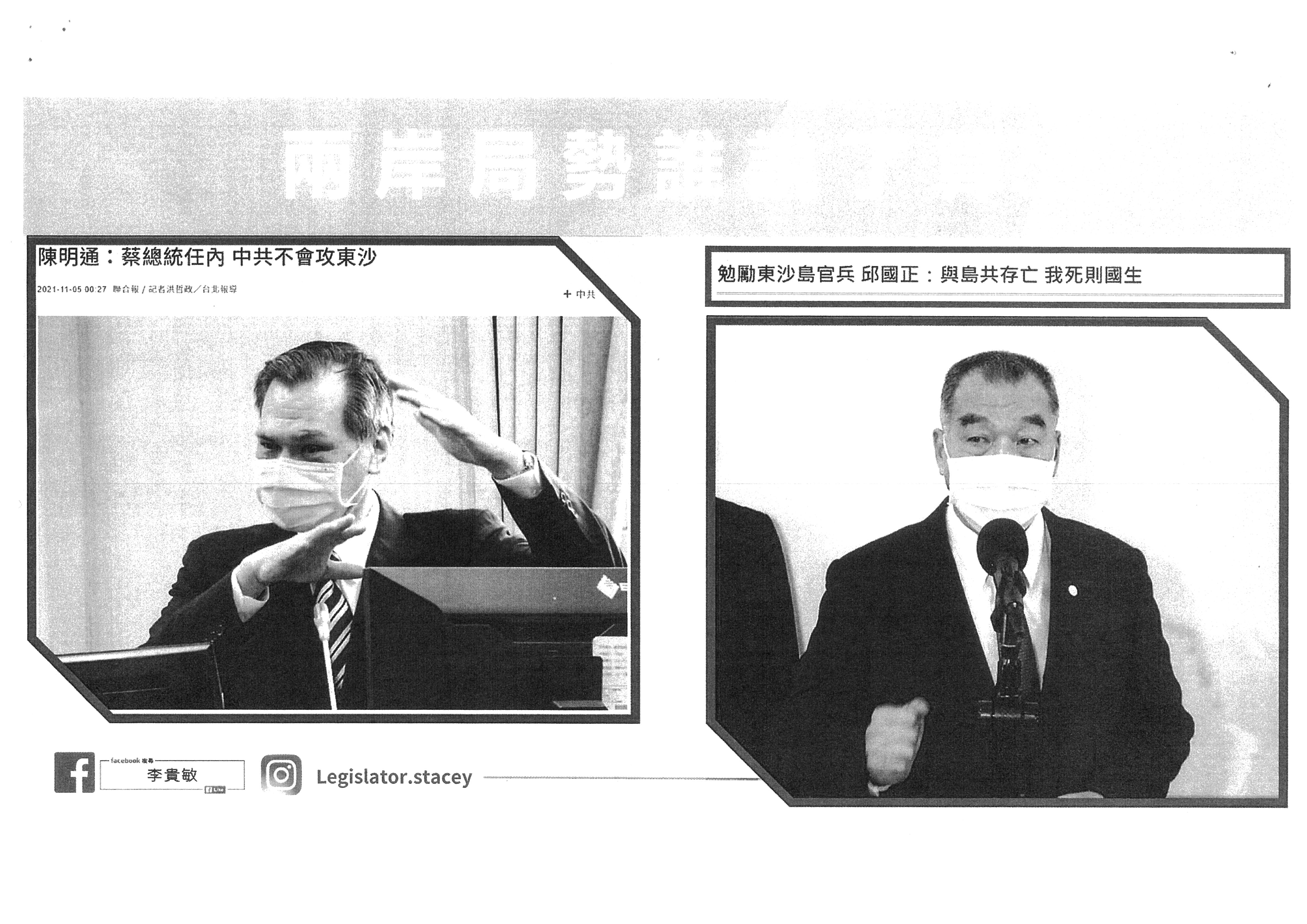 劉委員建國:好,你這麼講我也可以接受。但在國安單位有掌握的情況之下,有沒有把訊息丟給兩個單位?