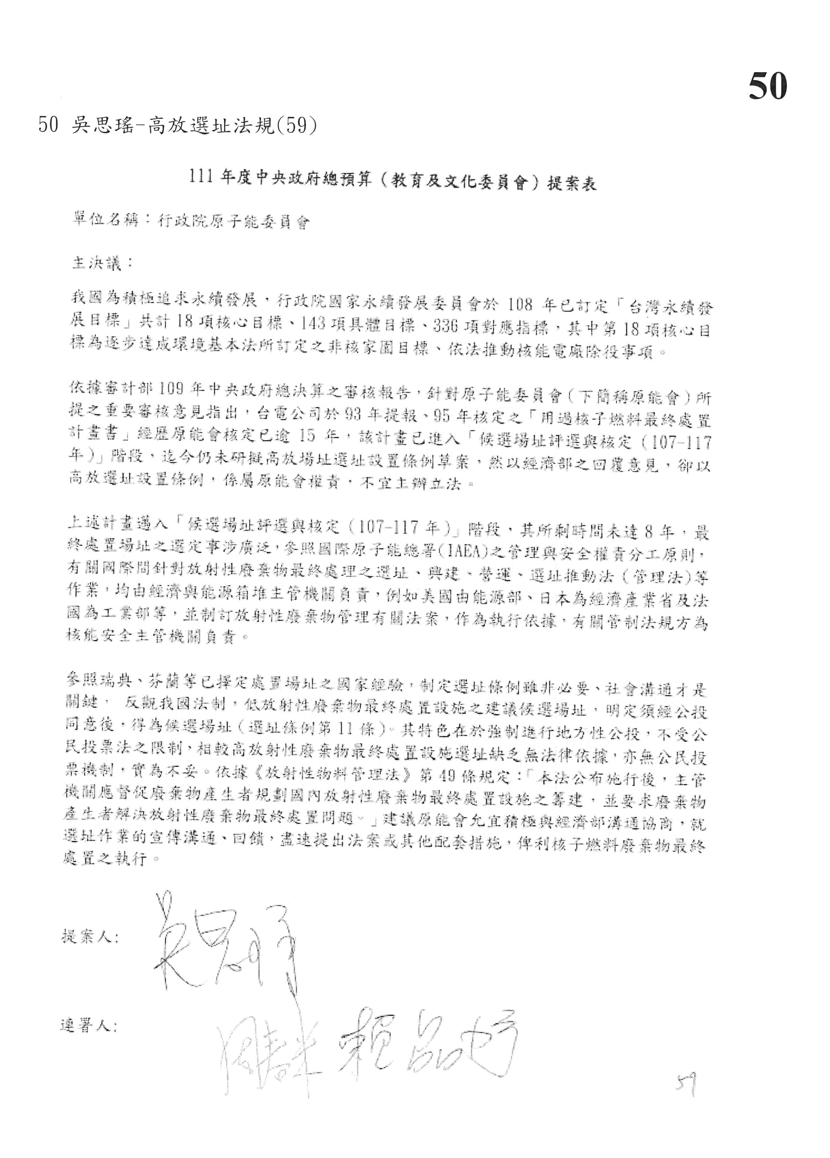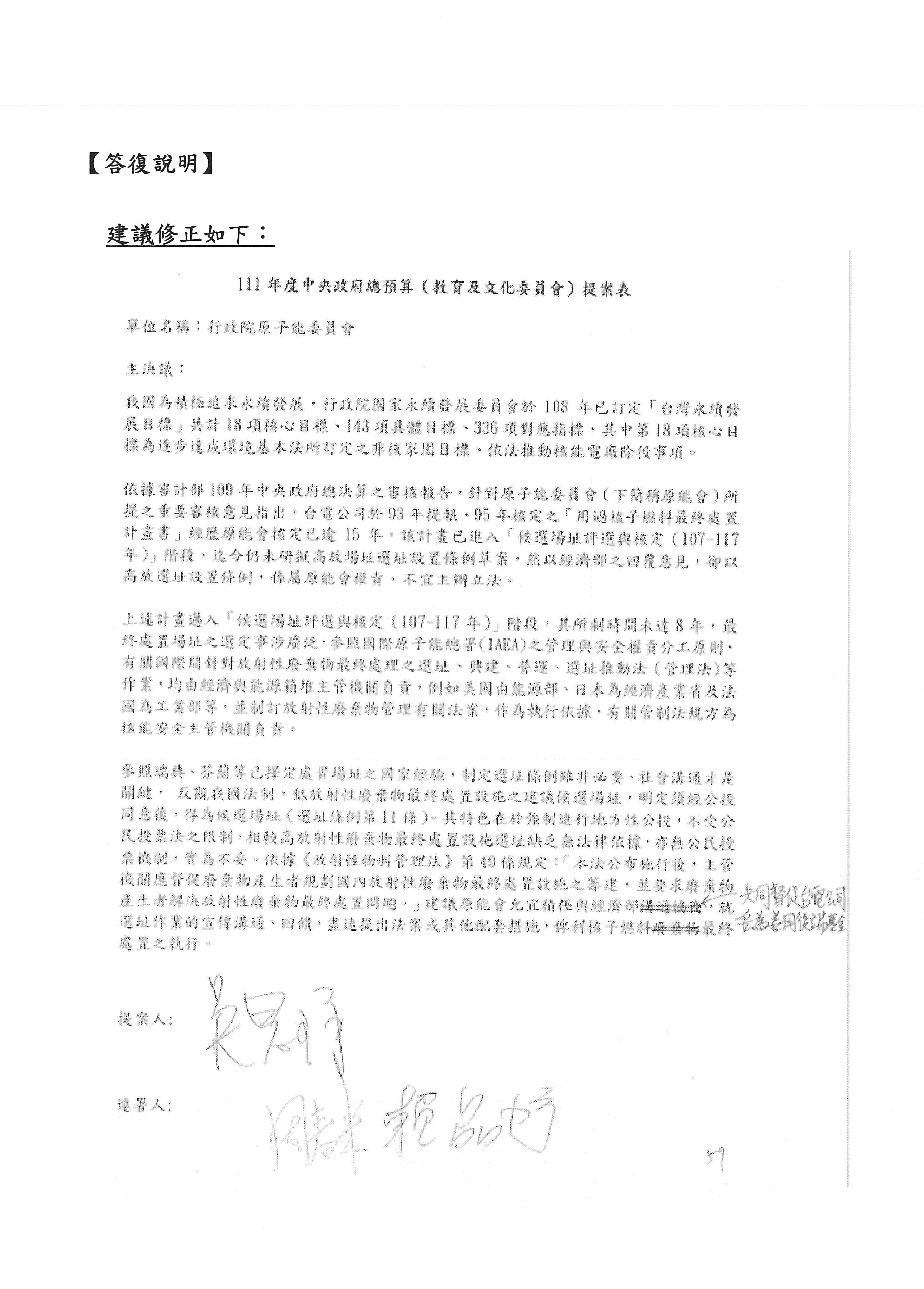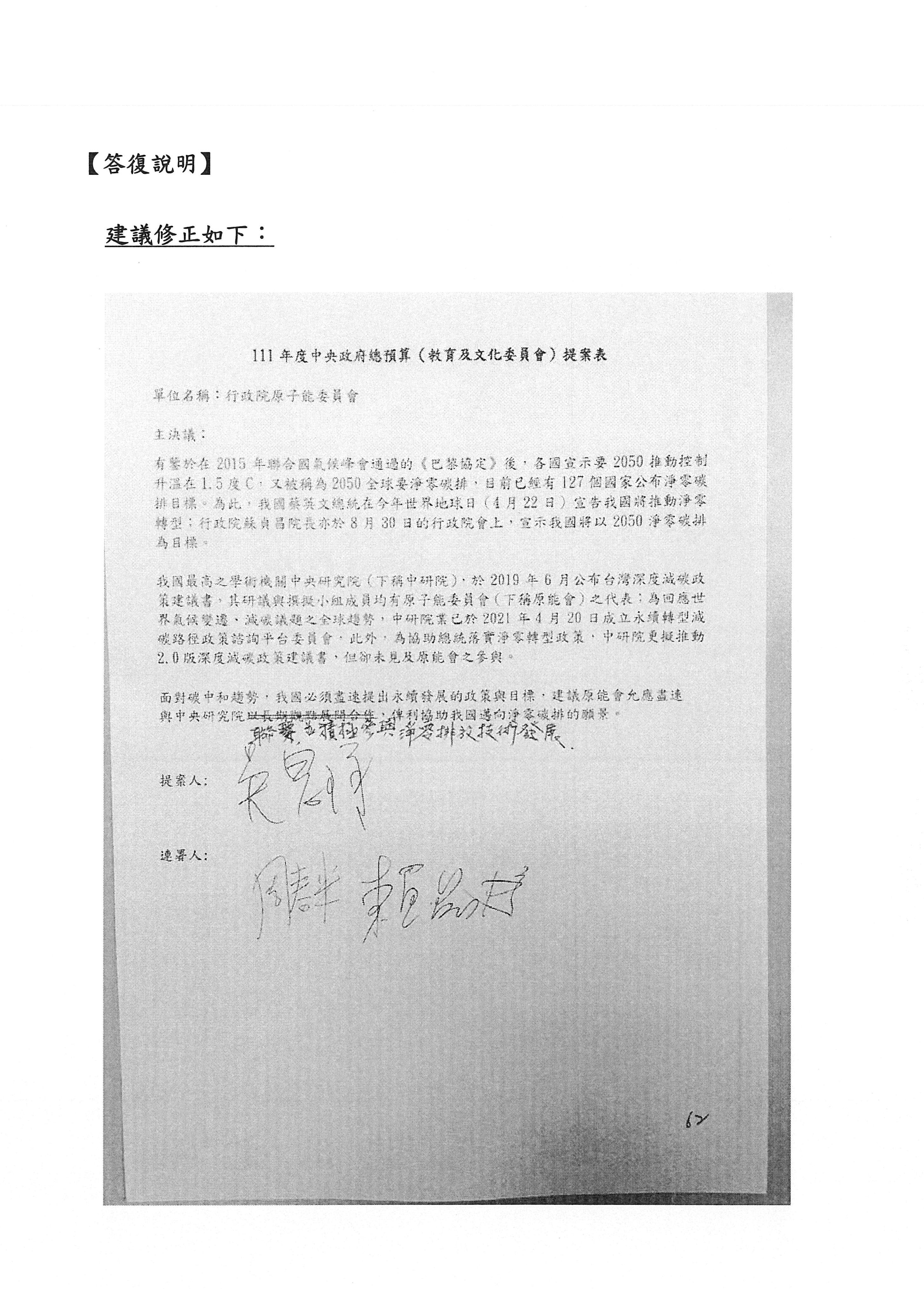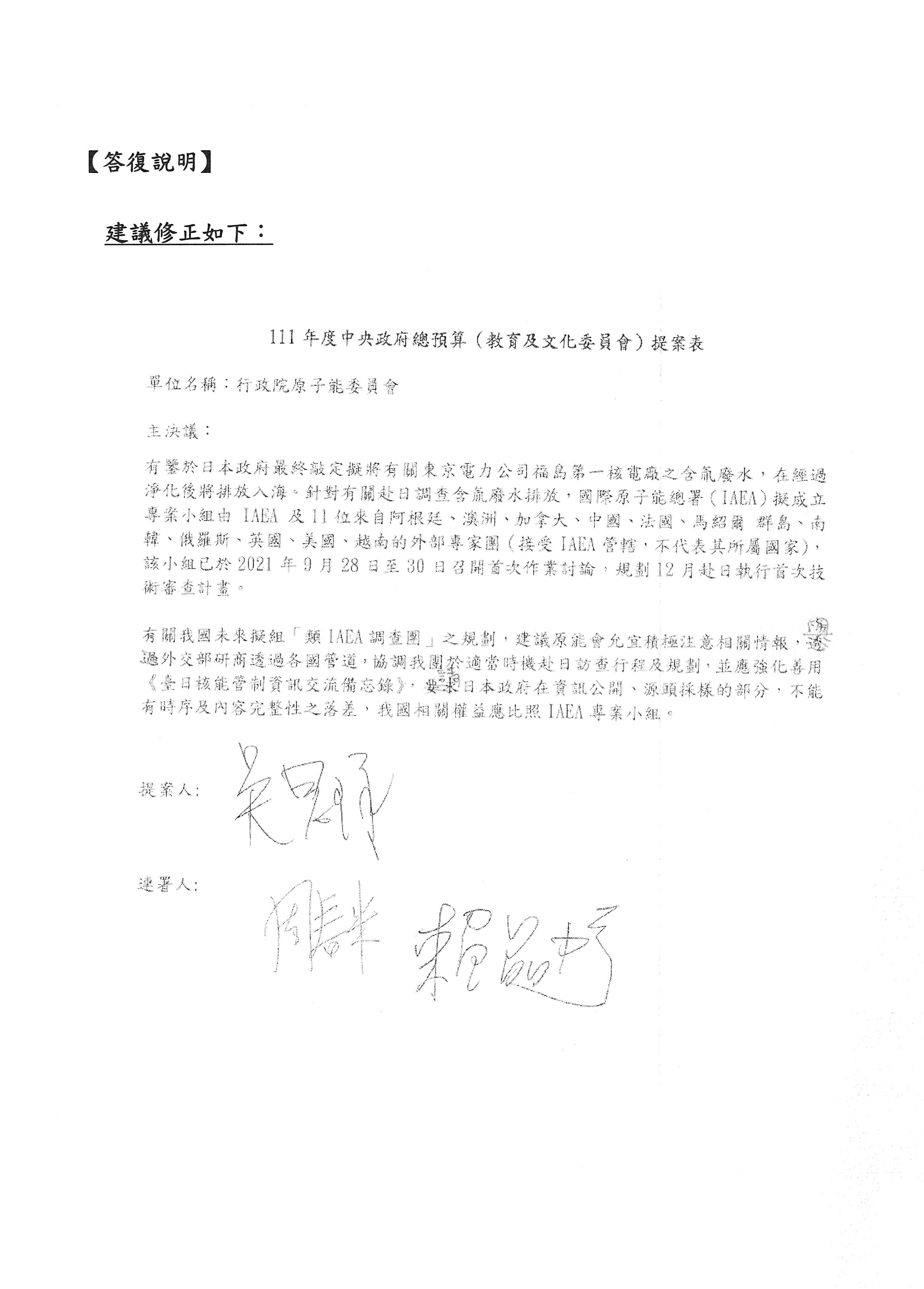 還有臨時提案1案,提案人高虹安委員不在場。原能會有看過這個臨時提案,文字上有沒有問題?