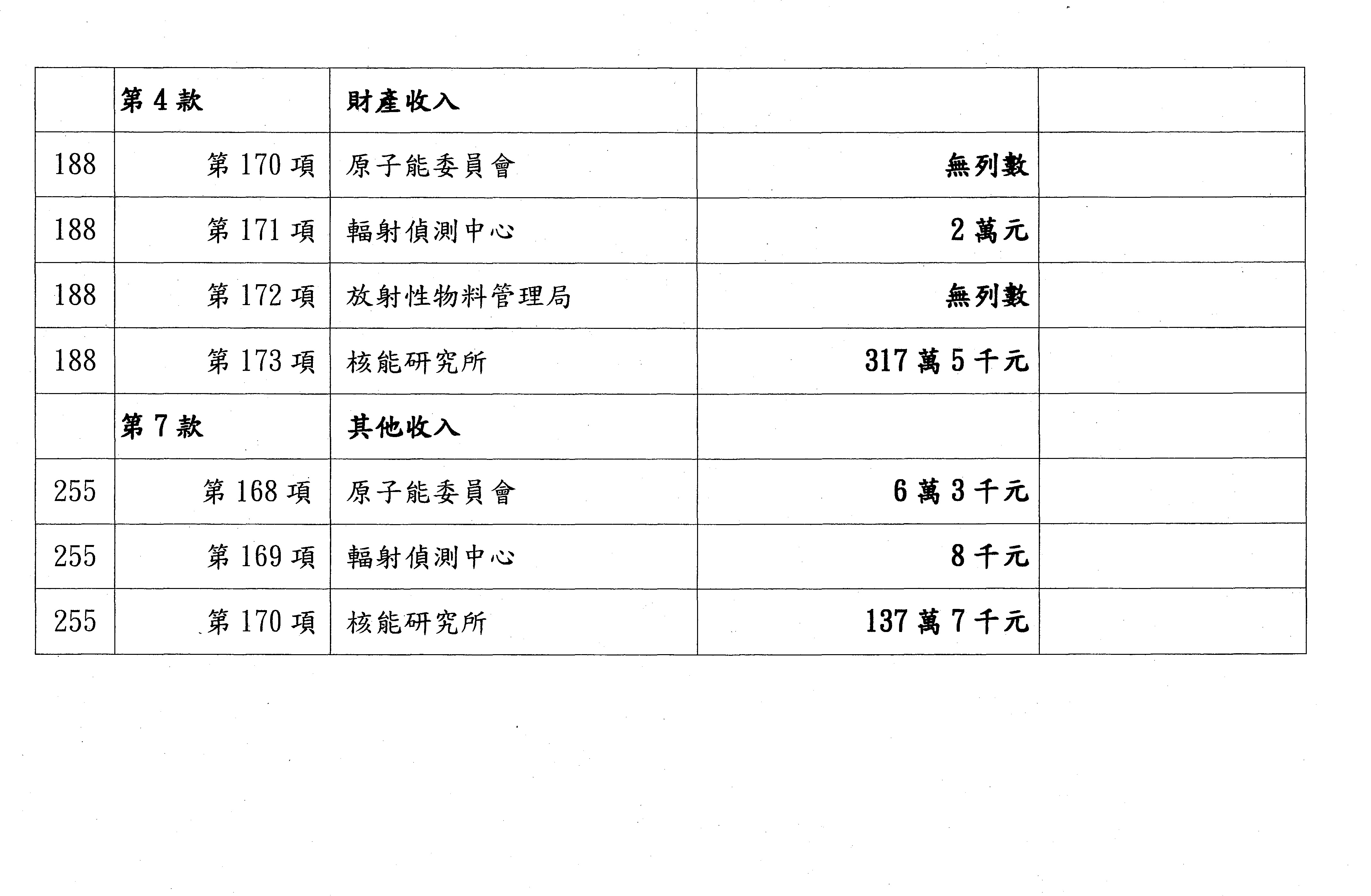 繼續處理「二、核子事故輻射監測工作計畫」。第7案提案人黃國書委員不在場,所以就照列。