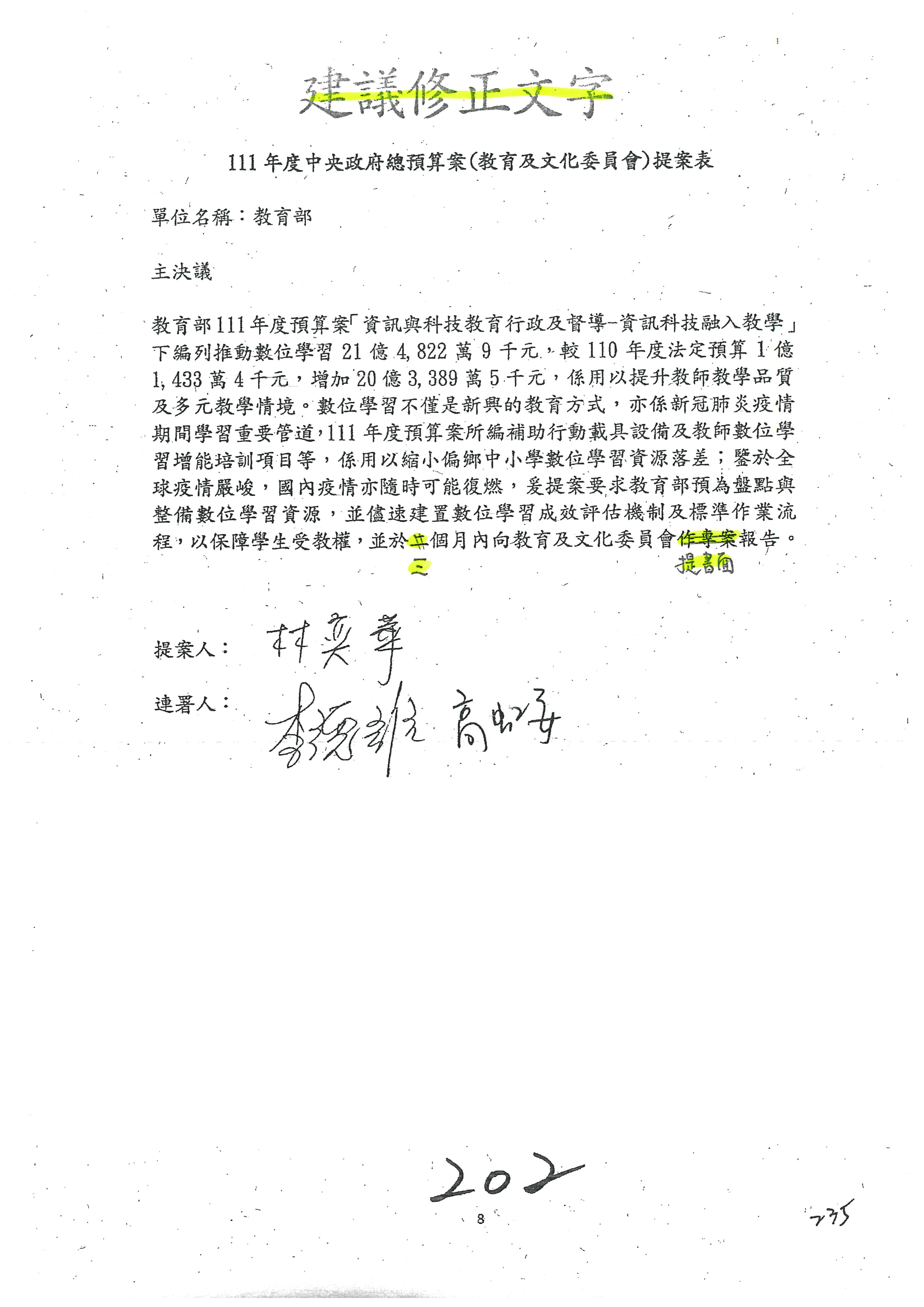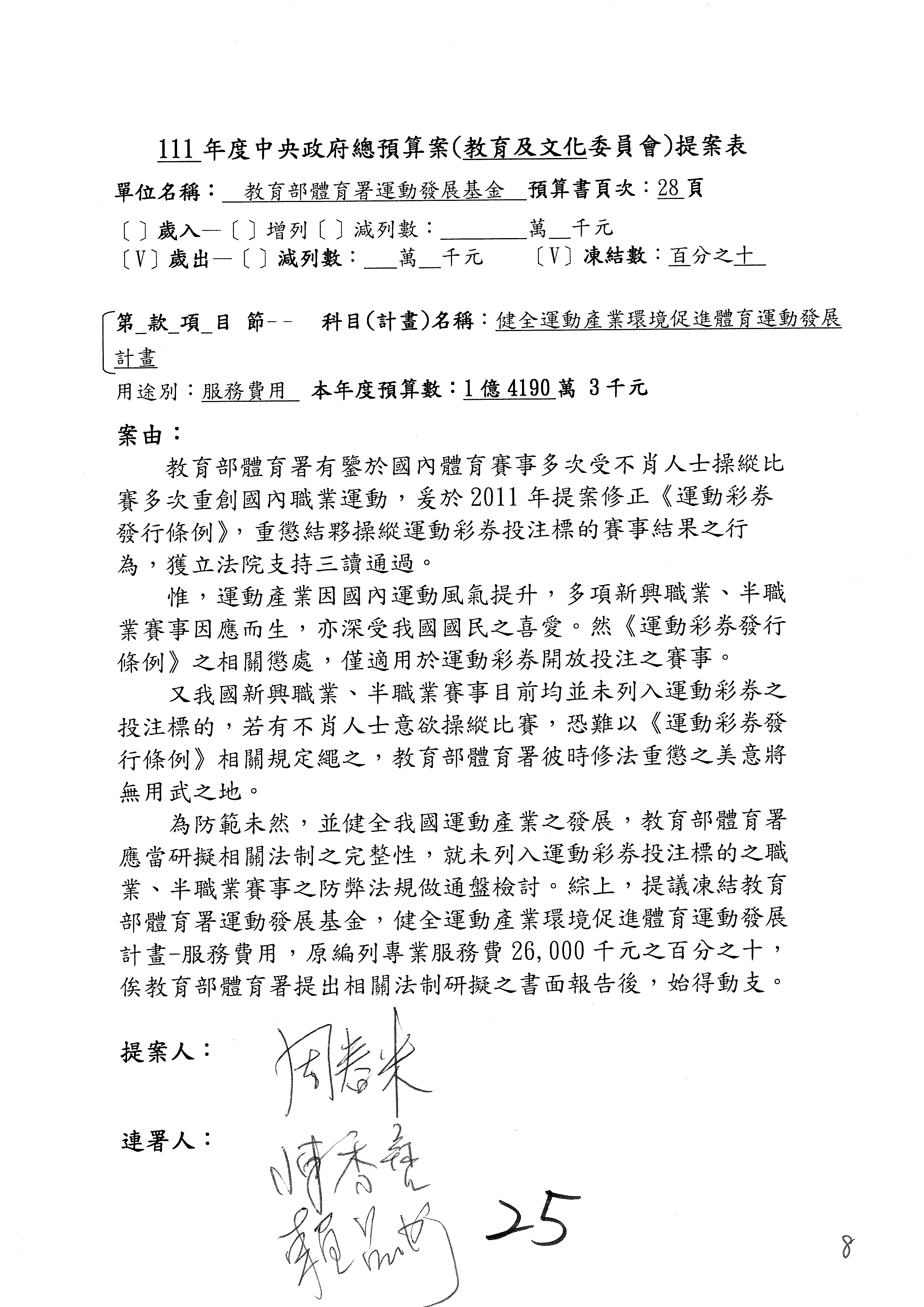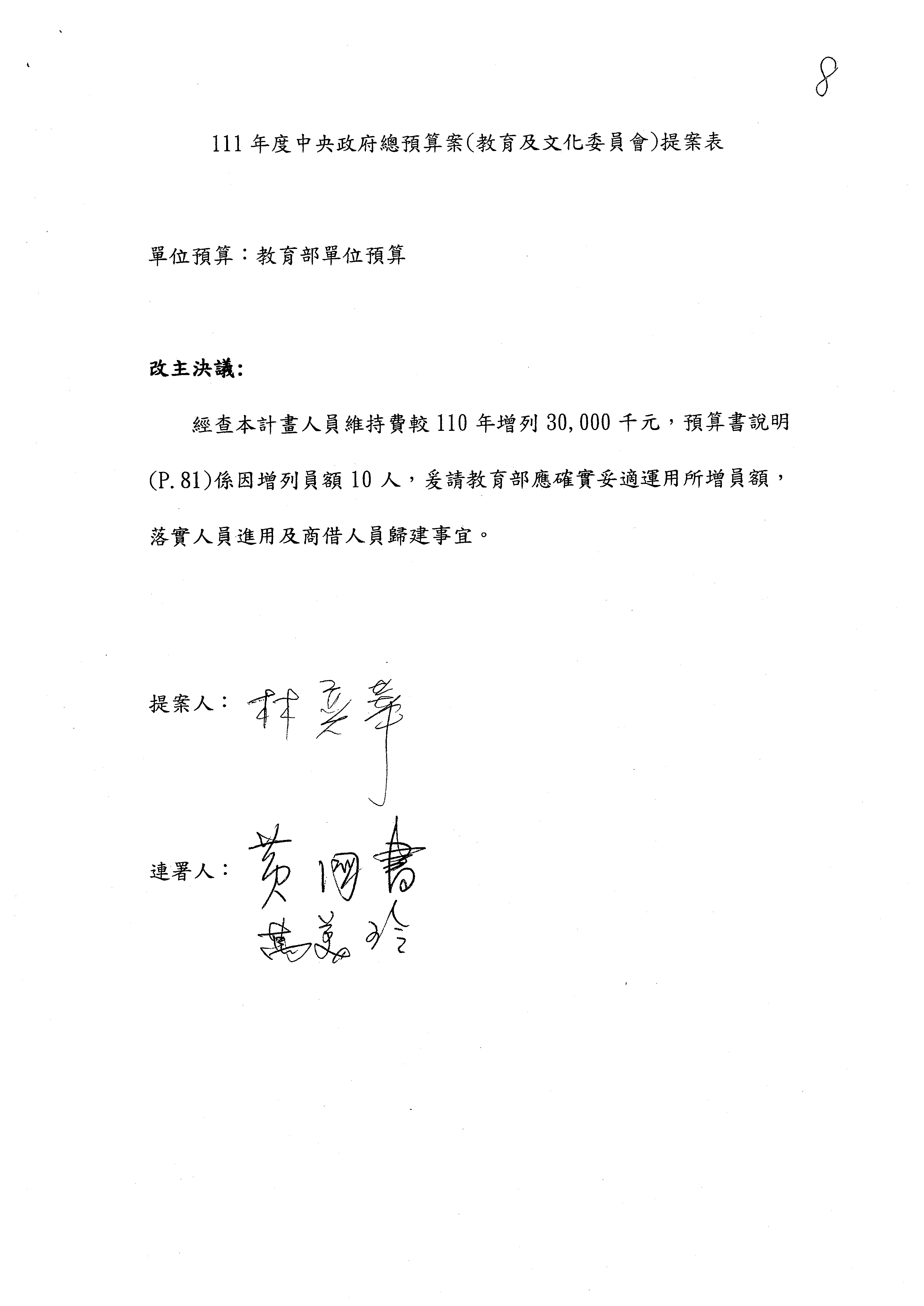 立法院第10屆第4會期教育及文化委員會第8次全體委員會議紀錄