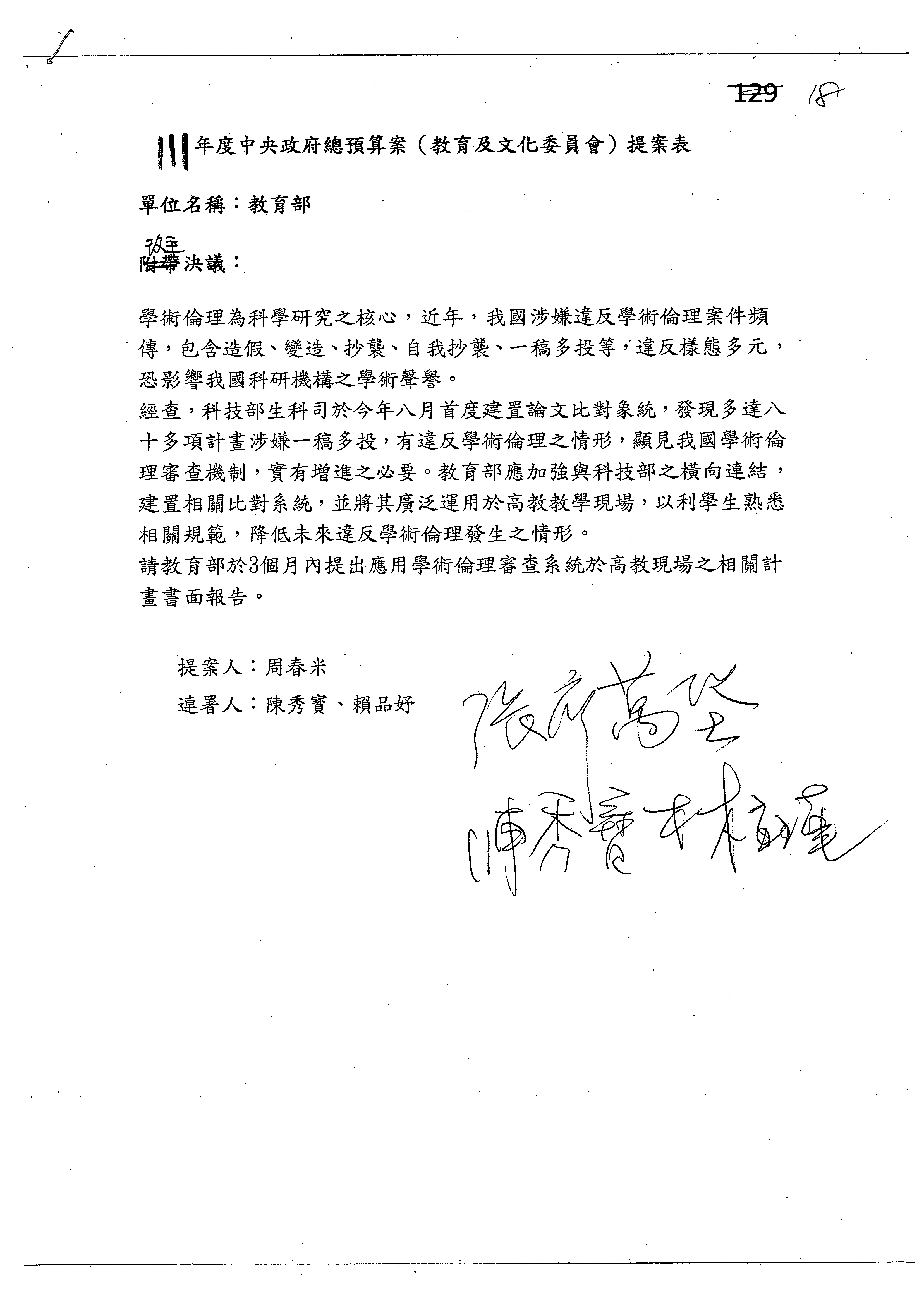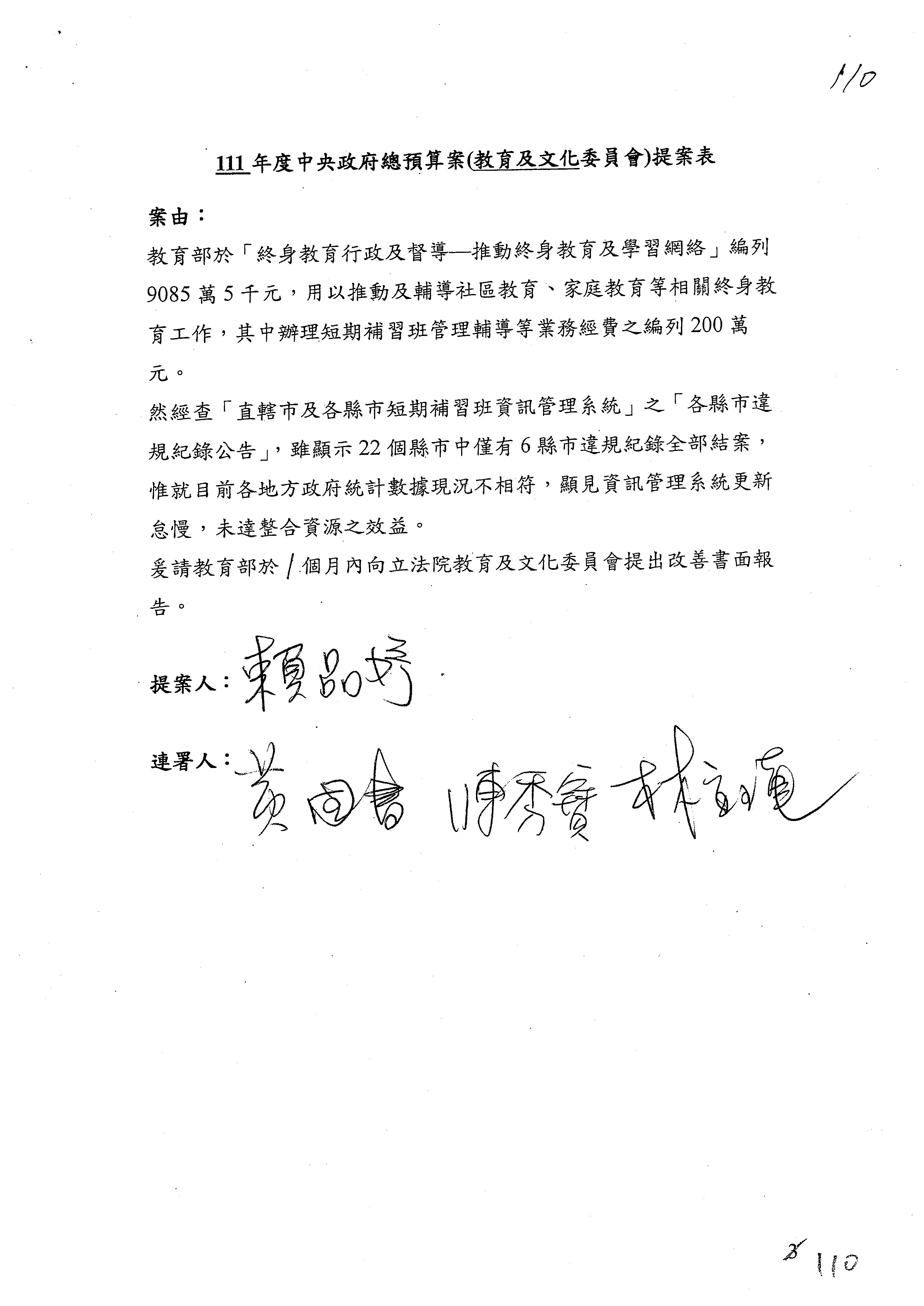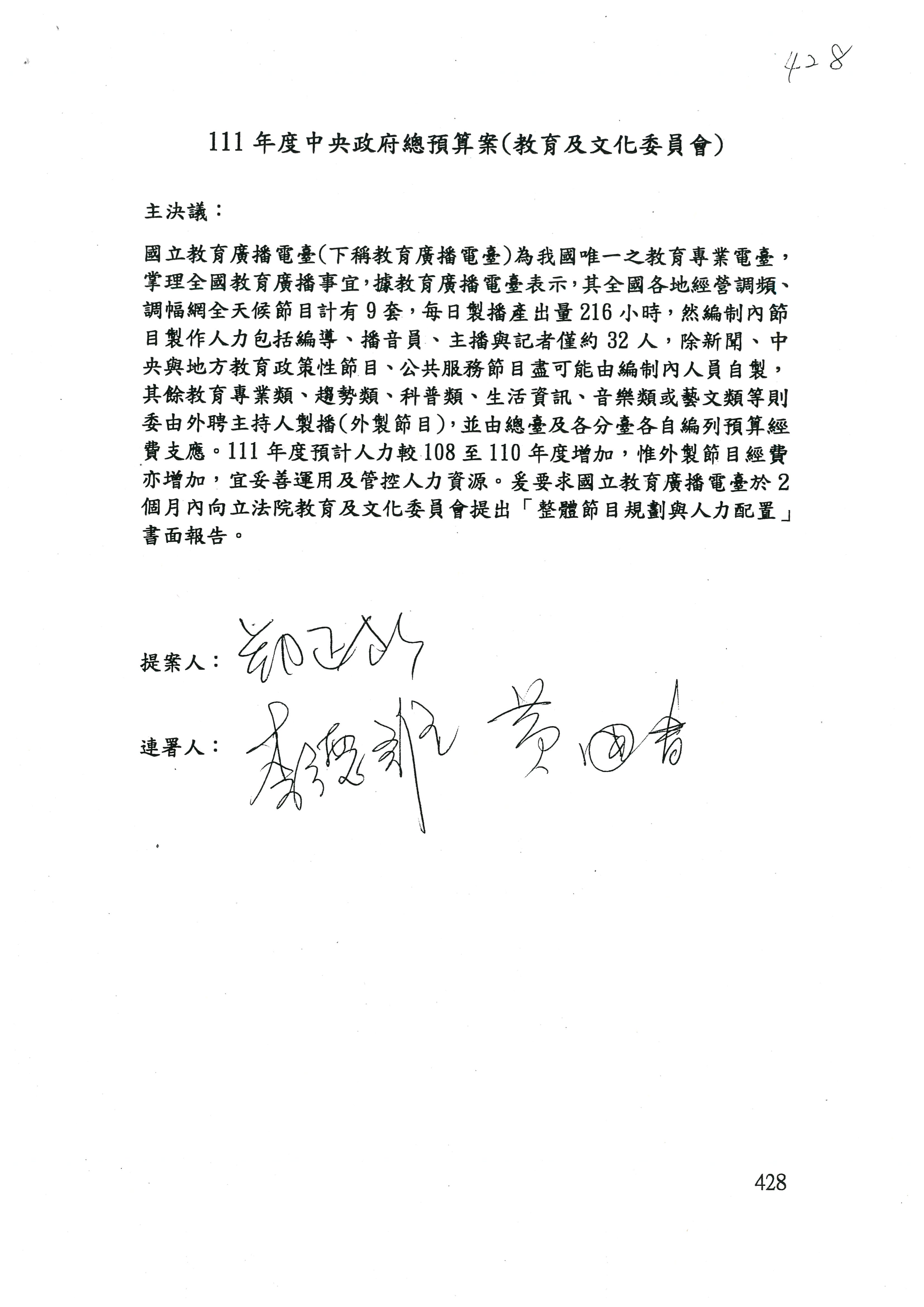 立法院第10屆第4會期教育及文化委員會第8次全體委員會議紀錄