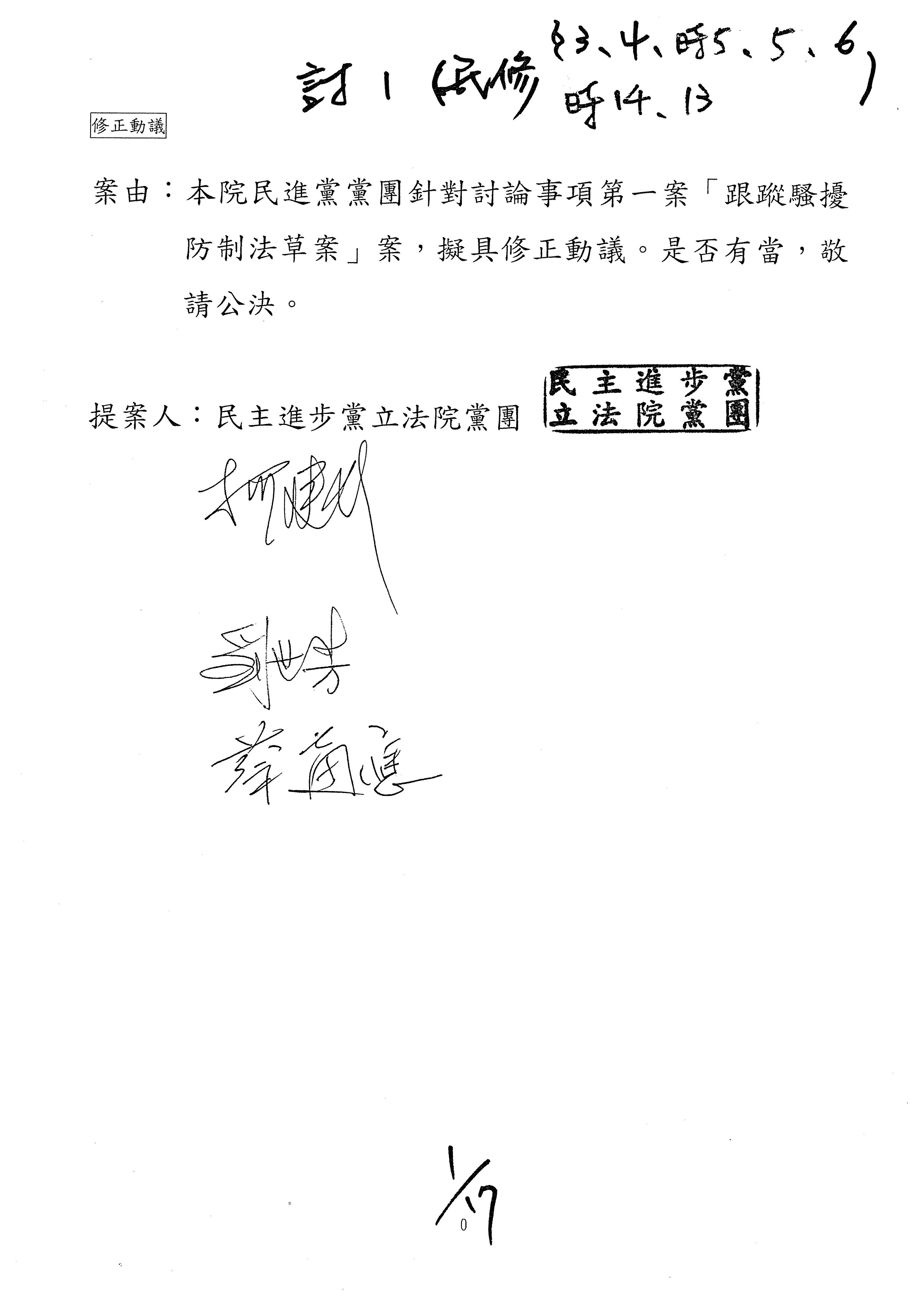 提案人:民主進步黨立法院黨團