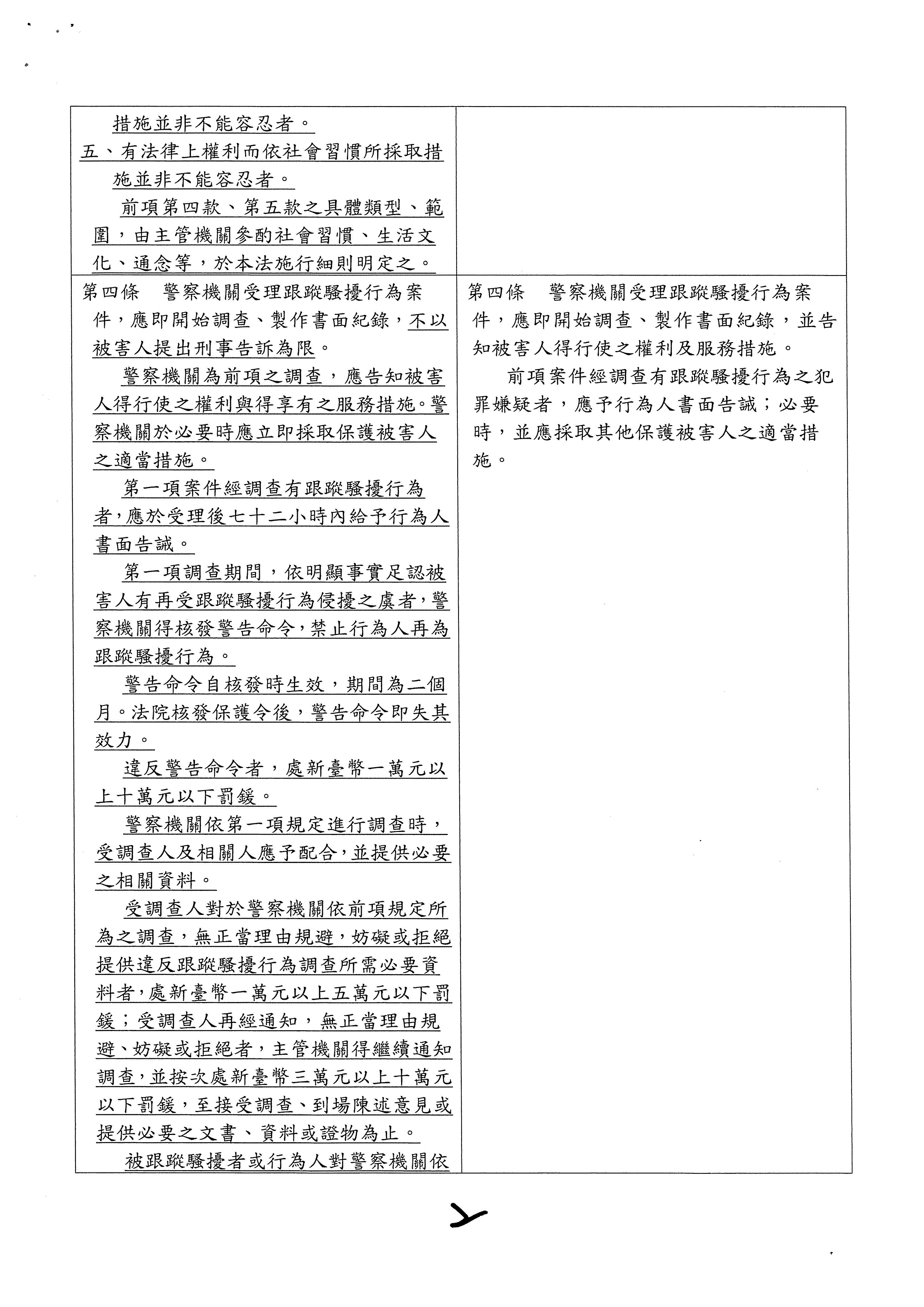 為什麼我說他是一個有名無實的法案,因為民進黨政府迫於民團的壓力,必須要讓跟騷法能夠通過,但問題是他在第三條裡面加了性與性別的要件,大家試想,除非加害人自己承認他是跟性與性別有關,或者是被害人他能夠證明是跟性與性別有關,否則的話,他就絕對不會落入跟蹤騷擾的定義範圍之內,也因為這樣子,所以他在第四條裡面說,如果警察機關在調查之後認為你是有跟騷行為的時候,這時候他才可以給你書面的告誡,但是在第五條的地方又講,如果你有書面告誡行為兩年之內,你有繼續這樣的跟騷的行為時,你才可以申請保護令,這樣的規定是不是讓這個法案全部形同虛設?這個是我們最顧慮的。