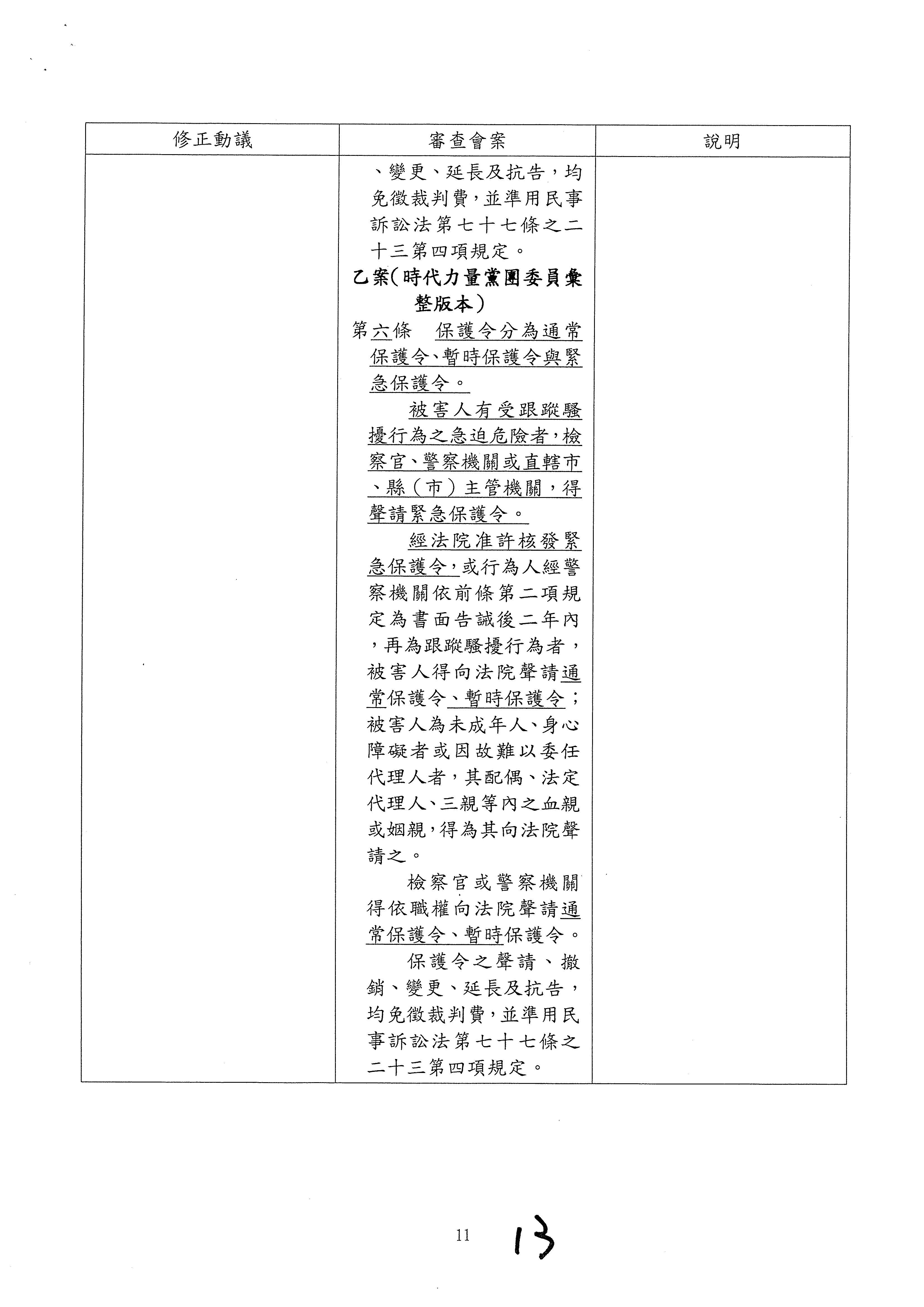 王委員婉諭:(13時27分)跟蹤騷擾防制法這部法案的制定,我們已經晚於其他國家許多,也忽視了民間團體的奔走倡議多年,也奠基在許多悲劇之上,才終於在今天得到三讀通過,完成被害人保護的重要里程碑。