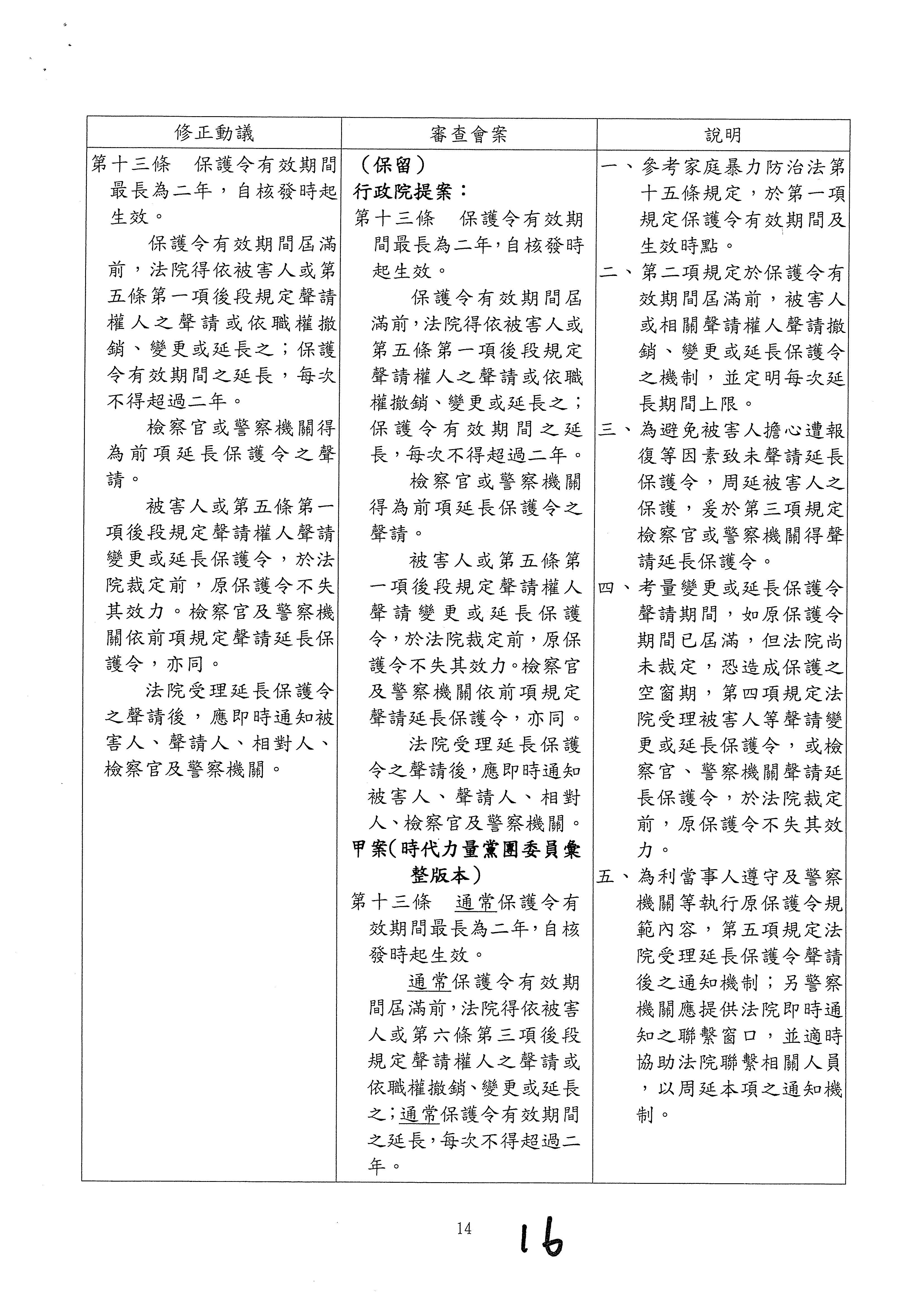 一、參考家庭暴力防治法第十五條規定,於第一項規定保護令有效期間及生效時點。 二、第二項規定於保護令有效期間屆滿前,被害人或相關聲請權人聲請撤銷、變更或延長保護令之機制,並定明每次延長期間上限。 三、為避免被害人擔心遭報復等因素致未聲請延長保護令,周延被害人之保護,爰於第三項規定檢察官或警察機關得聲請延長保護令。 四、考量變更或延長保護令聲請期間,如原保護令期間已屆滿,但法院尚未裁定,恐造成保護之空窗期,第四項規定法院受理被害人等聲請變更或延長保護令,或檢察官、警察機關聲請延長保護令,於法院裁定前,原保護令不失其效力。 五、為利當事人遵守及警察機關等執行原保護令規範內容,第五項規定法院受理延長保護令聲請後之通知機制;另警察機關應提供法院即時通知之聯繫窗口,並適時協助法院聯繫相關人員,以周延本項之通知機制。 |
