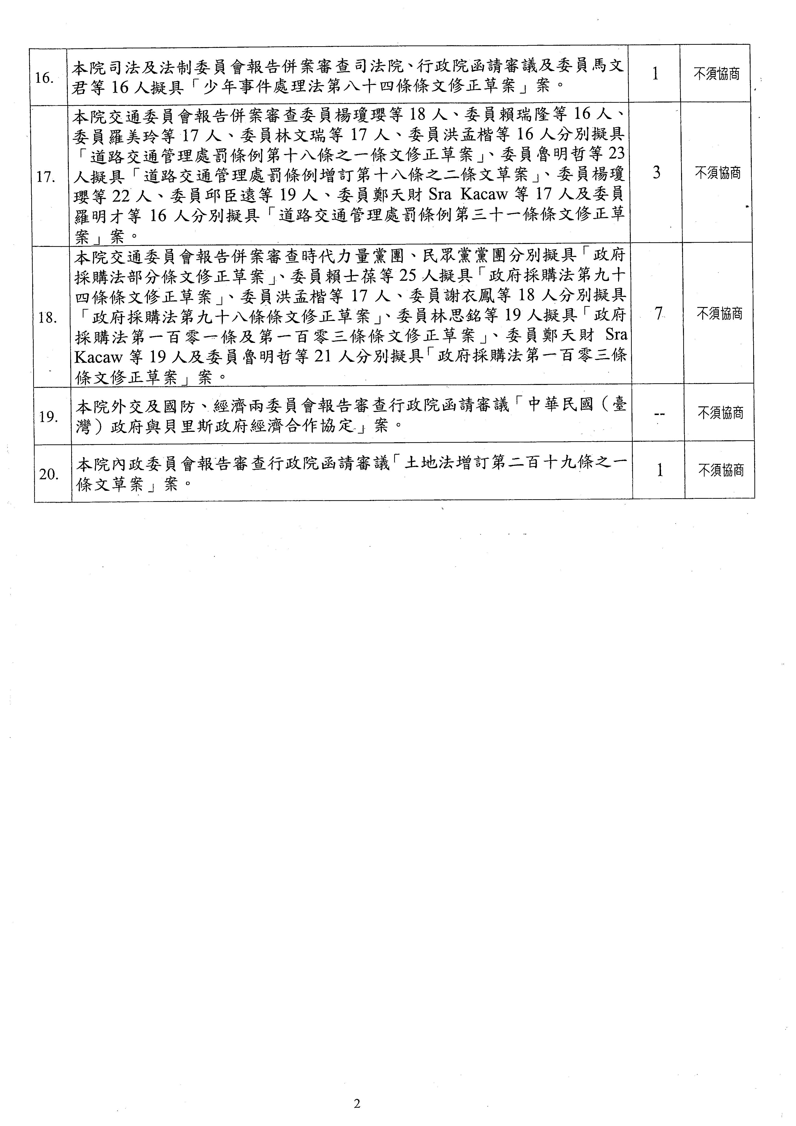 請問各位,對吳委員玉琴的提議有無異議?(無)無異議,通過。本次會議討論事項的總數內容與順序確定。討論事項以吳委員玉琴提案的討論事項修正通過。其他提案就不再處理。