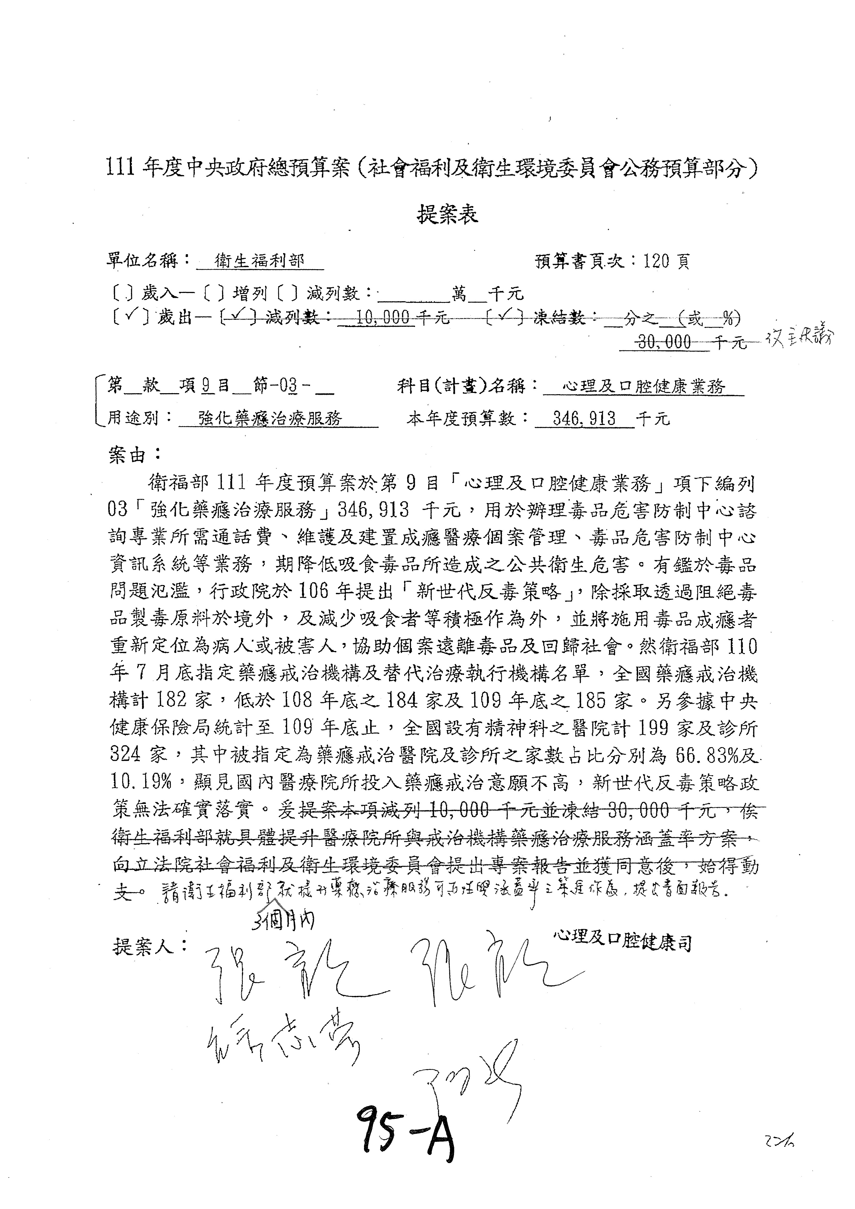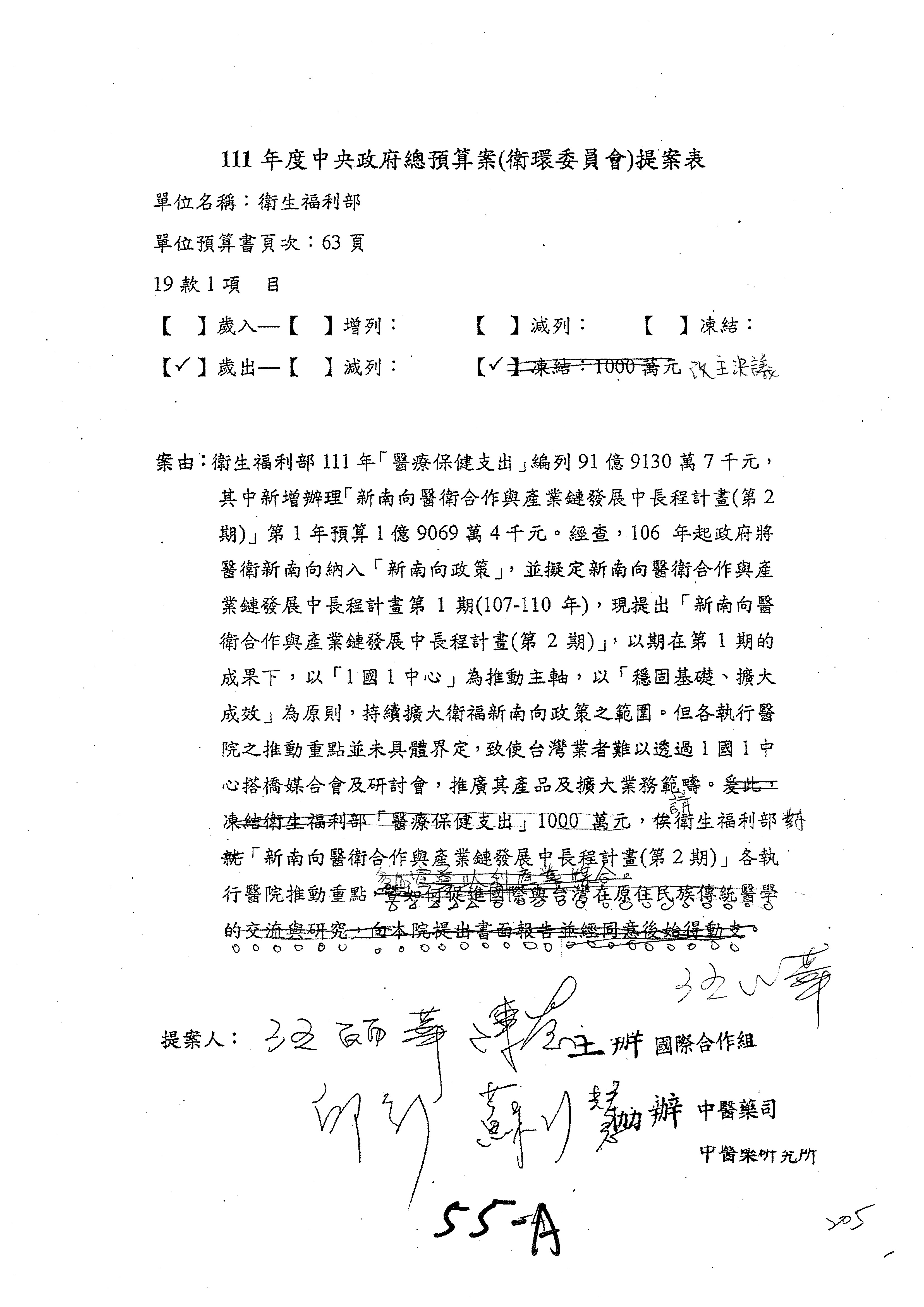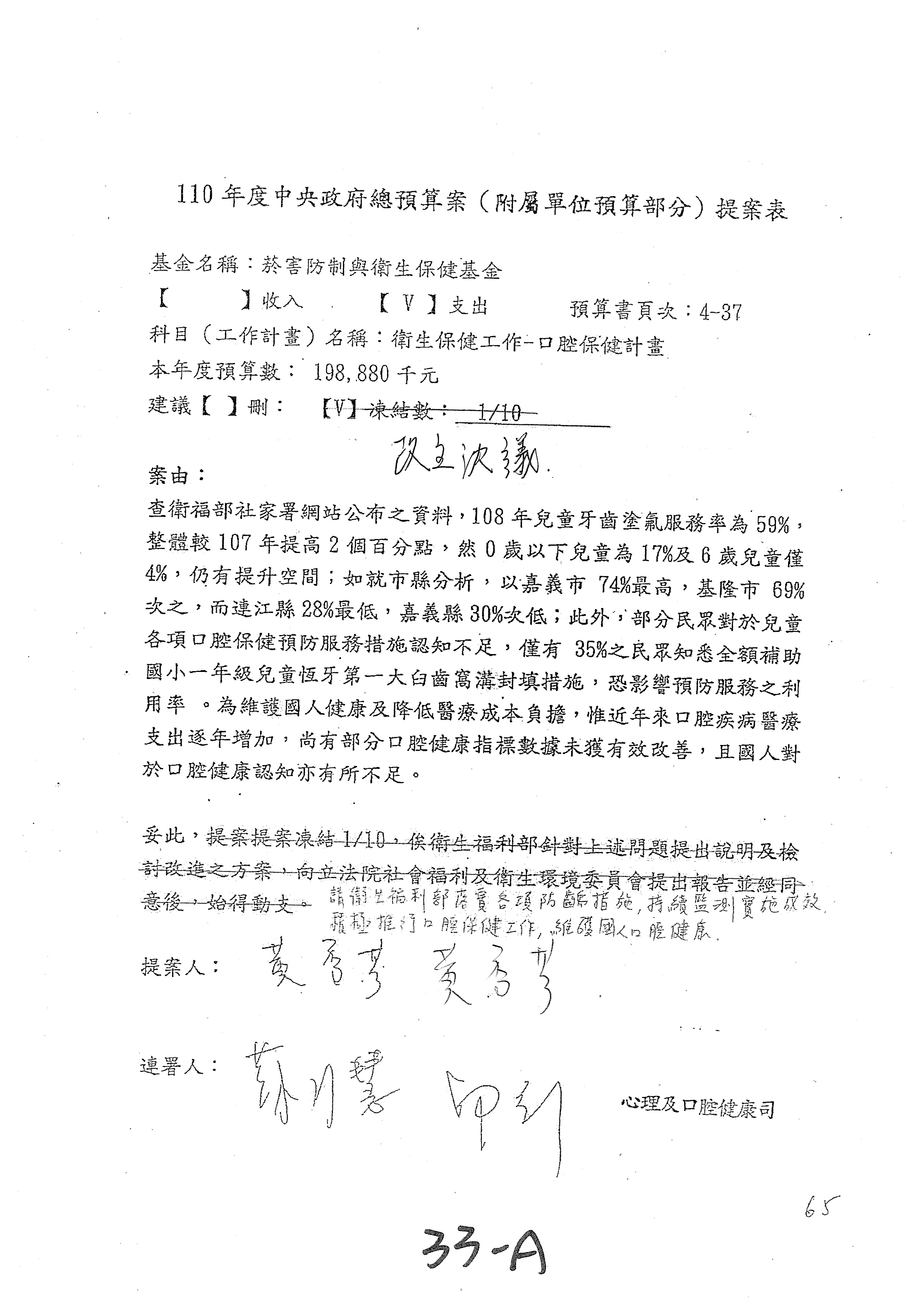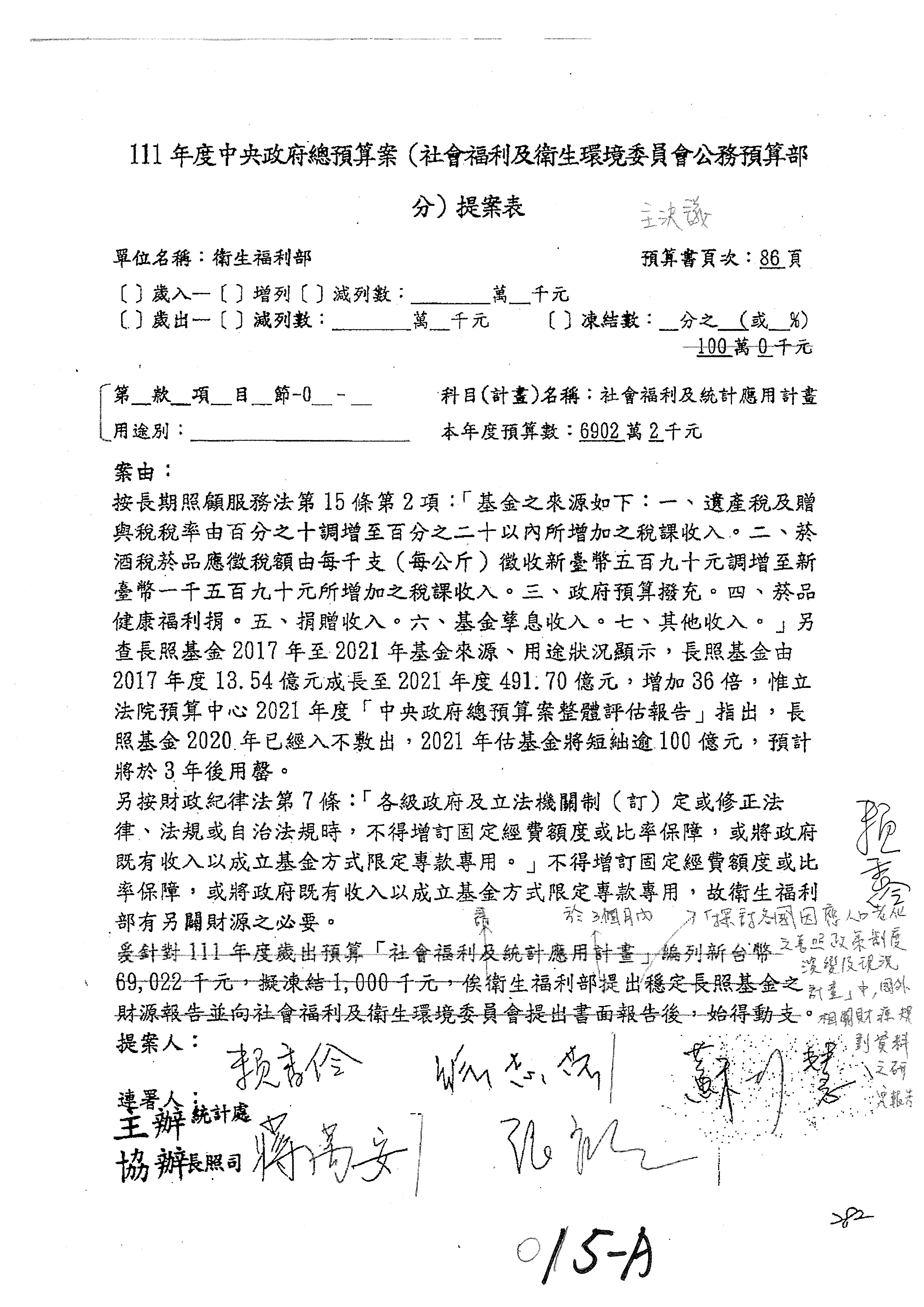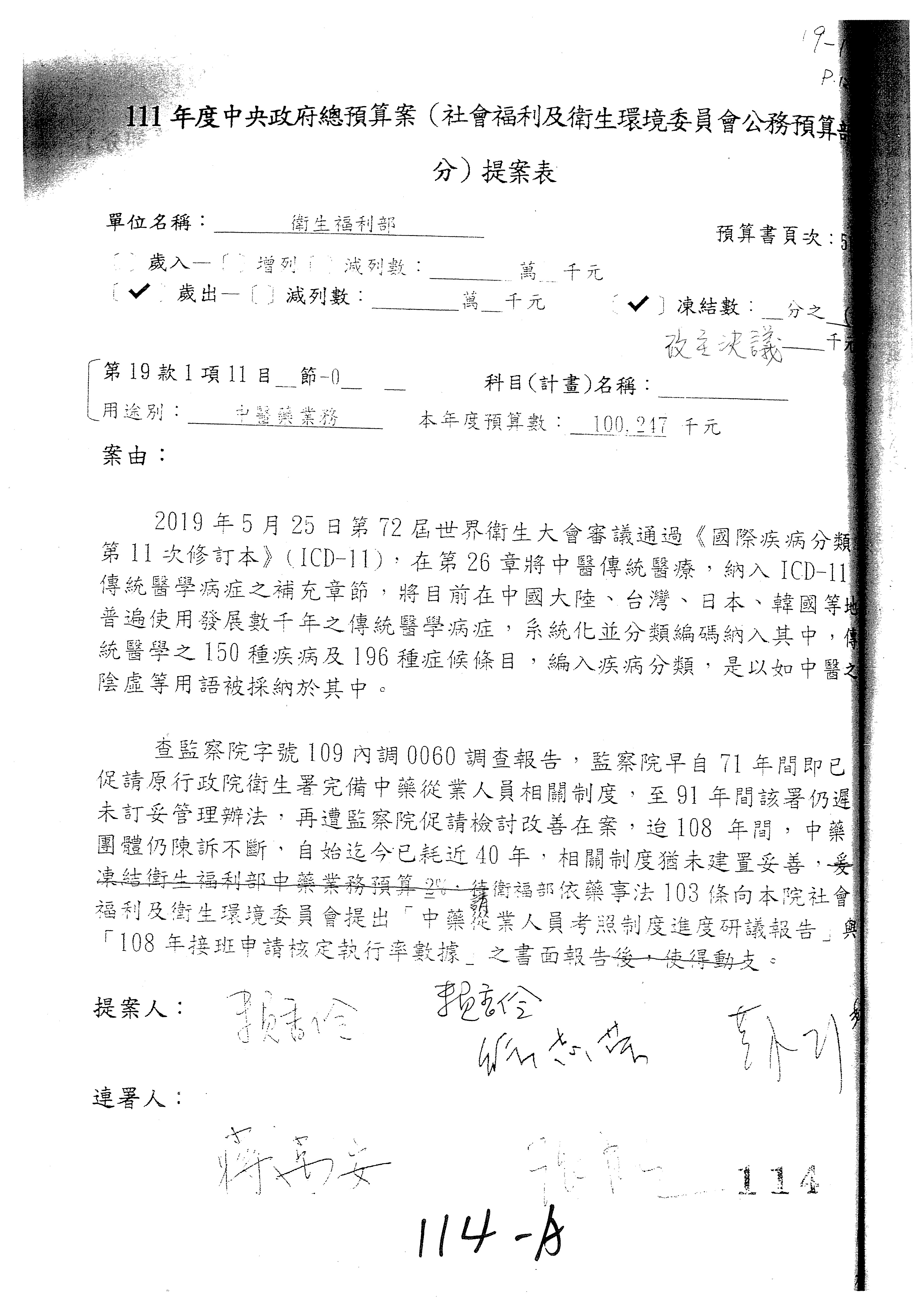 祝司長健芳:吳委員已經簽字,凍結「創新專業服務試辦計畫」這個分支計畫100萬元,並提出書面報告。