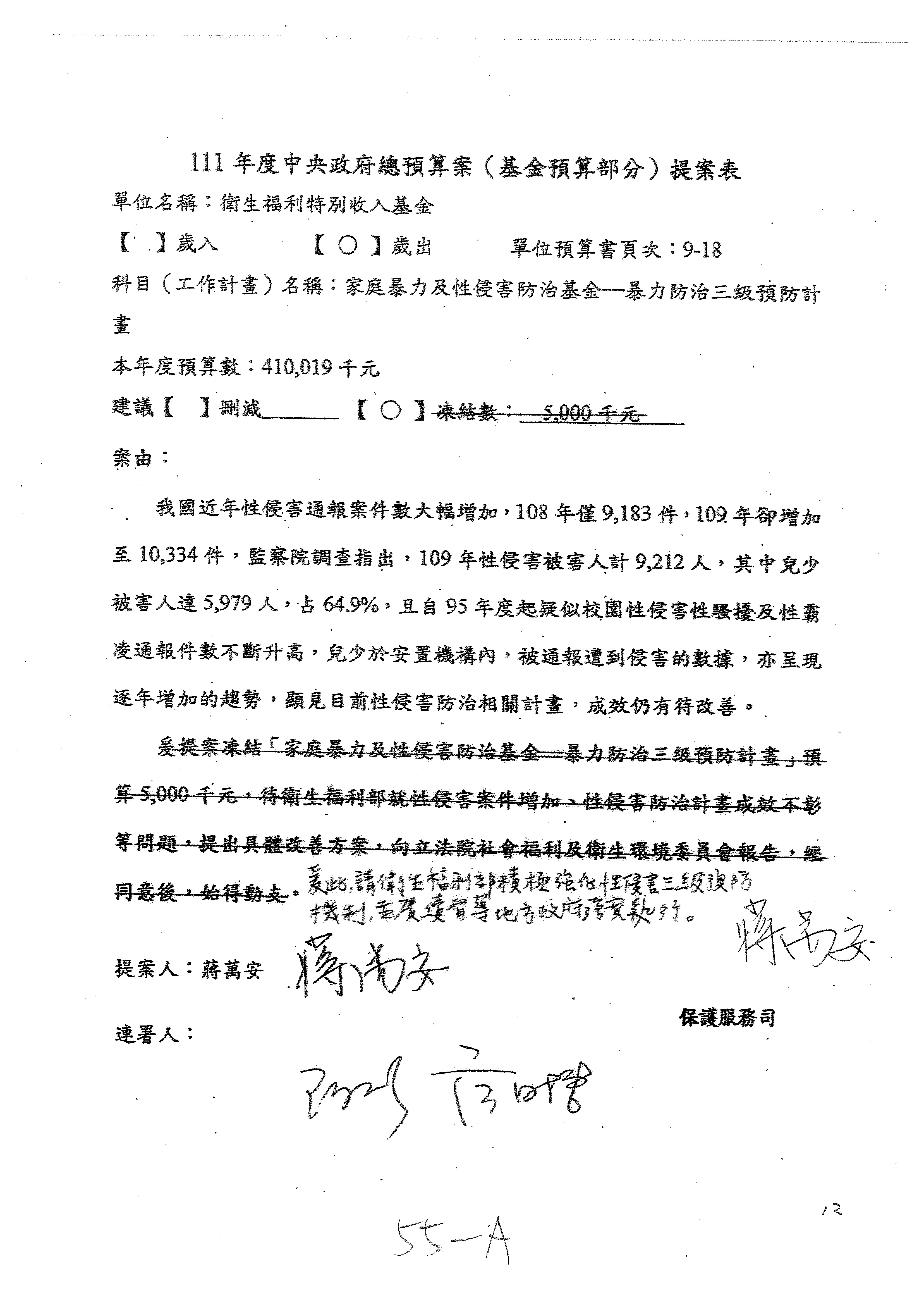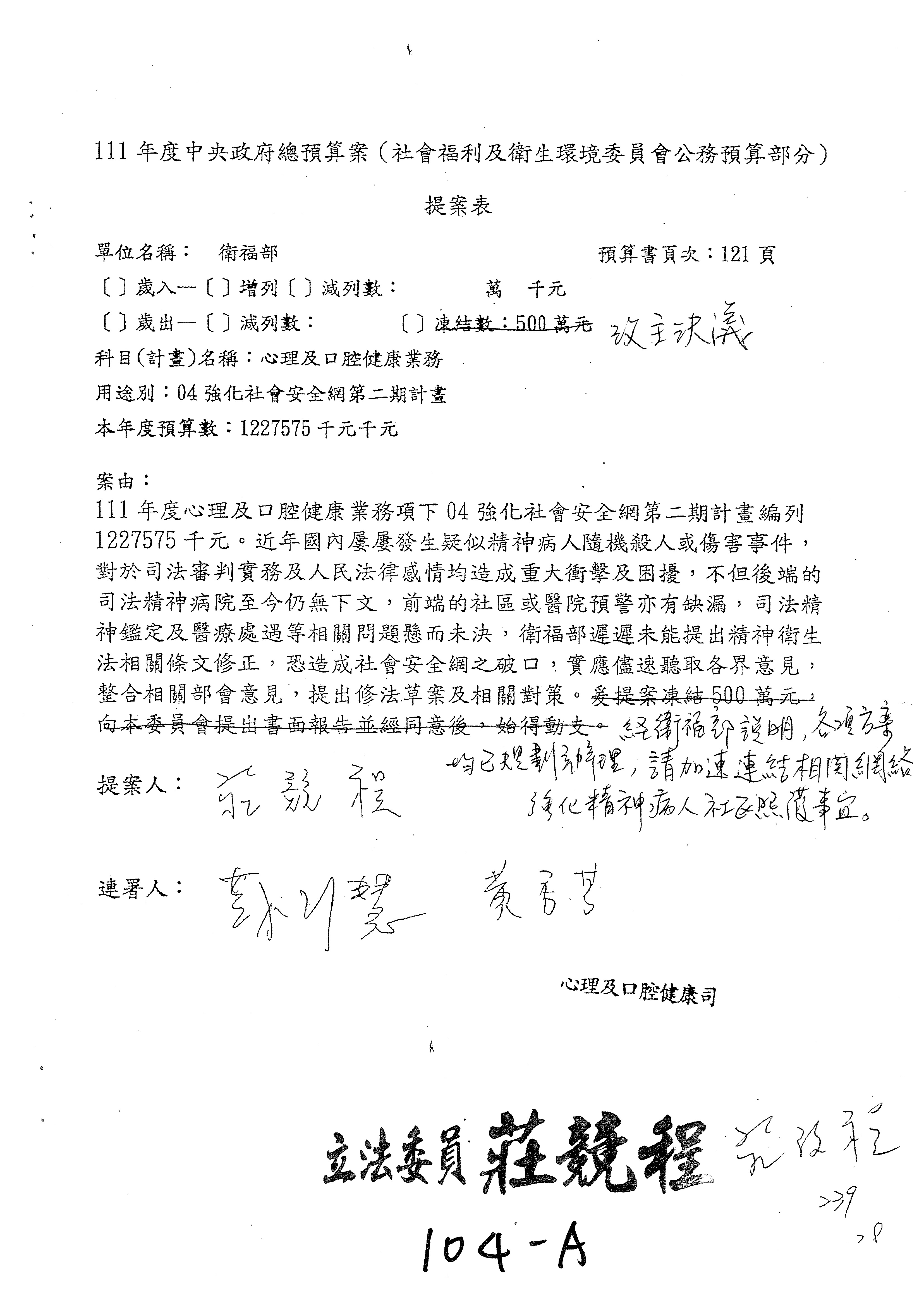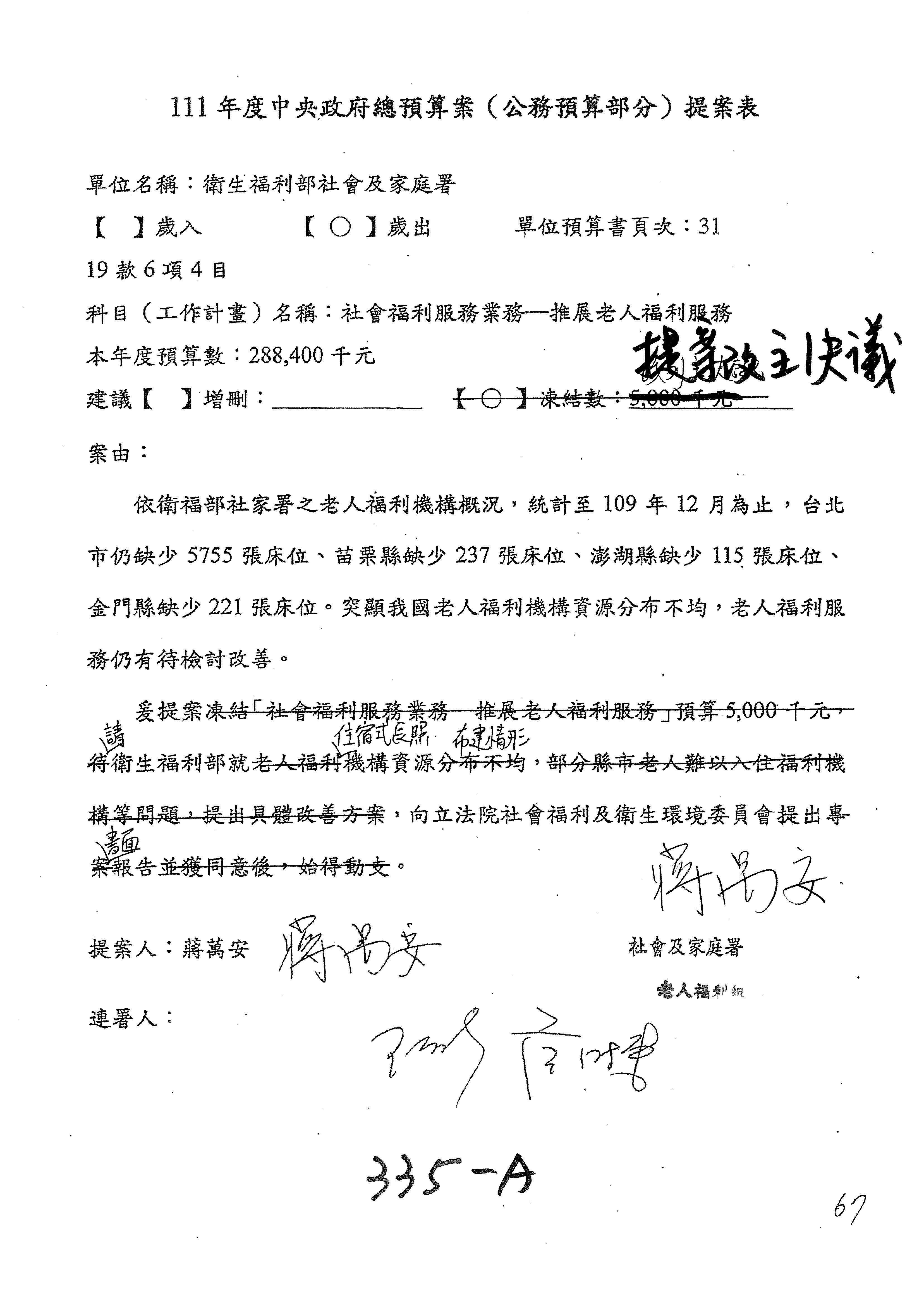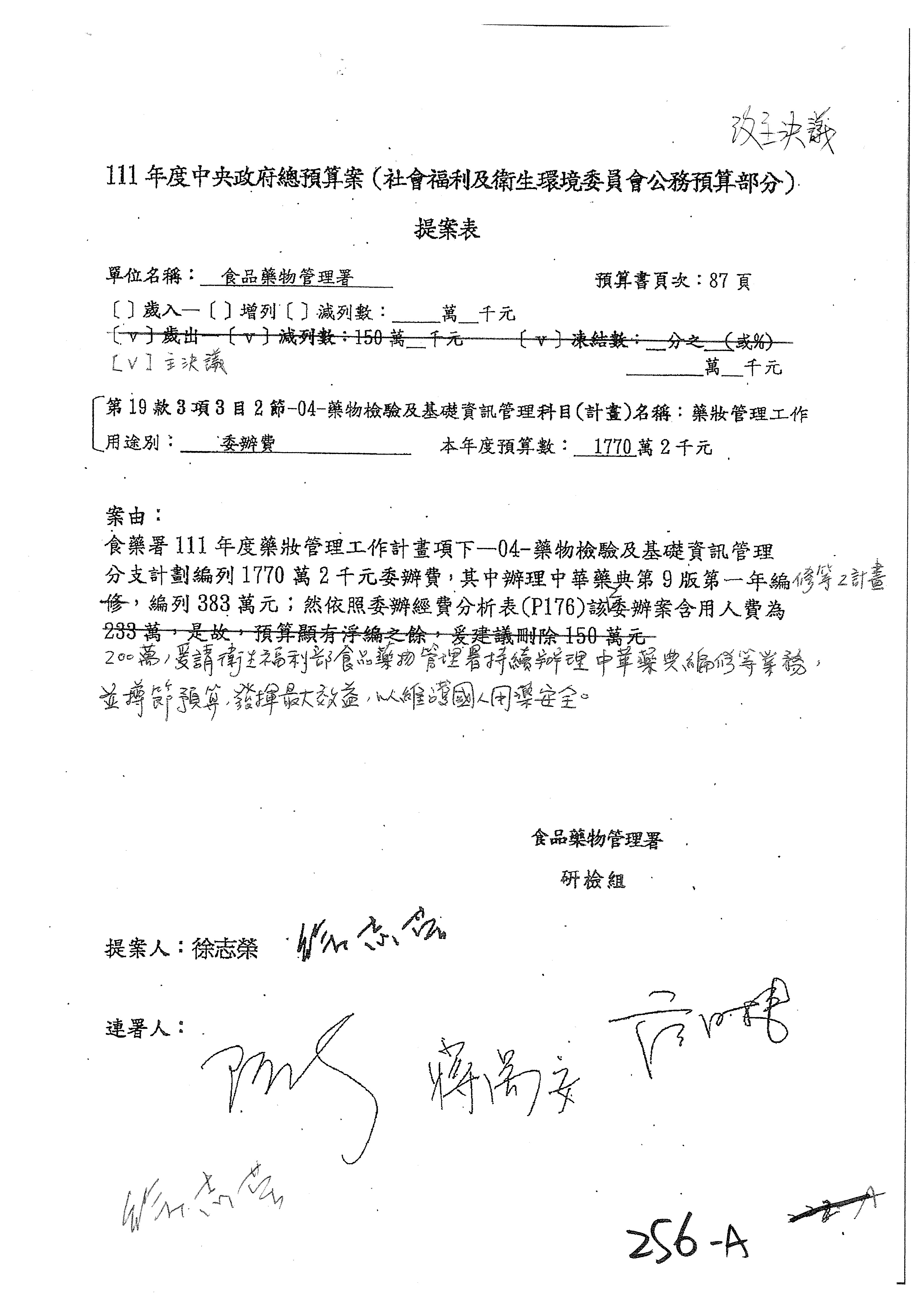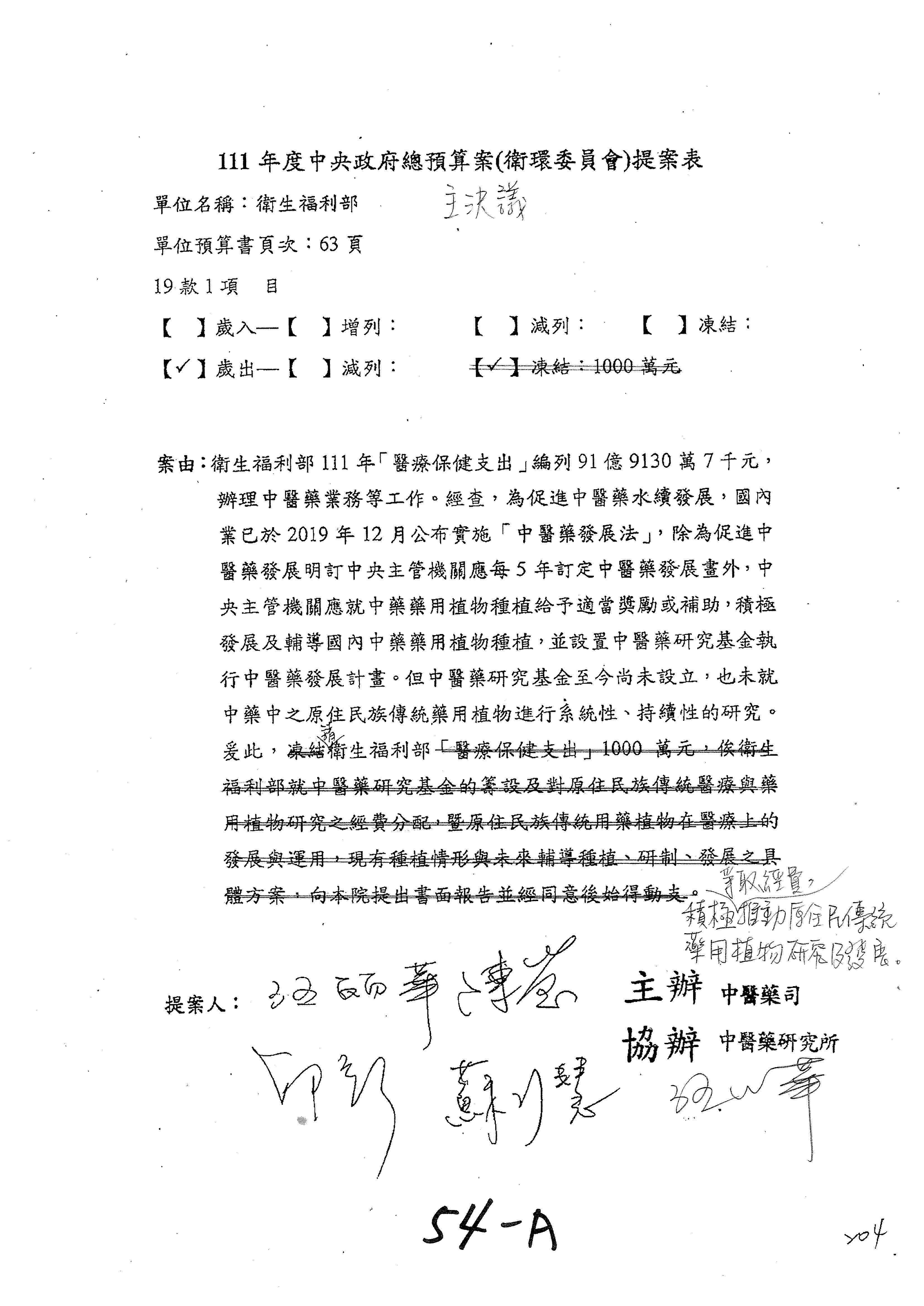 祝司長健芳:吳委員已經簽字,凍結「創新專業服務試辦計畫」這個分支計畫100萬元,並提出書面報告。