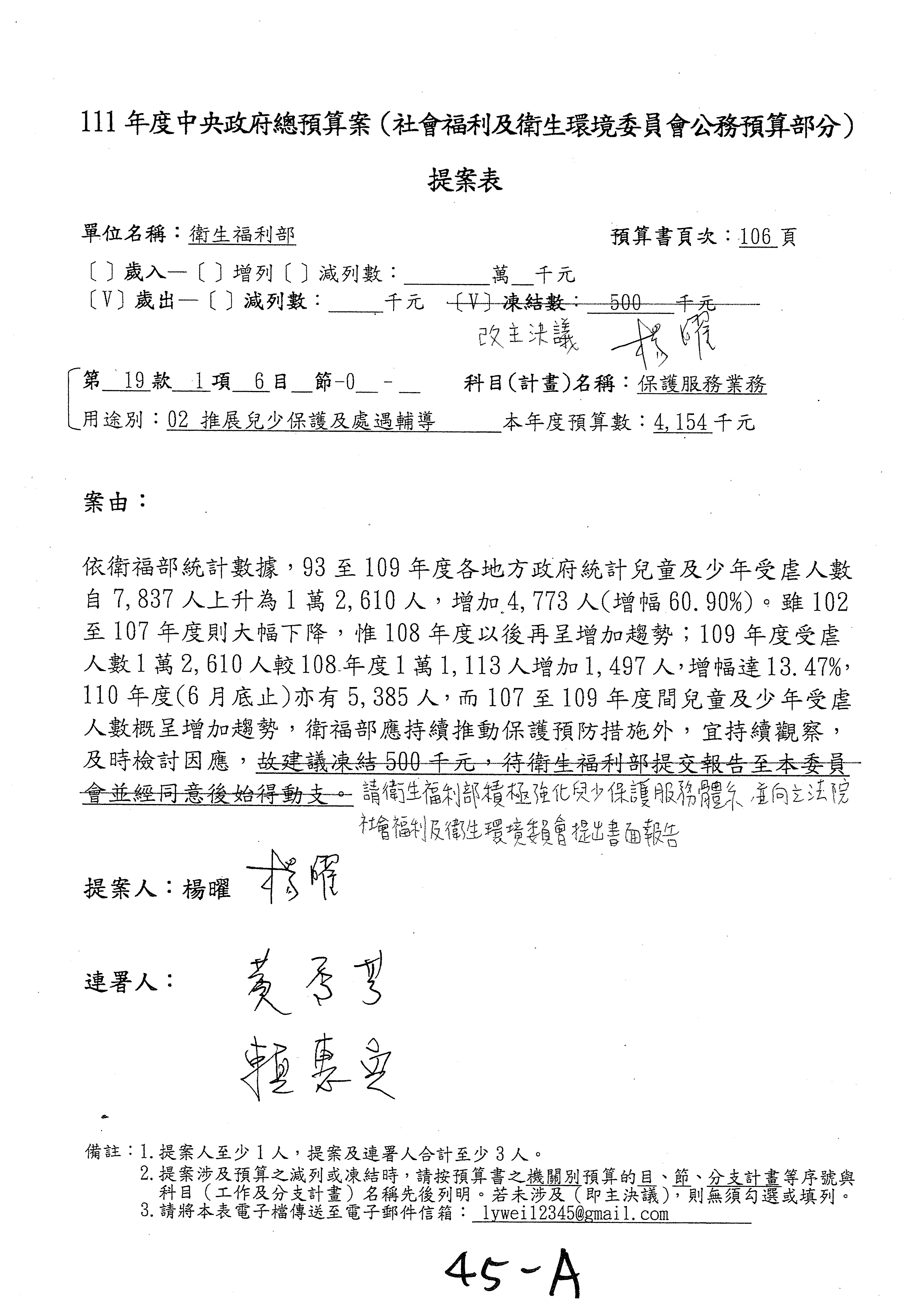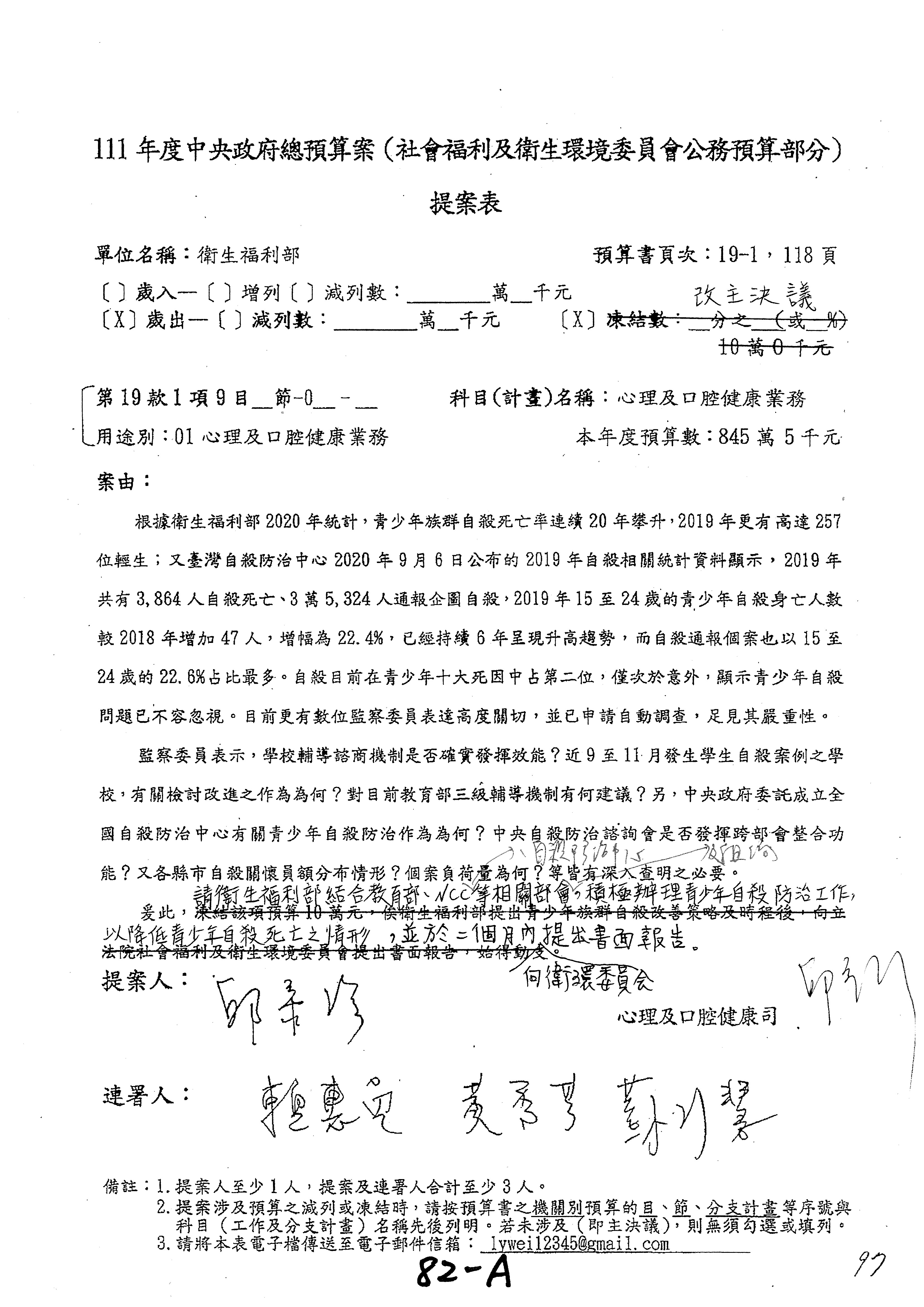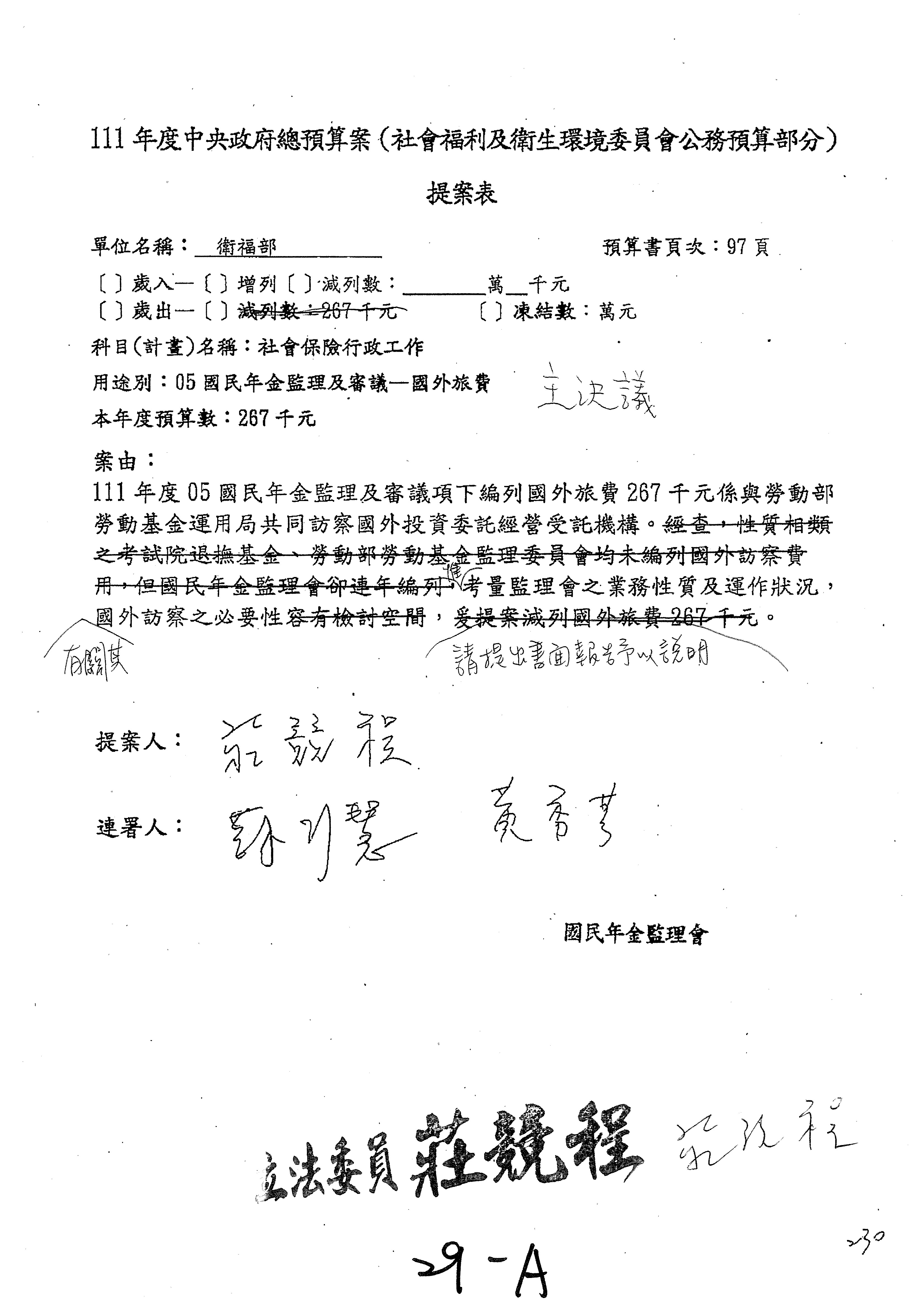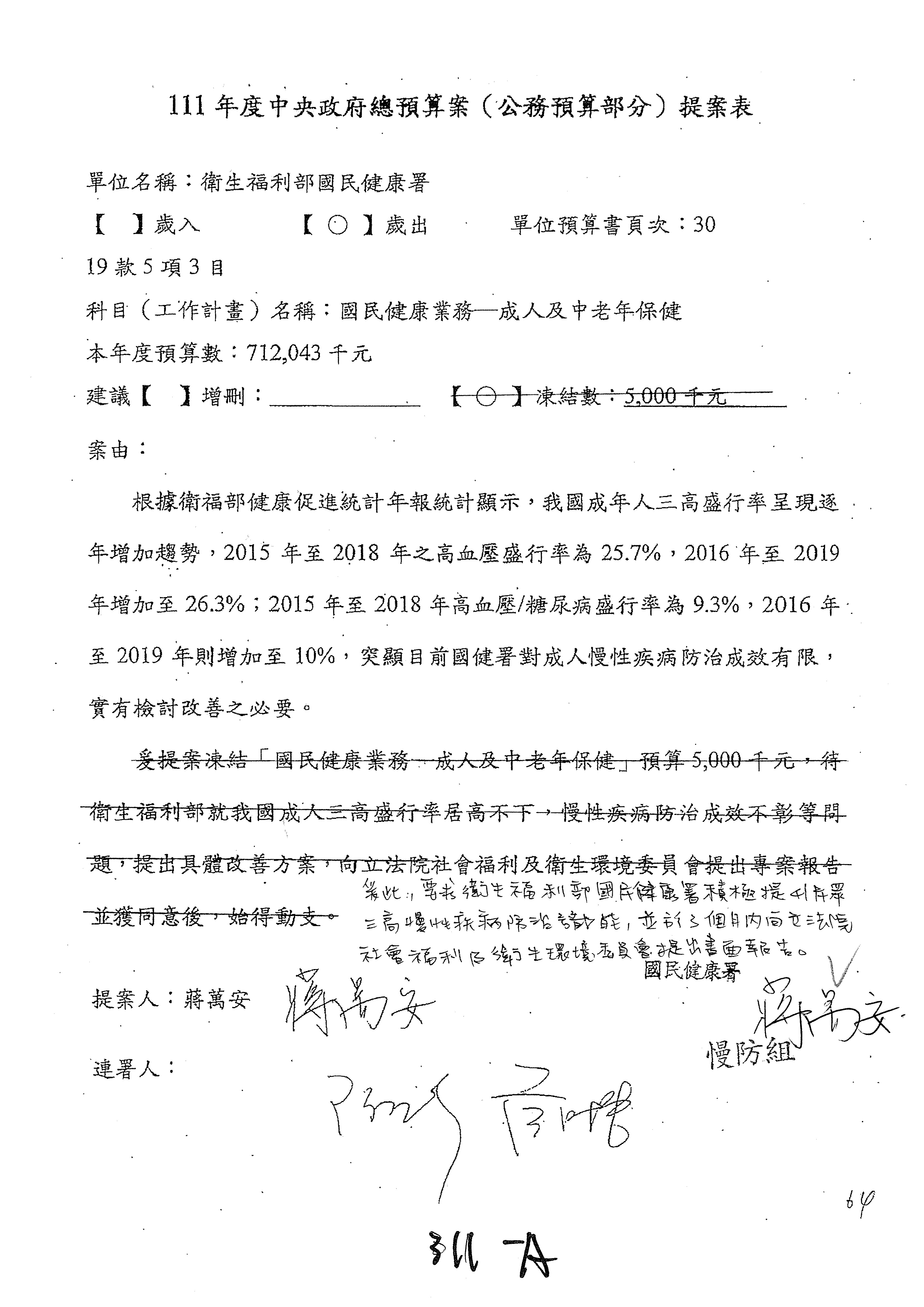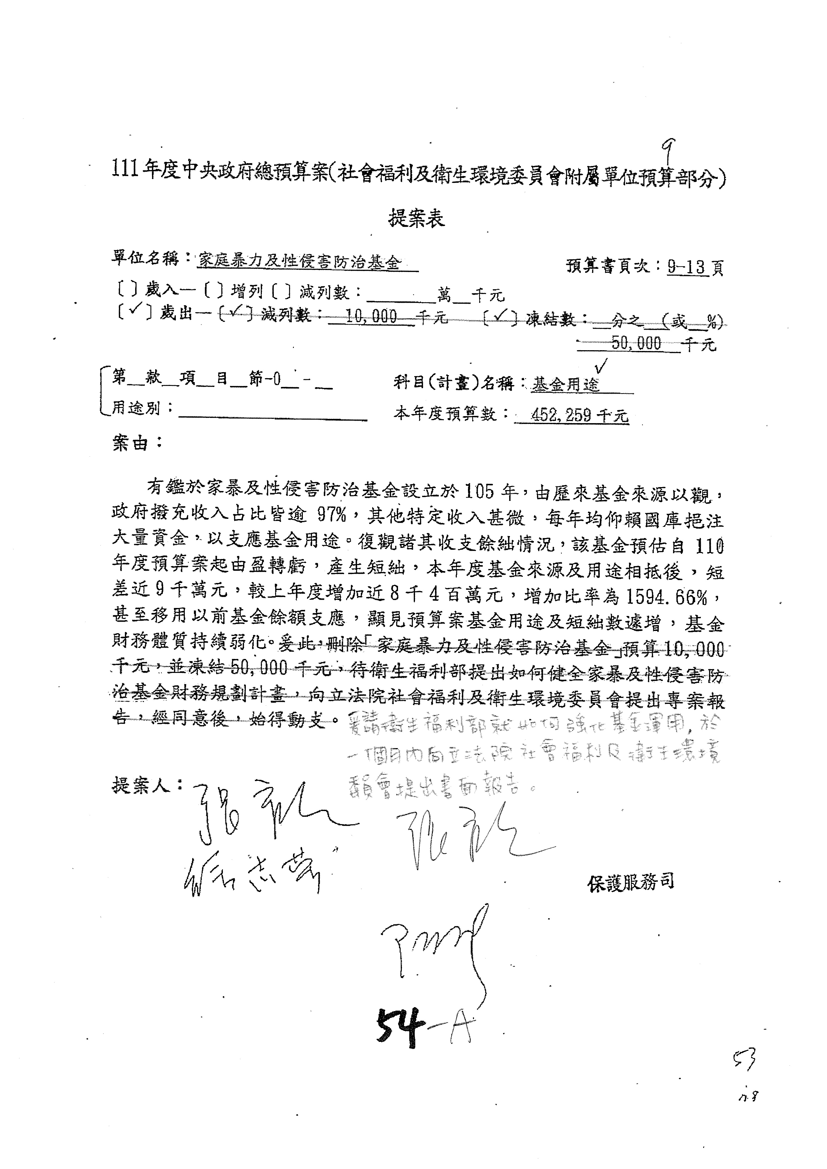 祝司長健芳:吳委員已經簽字,凍結「創新專業服務試辦計畫」這個分支計畫100萬元,並提出書面報告。