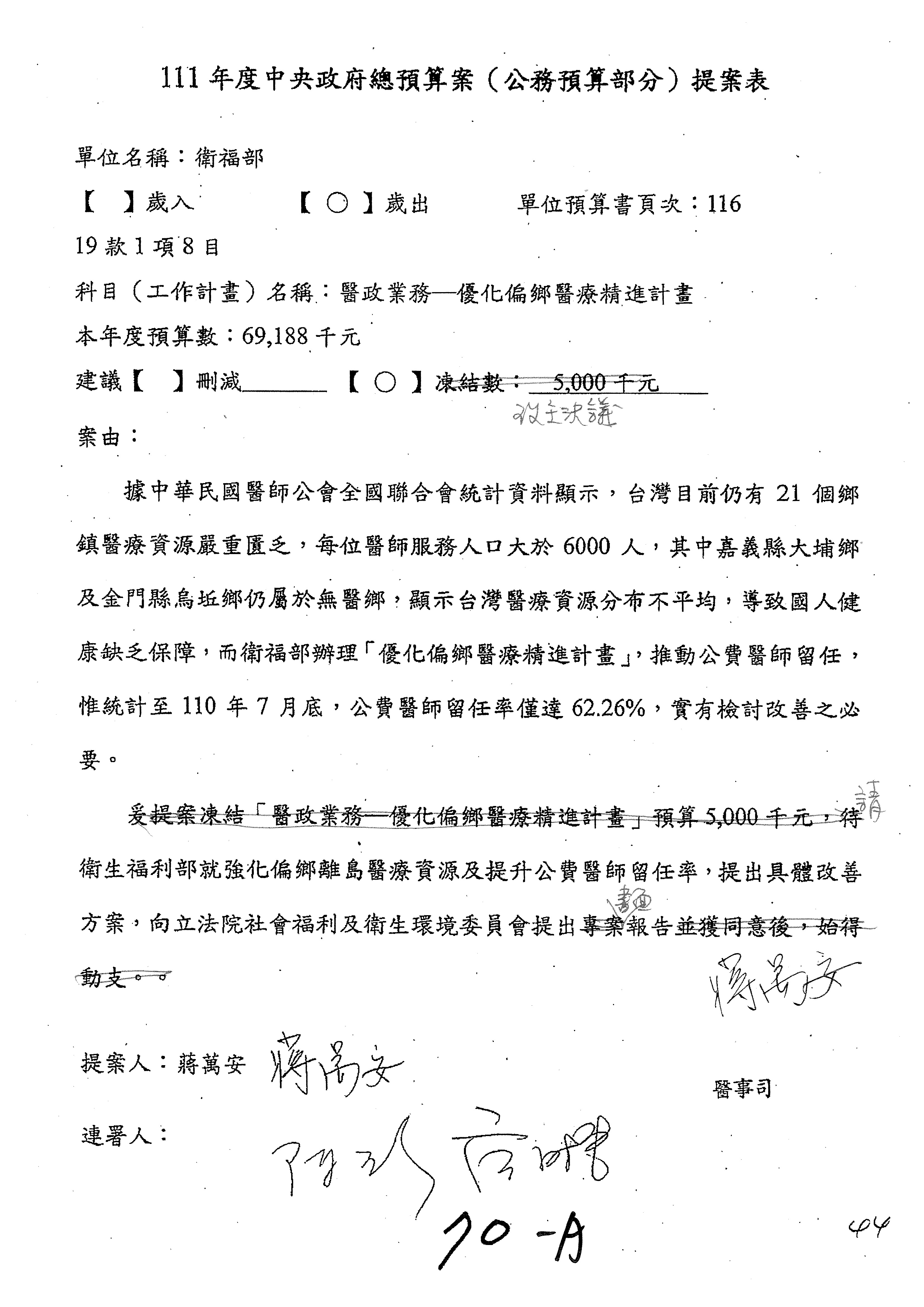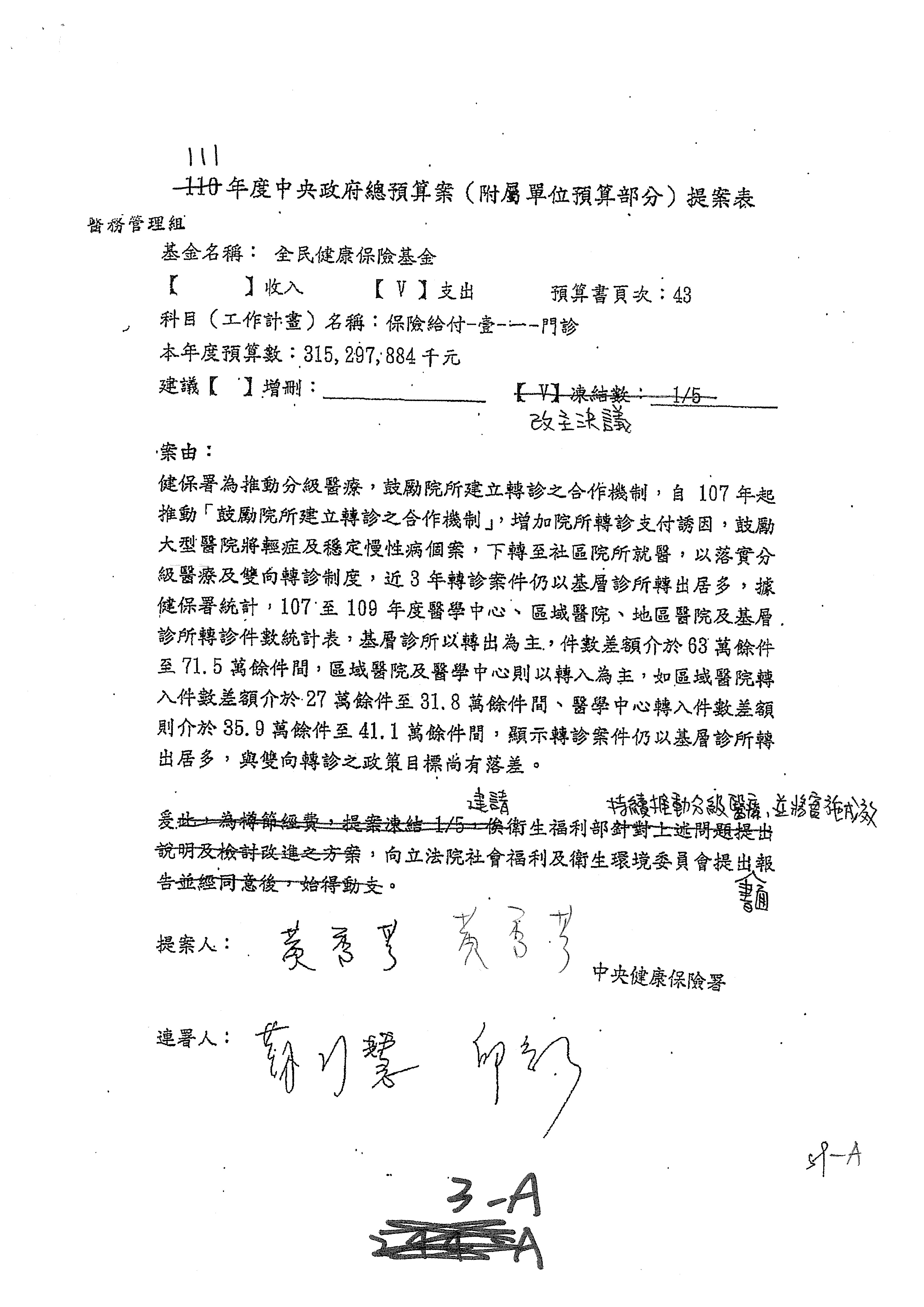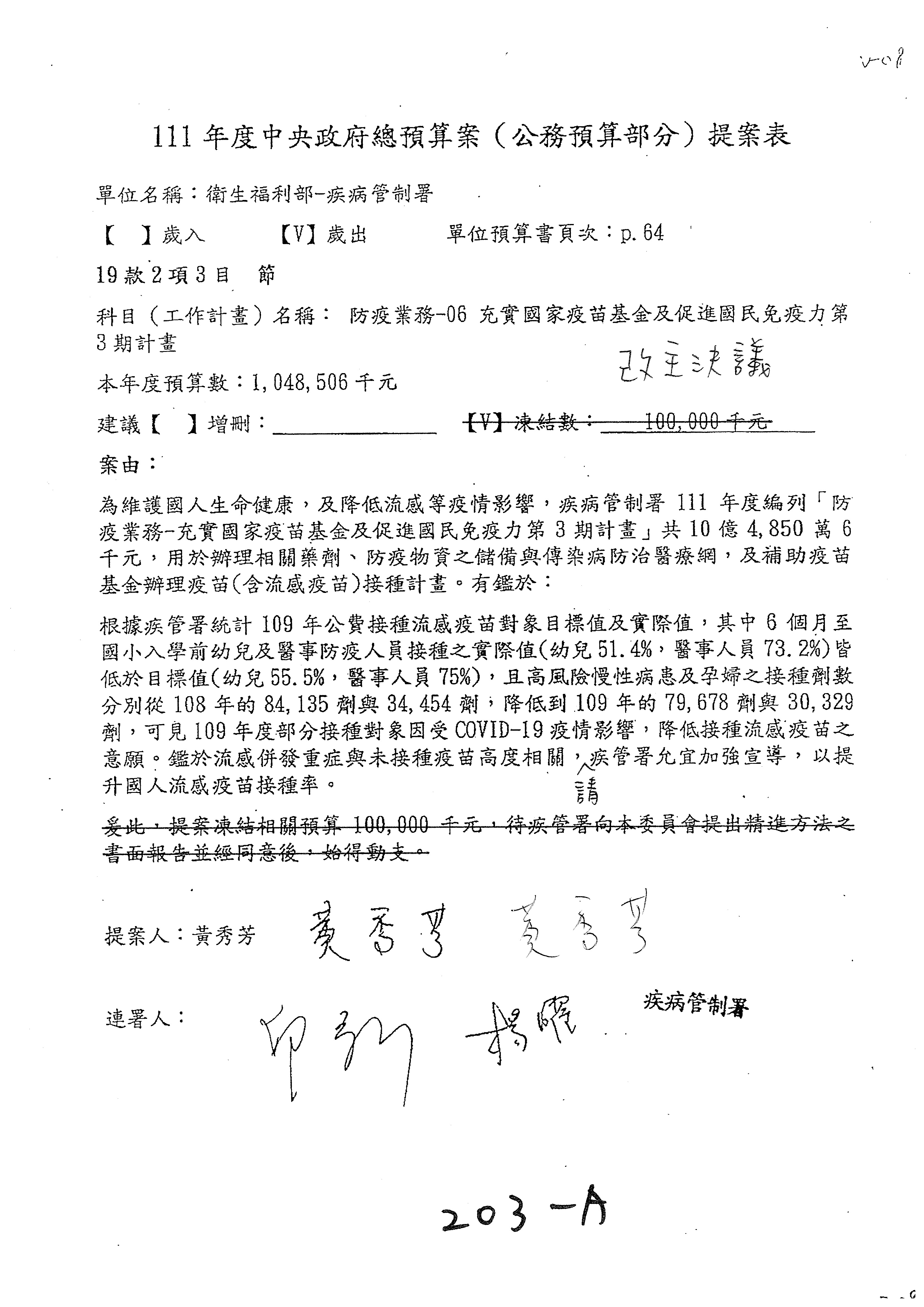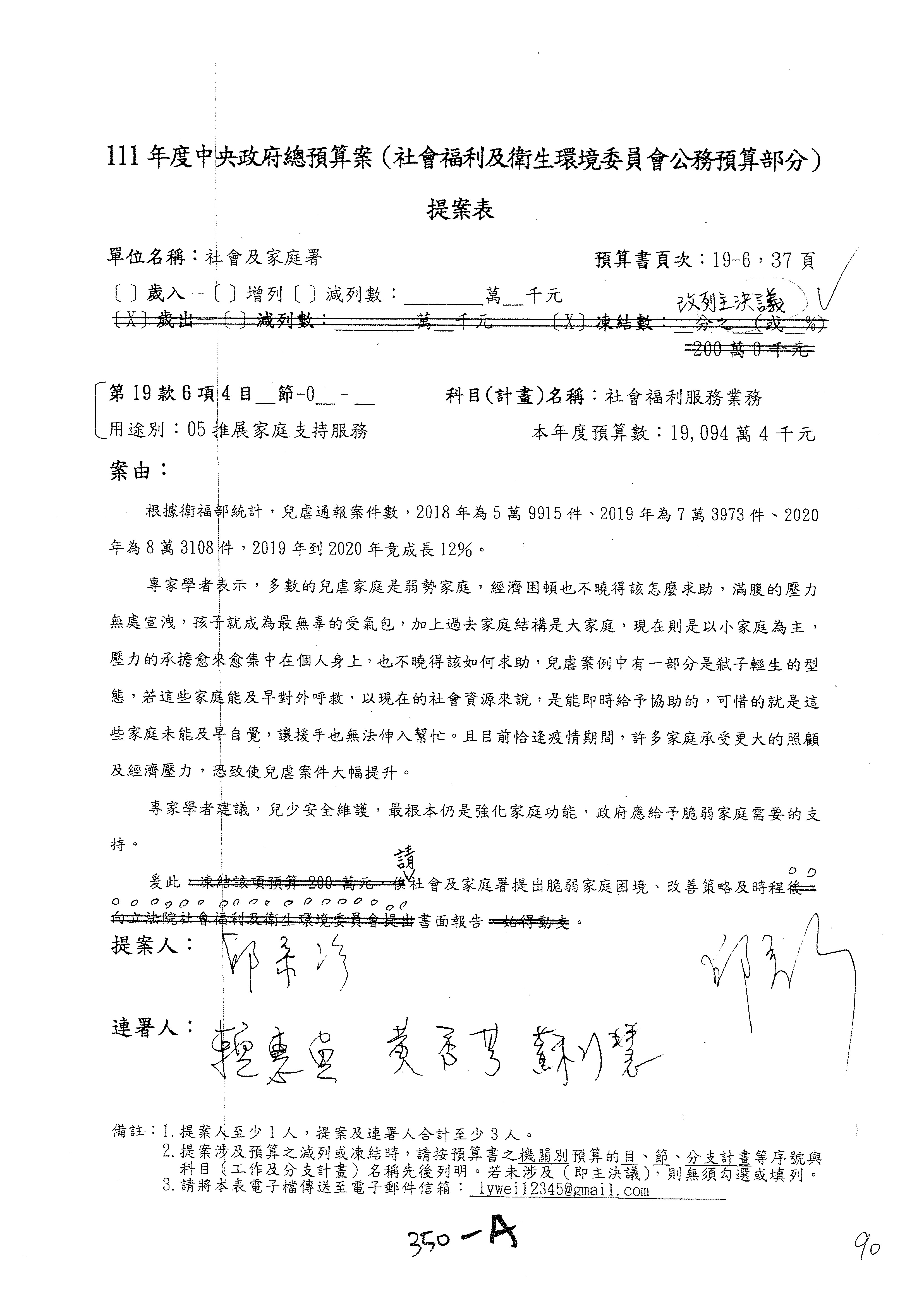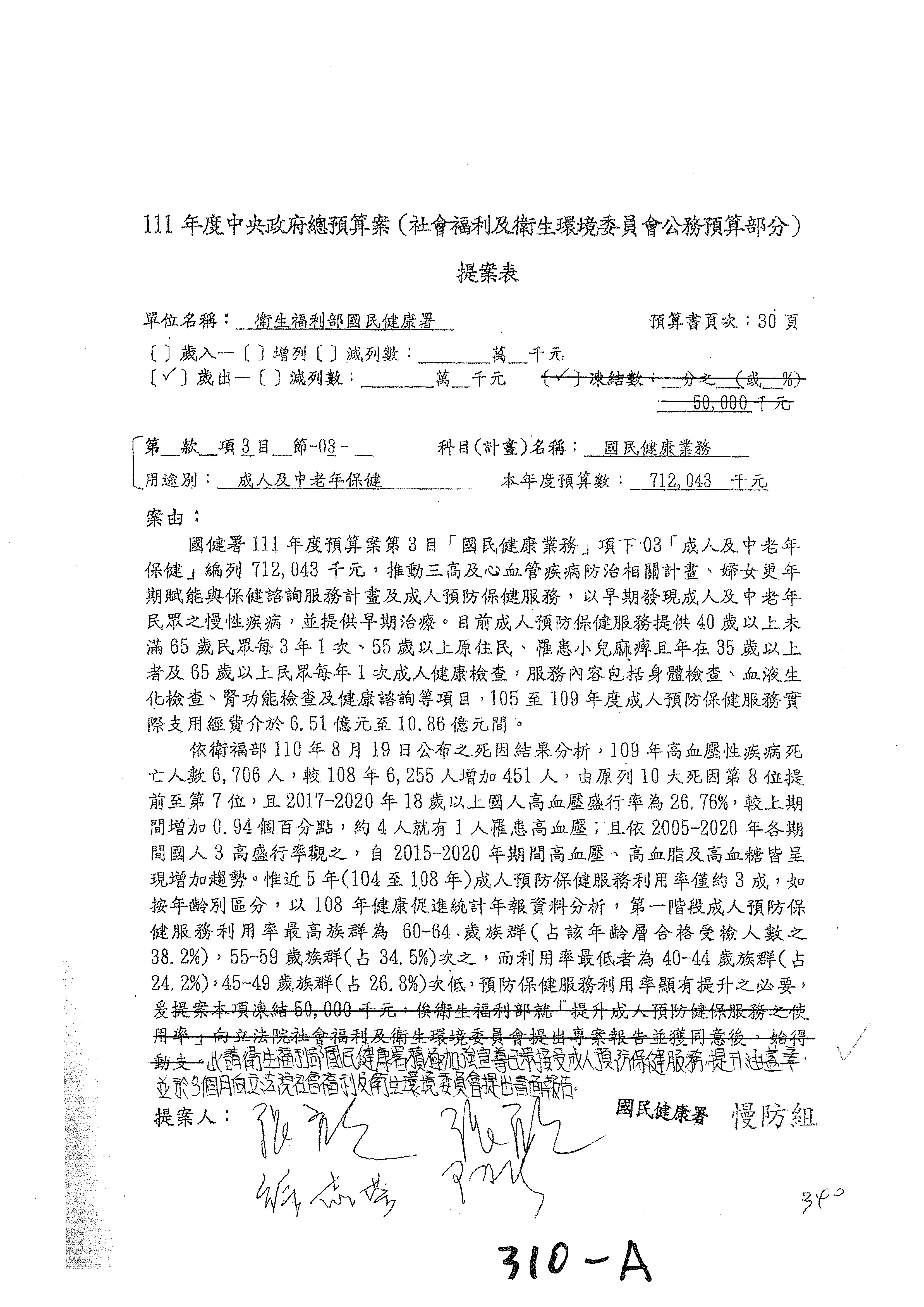 祝司長健芳:吳委員已經簽字,凍結「創新專業服務試辦計畫」這個分支計畫100萬元,並提出書面報告。