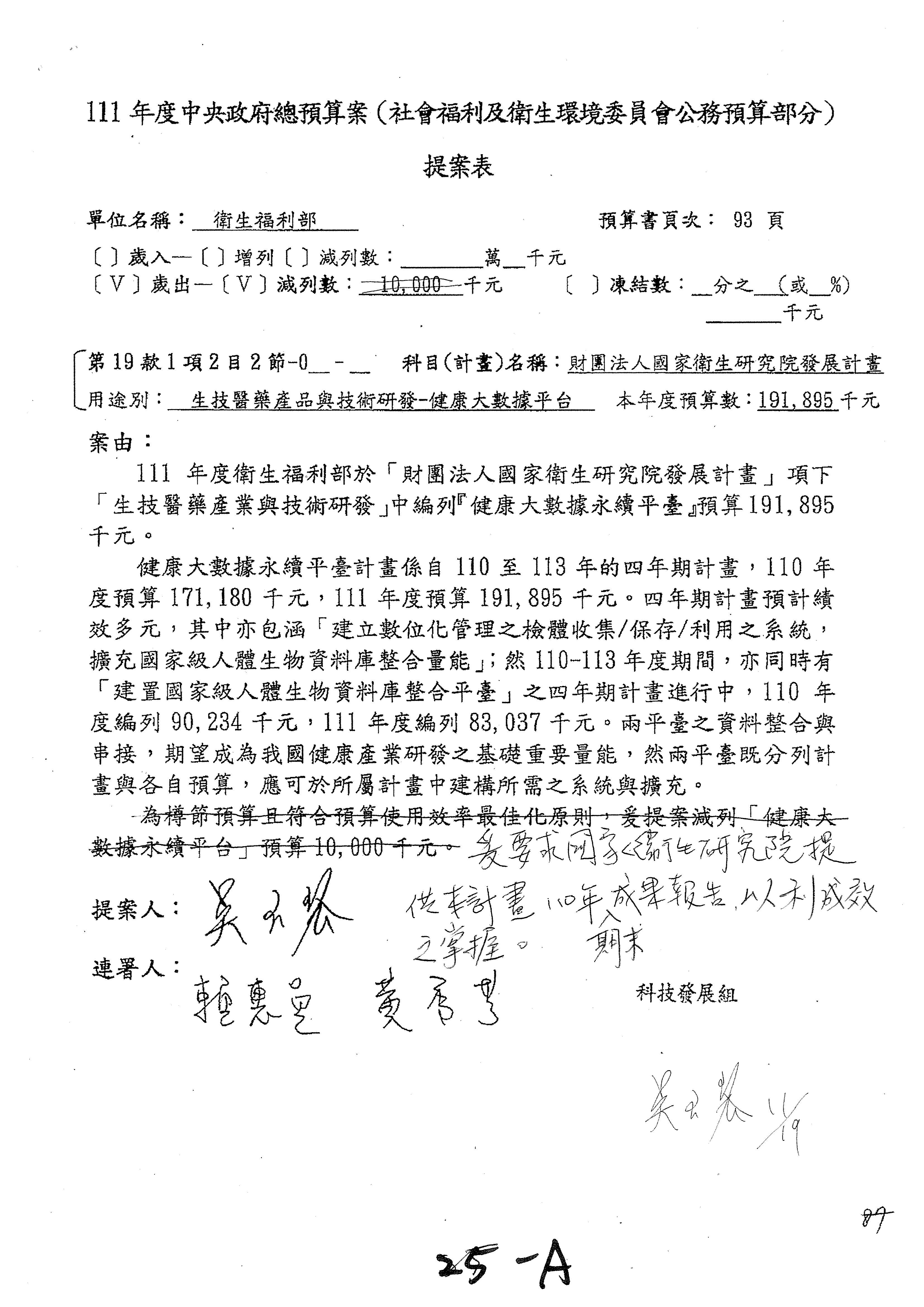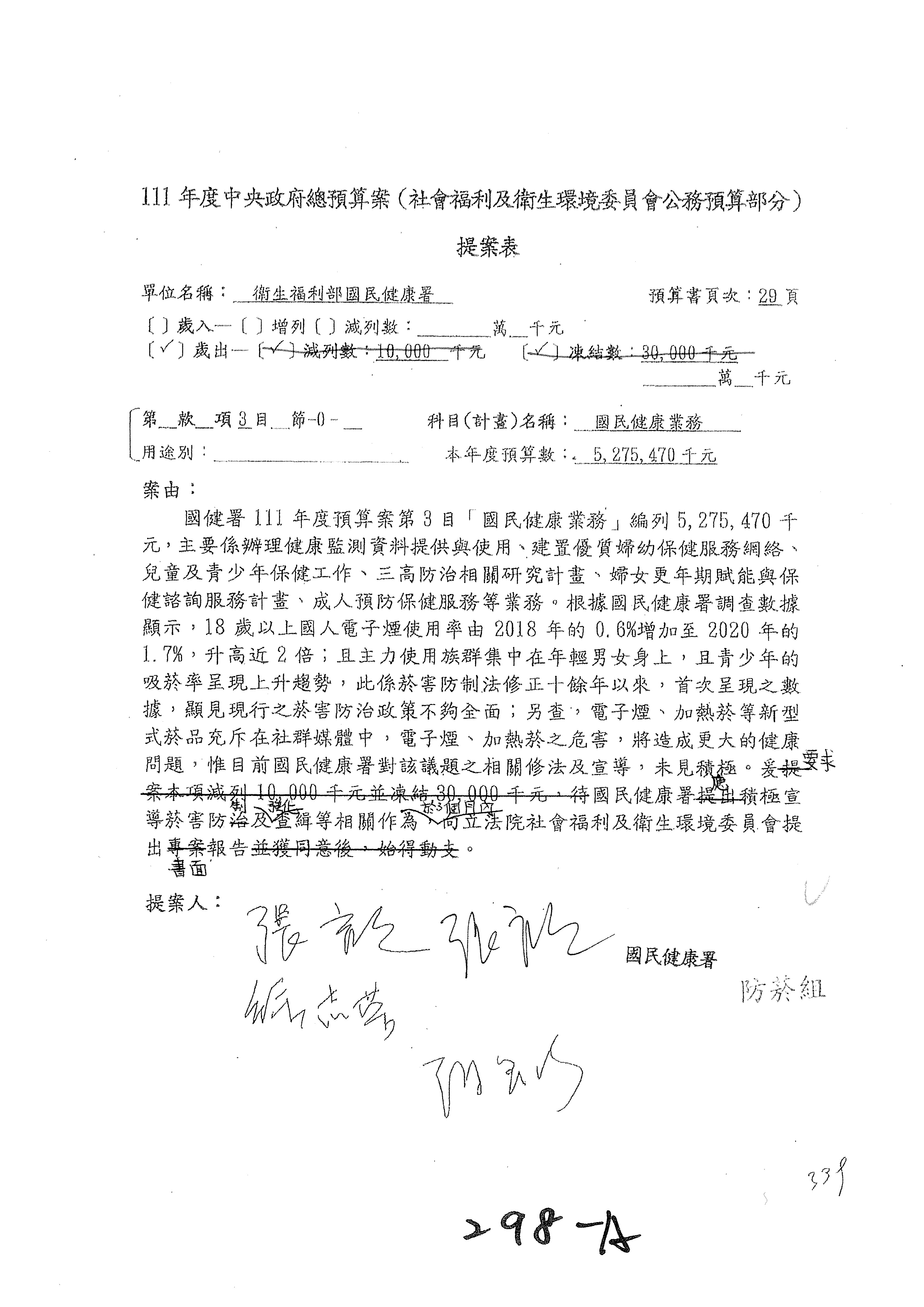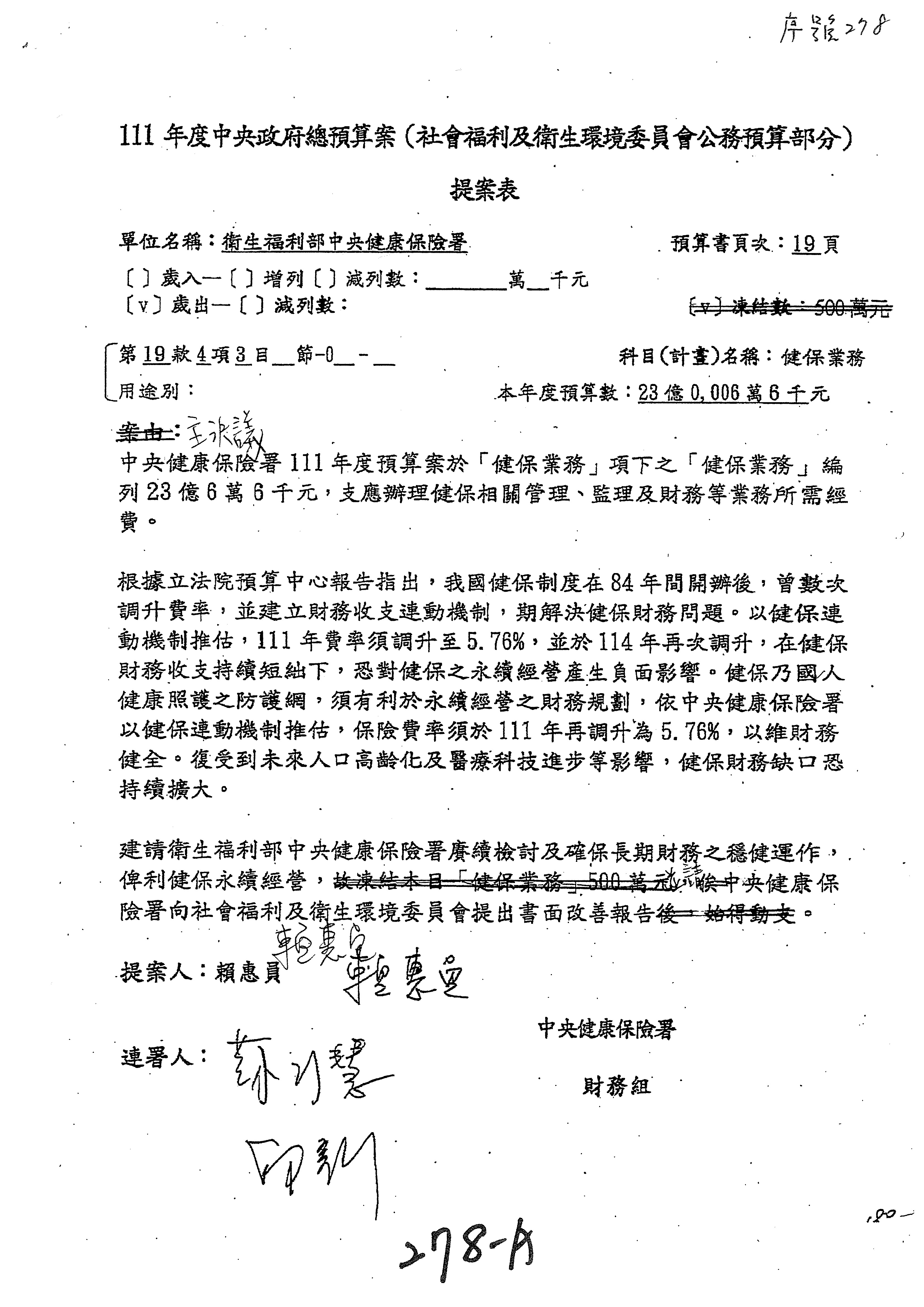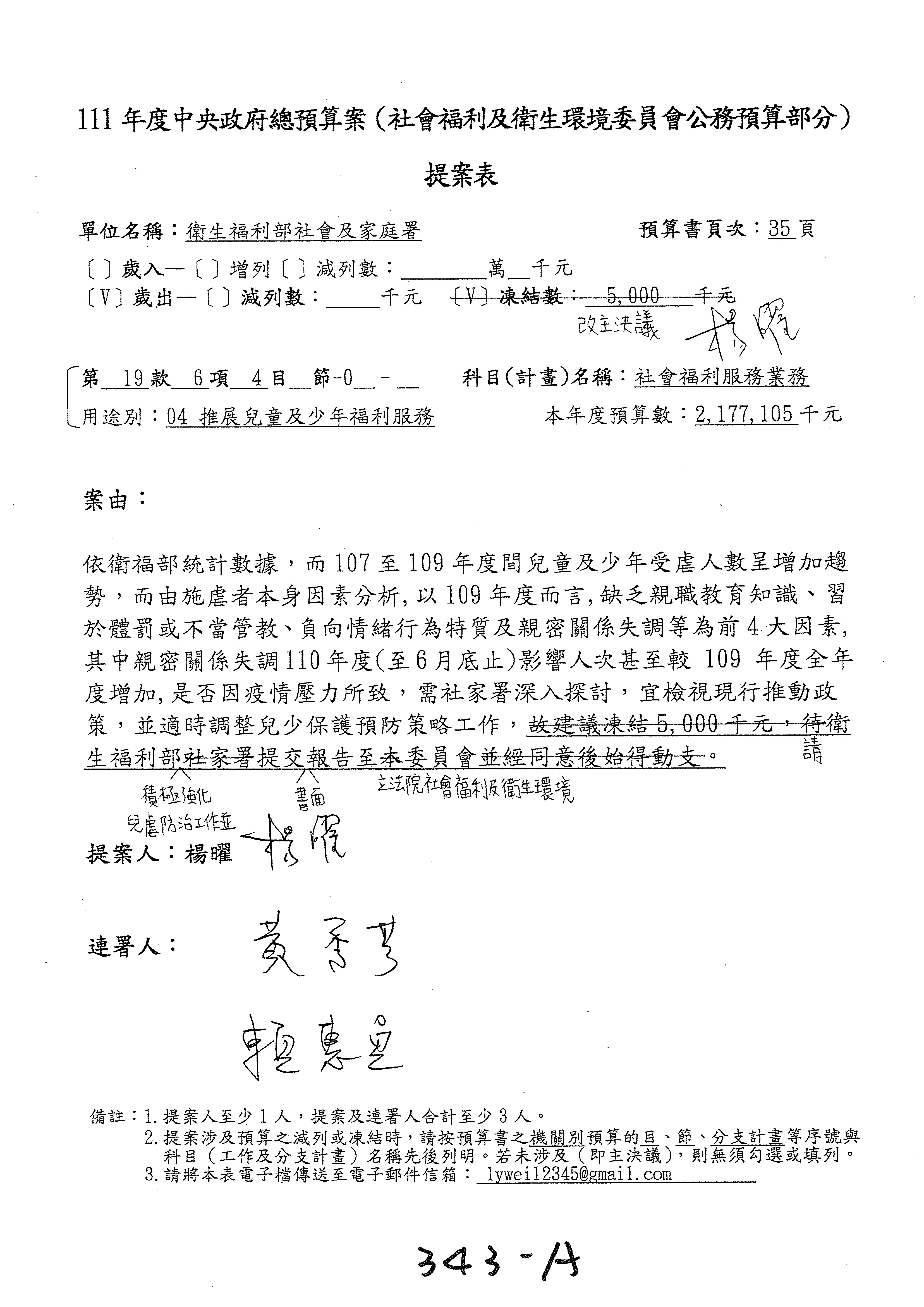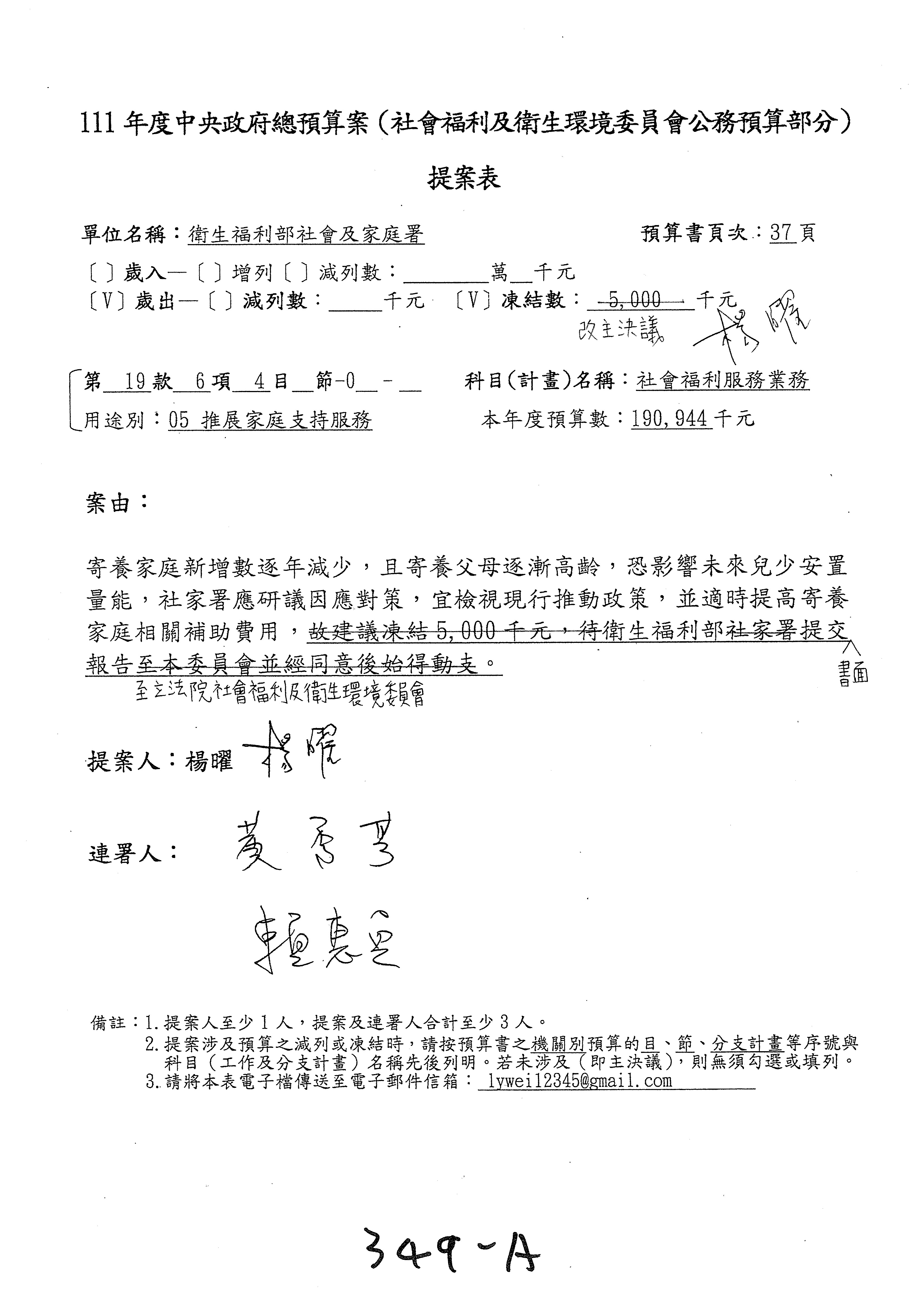 祝司長健芳:吳委員已經簽字,凍結「創新專業服務試辦計畫」這個分支計畫100萬元,並提出書面報告。