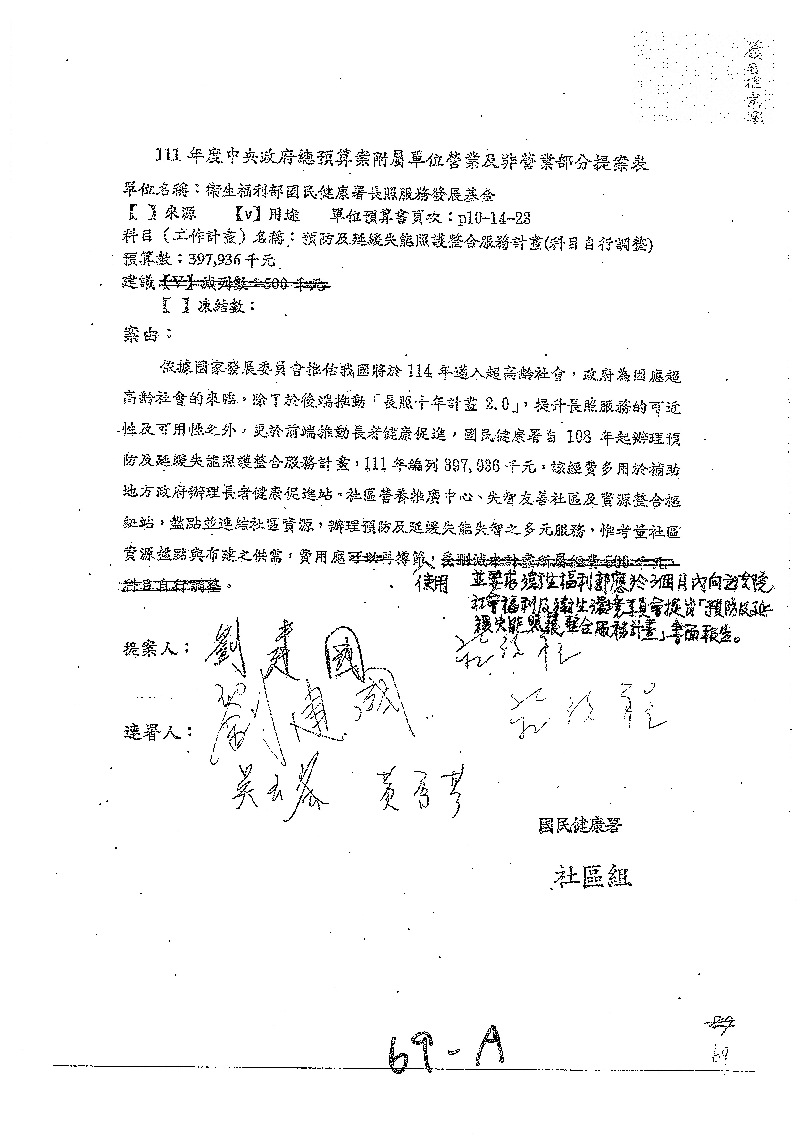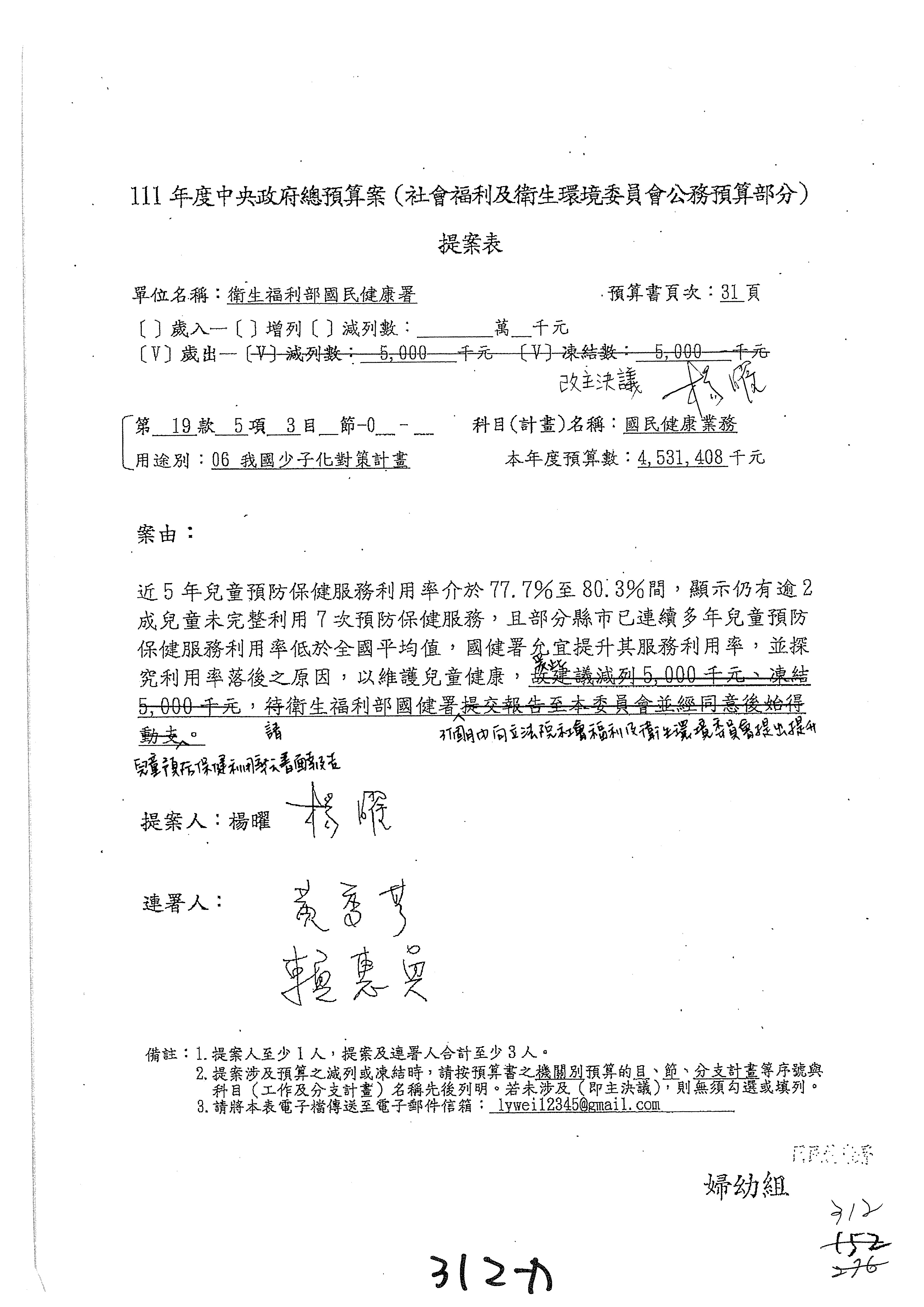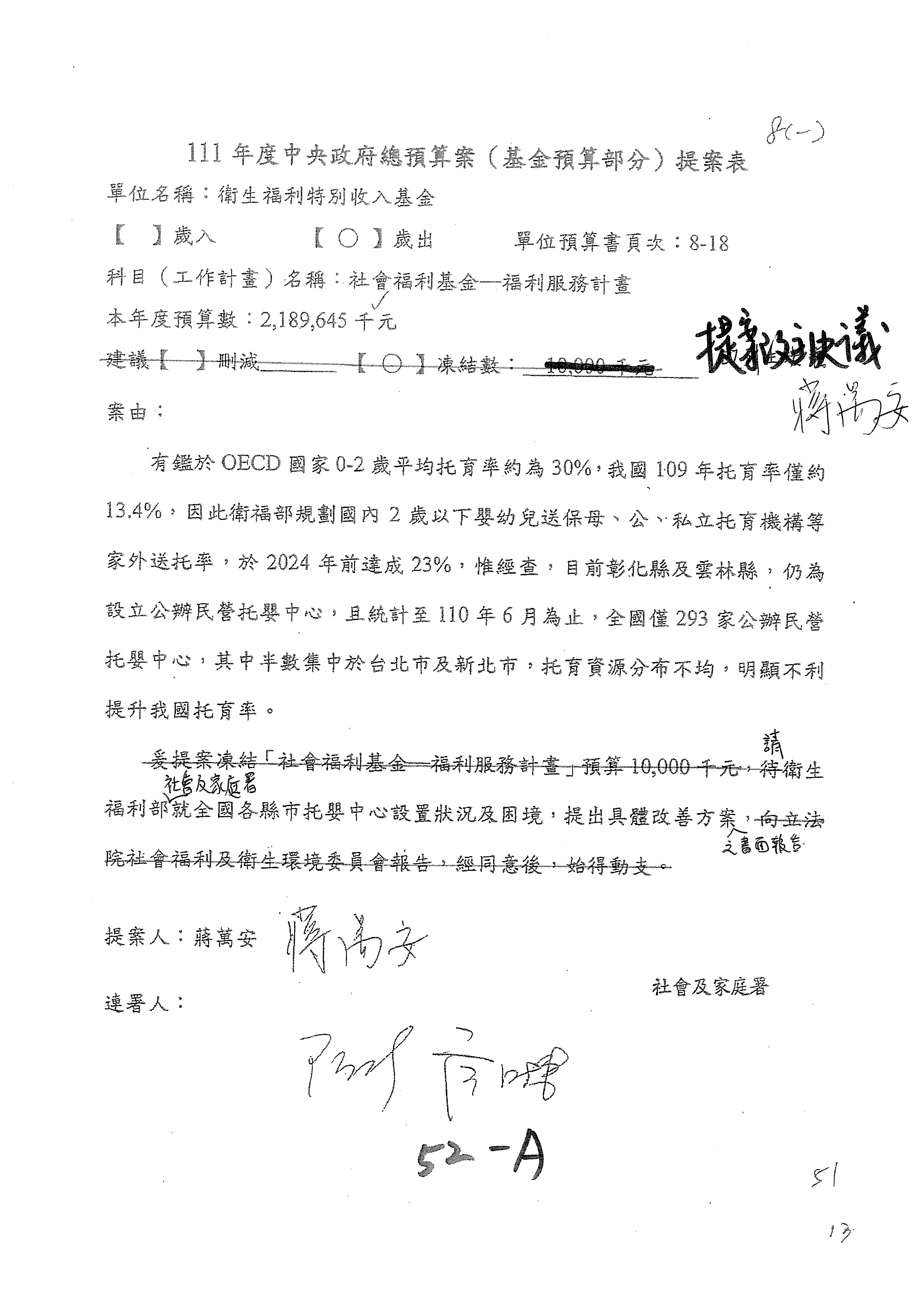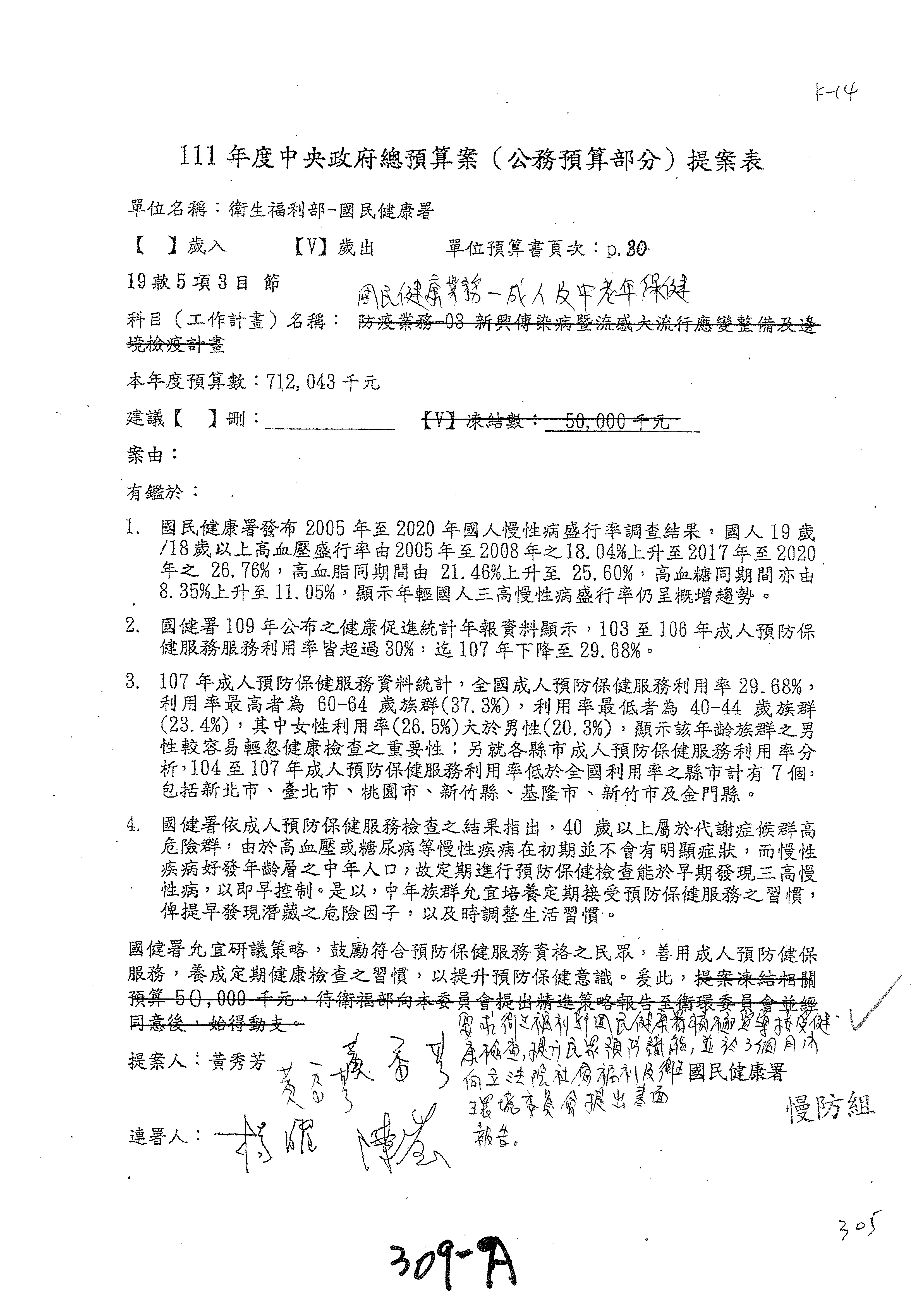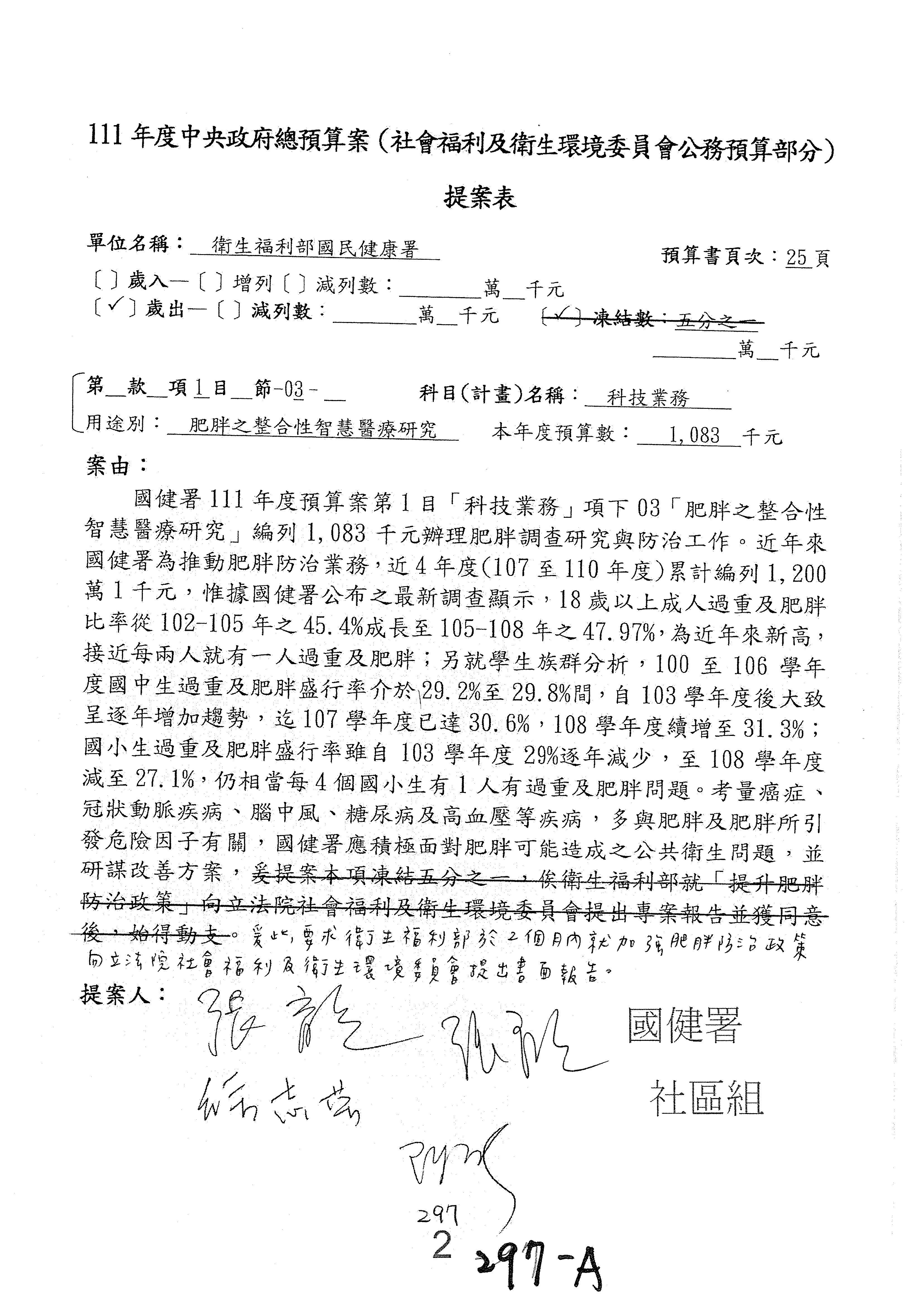 祝司長健芳:吳委員已經簽字,凍結「創新專業服務試辦計畫」這個分支計畫100萬元,並提出書面報告。