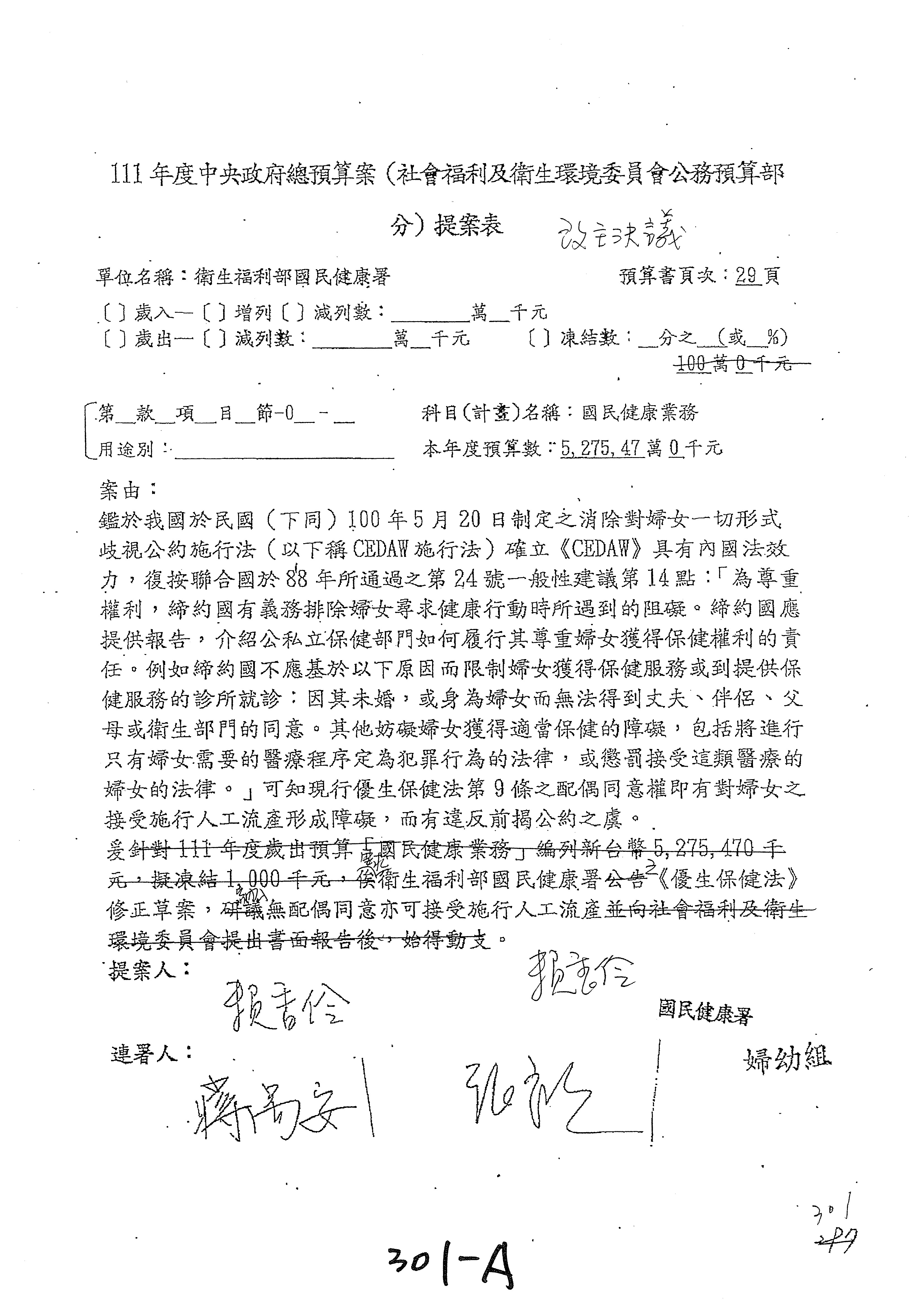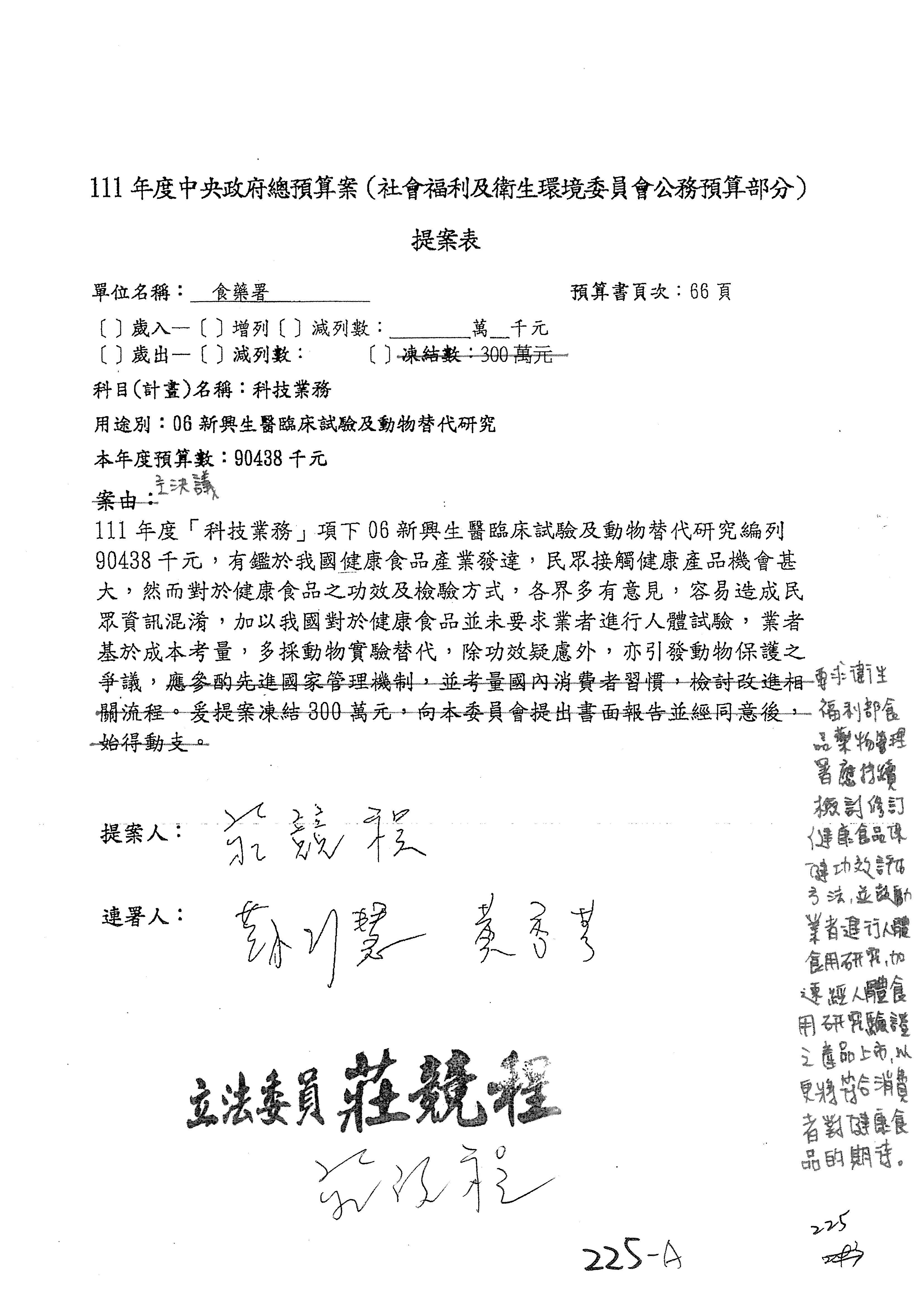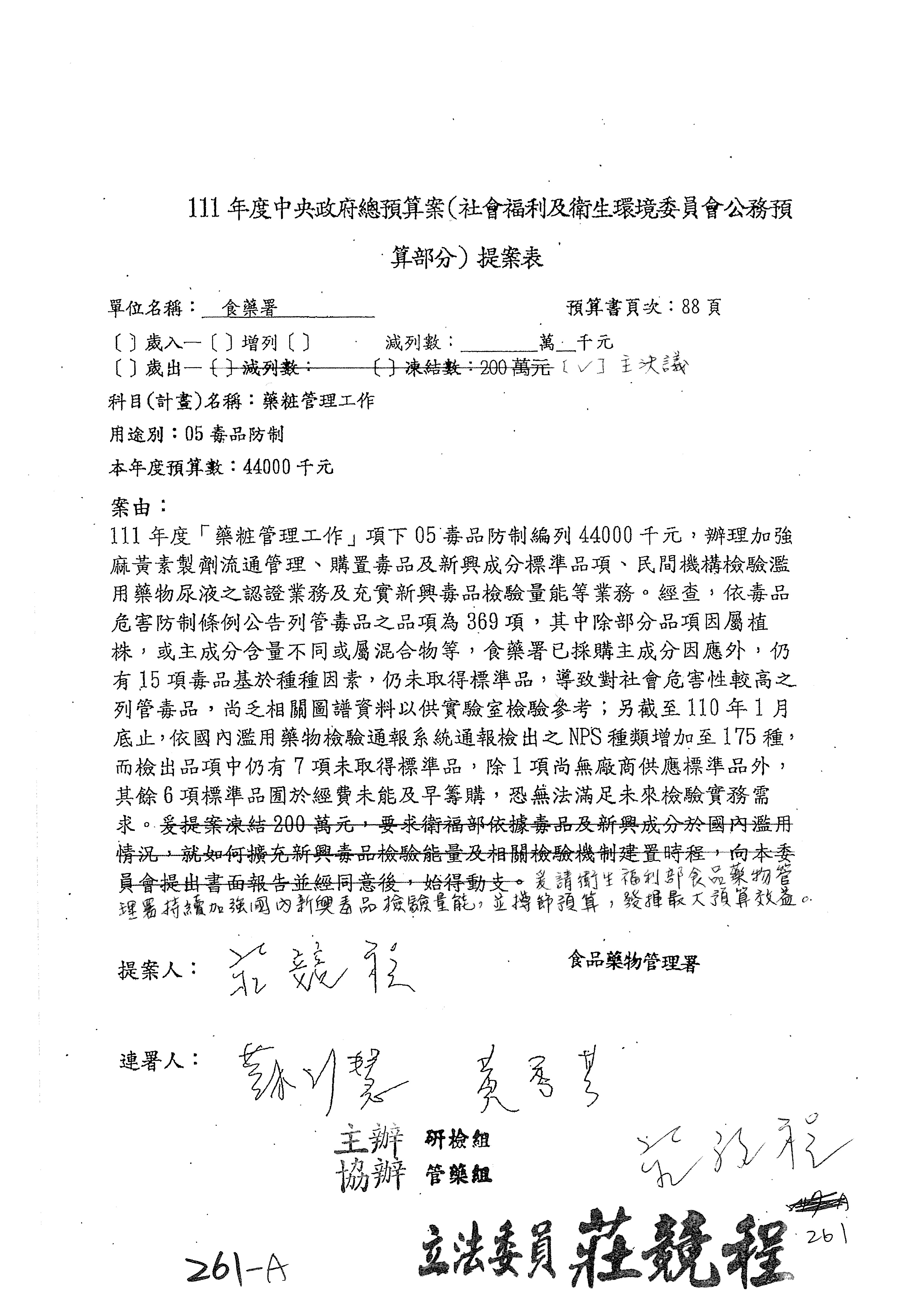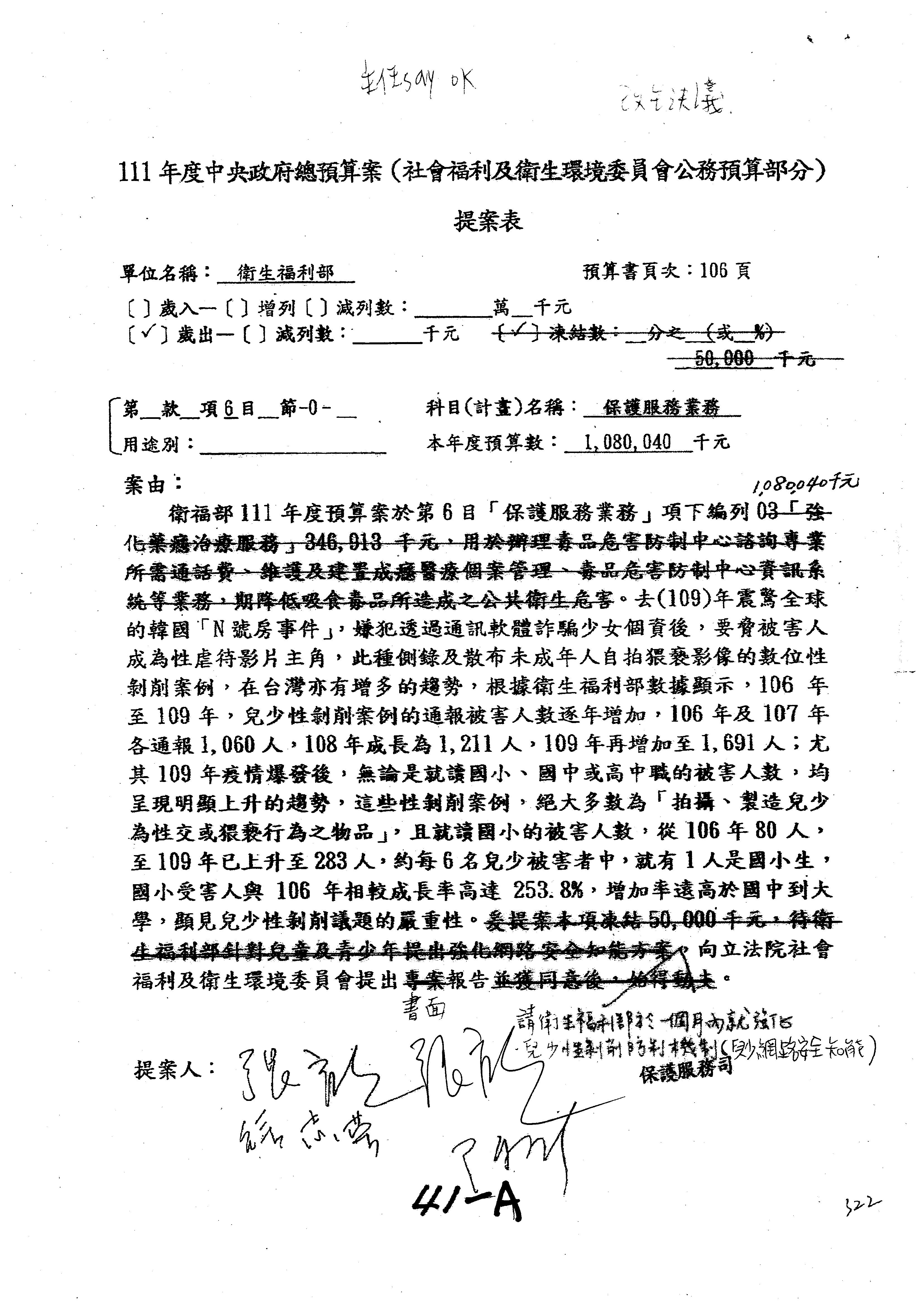 簡署長慧娟:建議修改文字,不用提書面報告,不過委員還沒簽名。