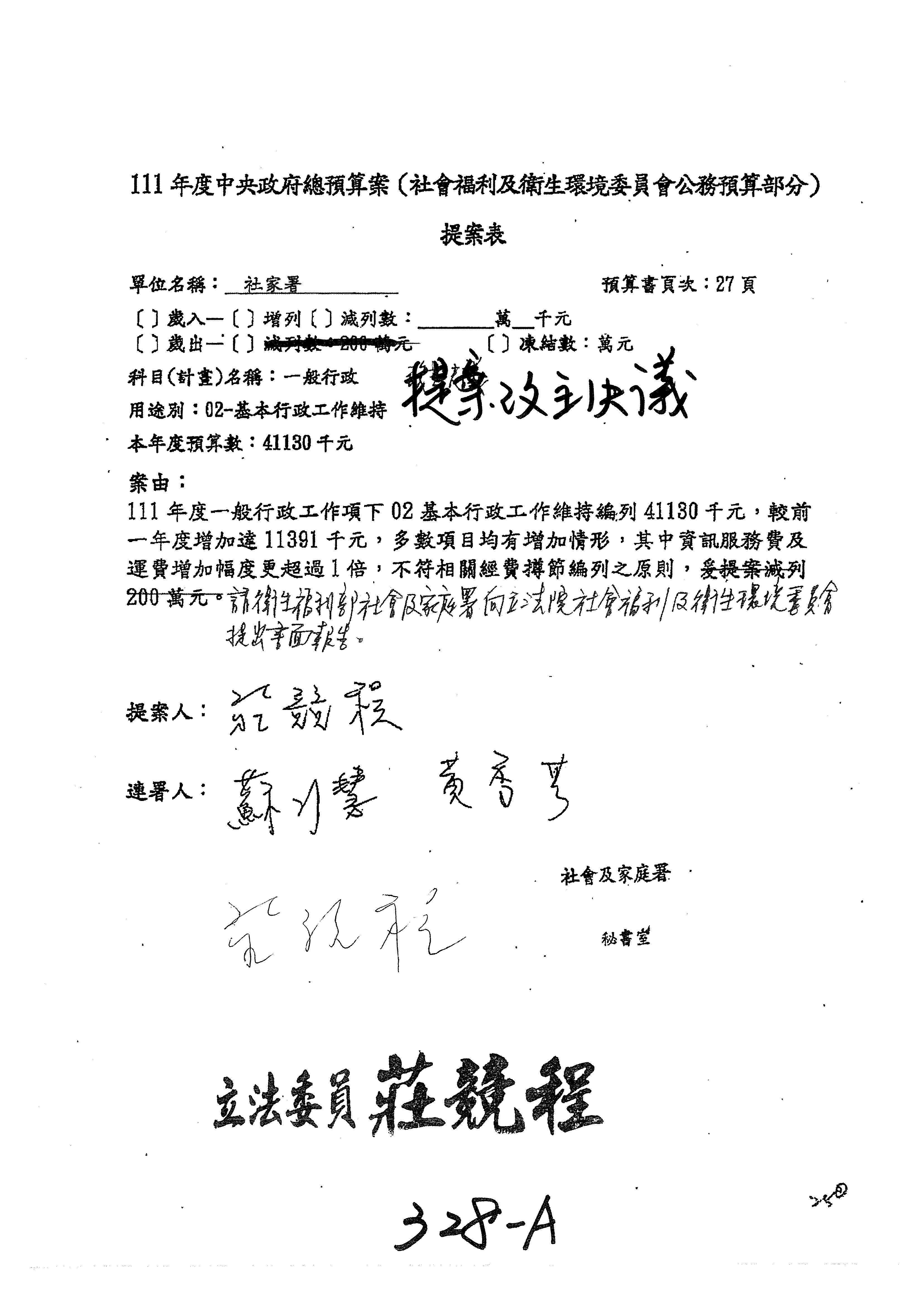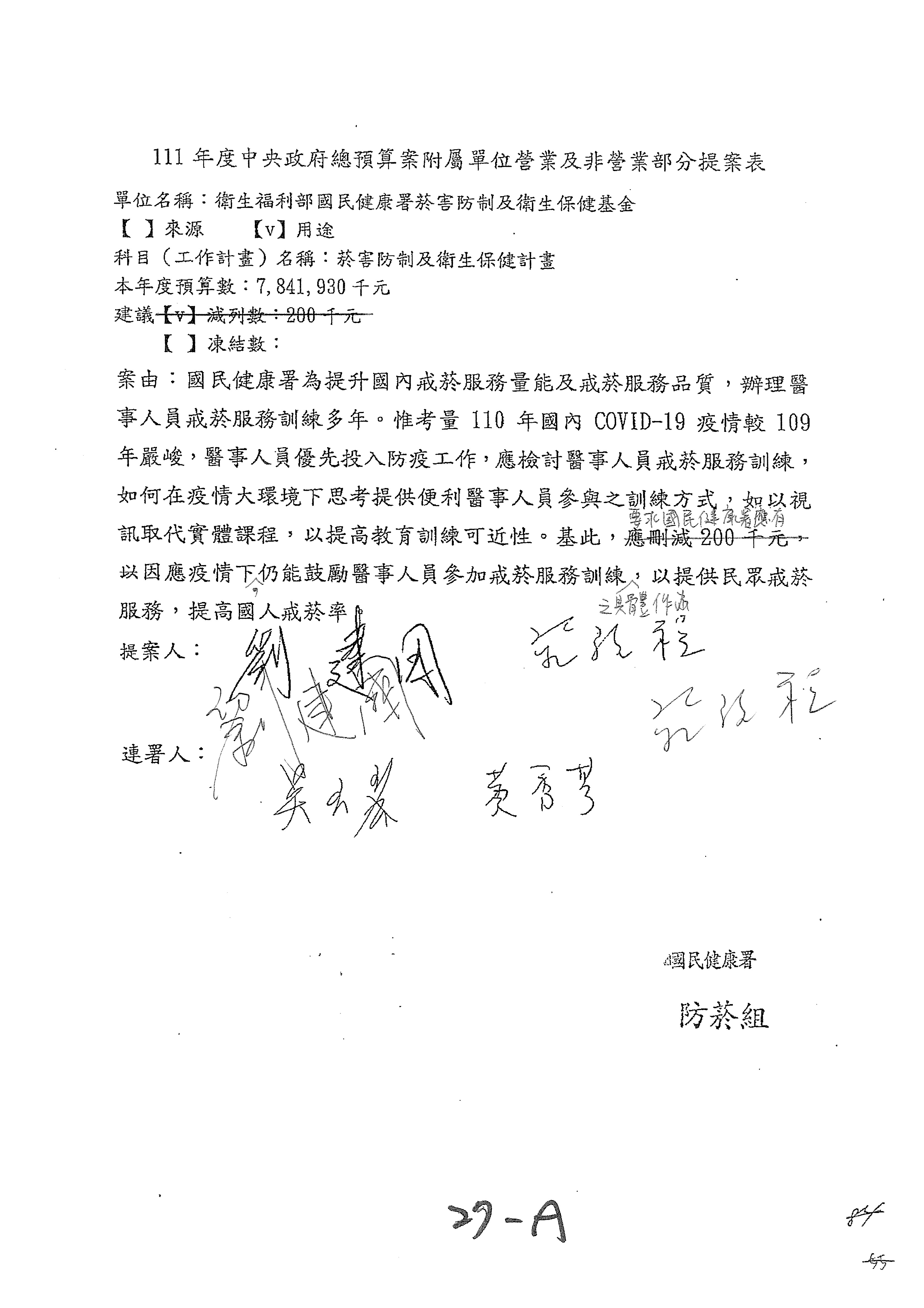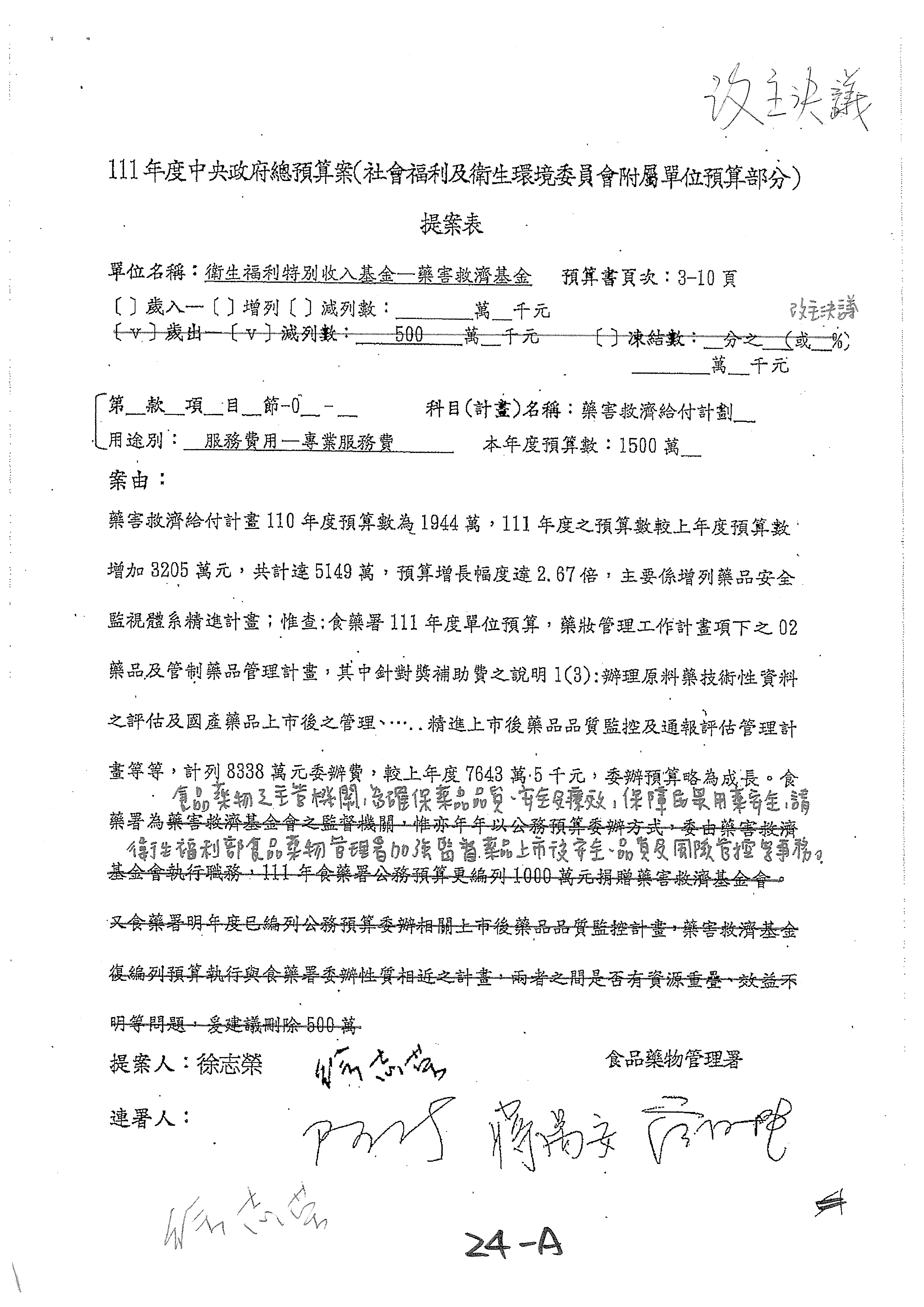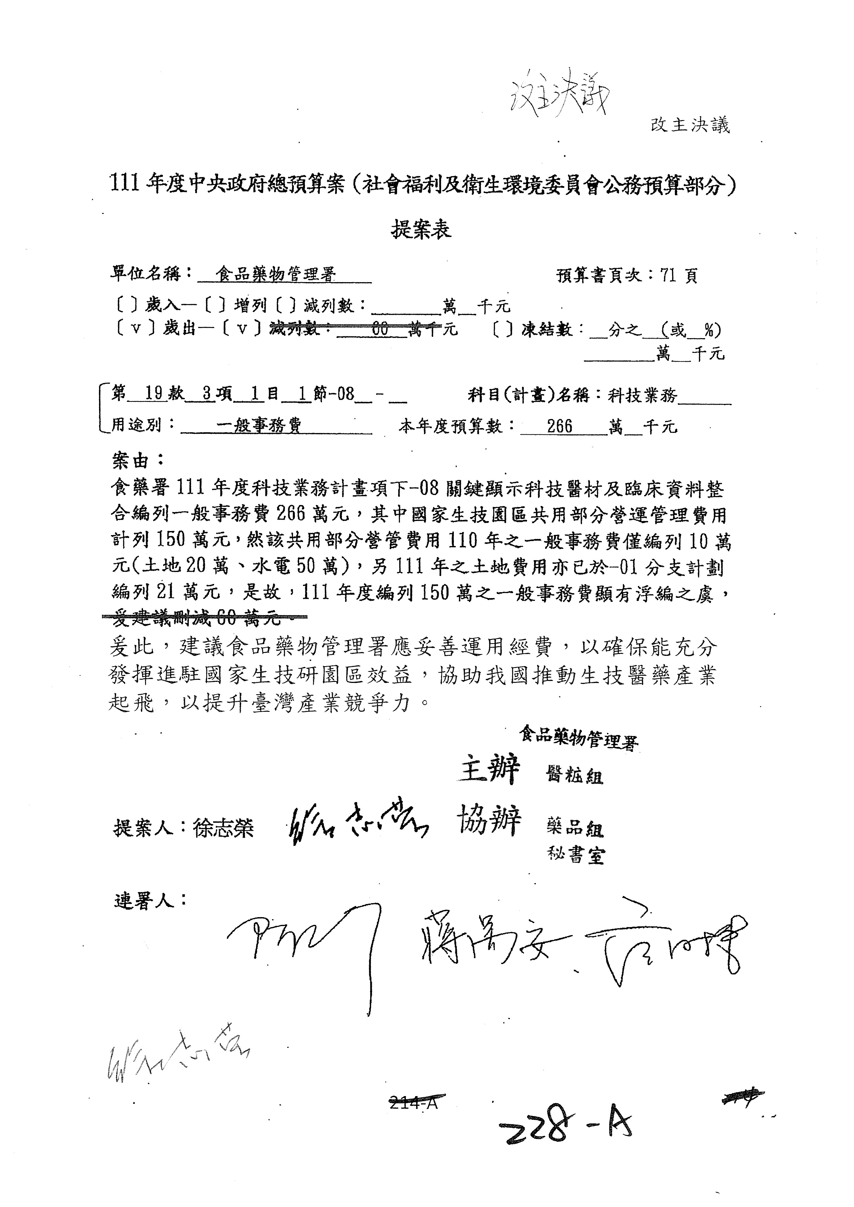 簡署長慧娟:建議修改文字,不用提書面報告,不過委員還沒簽名。