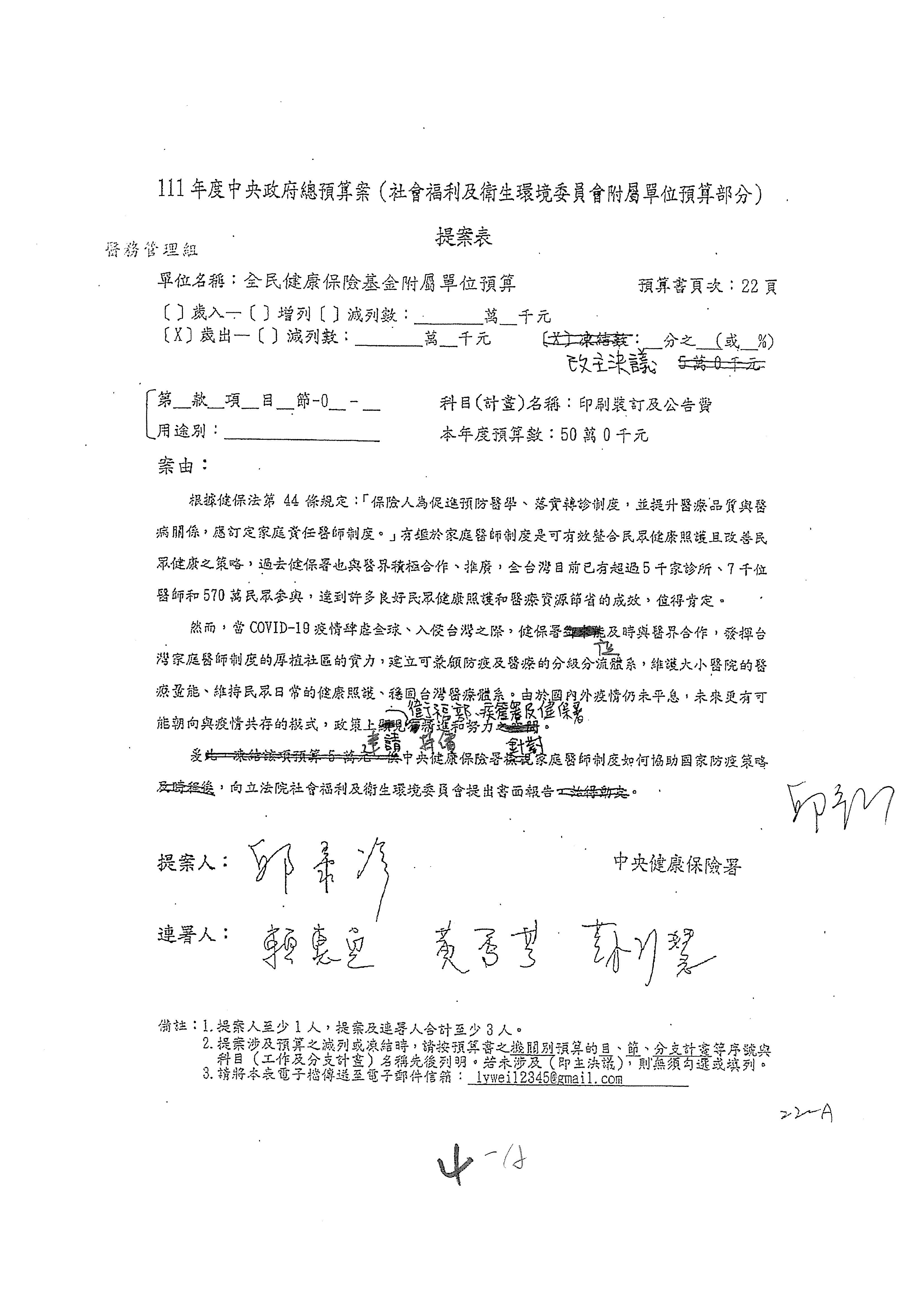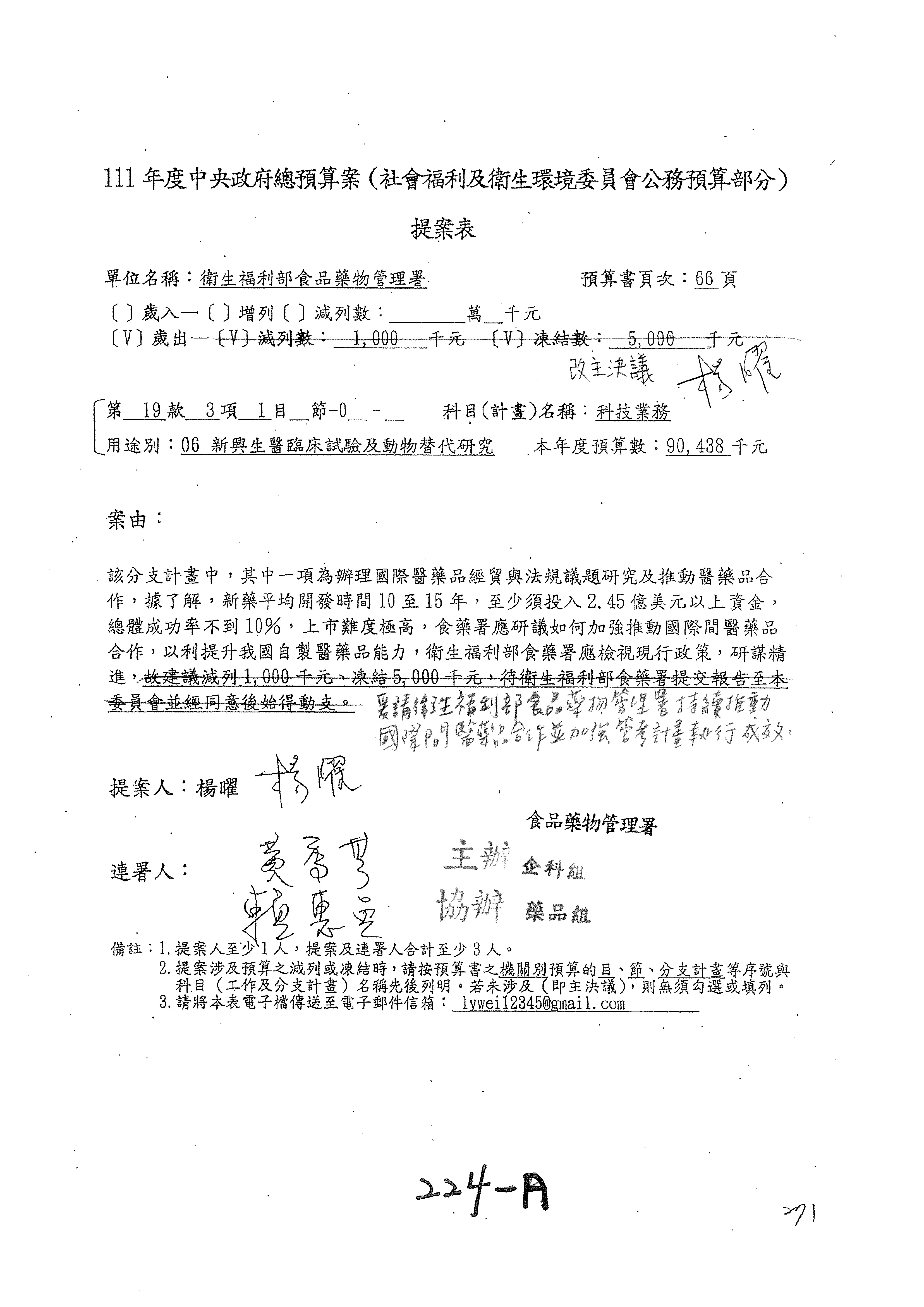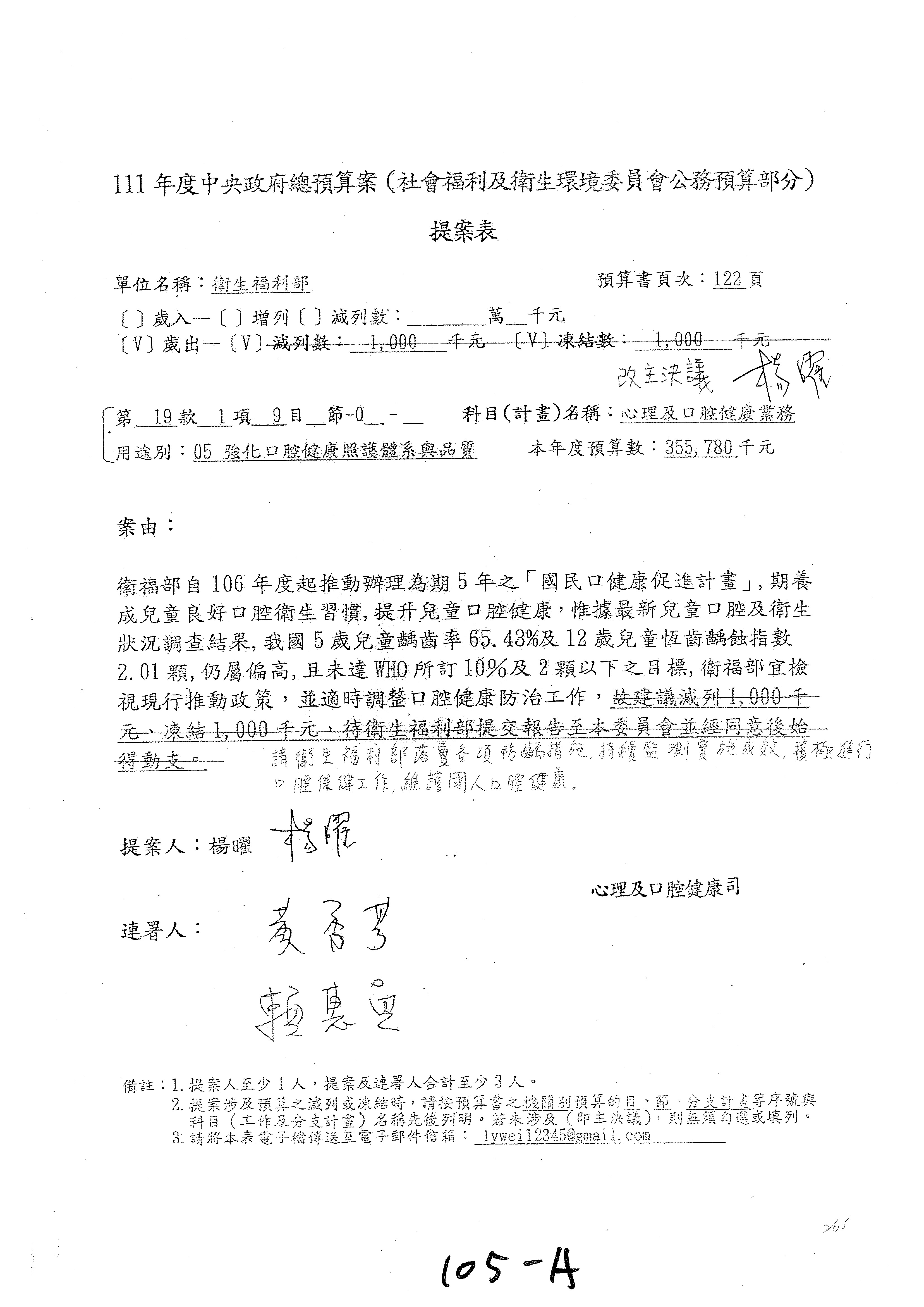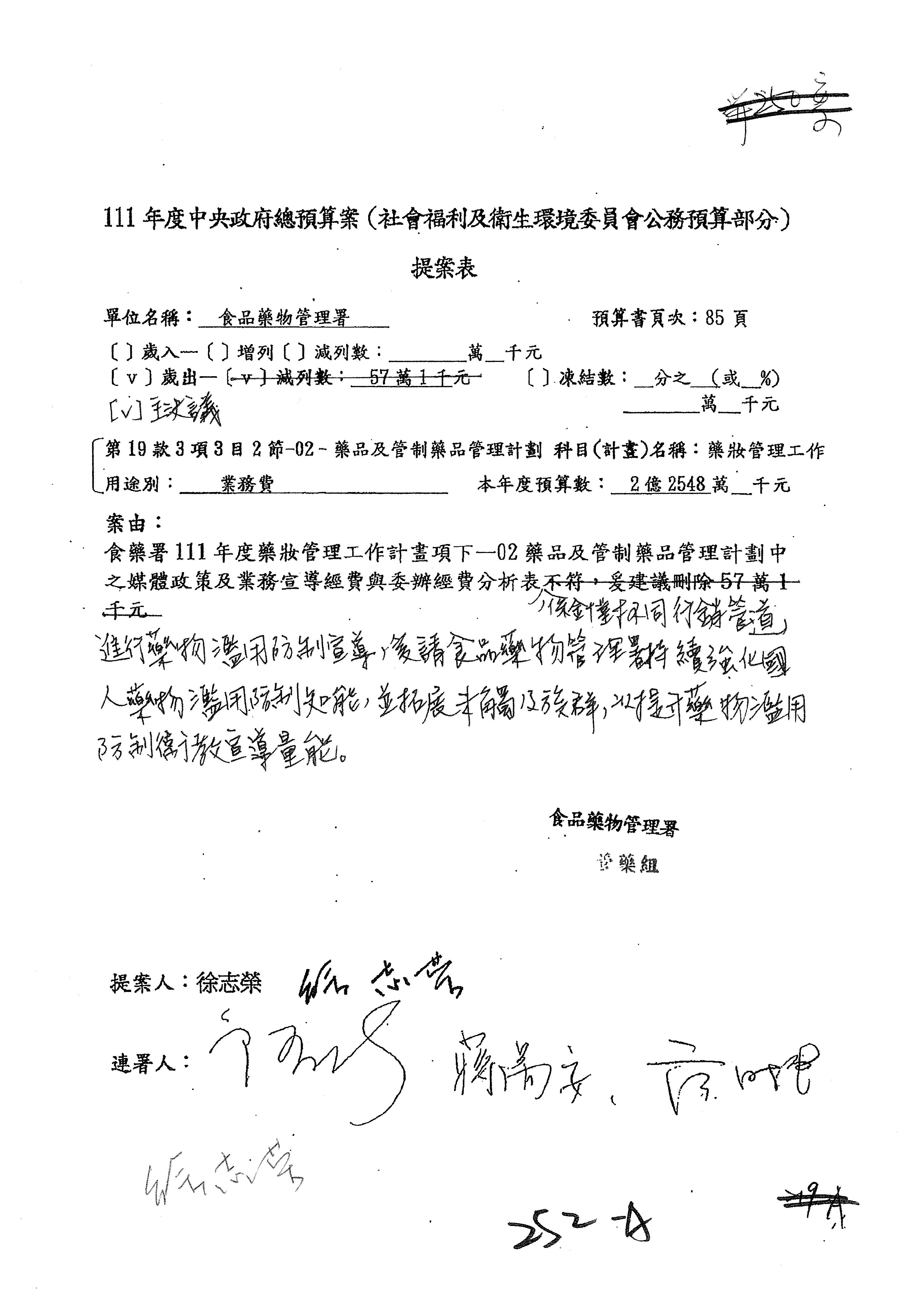 簡署長慧娟:建議修改文字,不用提書面報告,不過委員還沒簽名。