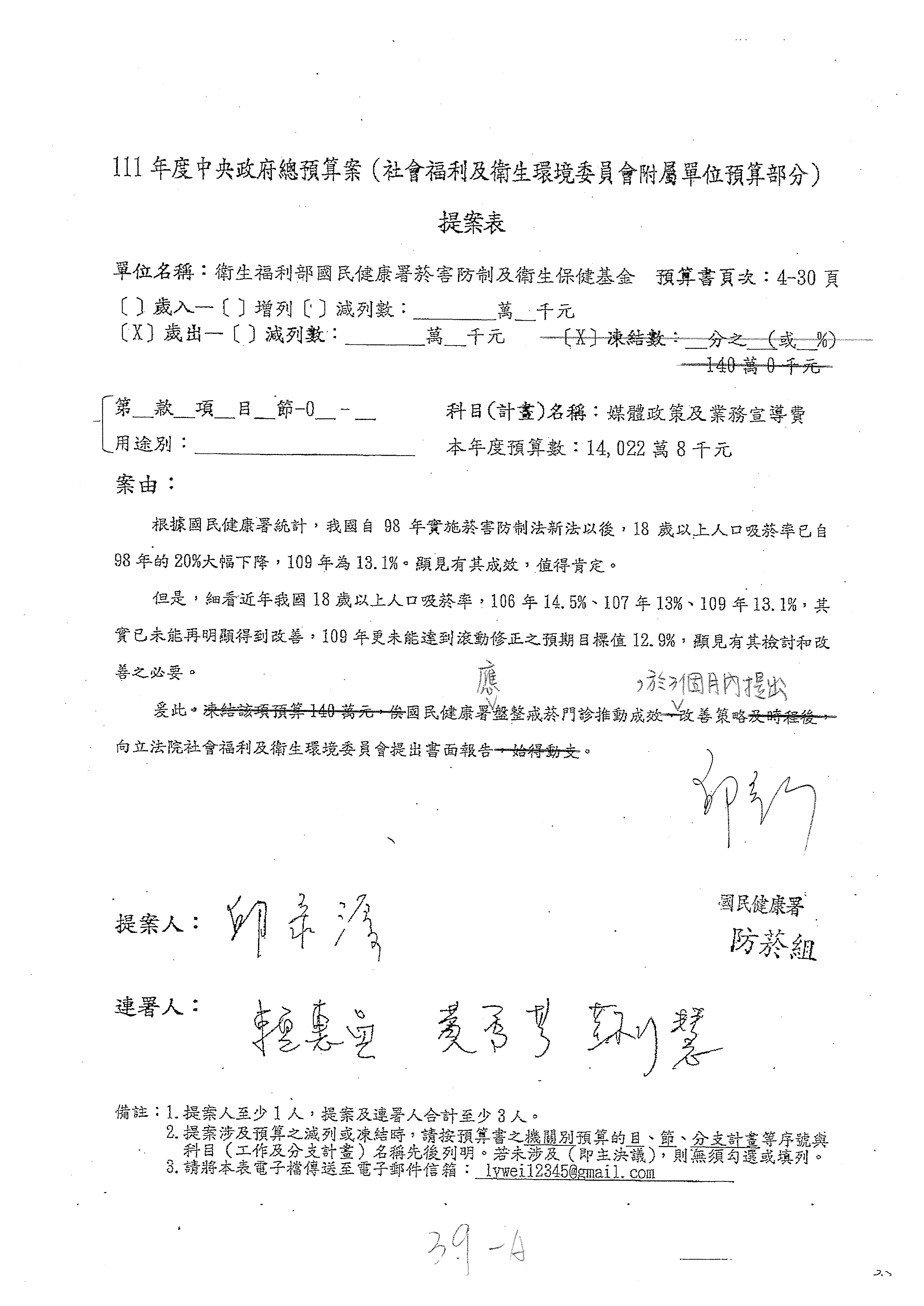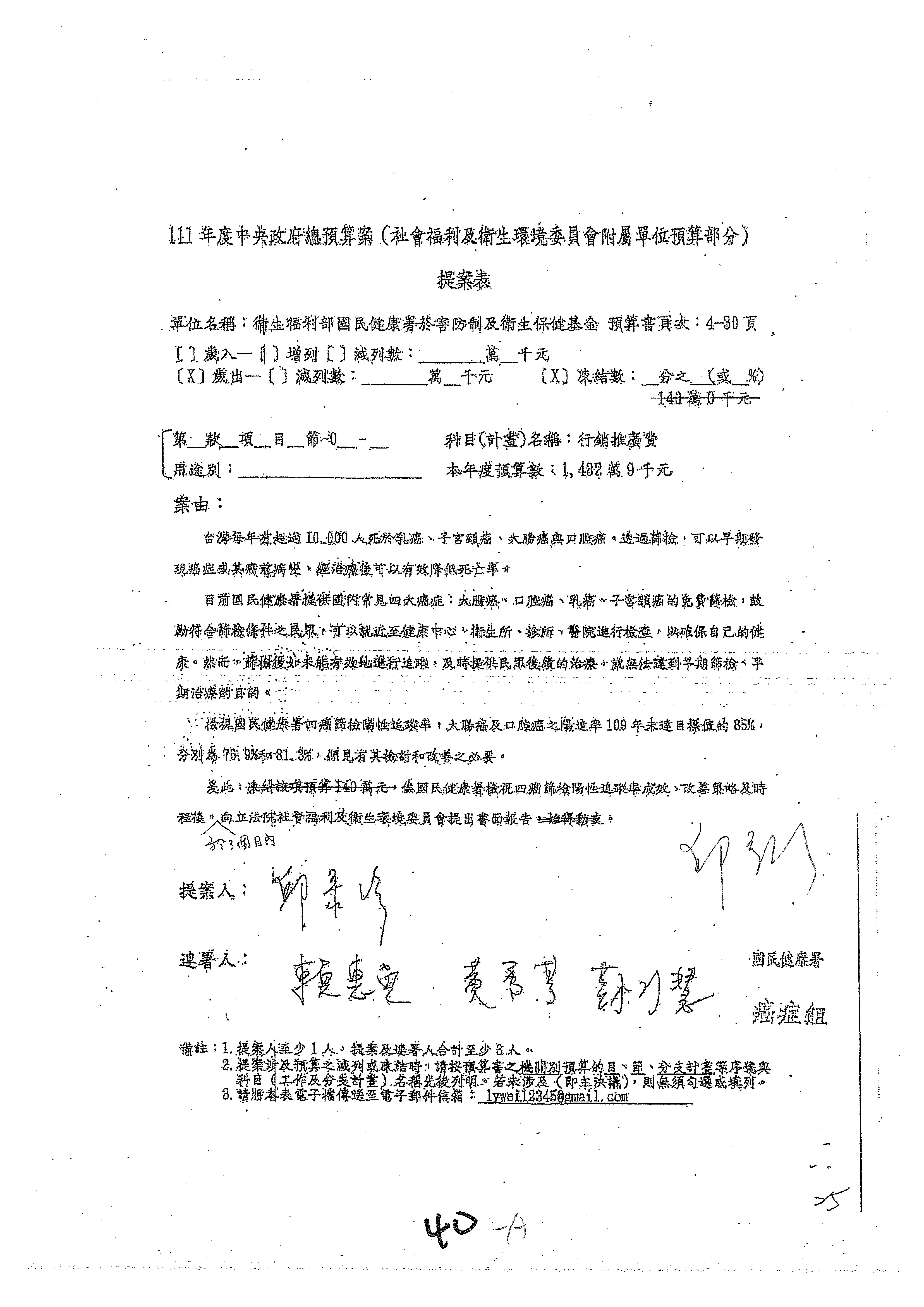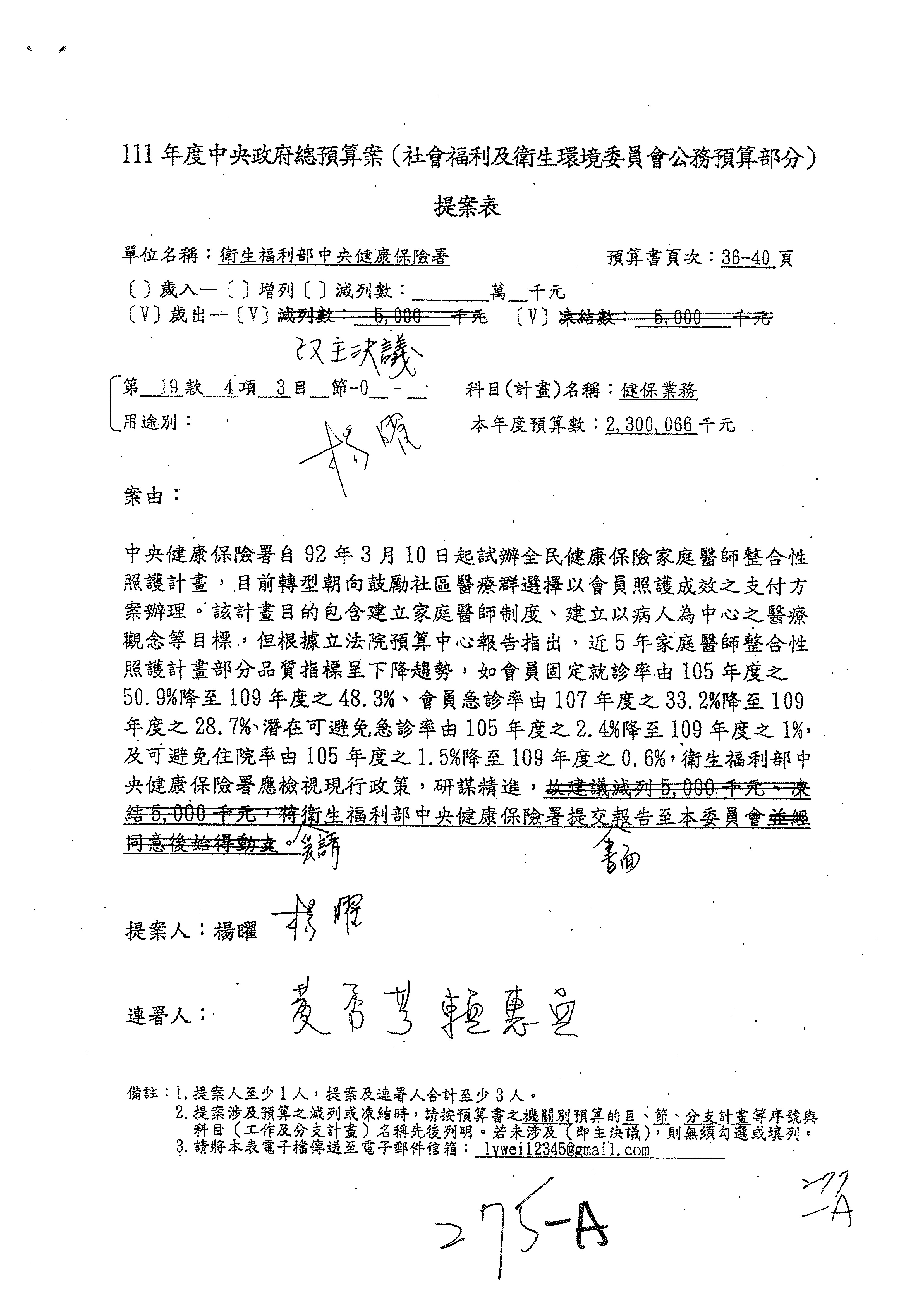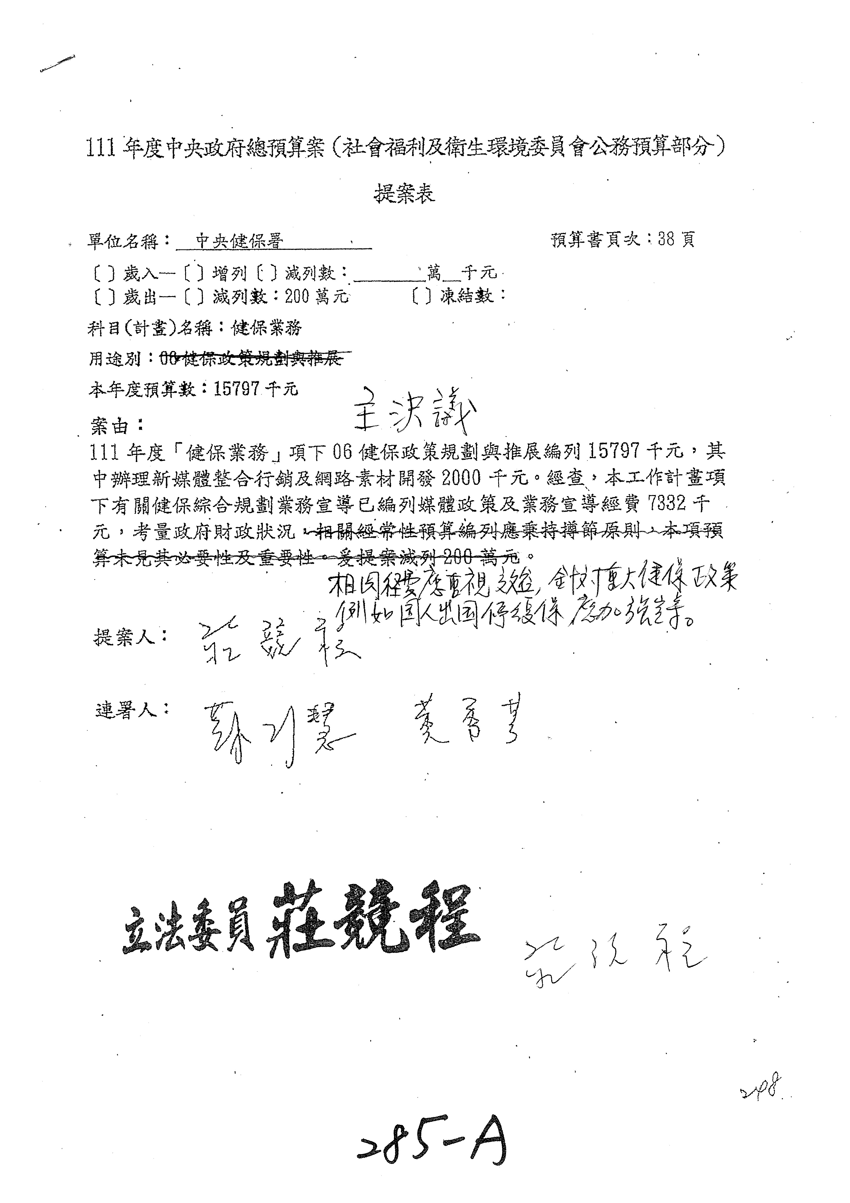 簡署長慧娟:建議修改文字,不用提書面報告,不過委員還沒簽名。