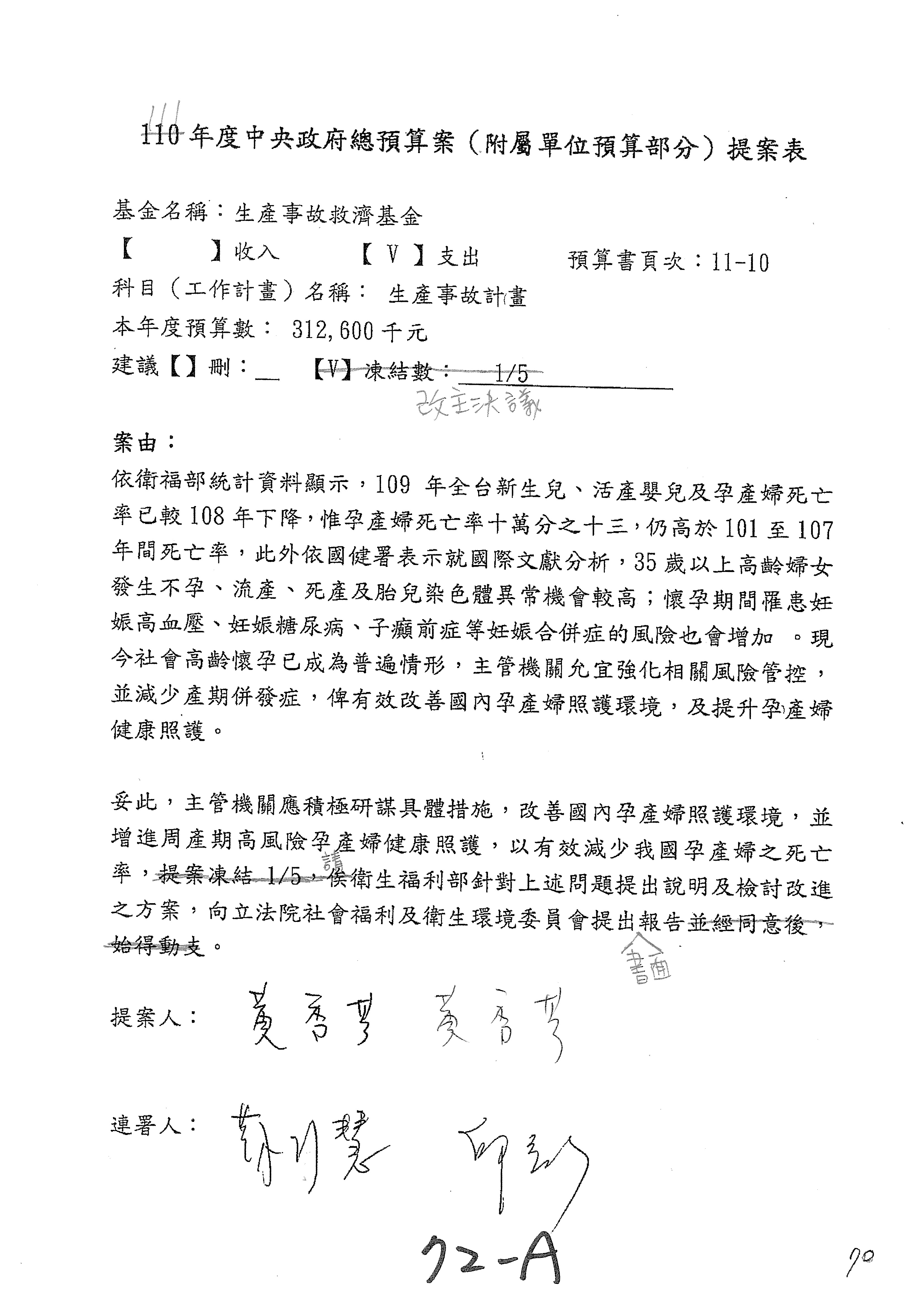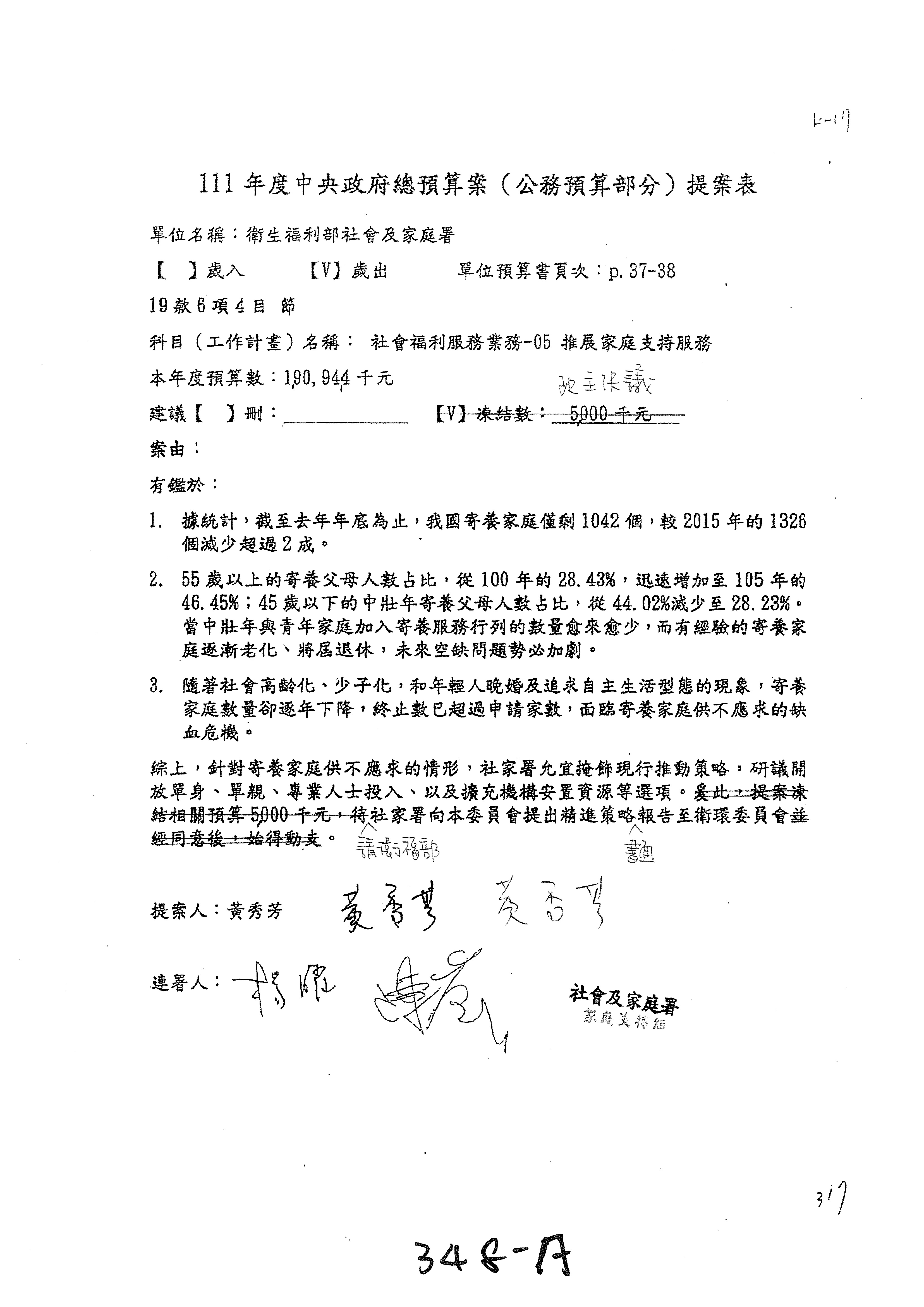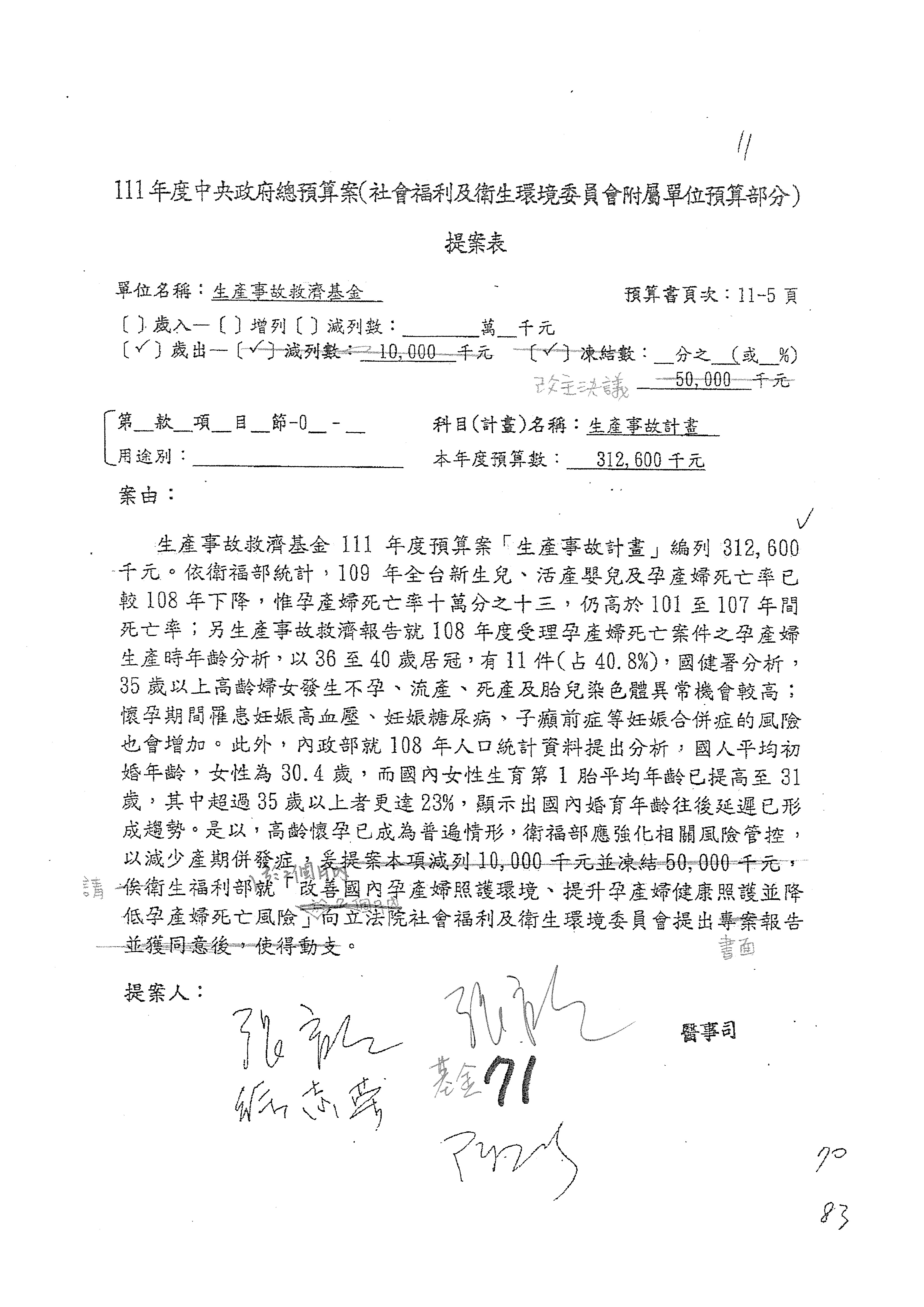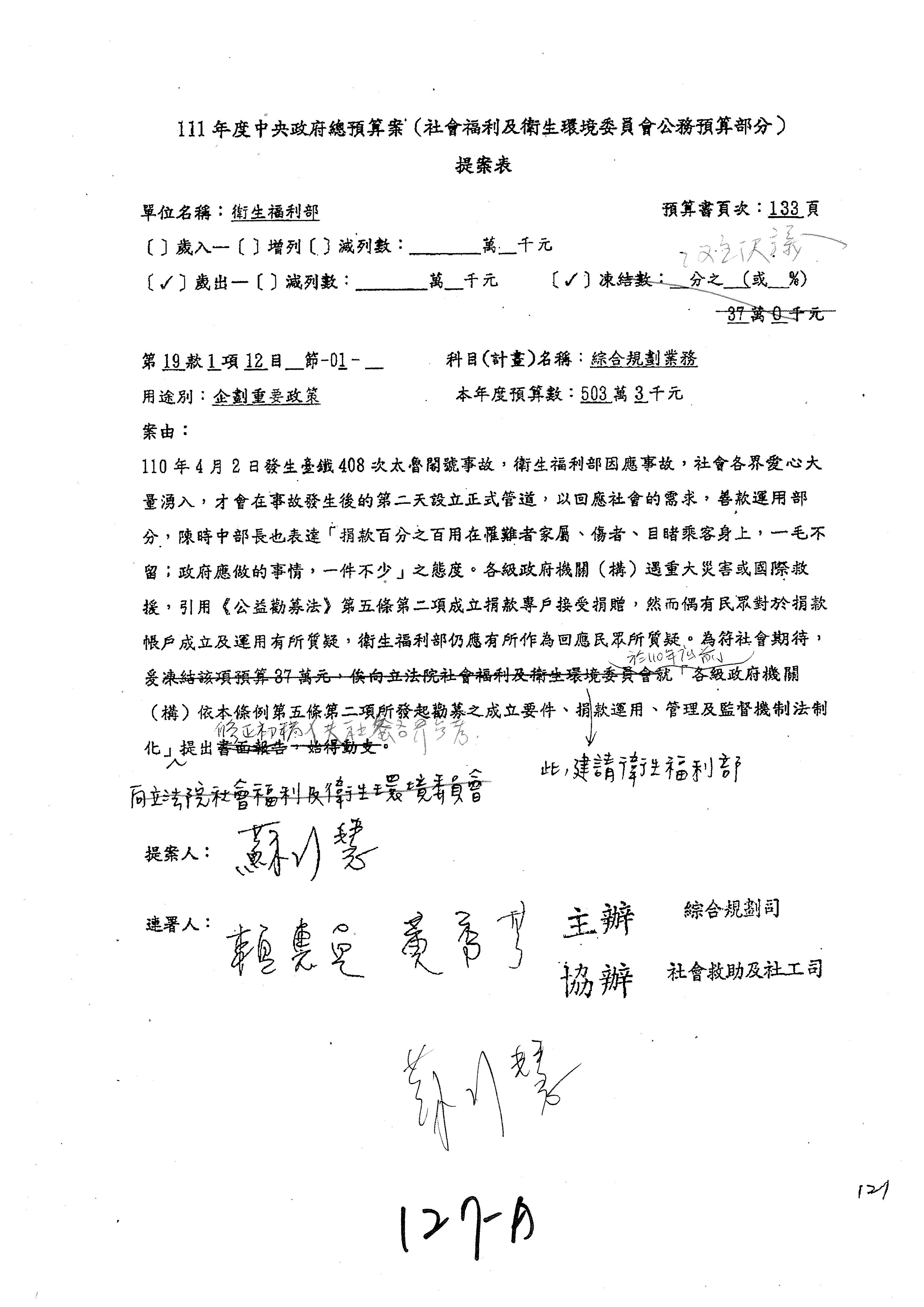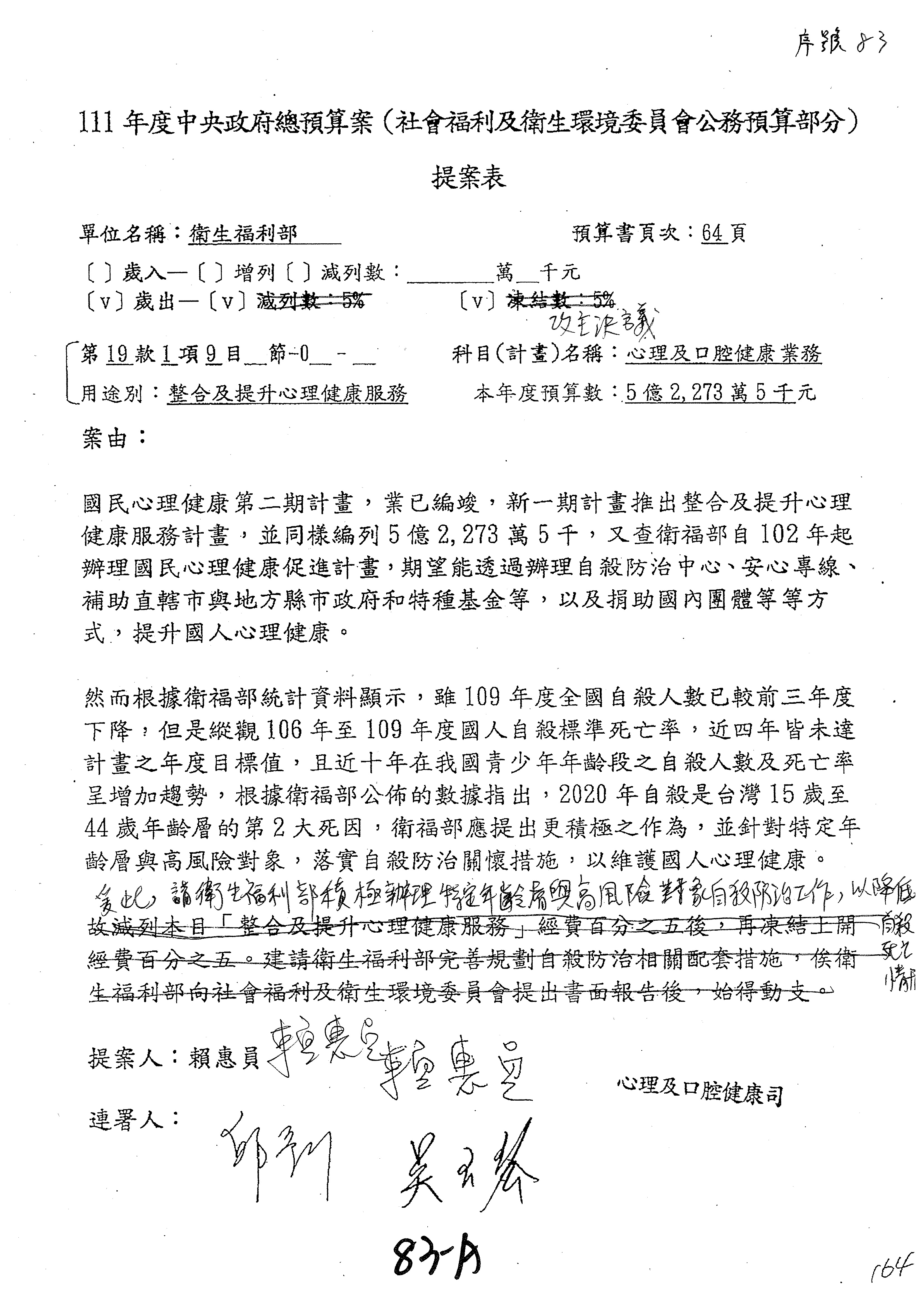 祝司長健芳:剛才吳委員提到第61案和第62案都是針對重症兒,包括喘息的機制建立及整個照服員的訓練,這個部分我們也都遵照委員剛剛的指示,另外再凍100萬元。
